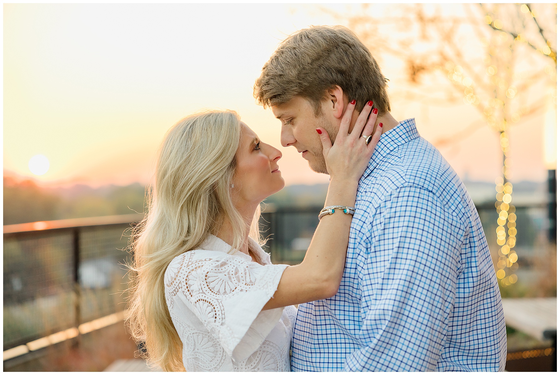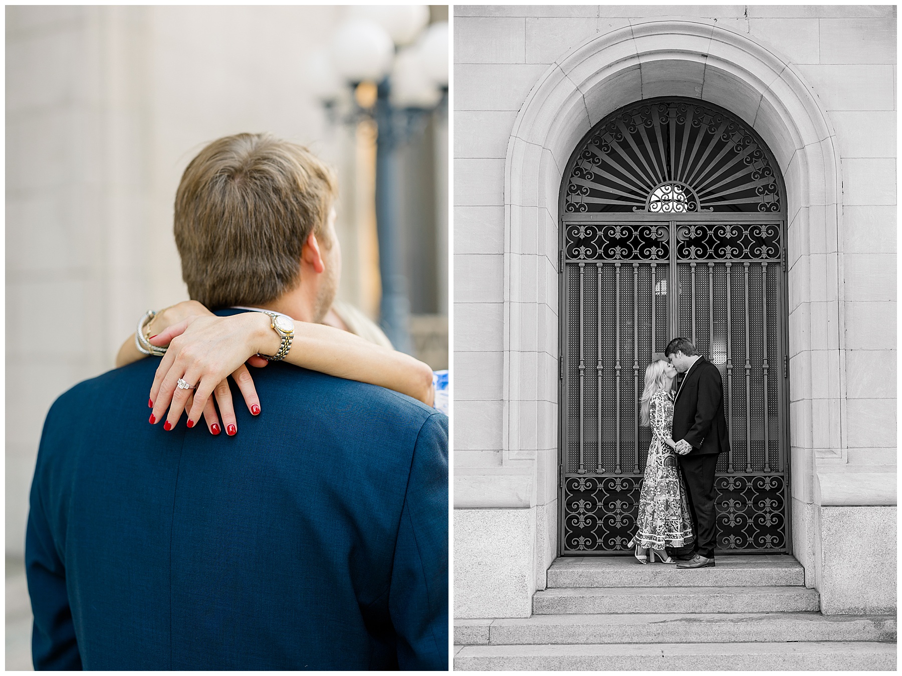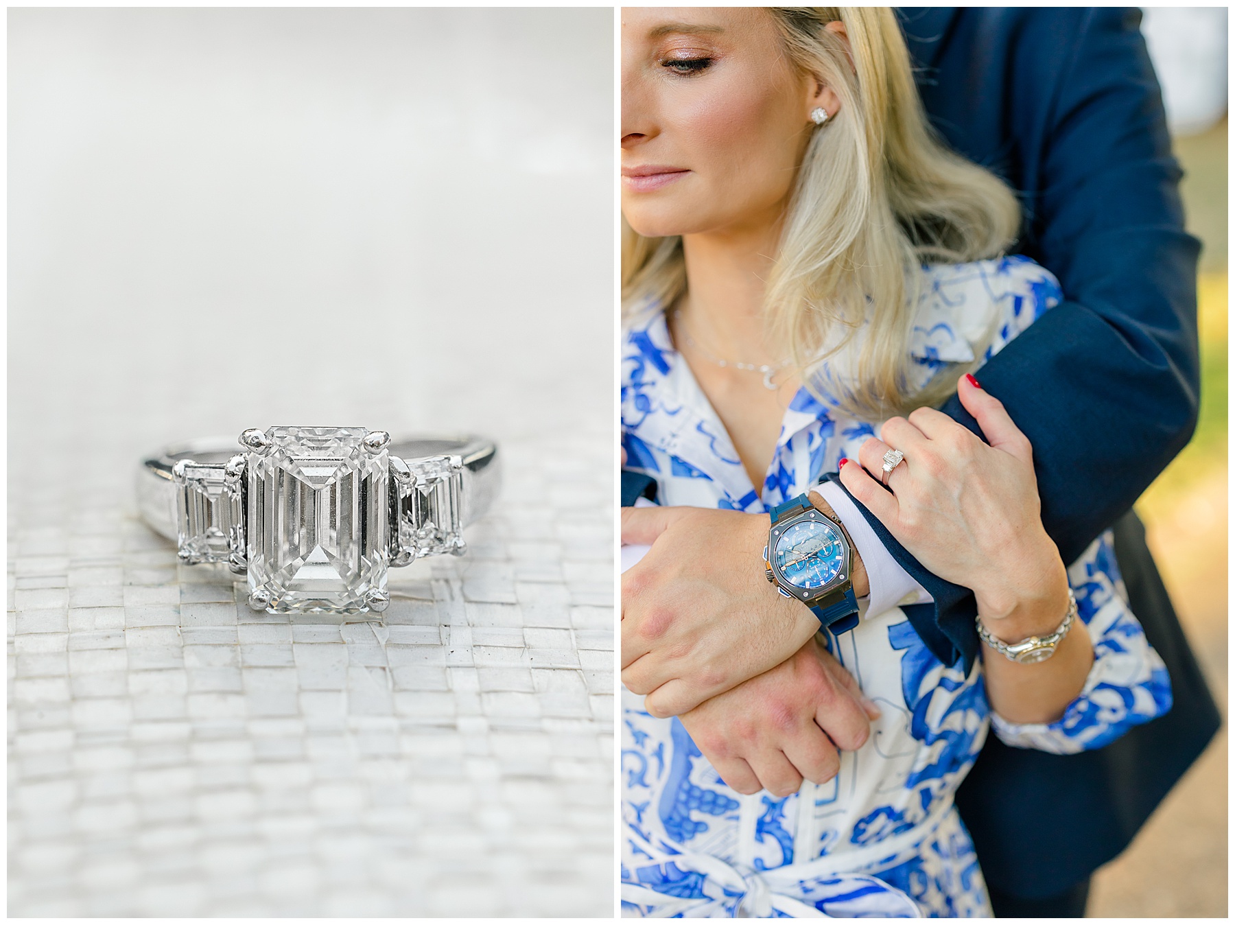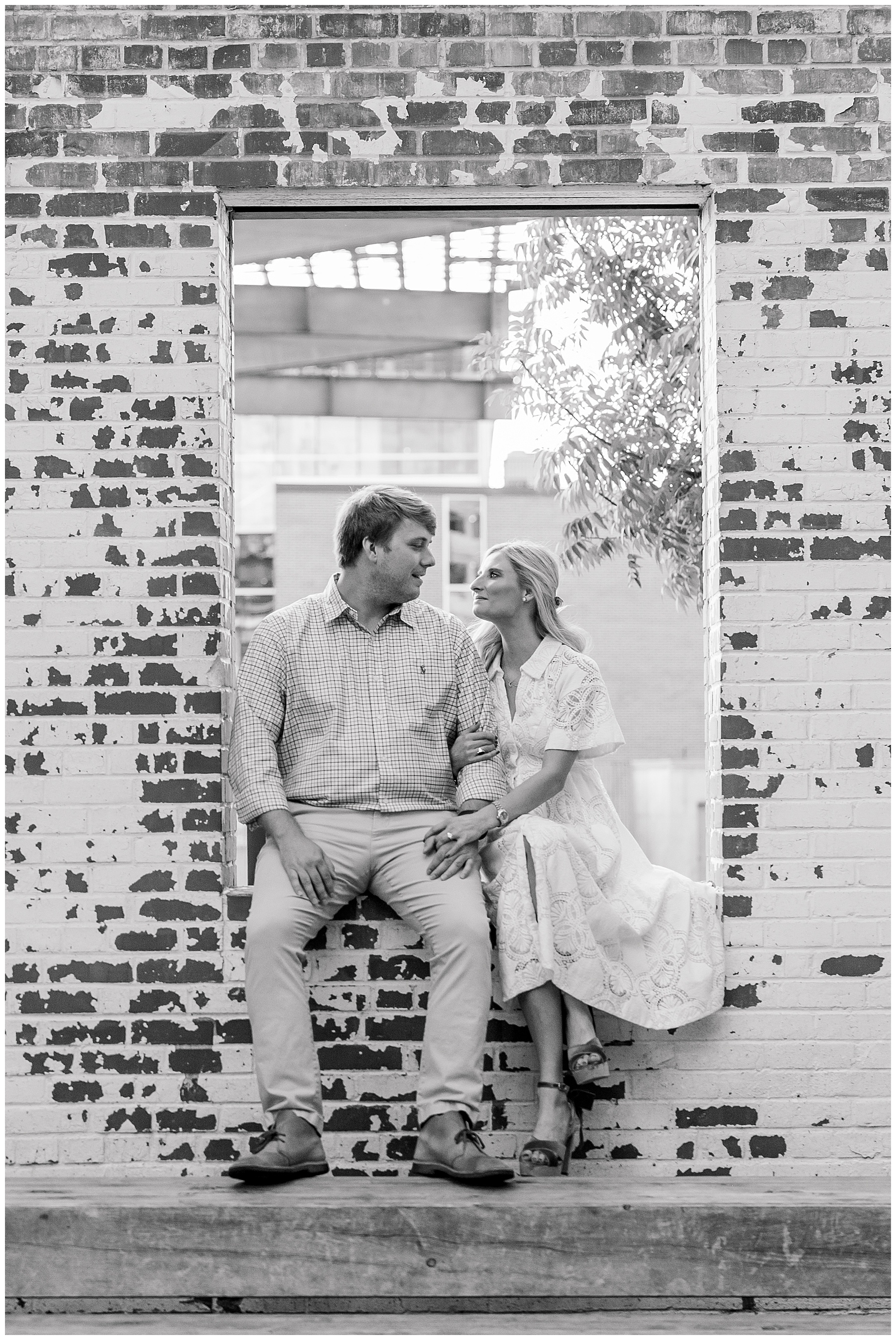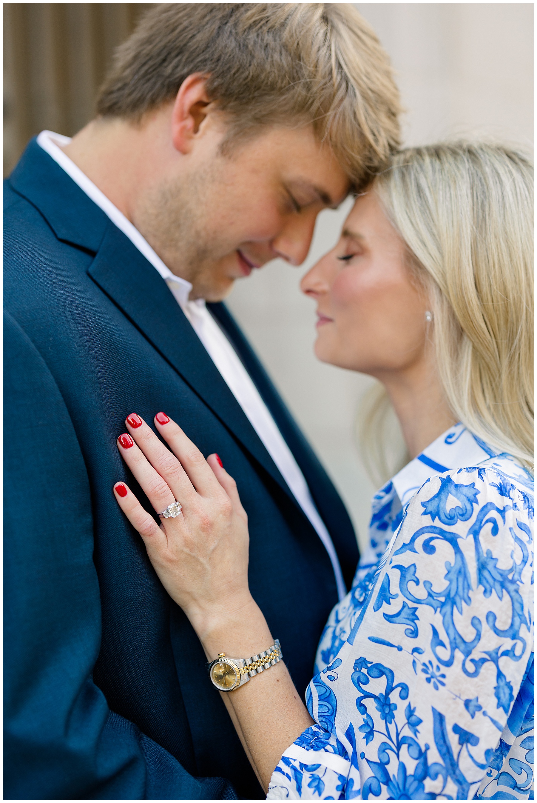 Baker & Robert showed up looking so stylish and I was pumped from the start! Baker’s blue & white dress was so unique, southern, and I loved the bow at the waist. Speaking of bows – check out her blue heels (that ROBERT bought her! Brownie points!!!) in her second outfit that she wore! They had the cutest bows on the back with little rhinestones! So pretty that these blue heels just might be my favorite engagement session shoes EVER!!!!! I also loved that Robert wore blue socks with soccer balls on them – a nod to his college soccer career! I love when couples choose such personal and intentional details to include for their sessions. :)