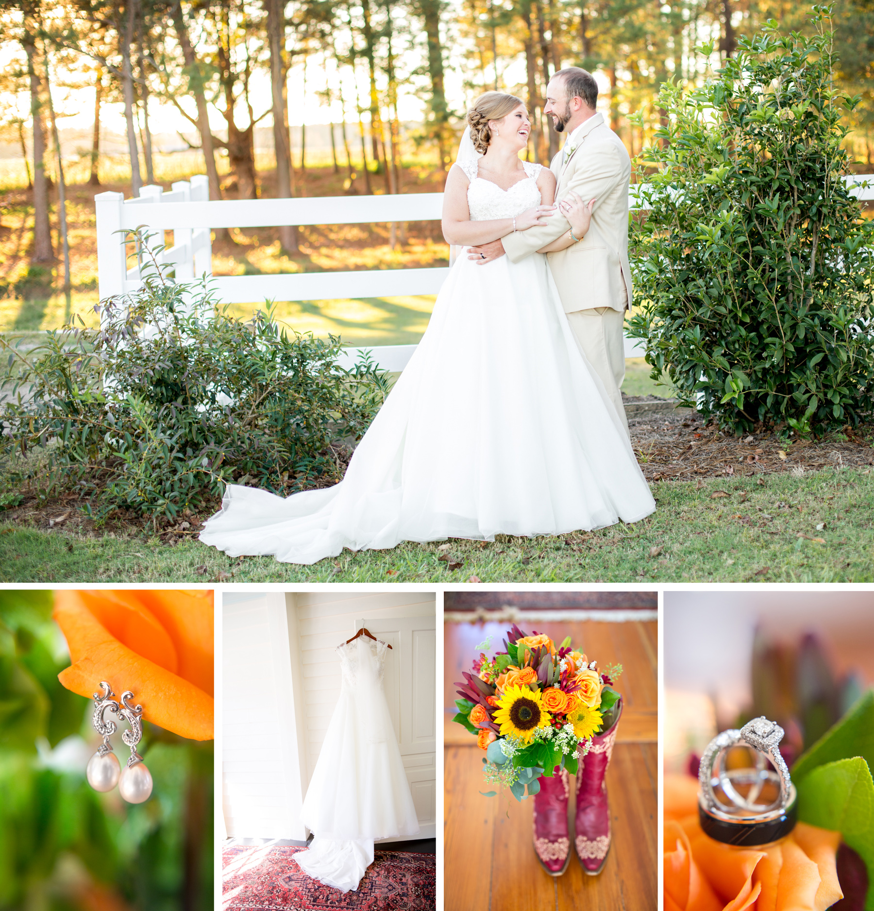 Florist: Greene County Florist – Chelsea Barrow | Makeup Artist: Glam by Ashley | Hairstylist: Fharren Taylor | Director: Tanya Martin | DJ: Earl Barnhill | Wedding & Reception Venue: May Lew Farm, Farmville NC | Caterer: Debra Dail – debrasdail@gmail.com | Cake Designer: Debra Dail – debrasdail@gmail.com | Invitations / RSVP / Program Designer: Tiffany L. Johnson Graphic Design | Shoe Designer: Corral Boots | Ring Designer: Neil Lane | Dress Designer: Lillian West | Bridesmaid Dresses Designer: Bill Levkoff