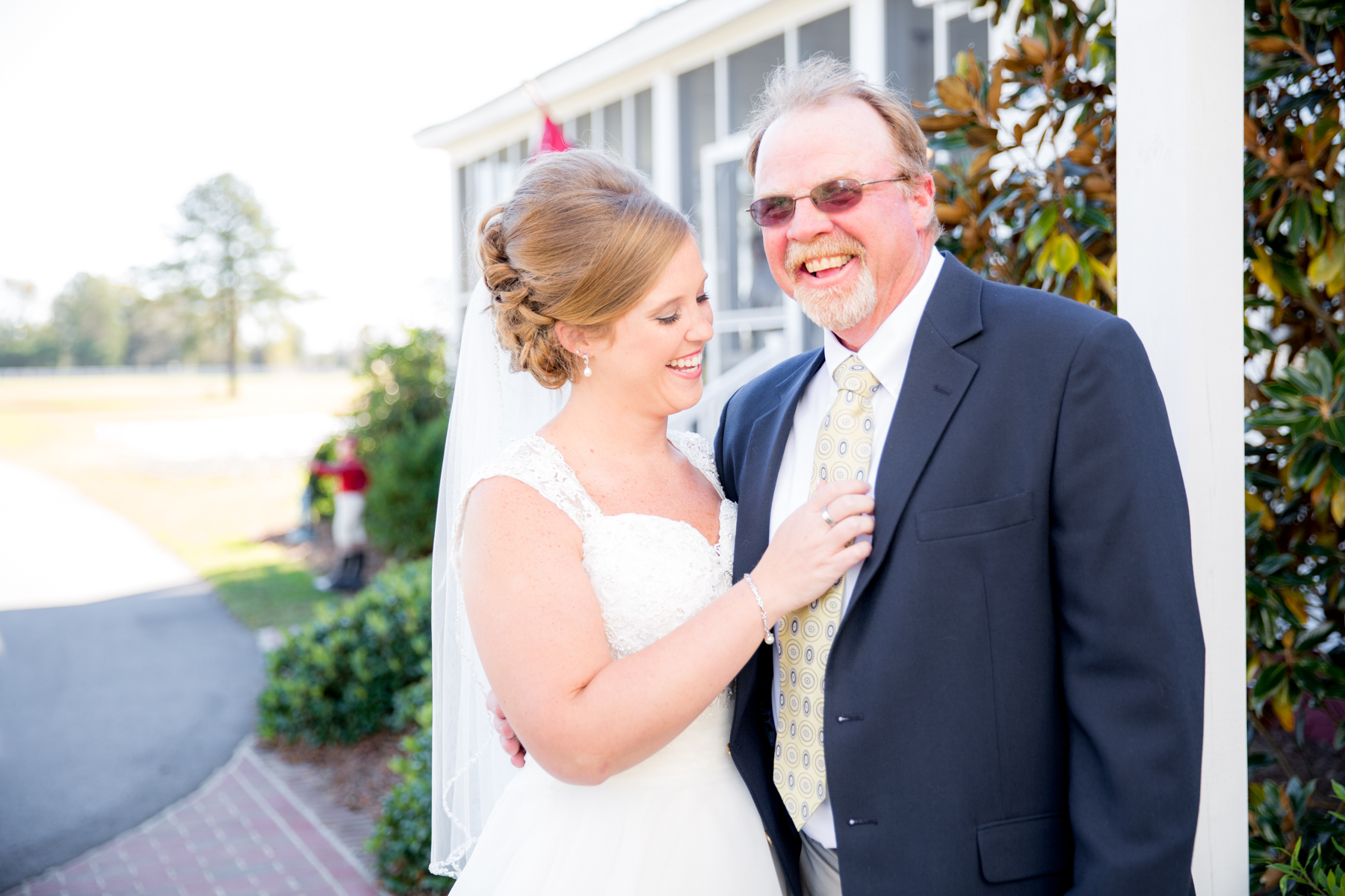 Madeline’s hairstylist created the most GORGEOUS updo, and I was slightly jealous because she has such GOOD HAIR. After Madeline finished getting ready, she had a “first look” with her daddy, and it was a really special, tender moment! Travis and Madeline didn’t see each other prior to the ceremony, but they DID hold hands around a door. Travis asked Madeline if he could take a “selfie” at the end of their ceremony, and she agreed!!! Most laid-back bride ever!!!