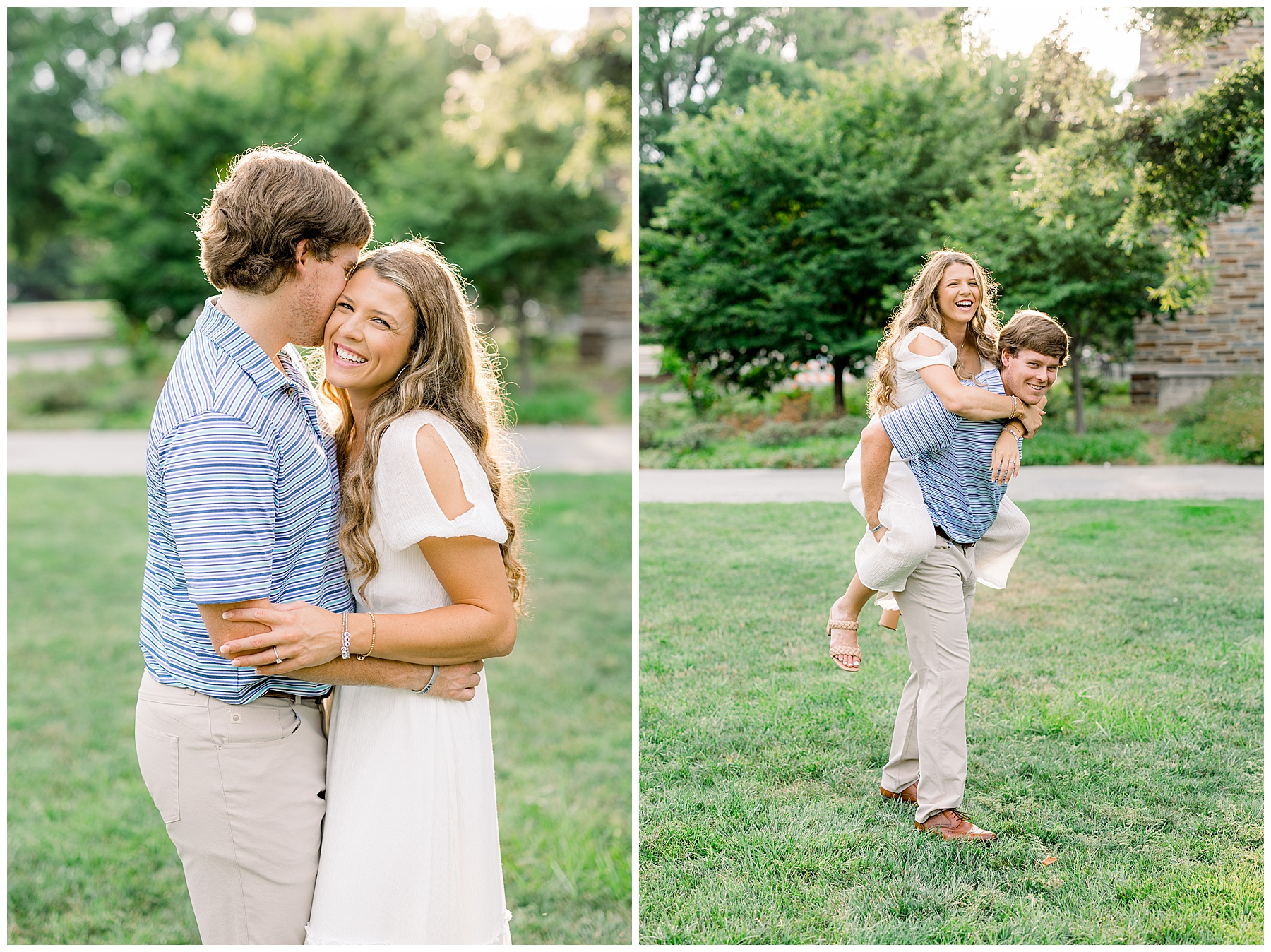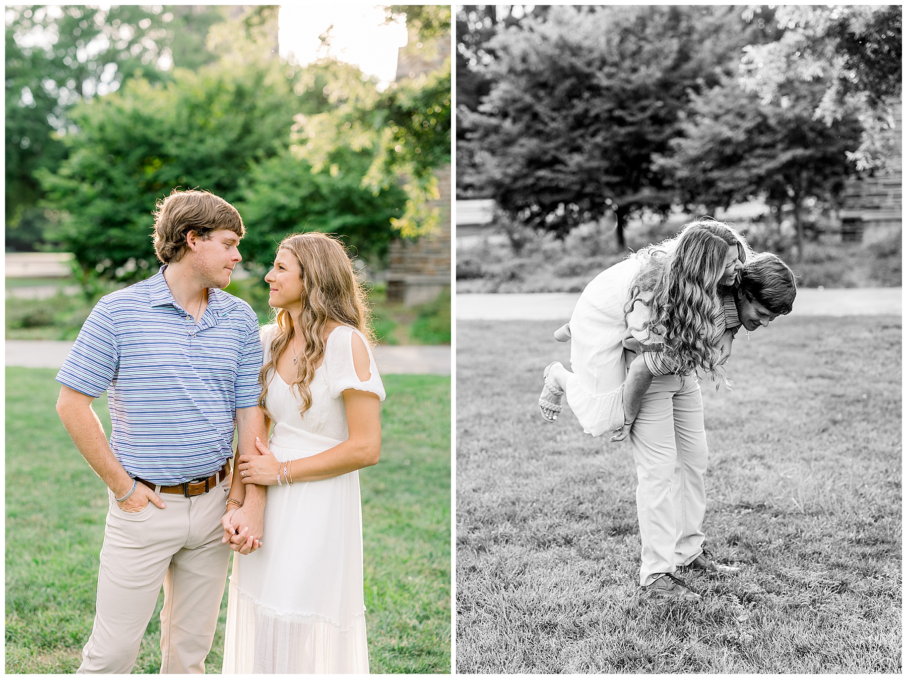 Since Bella & Walker are BOTH collegiate athletes with spring seasons (and Bella’s softball team even making it to the Super Regional’s this year) – we waited until summertime to photograph their Engagement Session!! Phillip and I were so excited to finally photograph this beautiful couple after almost 9 whole months of waiting! All week, our session day was forecasting to be the HOTTEST day of the whole week in the mid-90º’s, and I was worried about them being miserable out in the sun. Then, we showed up for their session and it ended up being overcast, a little breeze, and in the high-80º’s instead!!! It was soooo wonderful and I was thankful!!! :)