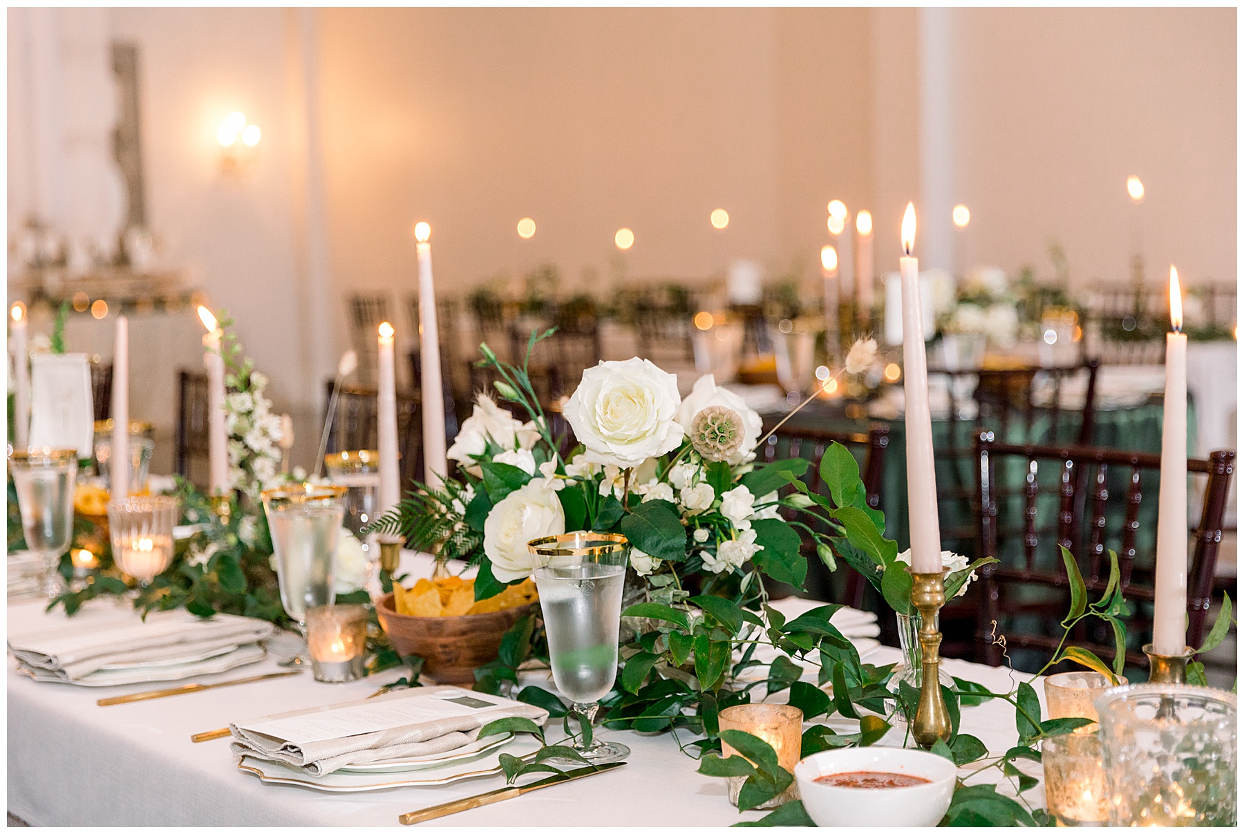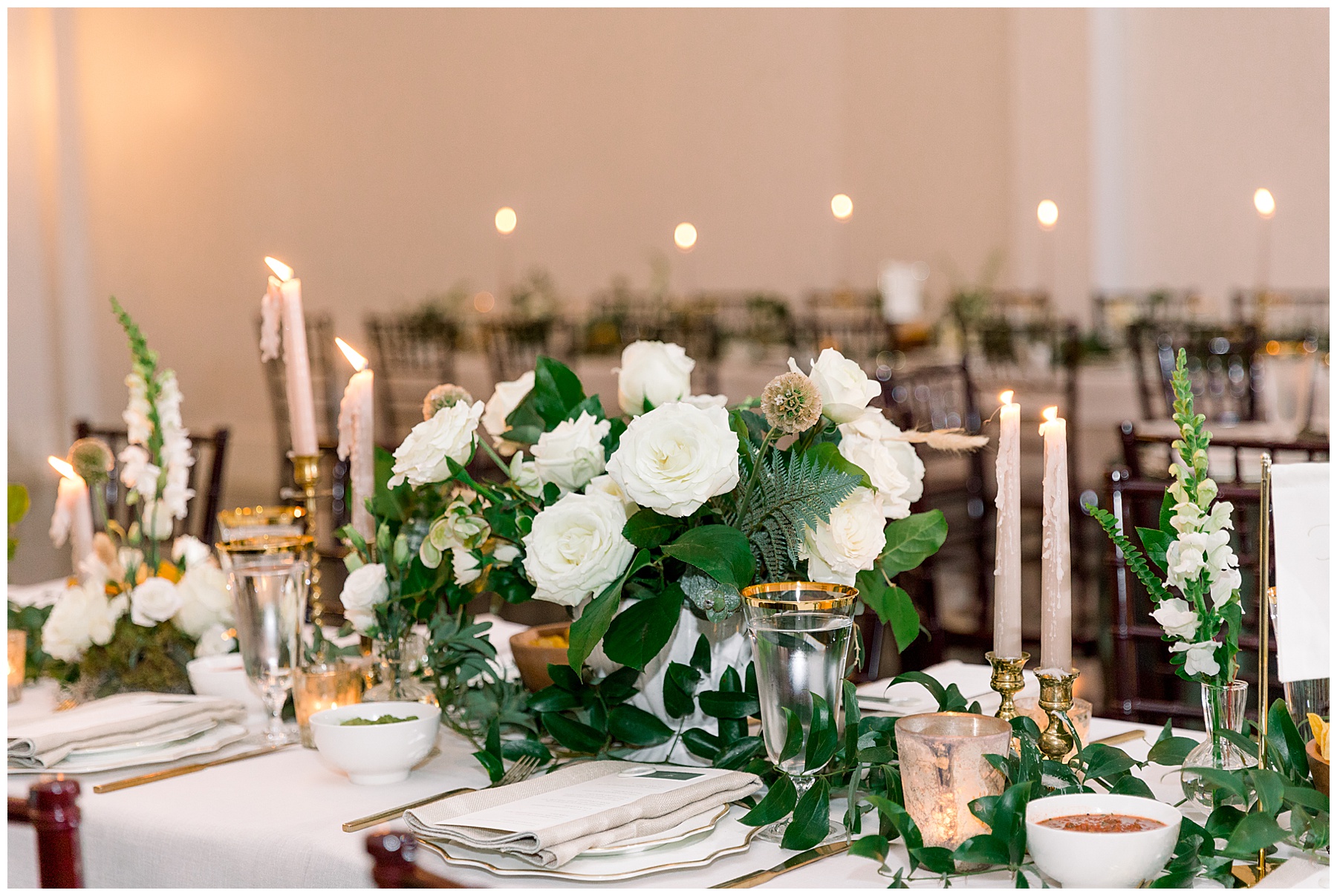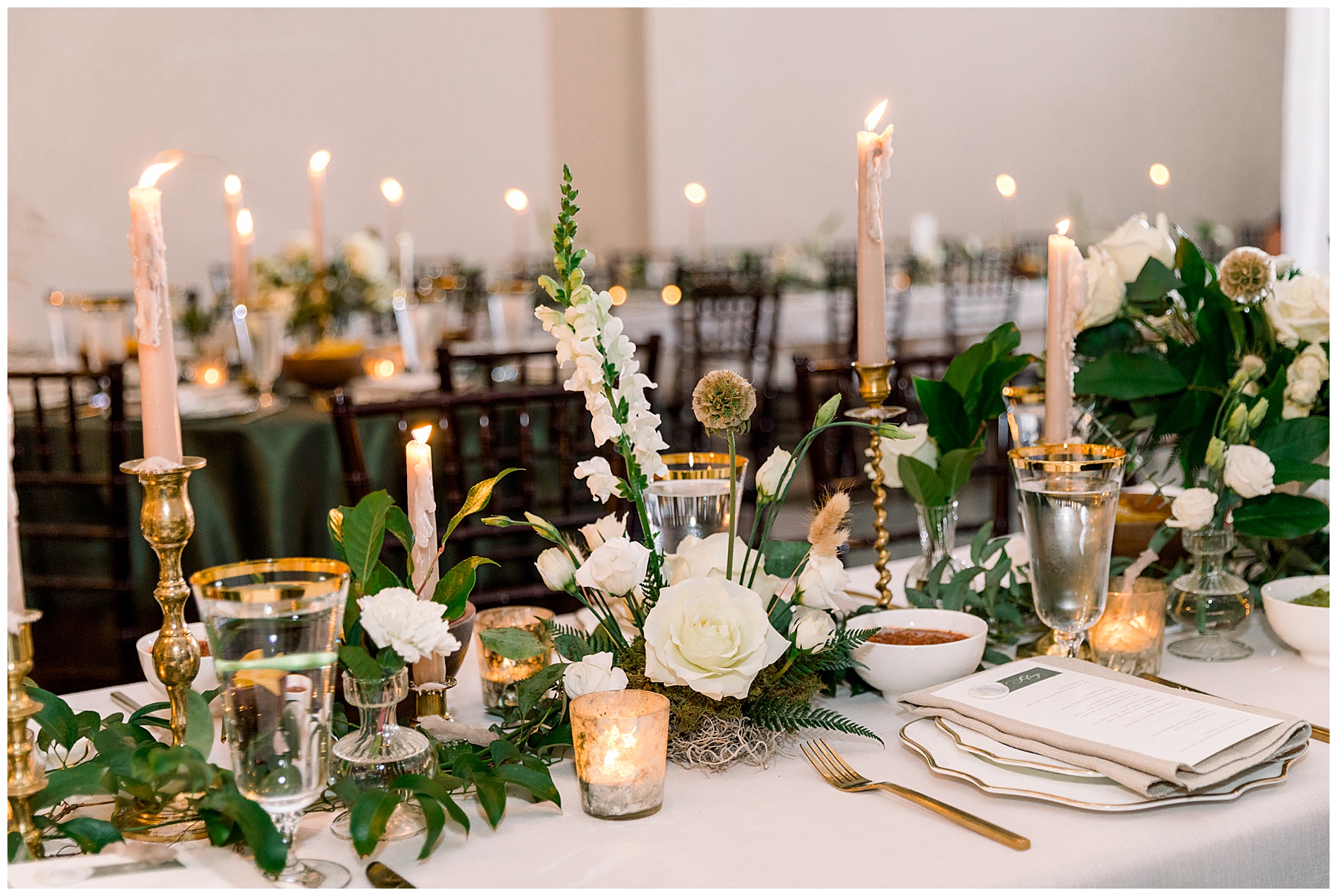 We got to photograph the carriage house reception details as candles were flickering, and the sun was setting. It looked absolutely MAGICAL in there – so many textures, florals, and vessels to create such visual interest! Beverly had hoped for a “woodland/garden” theme – and WOW it was exactly that.