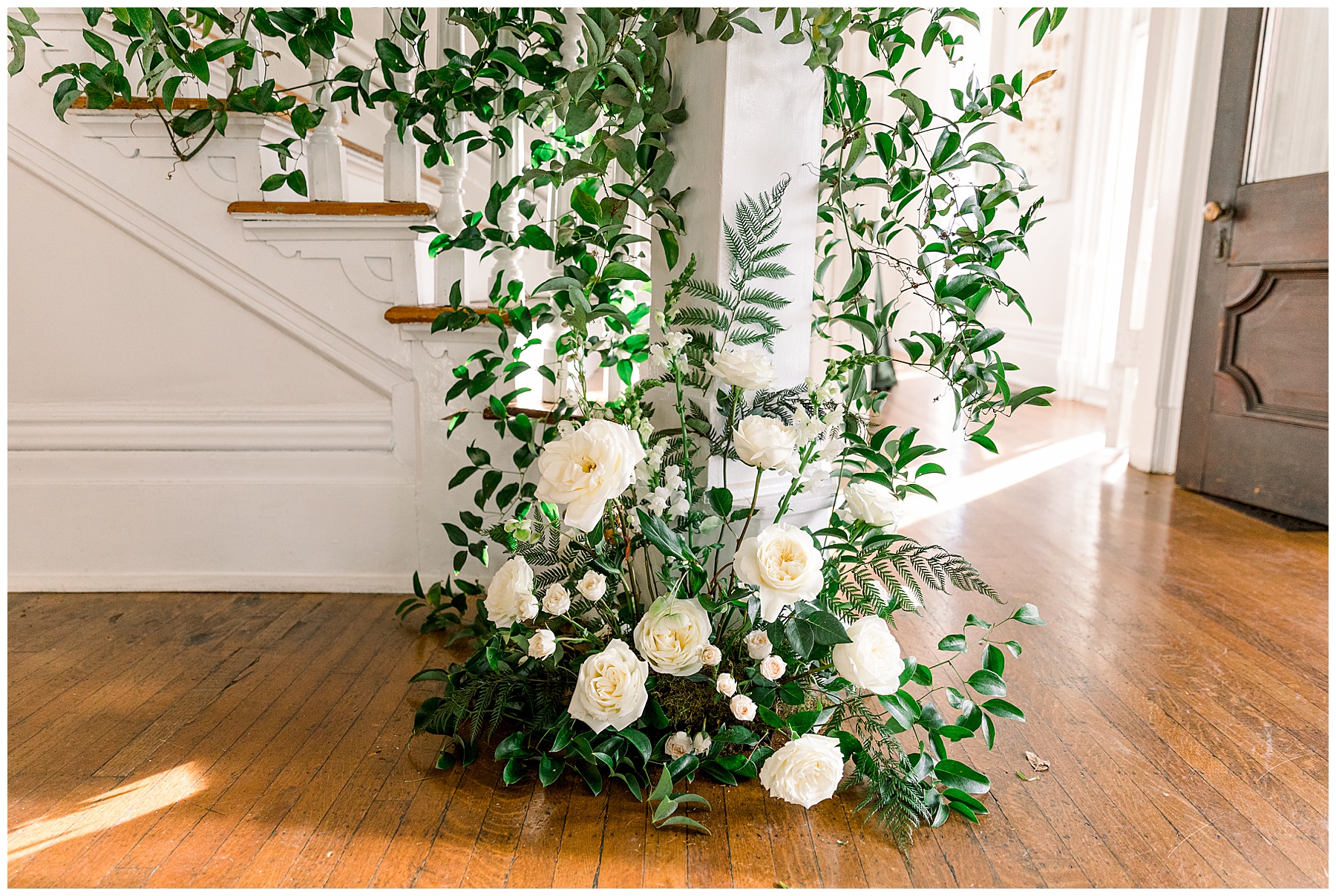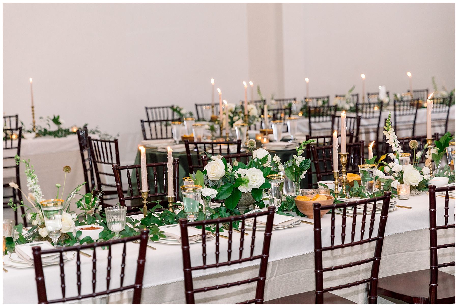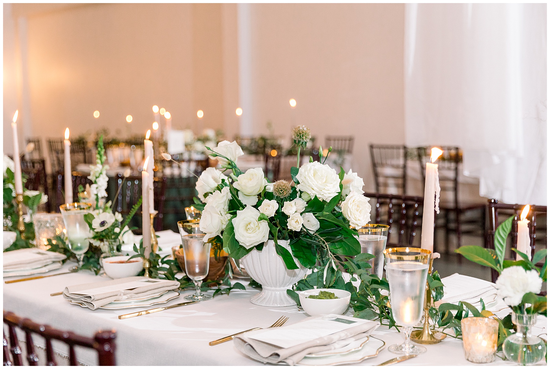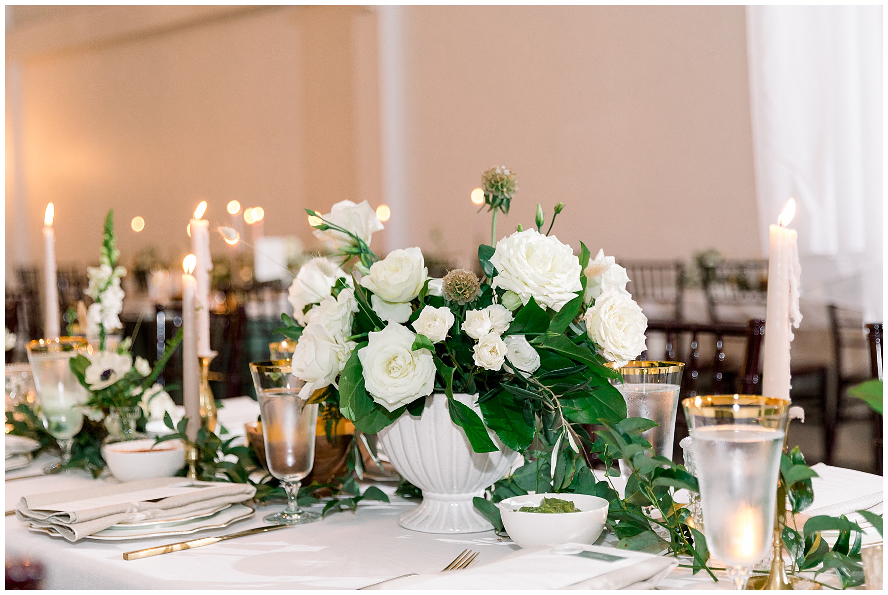 We got to photograph the carriage house reception details as candles were flickering, and the sun was setting. It looked absolutely MAGICAL in there – so many textures, florals, and vessels to create such visual interest! Beverly had hoped for a “woodland/garden” theme – and WOW it was exactly that.