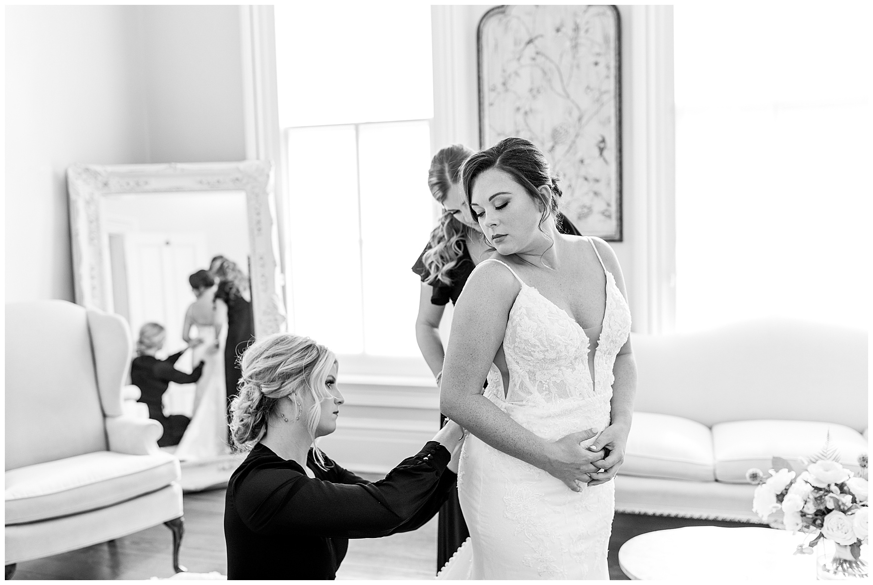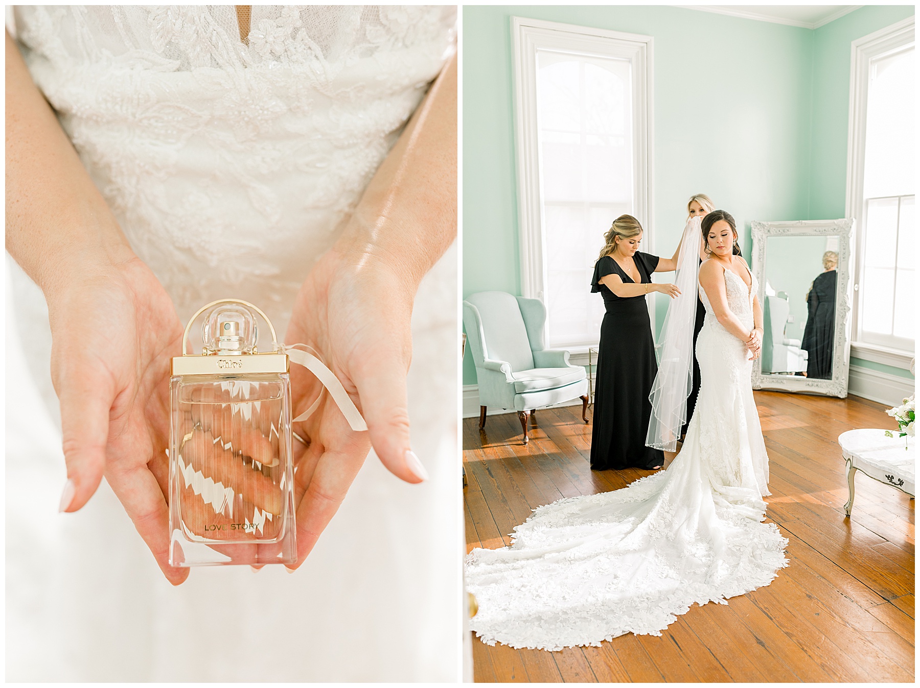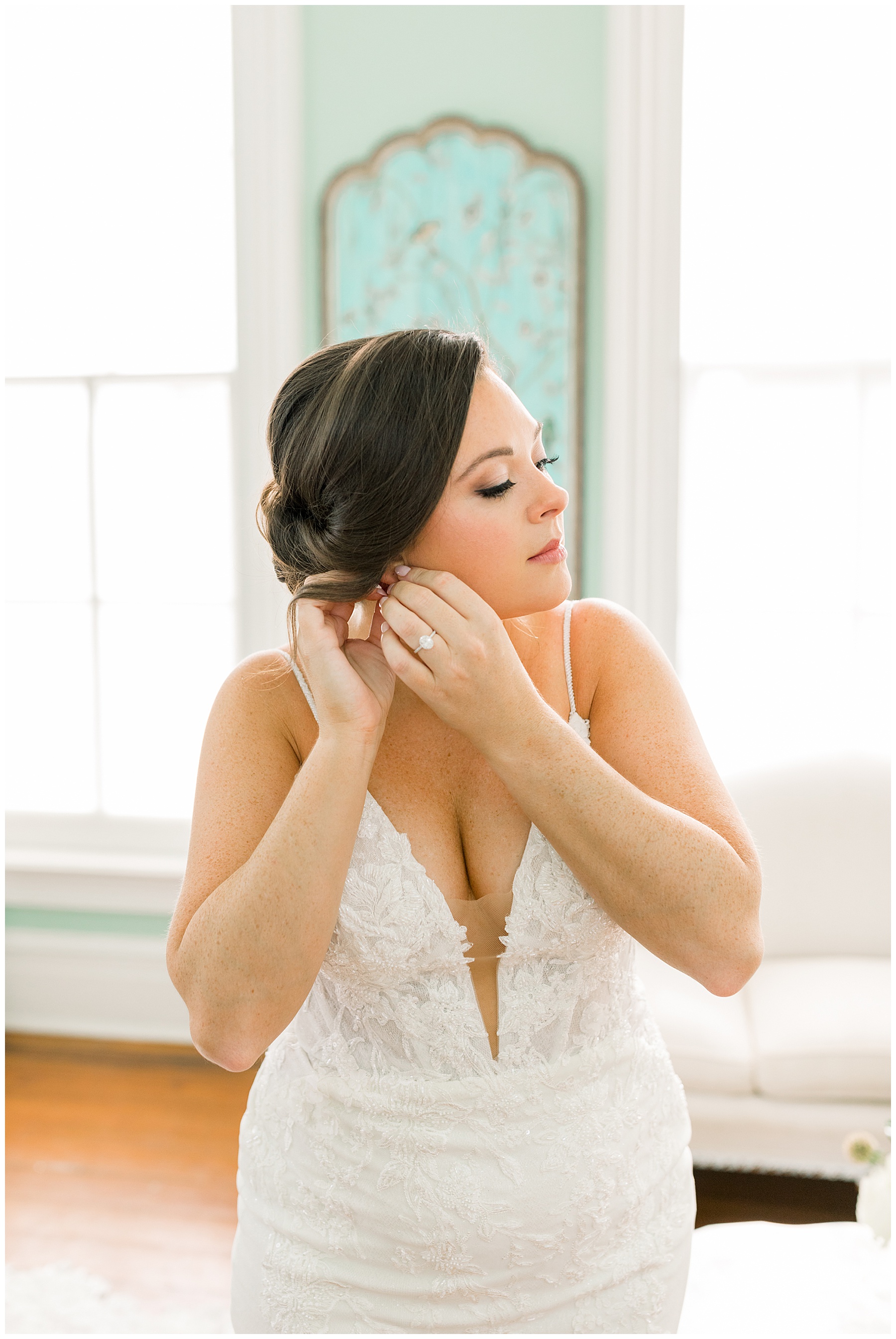 We arrived to Merrimon and all the girls were enjoying getting glam by WINK! Beverly is so thoughtful that she was sitting in her bridal PJs writing THANK YOU NOTES to people. What most people didn’t know was that her dad was sent to the hospital the night before – and wouldn’t be able to make it to Beverly’s wedding day. The worst news, yet here Beverly was – holding it together and thinking of OTHERS during that moment.
