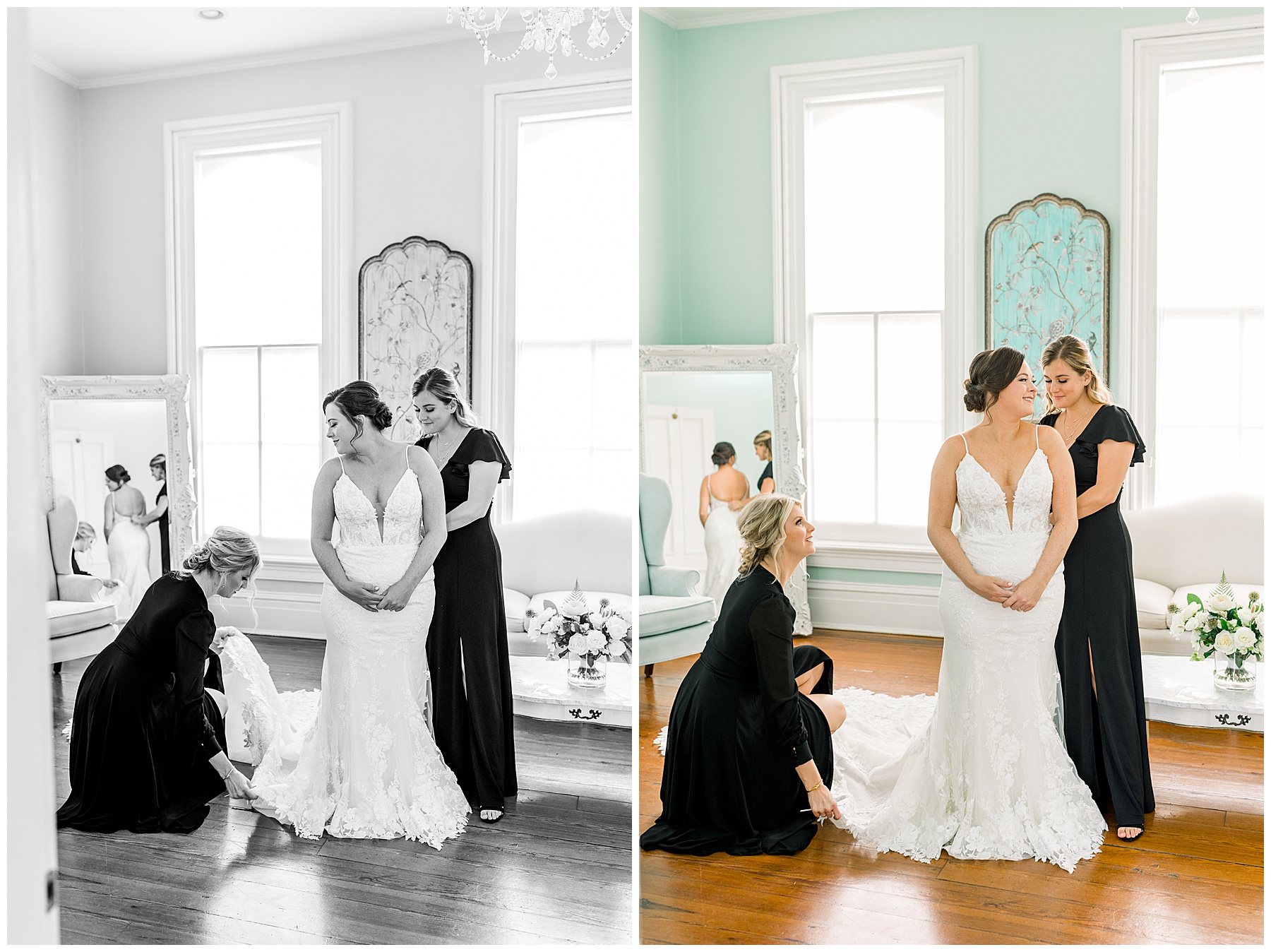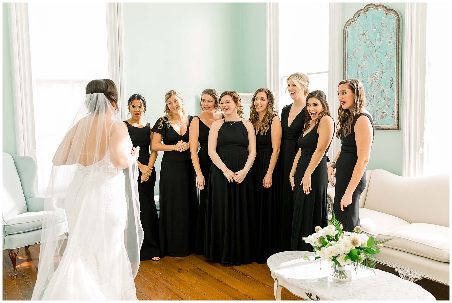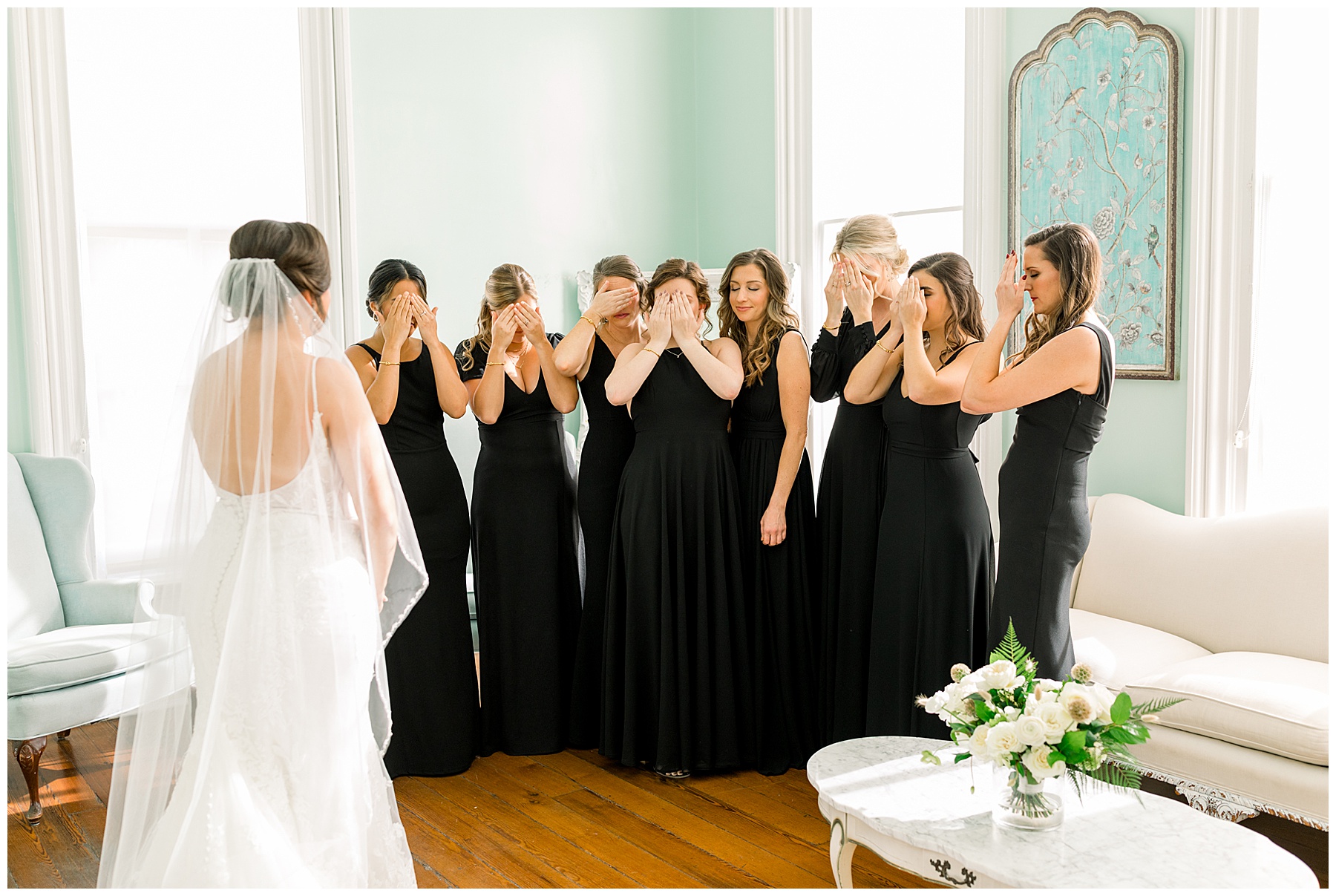 We started off our day by photographing their INSANELY beautiful details. That wedding invitation suite is hands down one of my FAVORITES EVER – so unique!!! Knowing how much Beverly loves black, I tried out something super different and photographed their suite on black velvet! I love how they turned out. Next it was time for Beverly to get ready! Beverly’s two MOH’s were soooo helpful the whole day, and made my job easier! We had a sweet First Look with the bridesmaids, and then it was time for Beverly & Jarred to finally see each other!