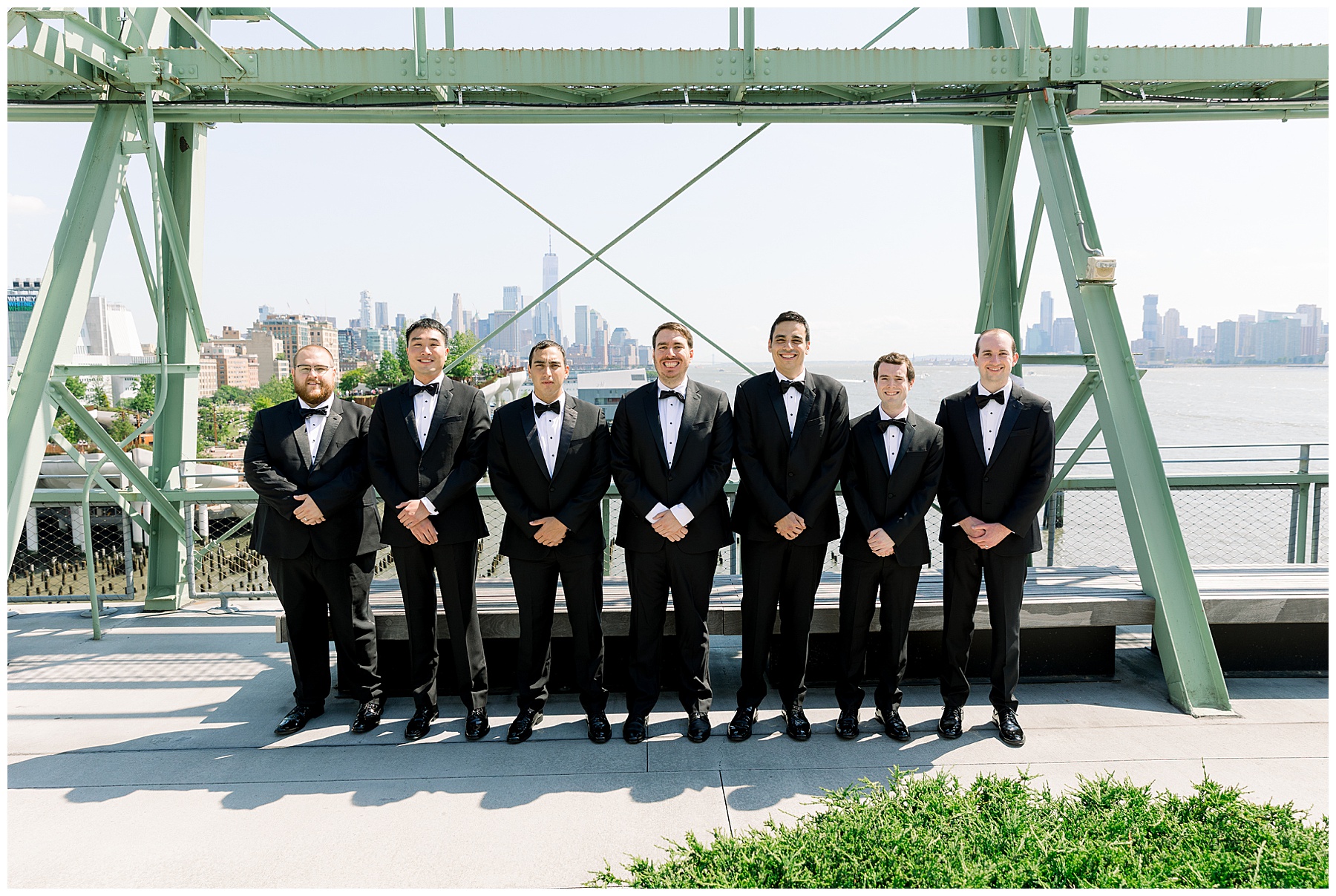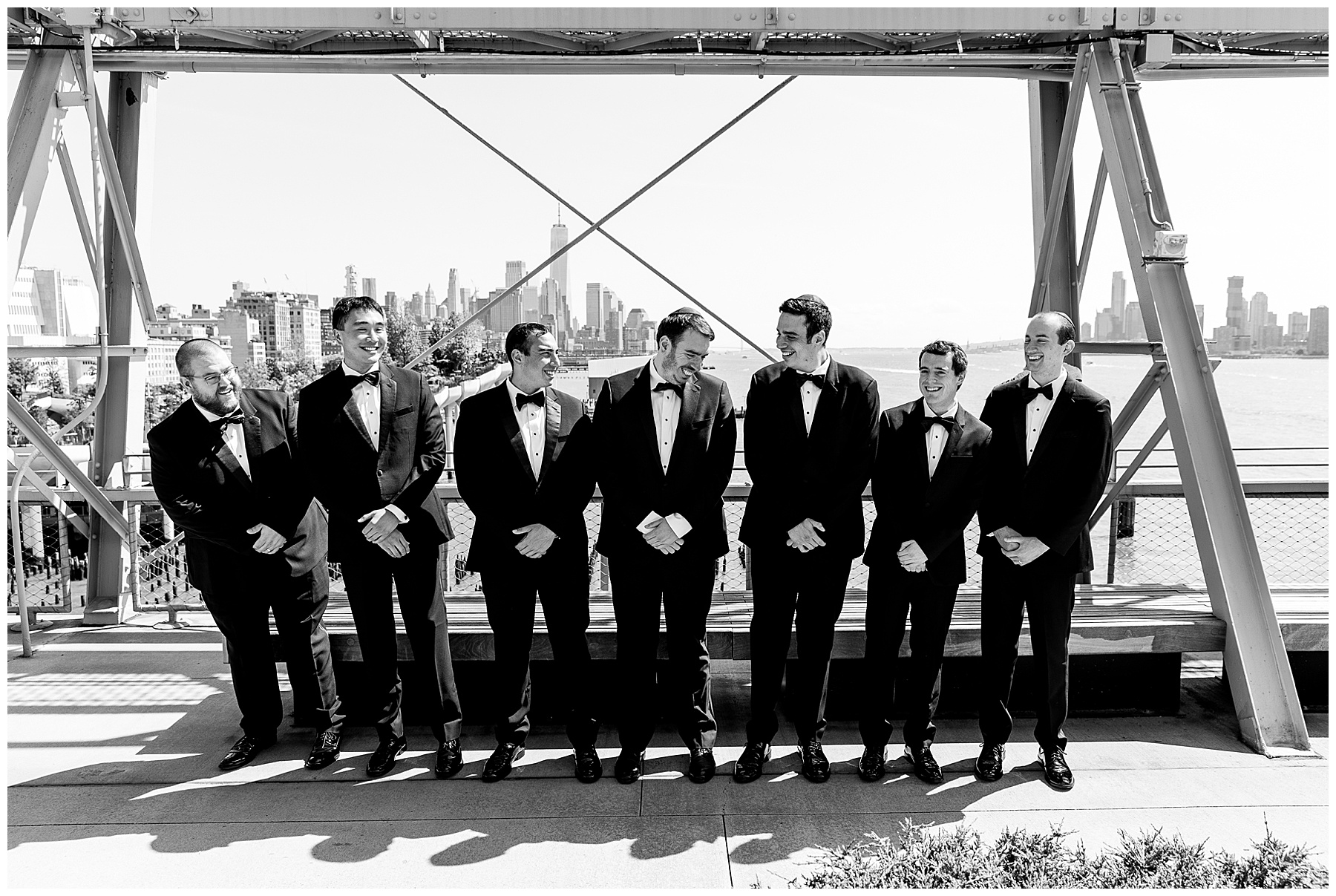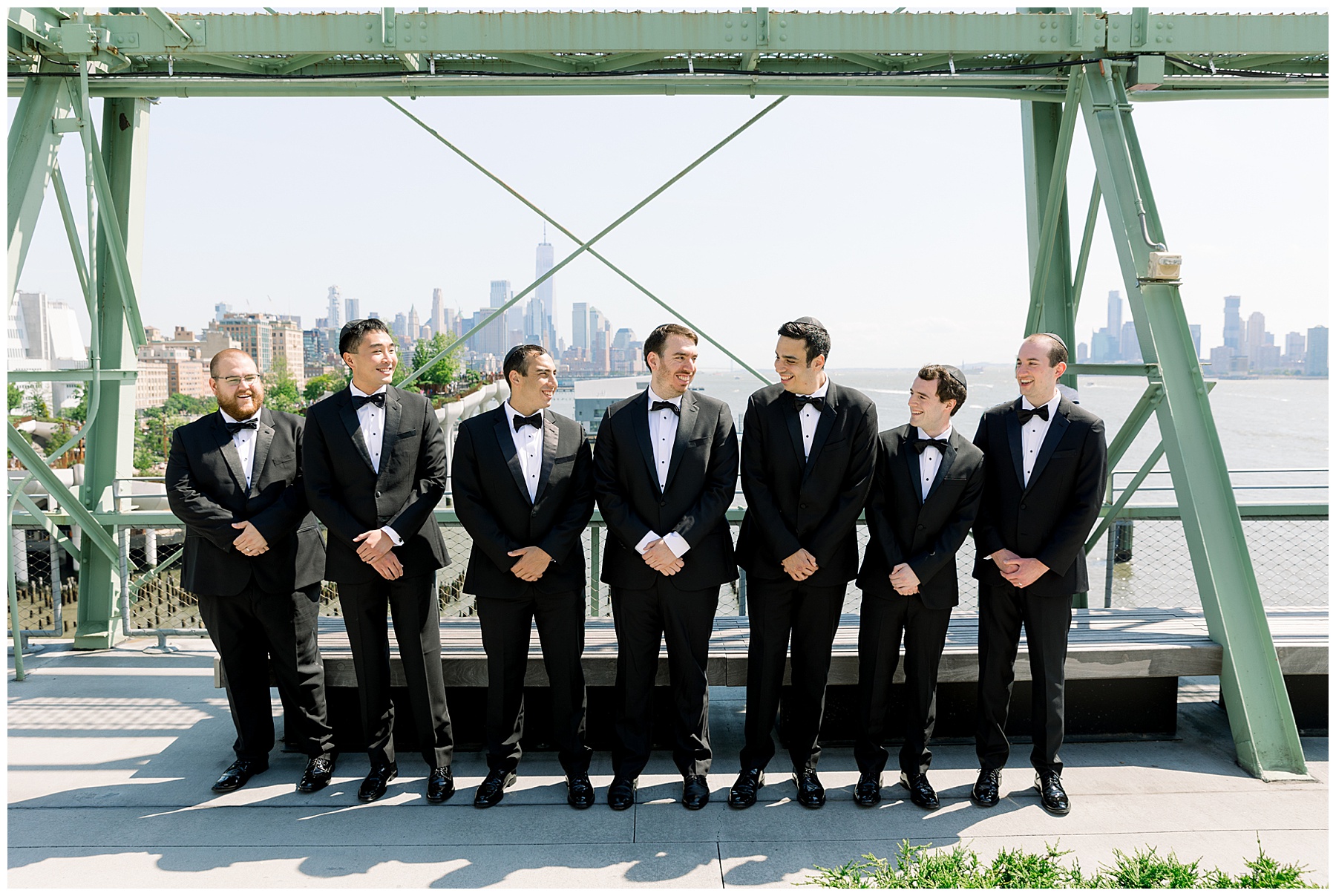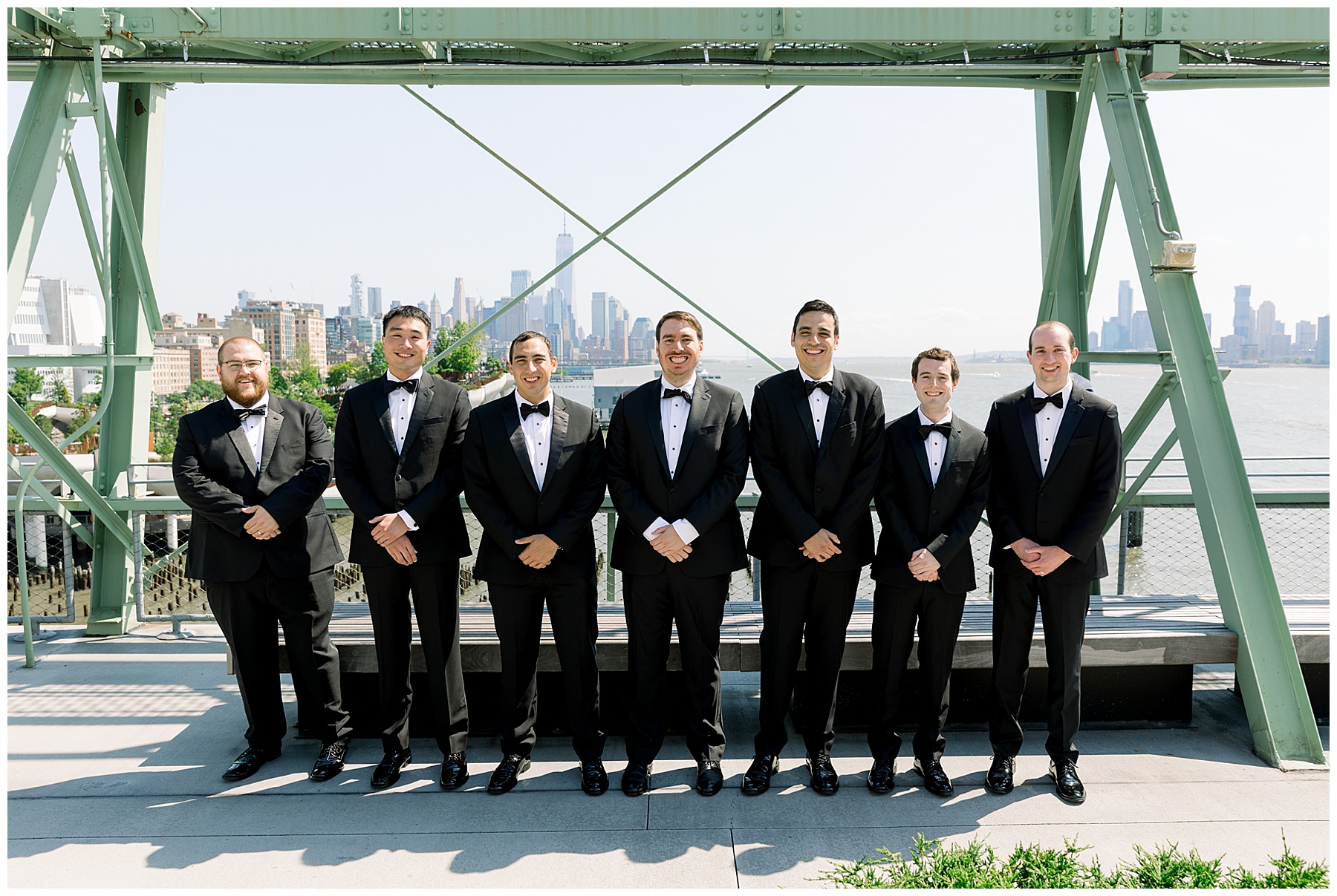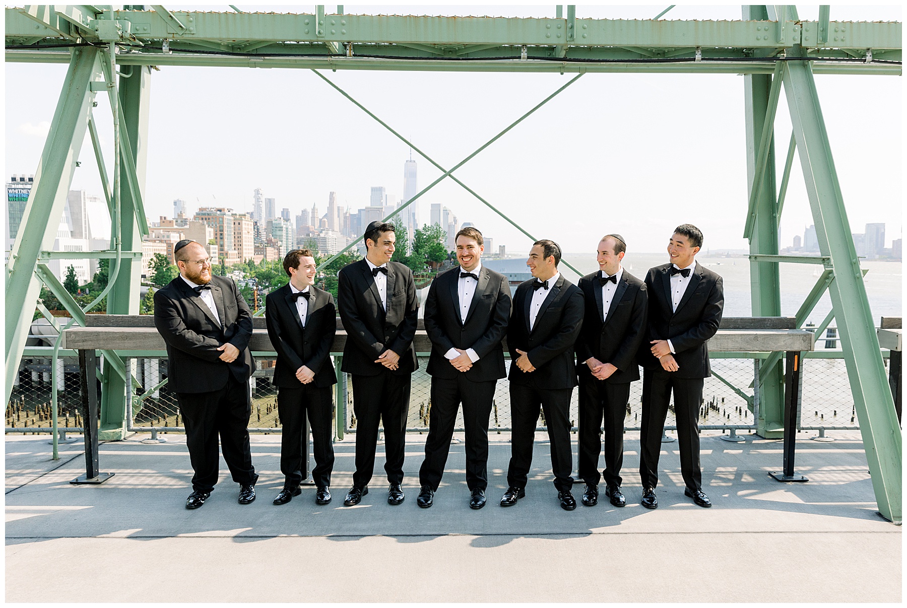 As they exited the ceremony to go upstairs for their ketubah signing, we got some of my FAVORITE portraits of the whole day as they went upstairs against the iconic wine bottle wall! I just LOVE how those turned out! After the ketubah signing, we went outside to photograph all their portraits with the beautiful Hudson River behind them. It was a really hot day in the sun, so Carleigh & Ian were great sports to sweat it out with us! (Especially because Carleigh’s dress literally weighs 30 pounds!) We were so fortunate to find a spot without tourists in the background, with such a cool view for their photos! LOVED it!!! (Plus they got congratulated like 198652 times by people walking by – so fun!)