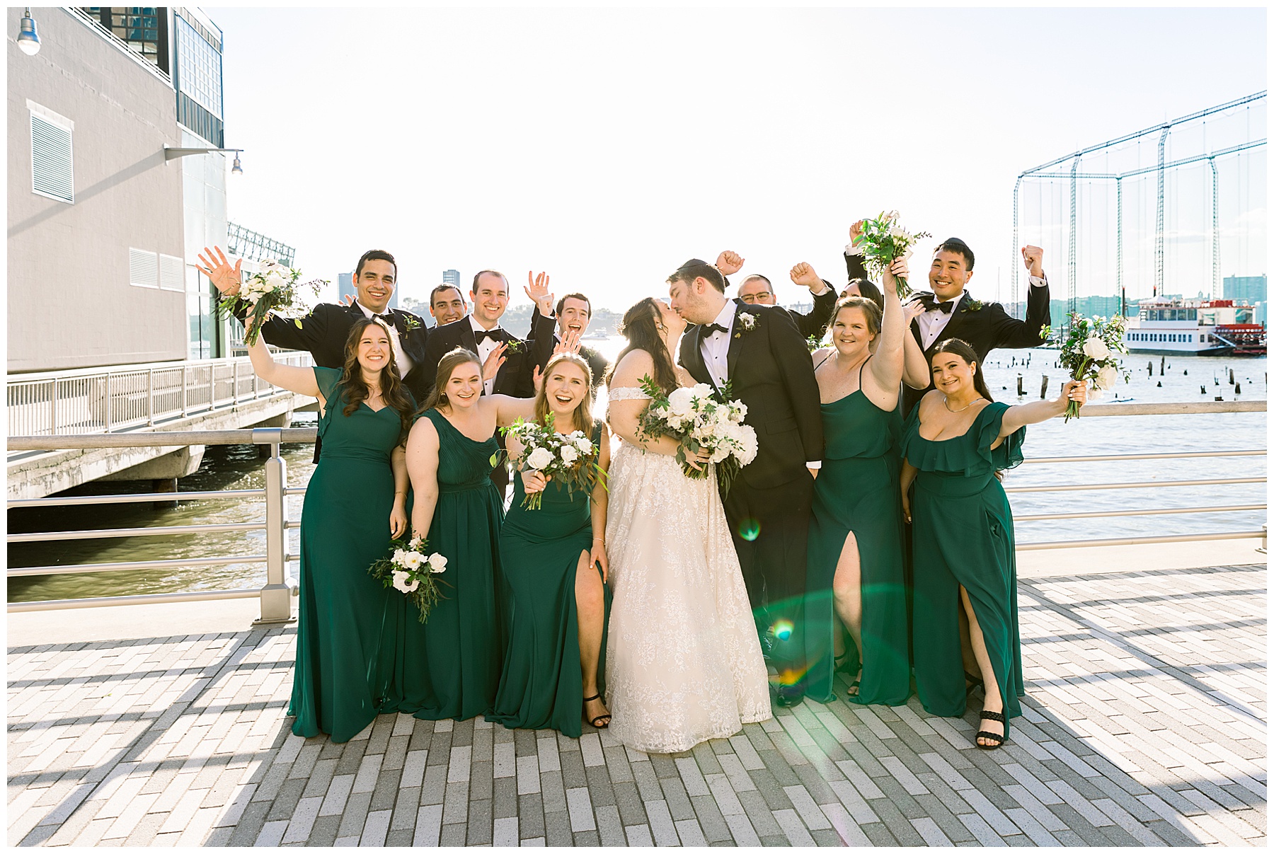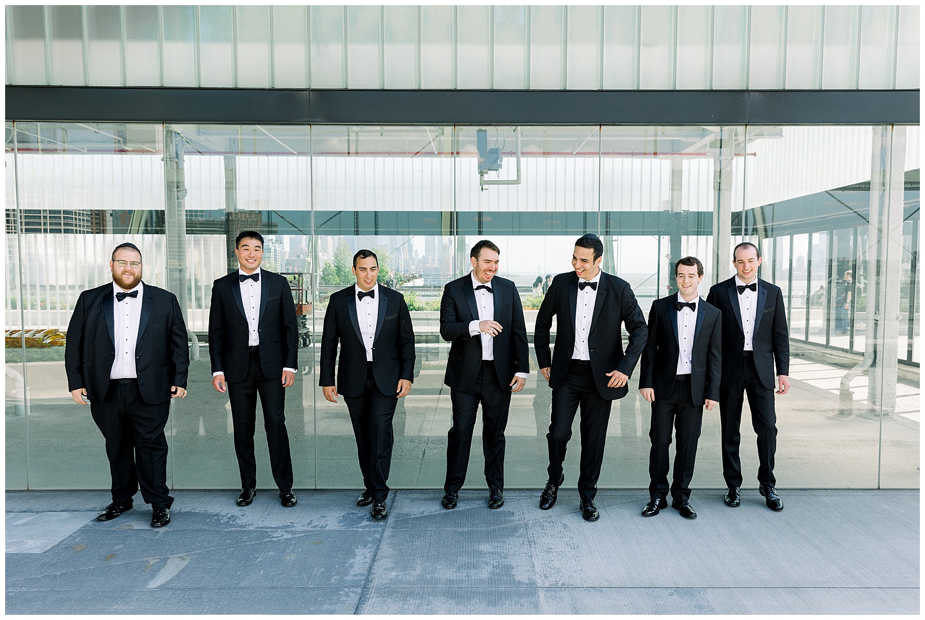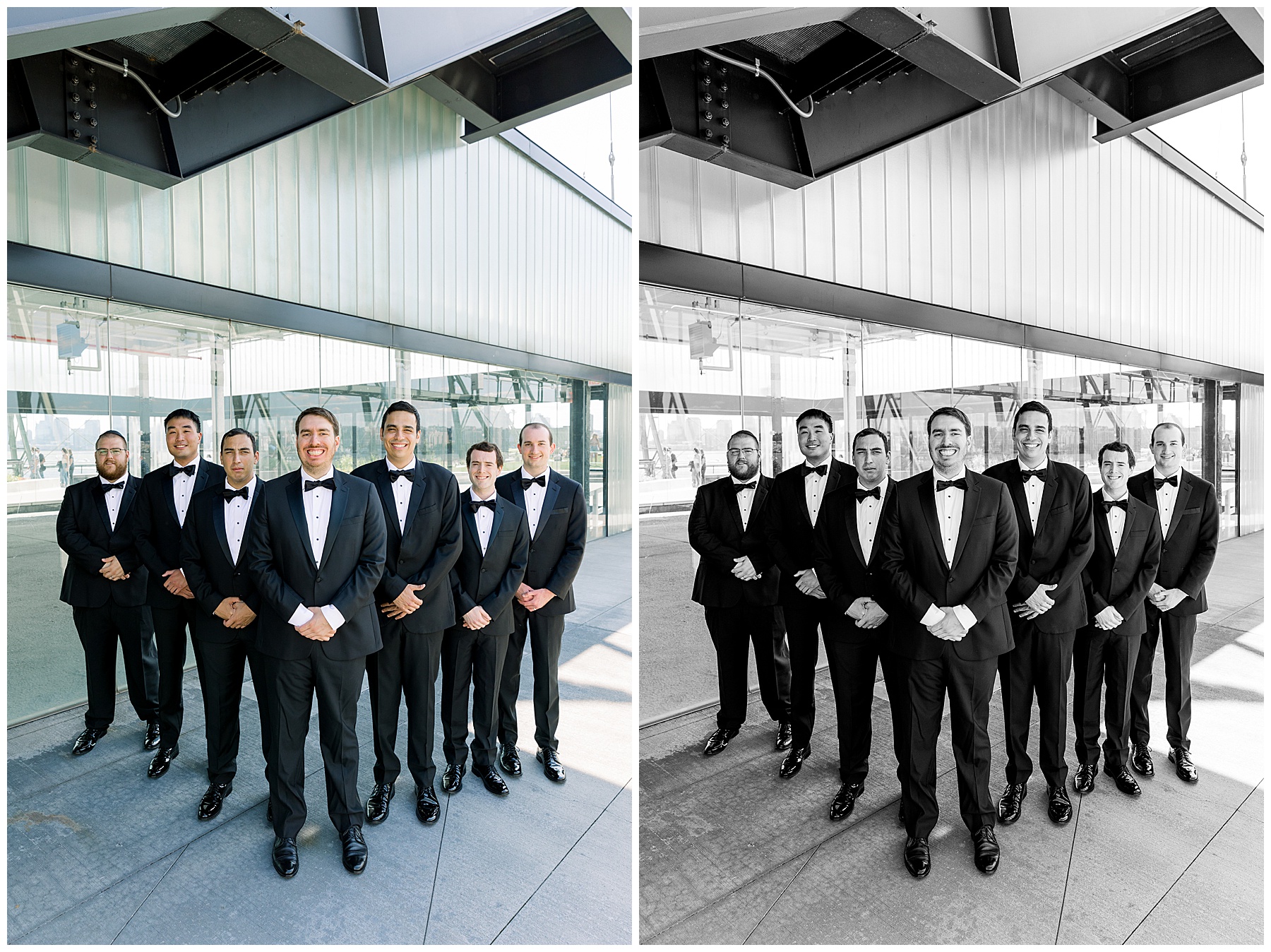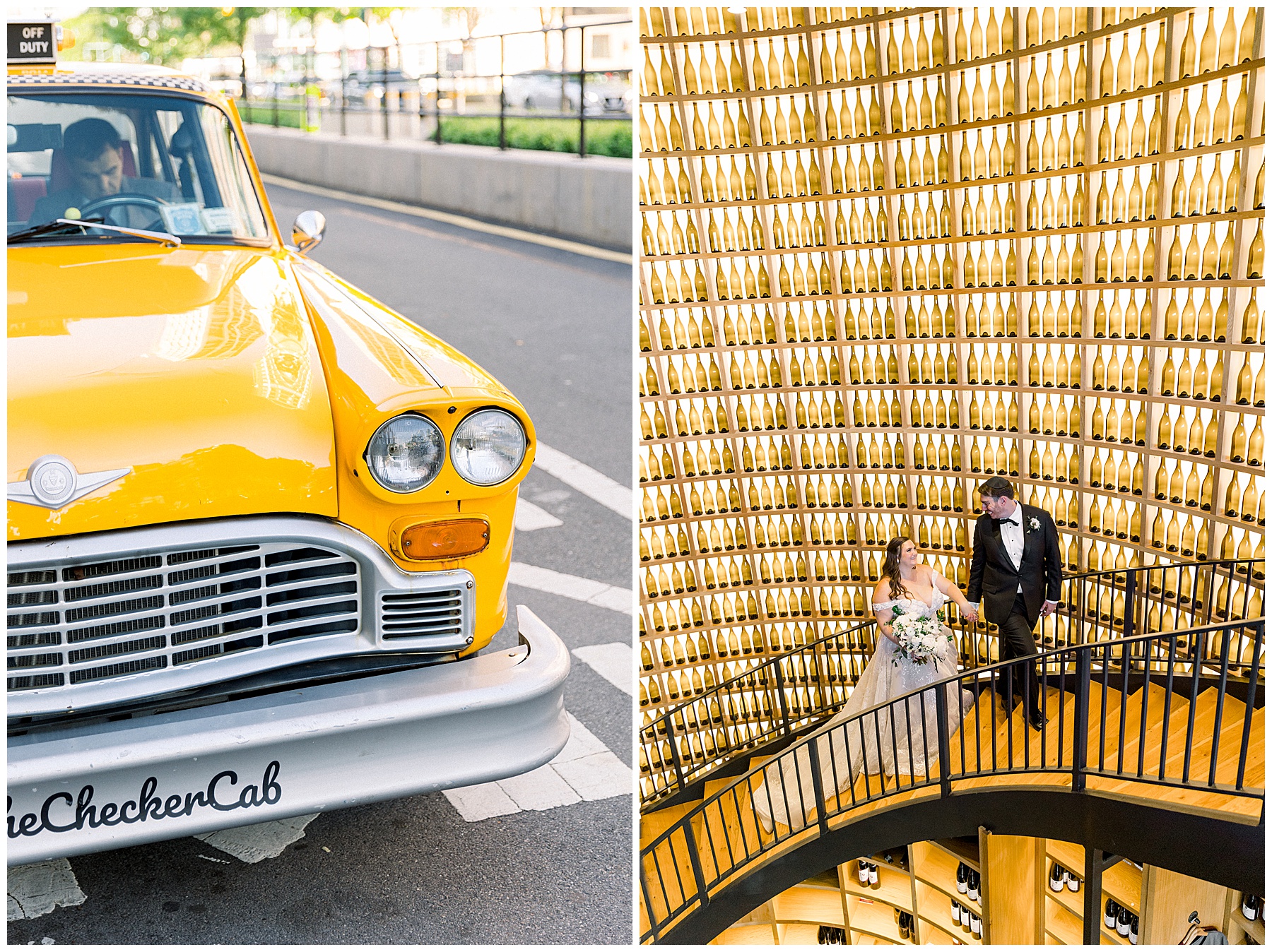 As they exited the ceremony to go upstairs for their ketubah signing, we got some of my FAVORITE portraits of the whole day as they went upstairs against the iconic wine bottle wall! I just LOVE how those turned out! After the ketubah signing, we went outside to photograph all their portraits with the beautiful Hudson River behind them. It was a really hot day in the sun, so Carleigh & Ian were great sports to sweat it out with us! (Especially because Carleigh’s dress literally weighs 30 pounds!) We were so fortunate to find a spot without tourists in the background, with such a cool view for their photos! LOVED it!!! (Plus they got congratulated like 198652 times by people walking by – so fun!)