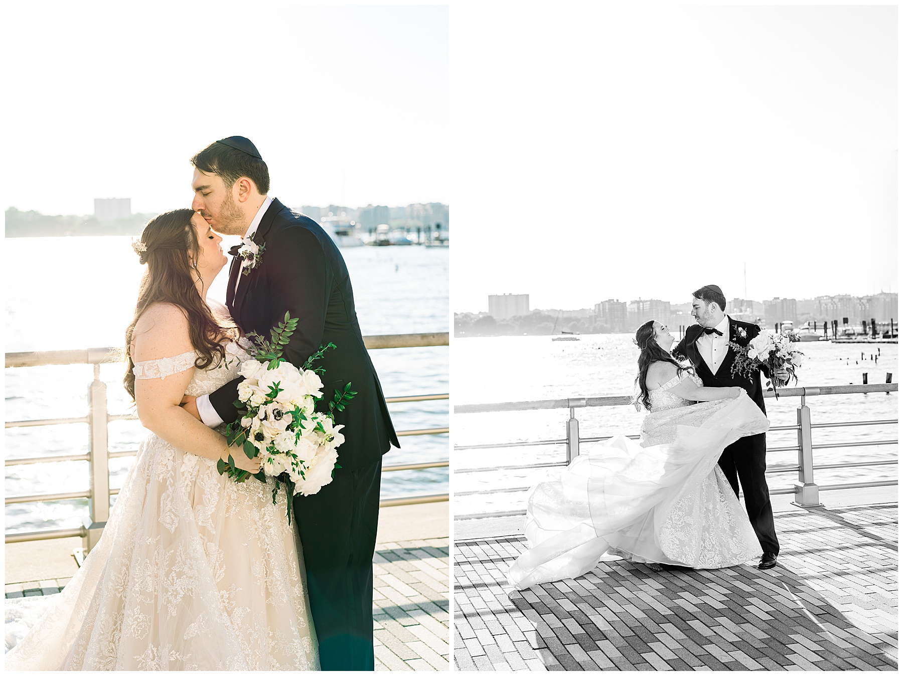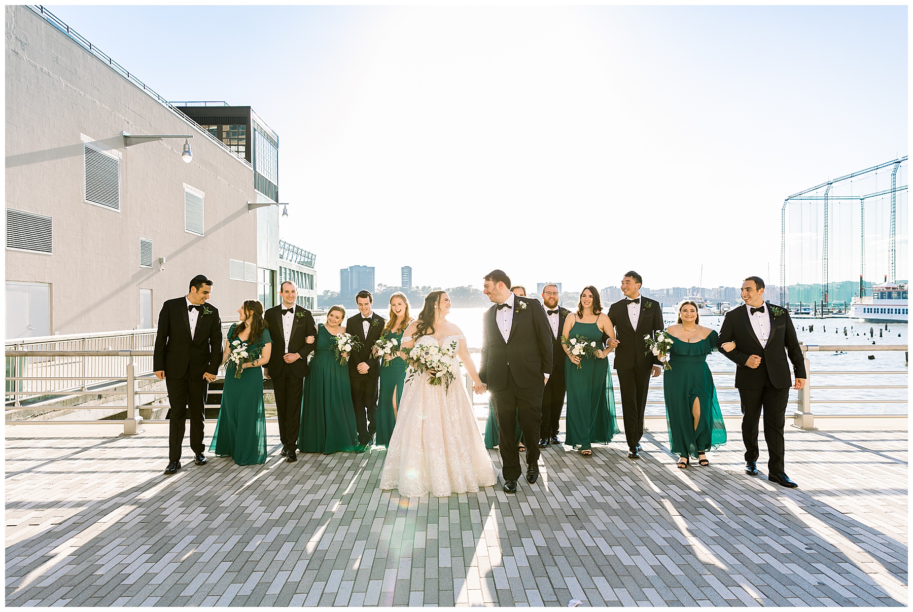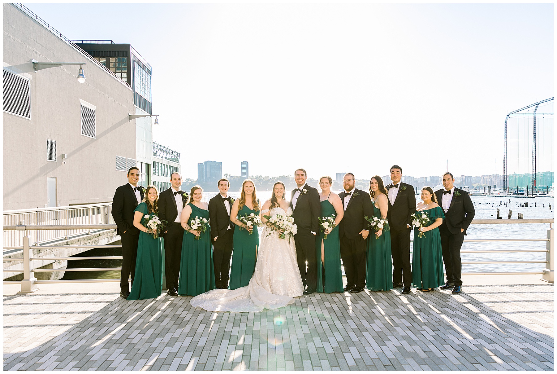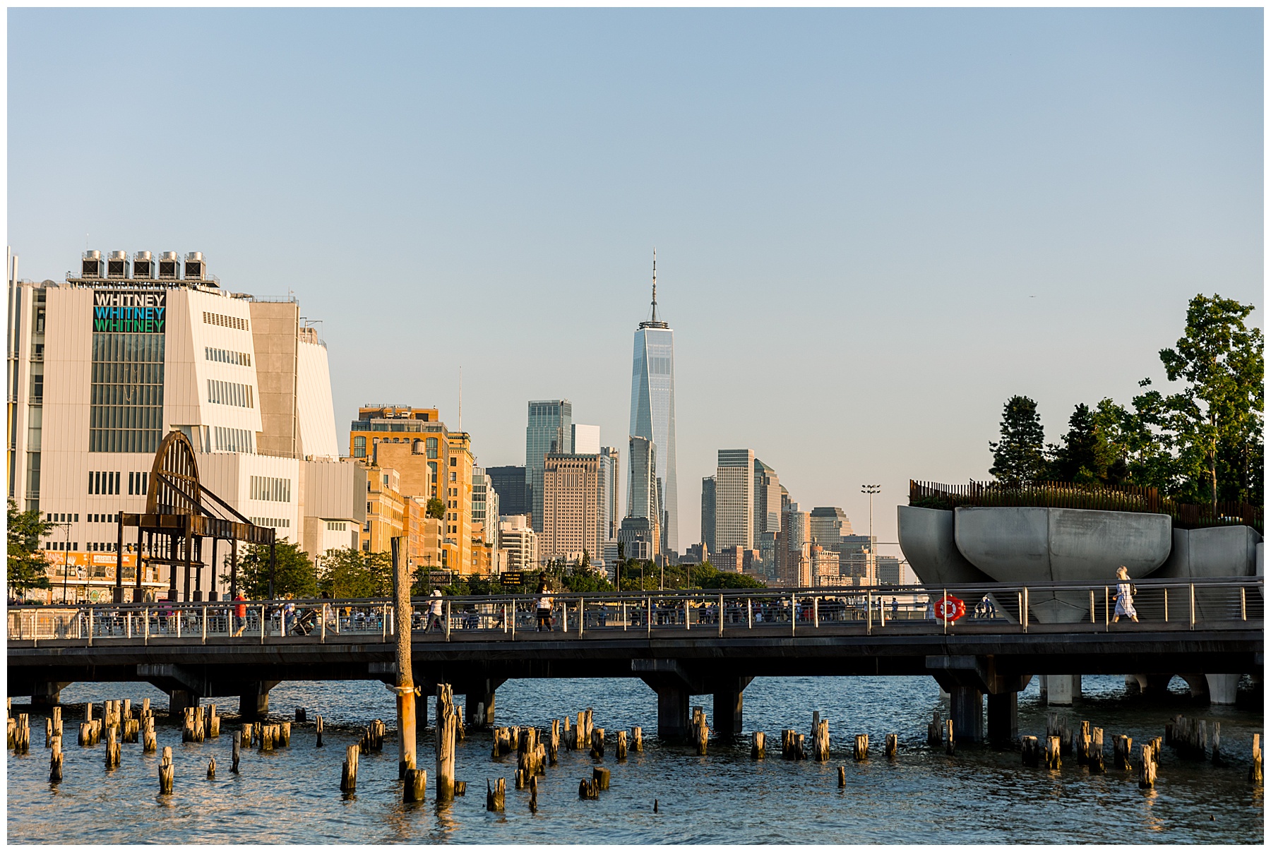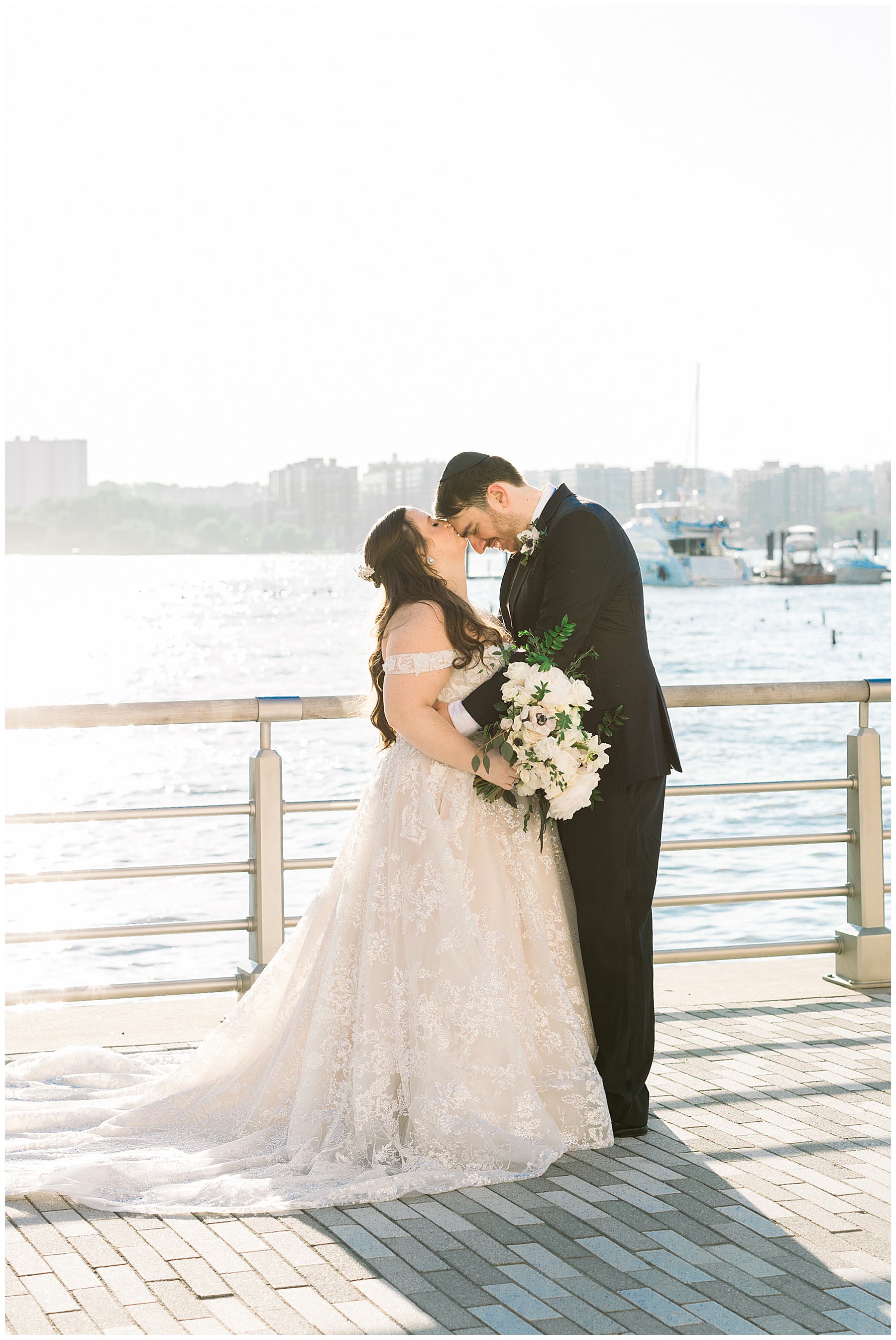 As they exited the ceremony to go upstairs for their ketubah signing, we got some of my FAVORITE portraits of the whole day as they went upstairs against the iconic wine bottle wall! I just LOVE how those turned out! After the ketubah signing, we went outside to photograph all their portraits with the beautiful Hudson River behind them. It was a really hot day in the sun, so Carleigh & Ian were great sports to sweat it out with us! (Especially because Carleigh’s dress literally weighs 30 pounds!) We were so fortunate to find a spot without tourists in the background, with such a cool view for their photos! LOVED it!!! (Plus they got congratulated like 198652 times by people walking by – so fun!)
