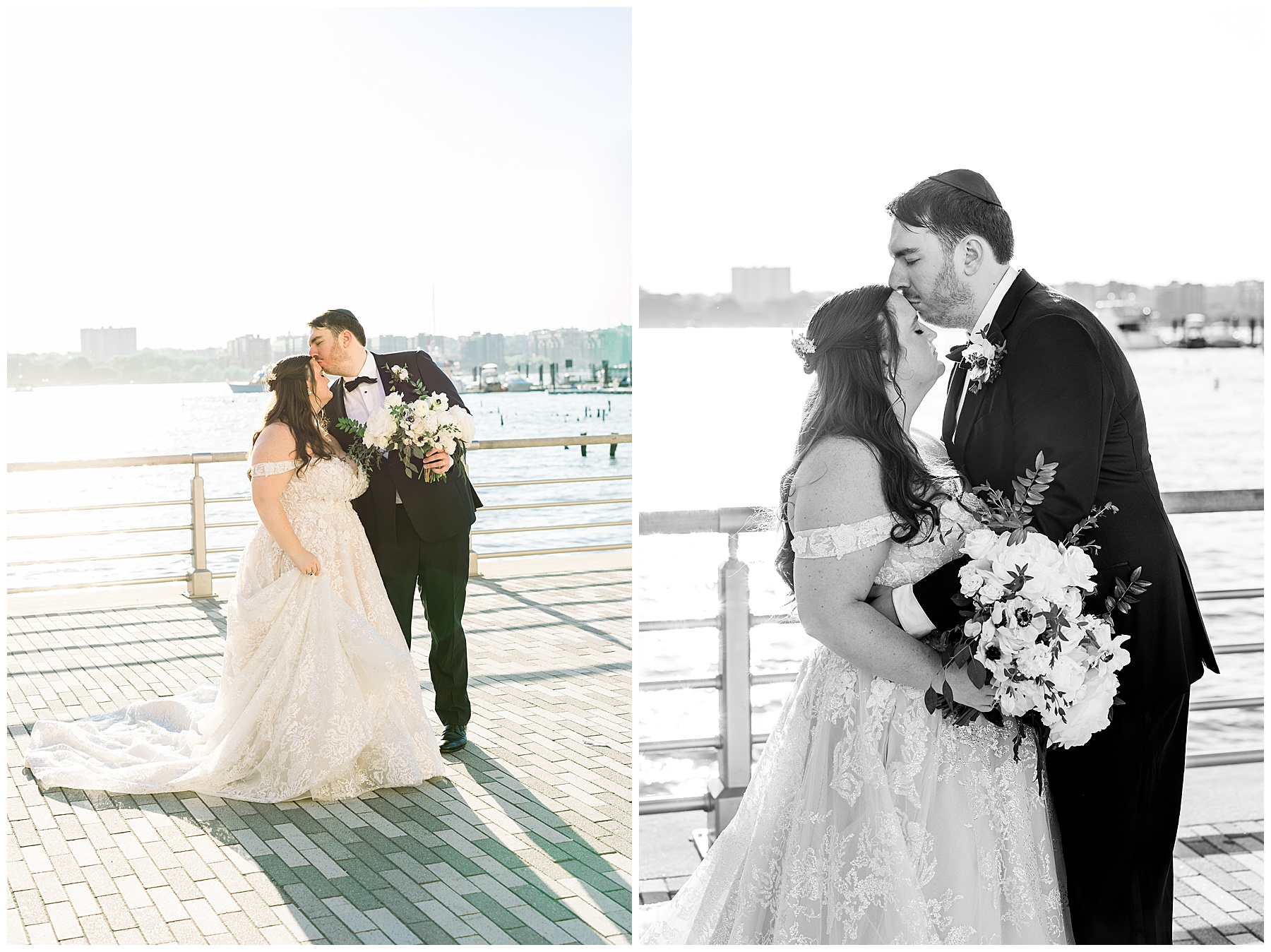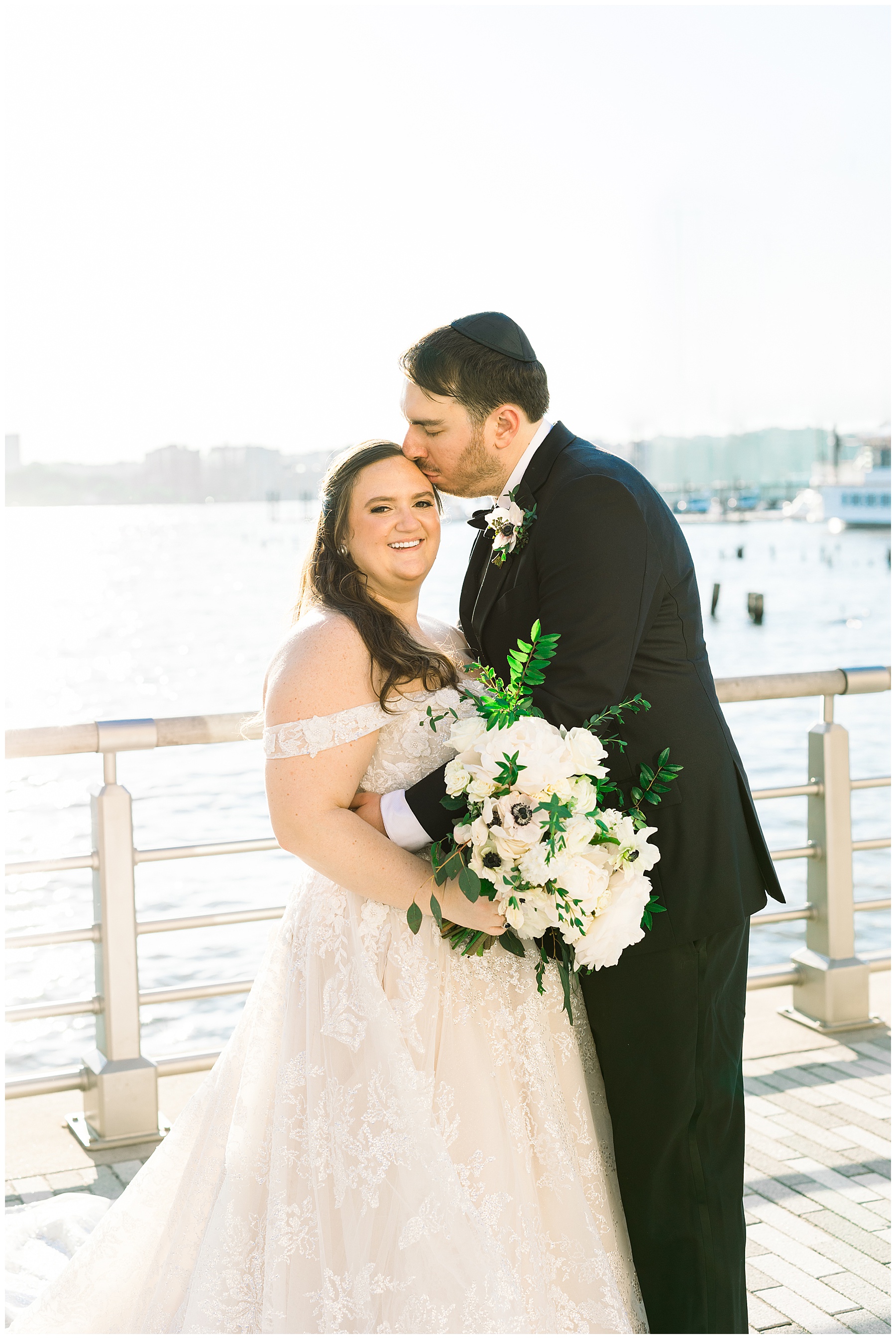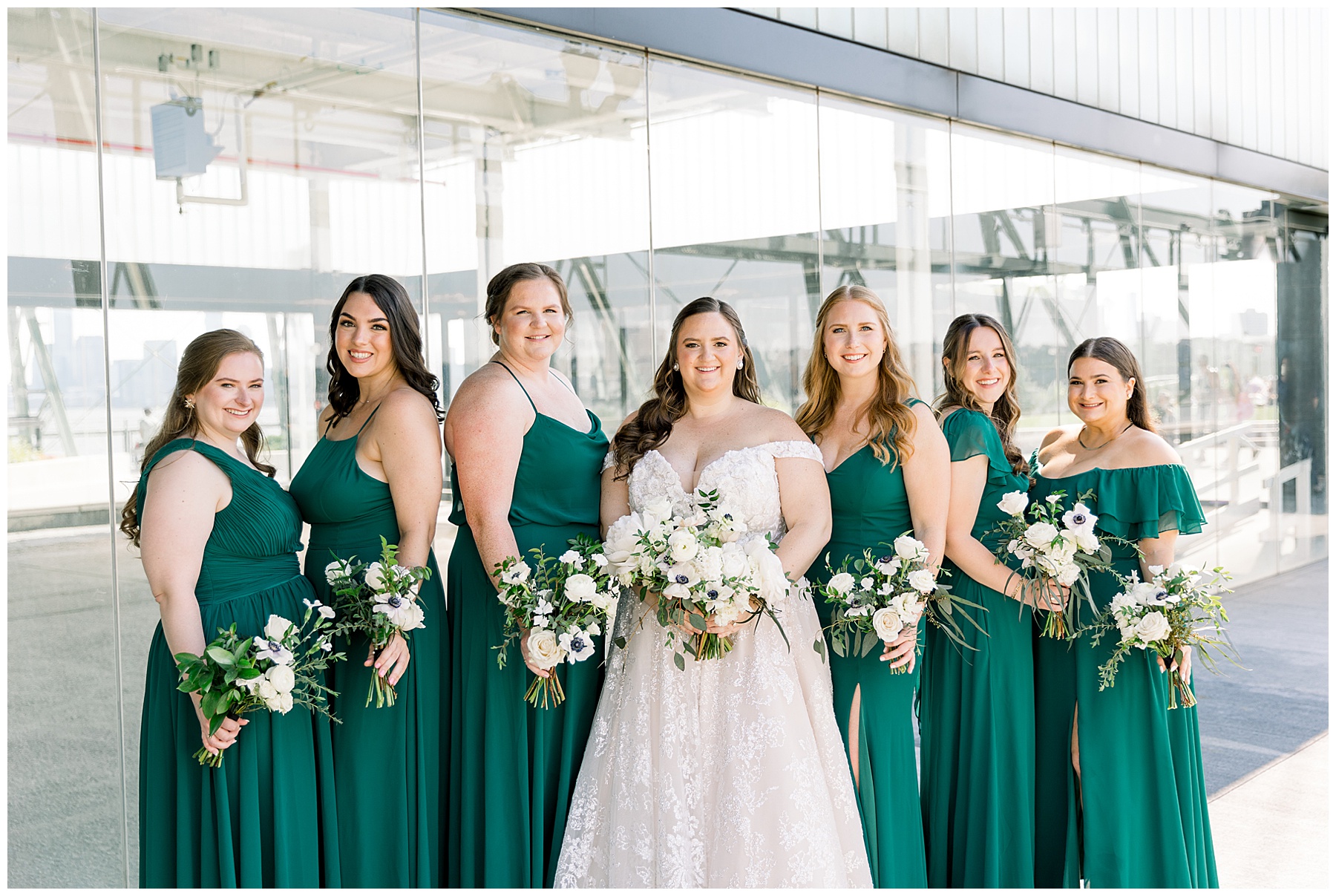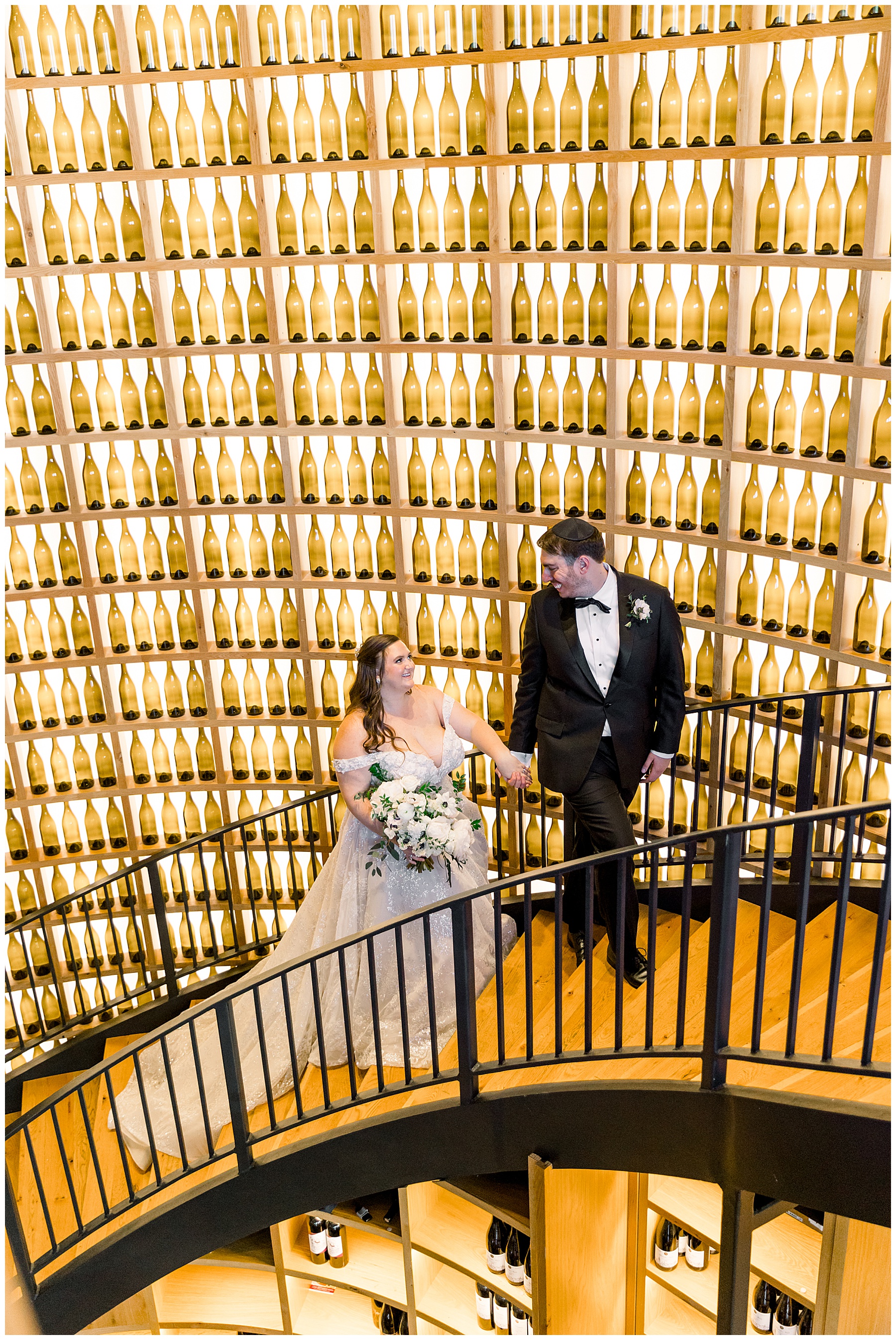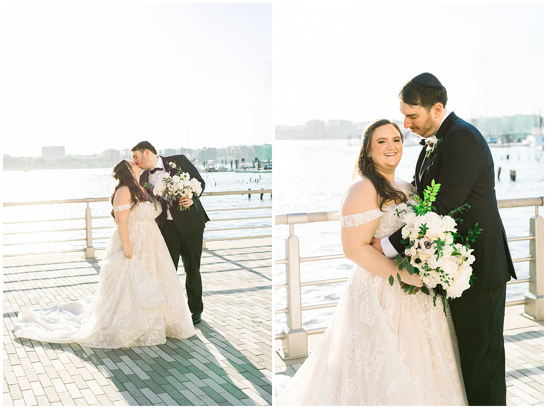 As they exited the ceremony to go upstairs for their ketubah signing, we got some of my FAVORITE portraits of the whole day as they went upstairs against the iconic wine bottle wall! I just LOVE how those turned out! After the ketubah signing, we went outside to photograph all their portraits with the beautiful Hudson River behind them. It was a really hot day in the sun, so Carleigh & Ian were great sports to sweat it out with us! (Especially because Carleigh’s dress literally weighs 30 pounds!) We were so fortunate to find a spot without tourists in the background, with such a cool view for their photos! LOVED it!!! (Plus they got congratulated like 198652 times by people walking by – so fun!)