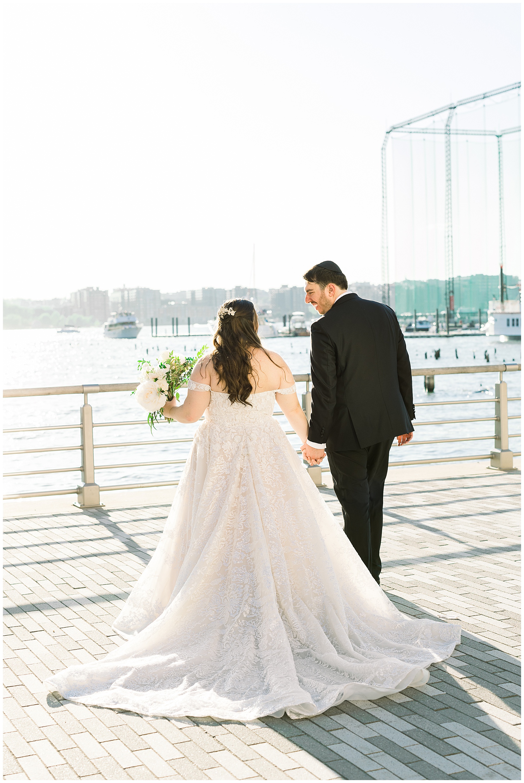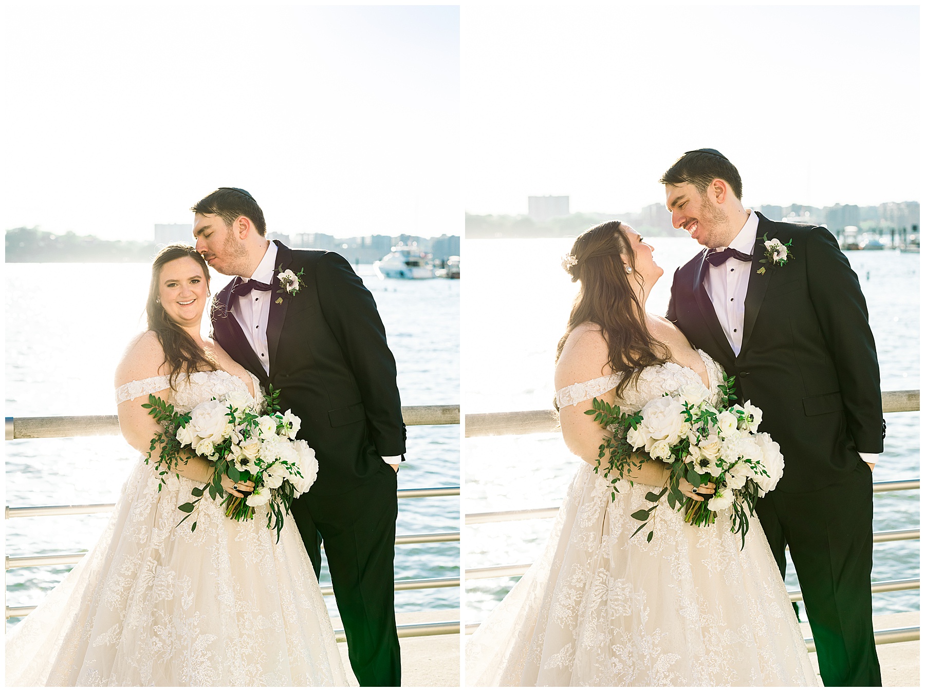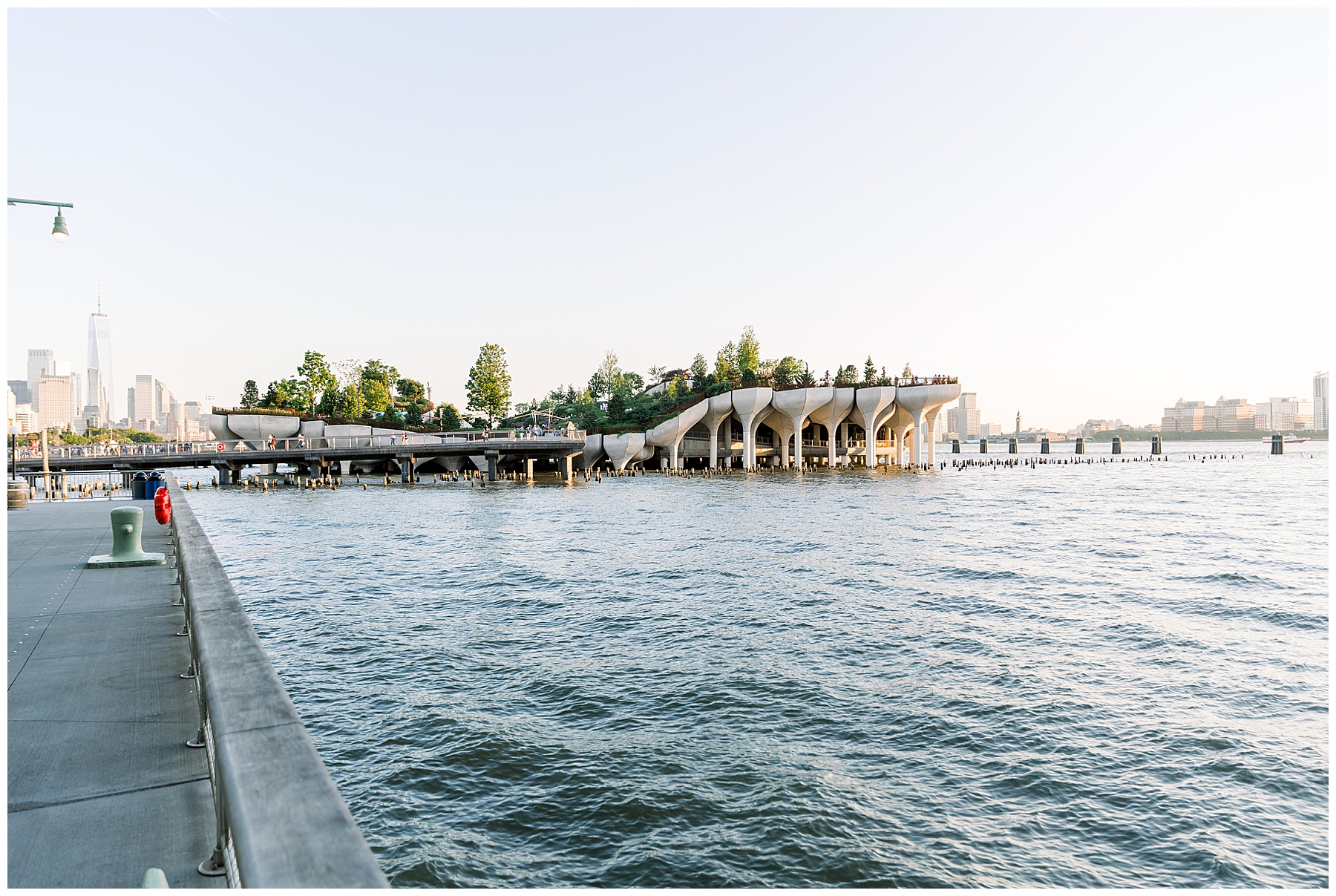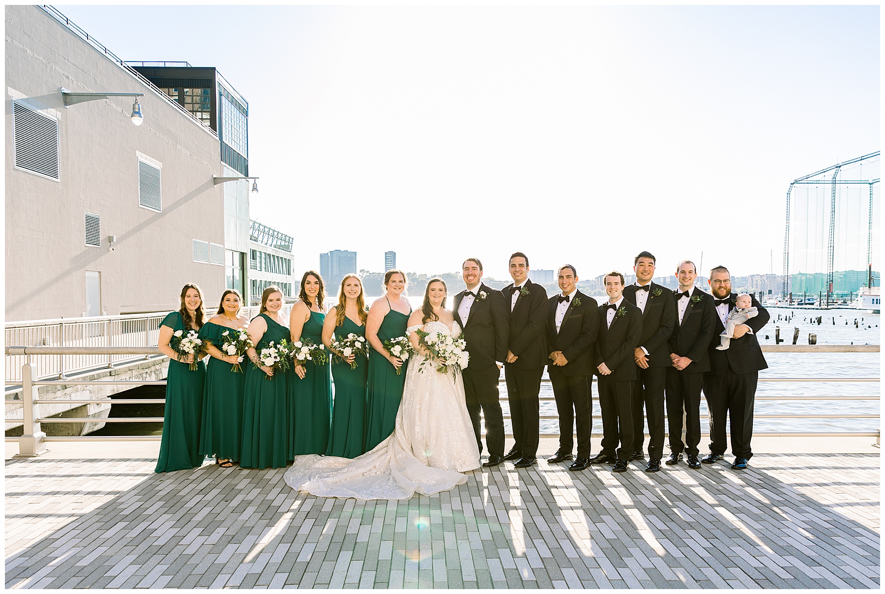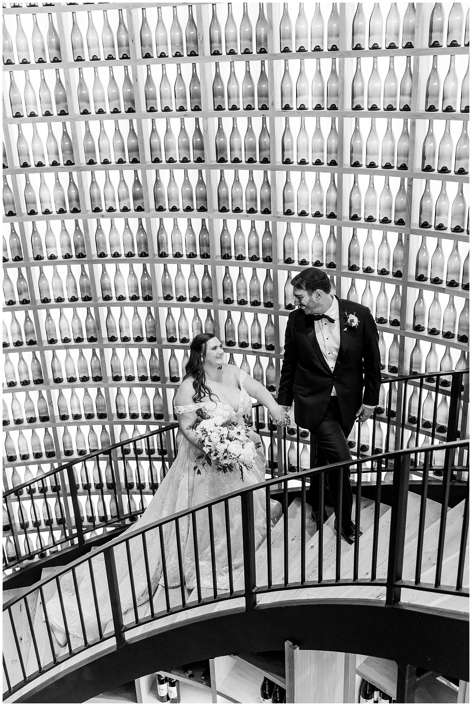 As they exited the ceremony to go upstairs for their ketubah signing, we got some of my FAVORITE portraits of the whole day as they went upstairs against the iconic wine bottle wall! I just LOVE how those turned out! After the ketubah signing, we went outside to photograph all their portraits with the beautiful Hudson River behind them. It was a really hot day in the sun, so Carleigh & Ian were great sports to sweat it out with us! (Especially because Carleigh’s dress literally weighs 30 pounds!) We were so fortunate to find a spot without tourists in the background, with such a cool view for their photos! LOVED it!!! (Plus they got congratulated like 198652 times by people walking by – so fun!)