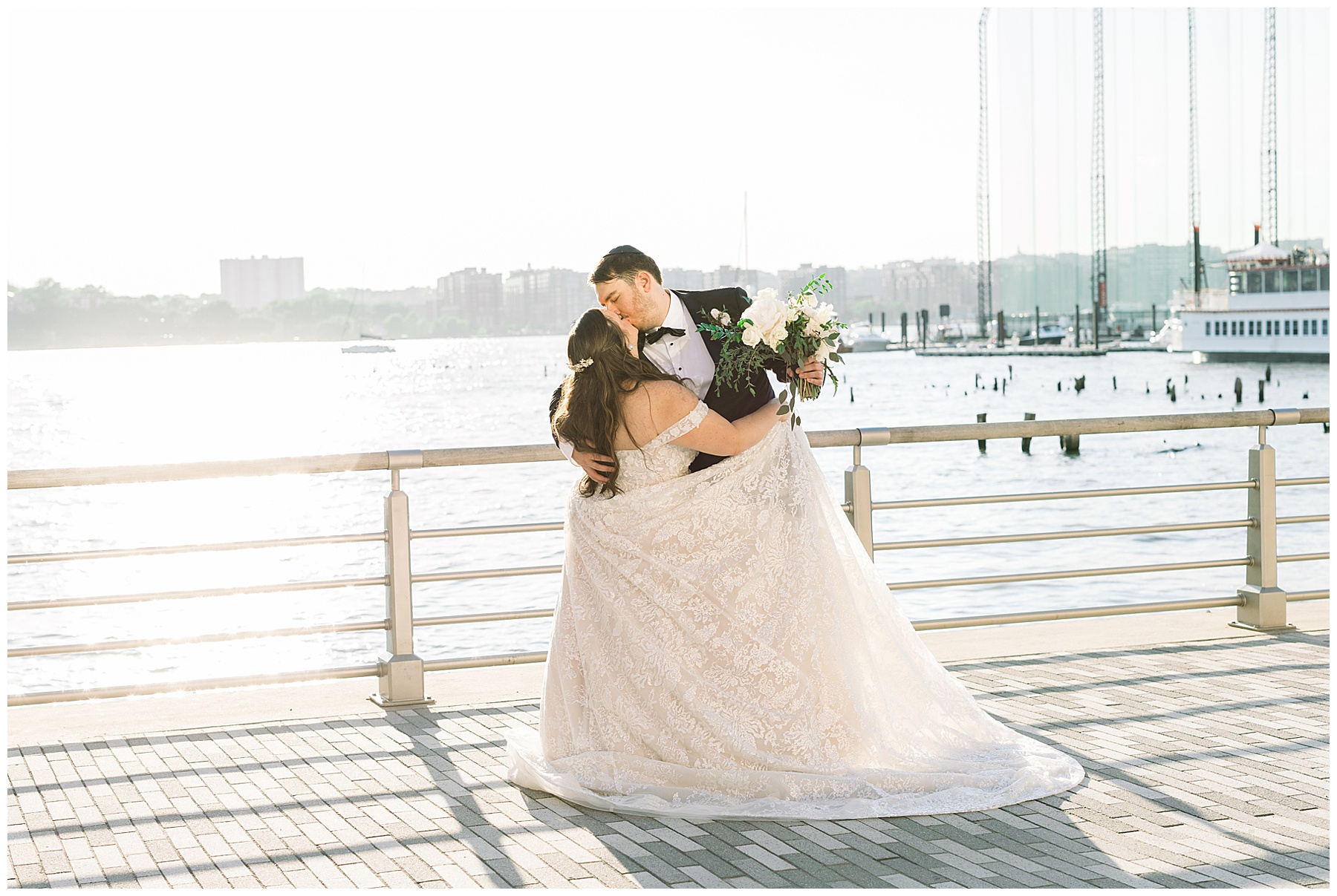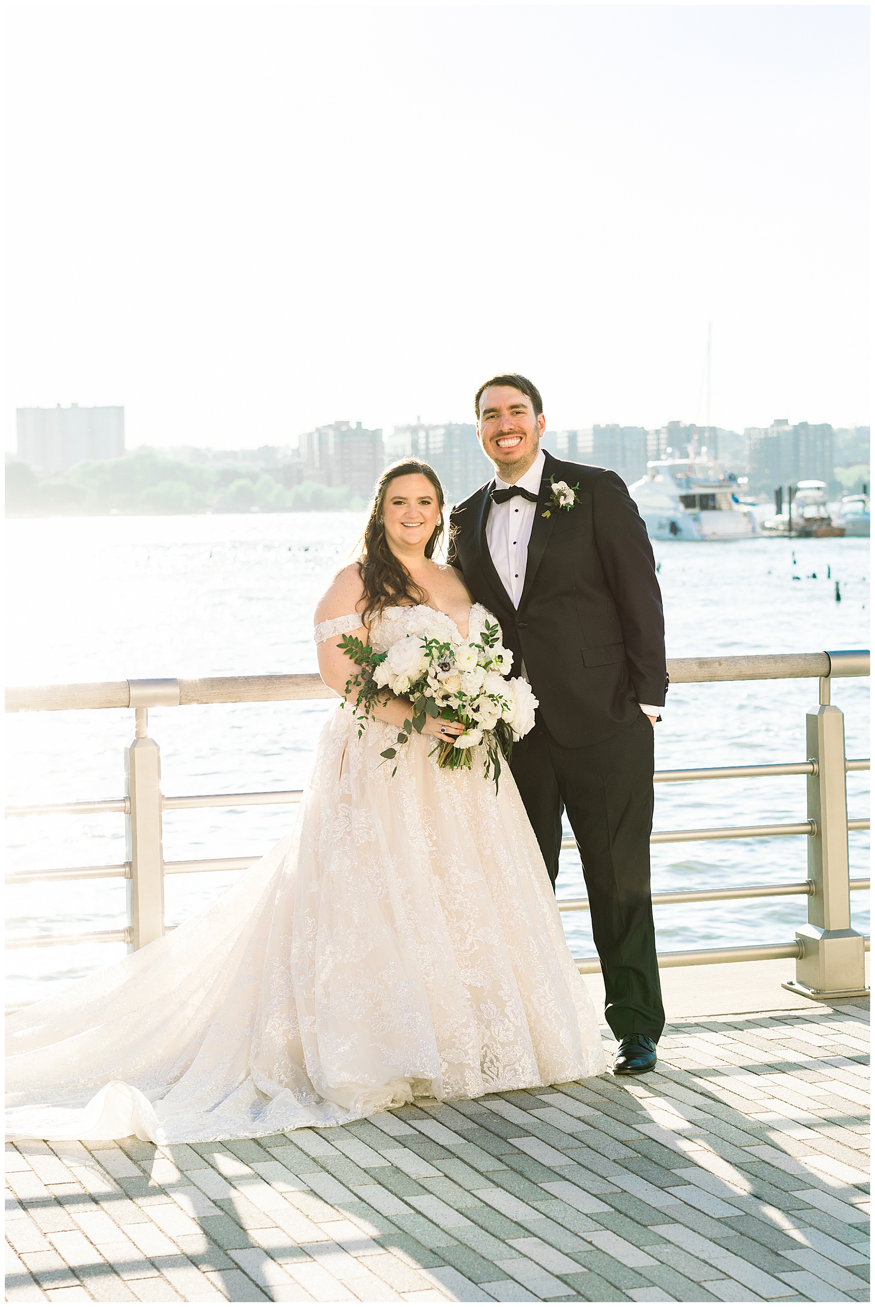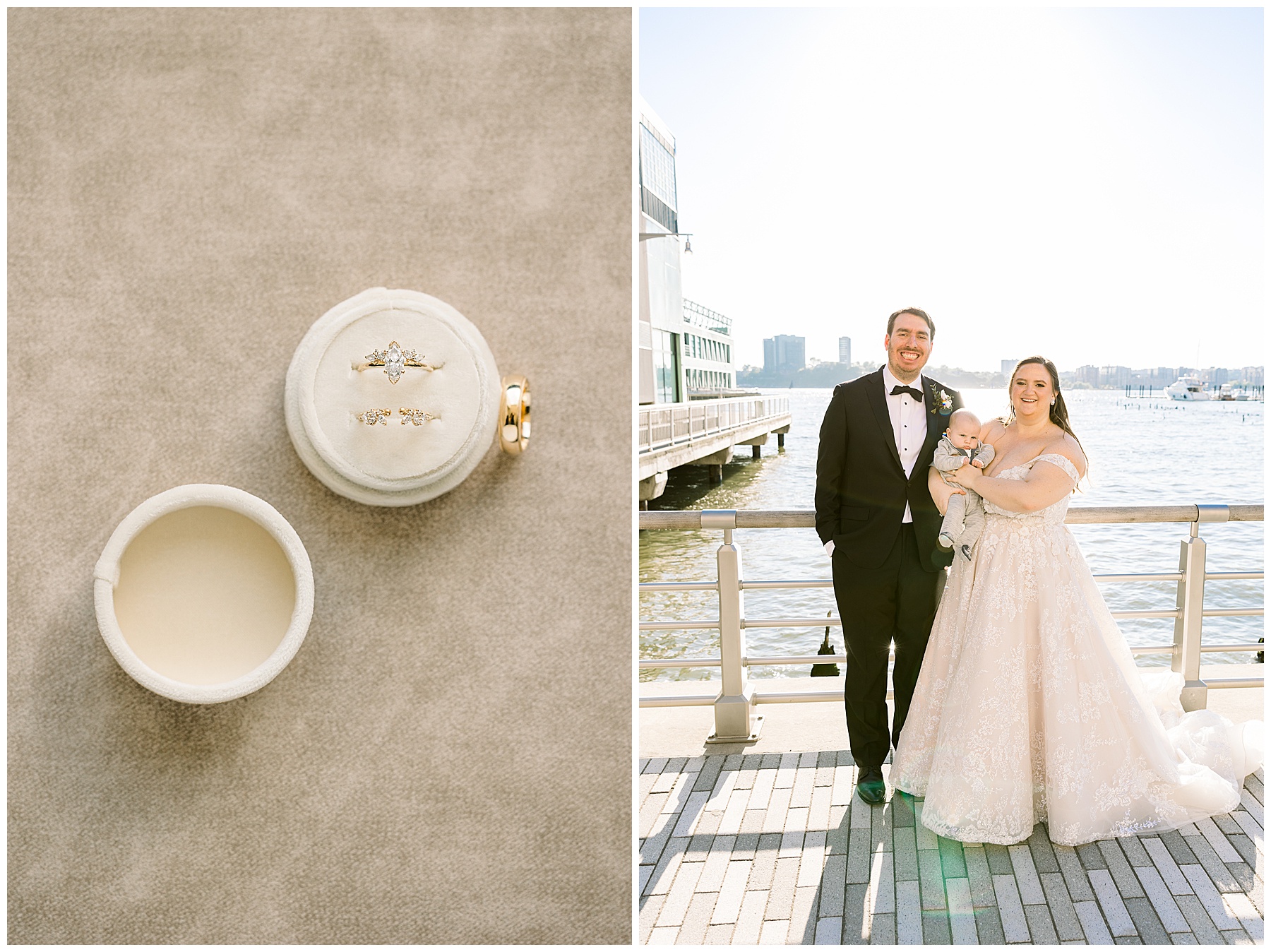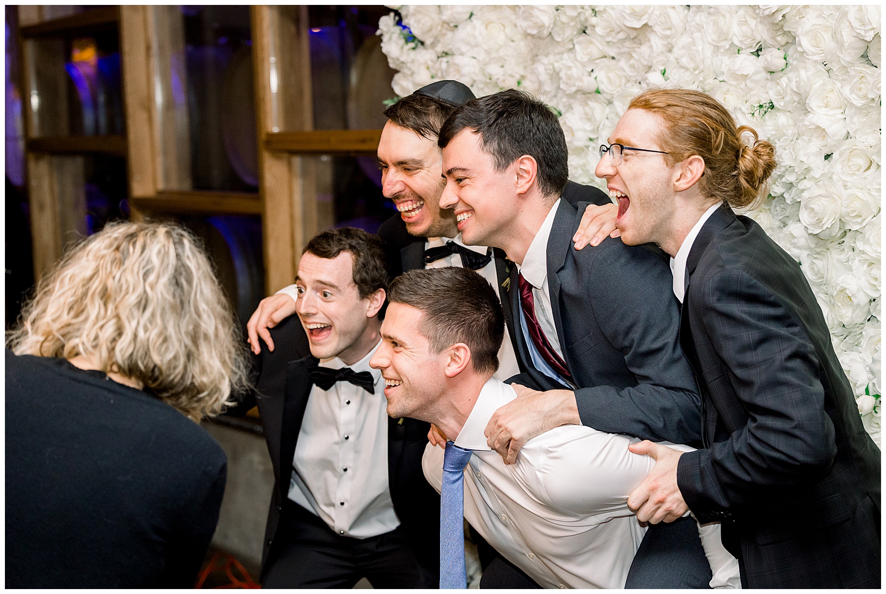 As they exited the ceremony to go upstairs for their ketubah signing, we got some of my FAVORITE portraits of the whole day as they went upstairs against the iconic wine bottle wall! I just LOVE how those turned out! After the ketubah signing, we went outside to photograph all their portraits with the beautiful Hudson River behind them. It was a really hot day in the sun, so Carleigh & Ian were great sports to sweat it out with us! (Especially because Carleigh’s dress literally weighs 30 pounds!) We were so fortunate to find a spot without tourists in the background, with such a cool view for their photos! LOVED it!!! (Plus they got congratulated like 198652 times by people walking by – so fun!)