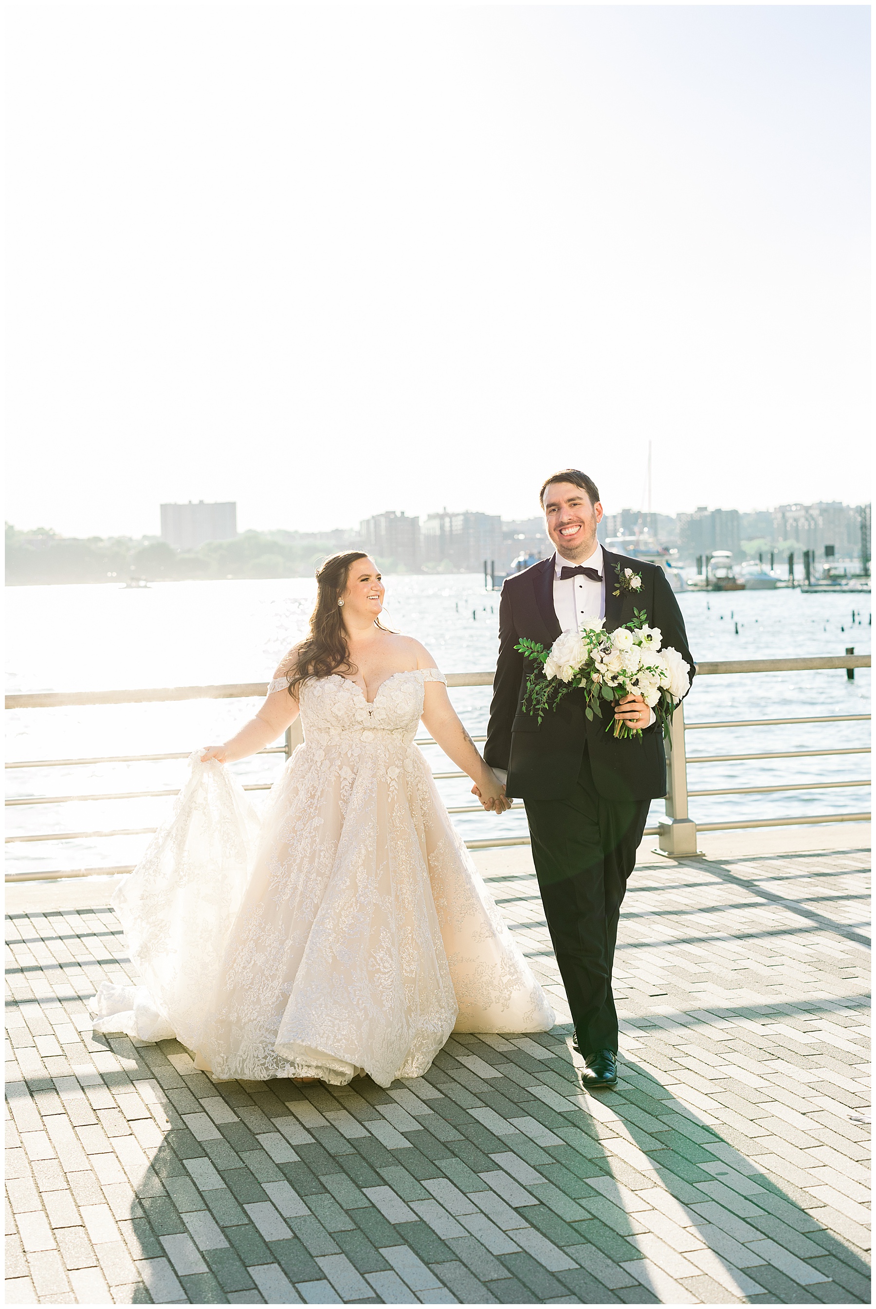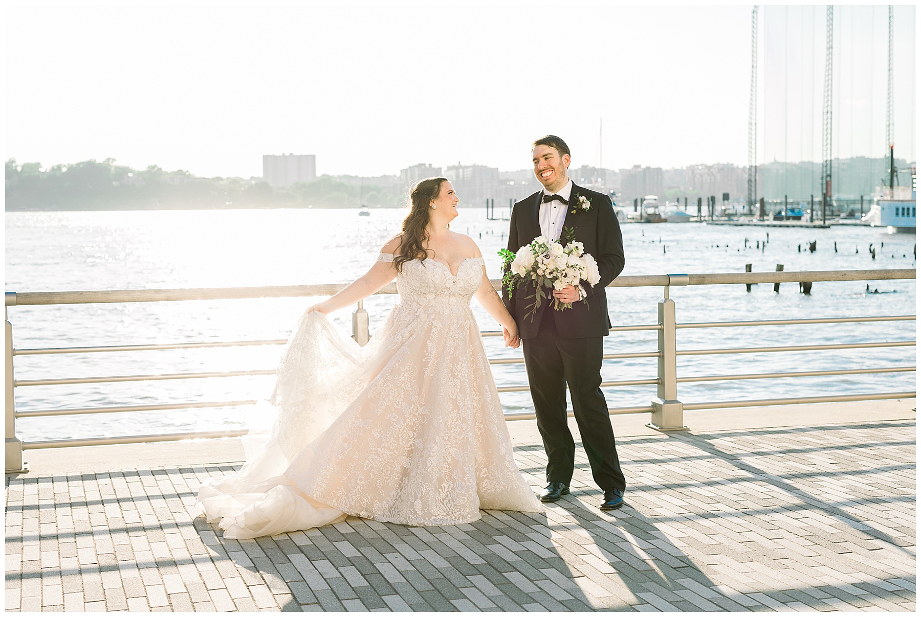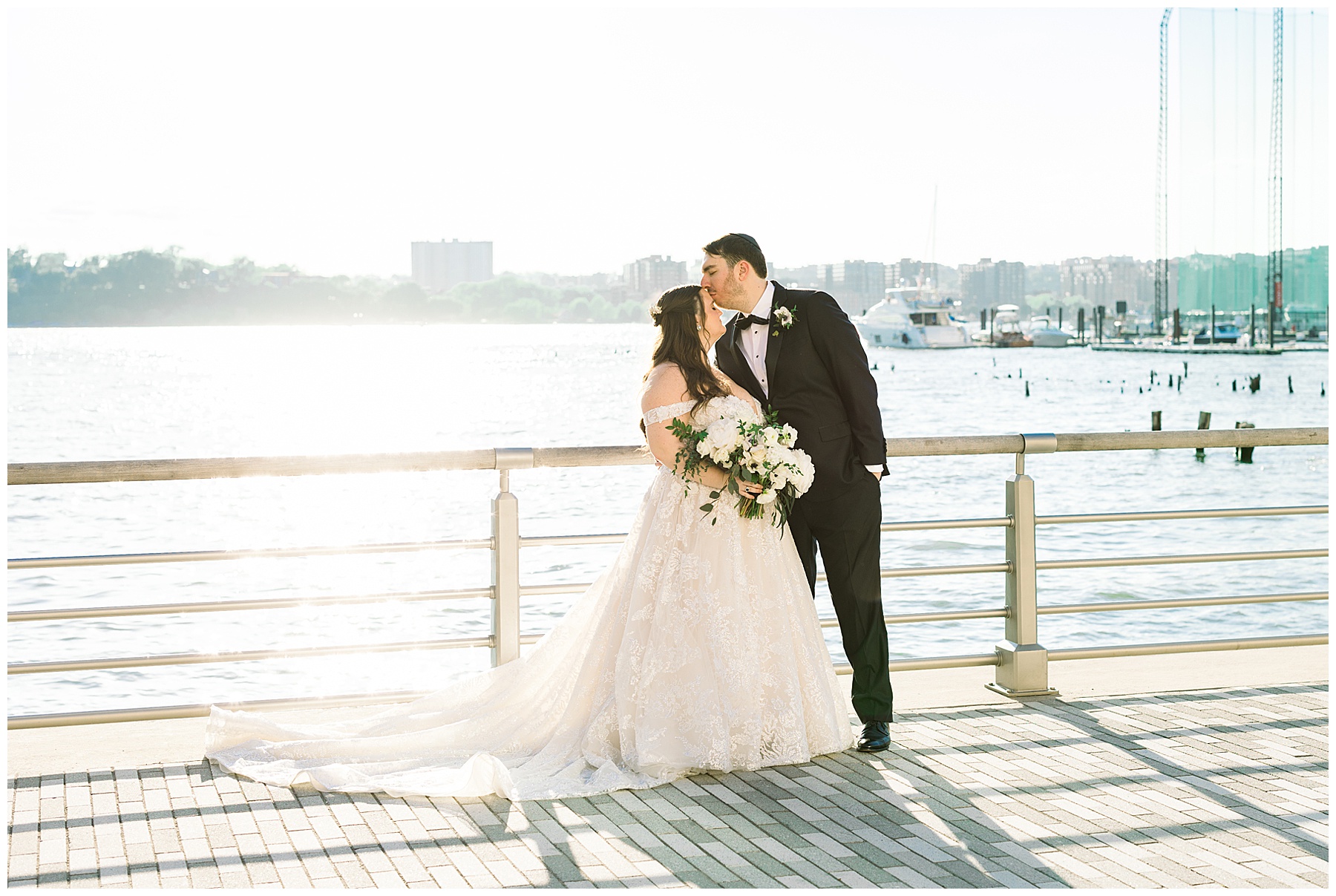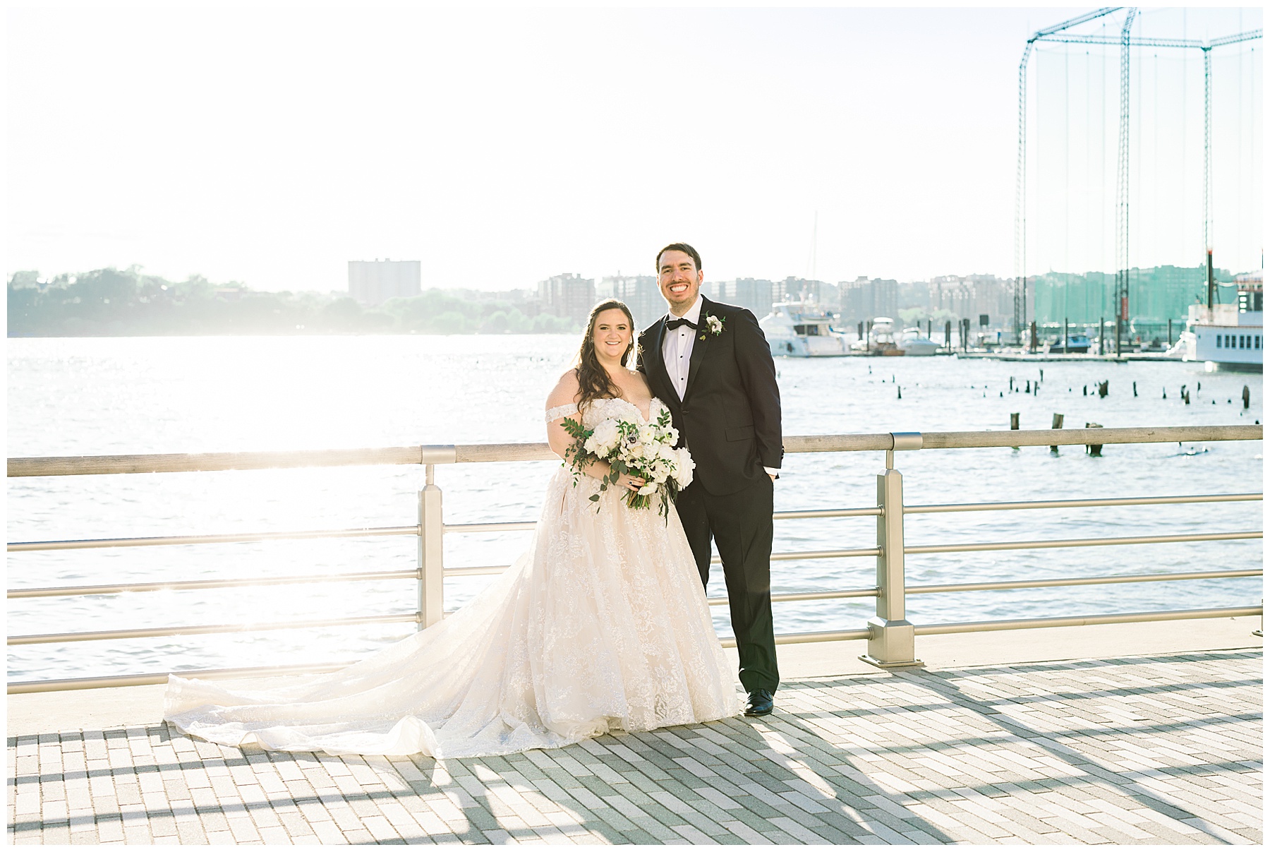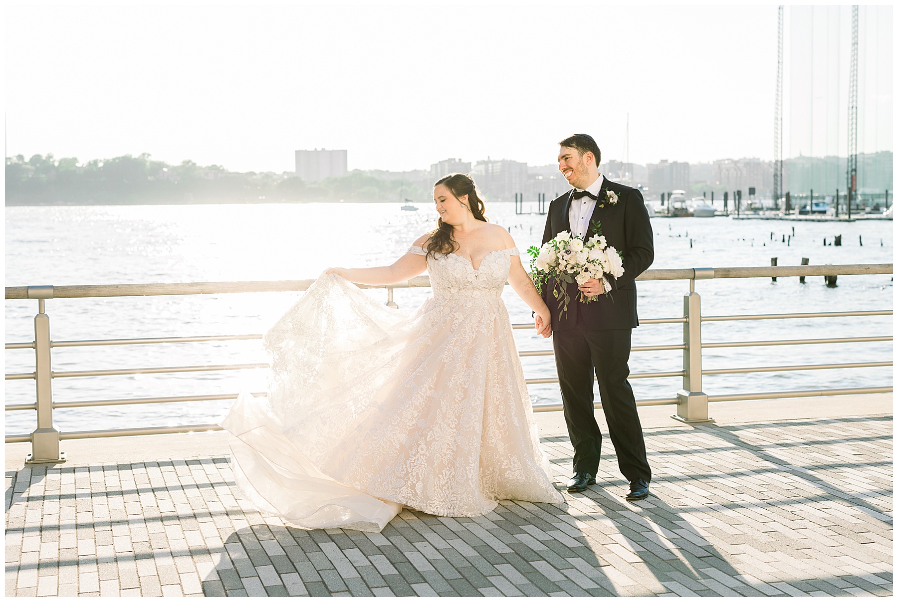 As they exited the ceremony to go upstairs for their ketubah signing, we got some of my FAVORITE portraits of the whole day as they went upstairs against the iconic wine bottle wall! I just LOVE how those turned out! After the ketubah signing, we went outside to photograph all their portraits with the beautiful Hudson River behind them. It was a really hot day in the sun, so Carleigh & Ian were great sports to sweat it out with us! (Especially because Carleigh’s dress literally weighs 30 pounds!) We were so fortunate to find a spot without tourists in the background, with such a cool view for their photos! LOVED it!!! (Plus they got congratulated like 198652 times by people walking by – so fun!)