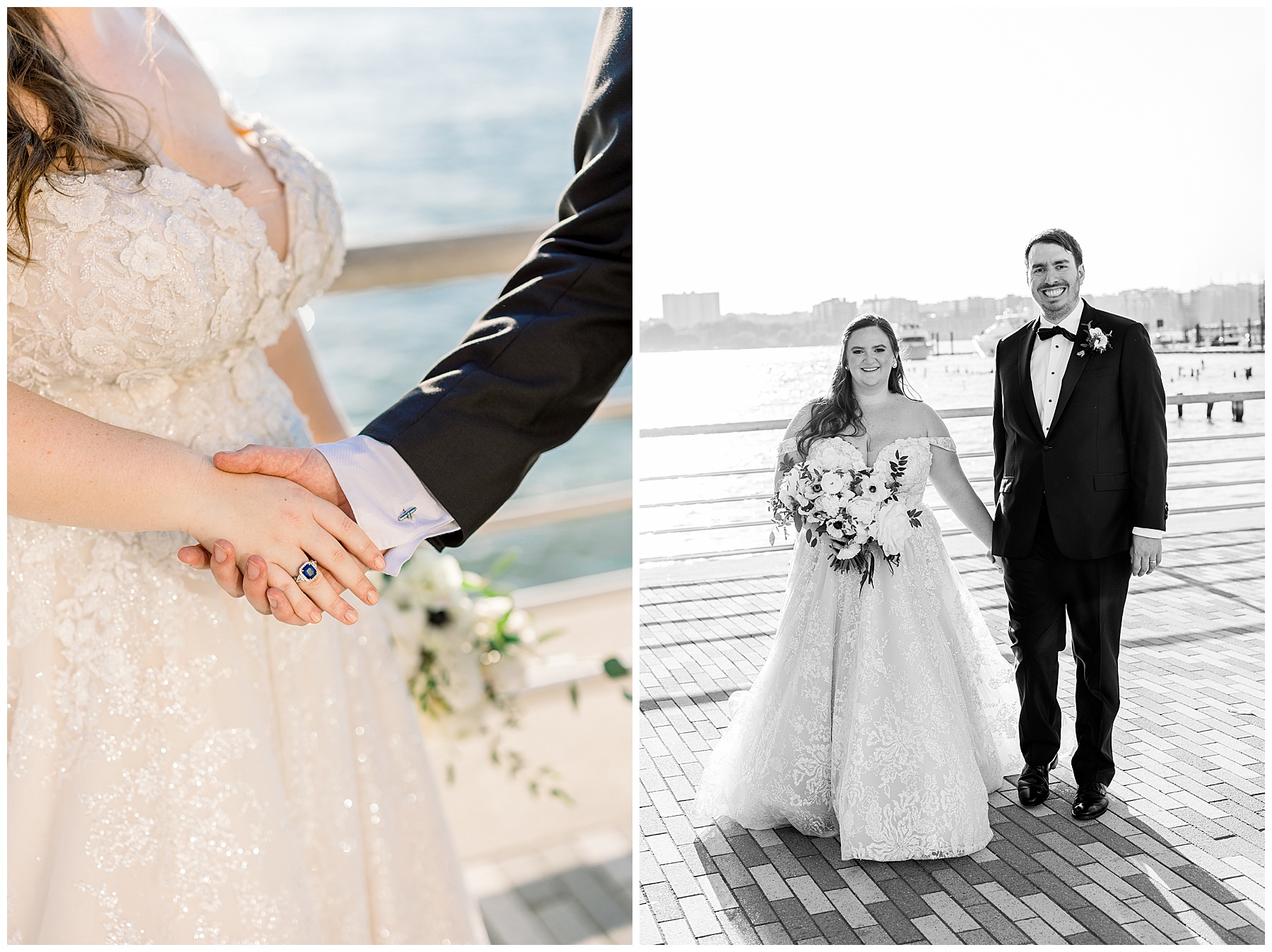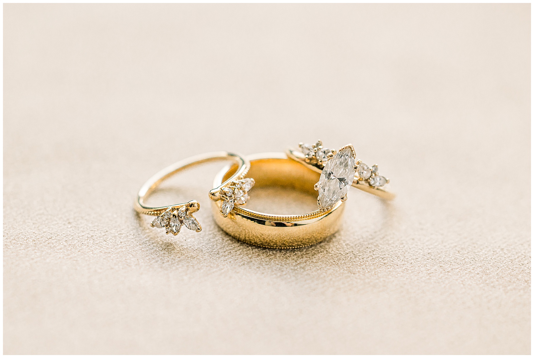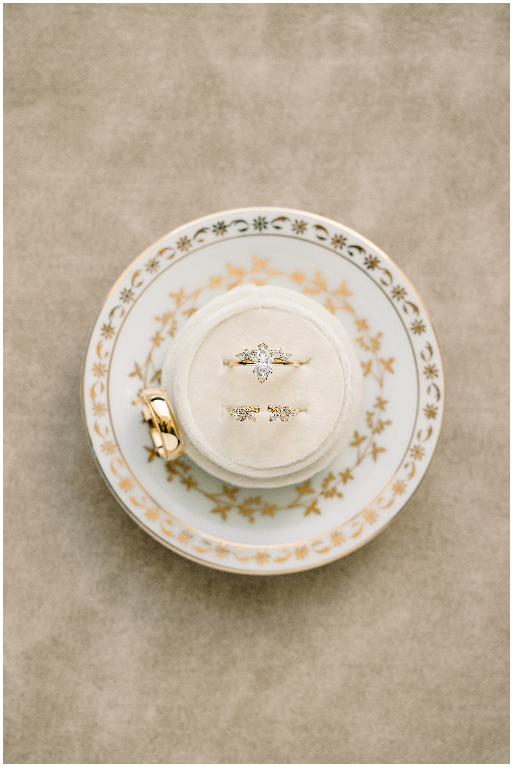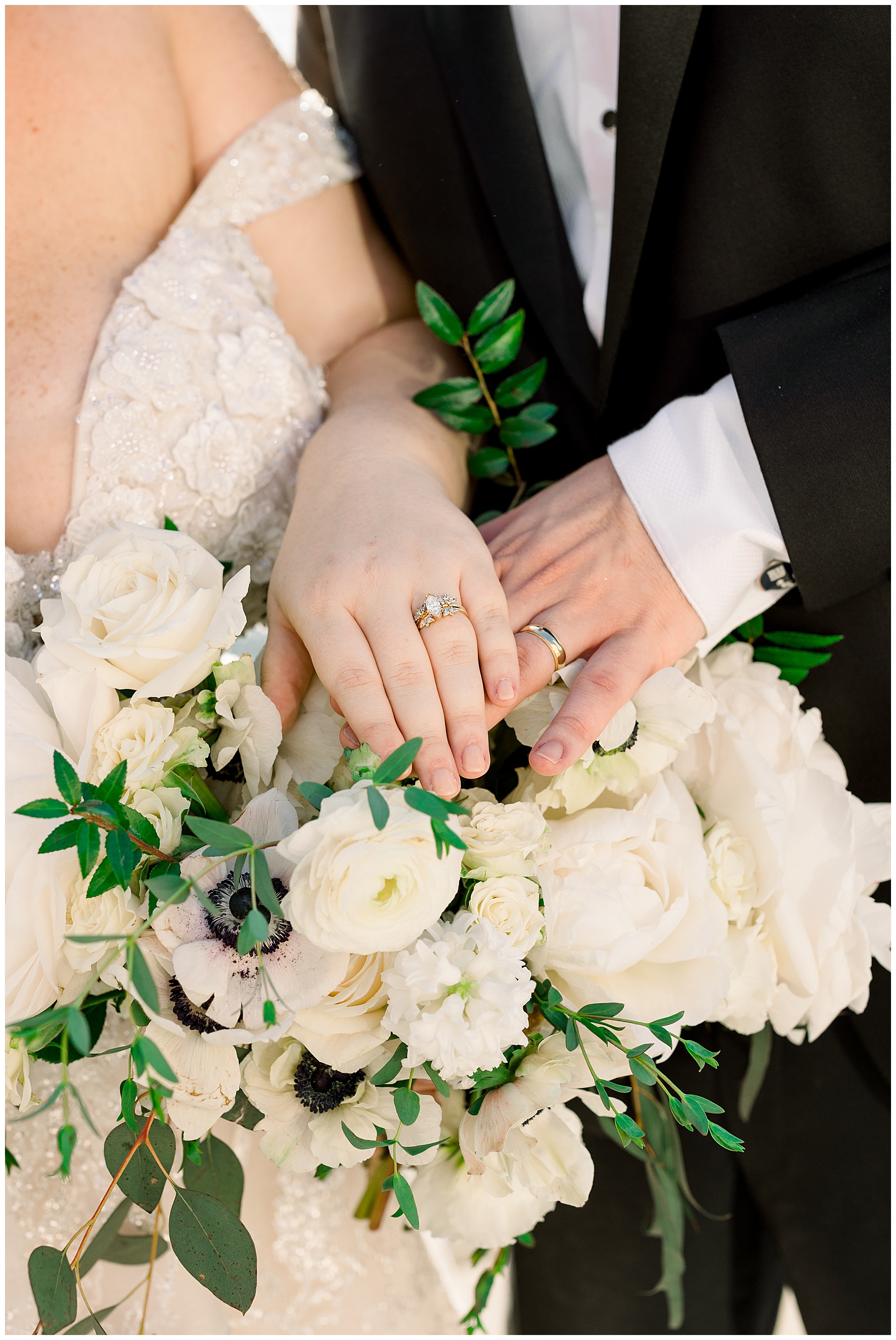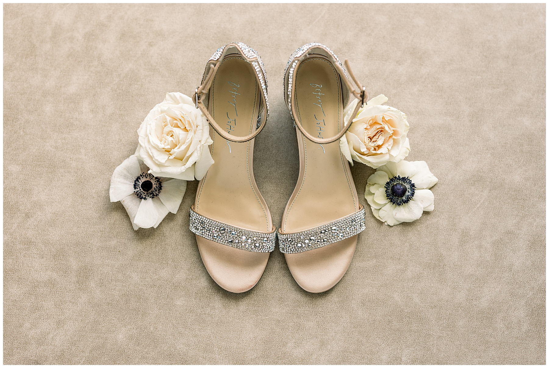 The day of the wedding, we started off with NYC bagels and then arrived at The Standard to find all the bridesmaids in cute green rompers and getting all glam by the Beautini crew! Carleigh had spoiled all the girls by booking the Empire Suite that had the most INCREDIBLE 16th floor views of NYC for them to enjoy all morning. We photographed all of Carleigh’s very organized and beautiful detail items while the girls finished getting ready! First of all, one of my all-time fave TLC shows is Say Yes to the Dress – so when I heard that Carleigh’s dress is a Martina Liana from KLEINFELDS OF NYC… I was totally fangirling and felt so honored to photograph it! Carleigh & Ian had so many fun details for me to photograph. My favorites were of course their stunning Sarah O rings (a female & minority-owned business), Ian’s grandmother’s INCREDIBLE sapphire ring that she passed down to Carleigh, and the black/white/gold invitation suite (all my fave colors) with the vintage stamp set of all NYC landmarks.