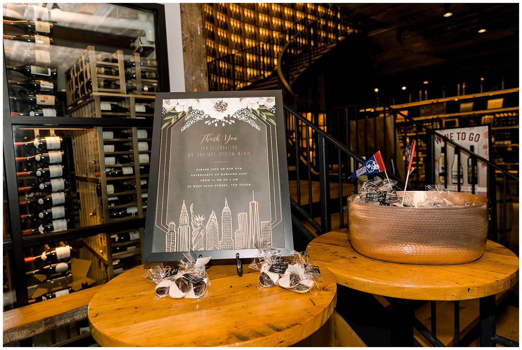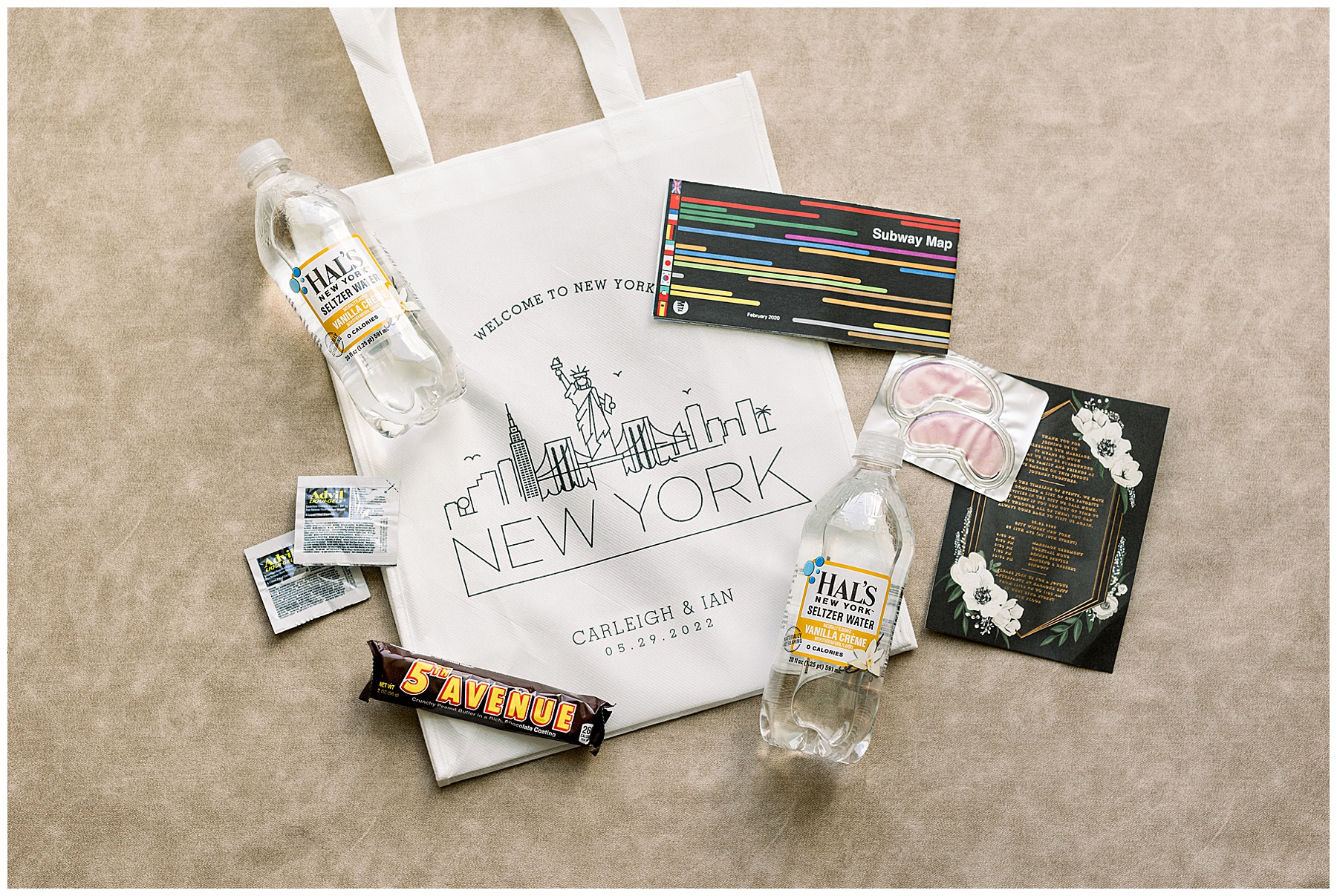 When we checked into our hotel, a beautiful custom Welcome Bag was awaiting us full of NYC goodies – subway maps, 5th Avenue bars, waters, aspirin, eye masks, and a card full of the weekend plans and ideas for sightseeing! (We tried Ian & Carleigh’s recommendation of Levain Bakery’s chocolate chip cookies – and wow – they were DELISH!) :)