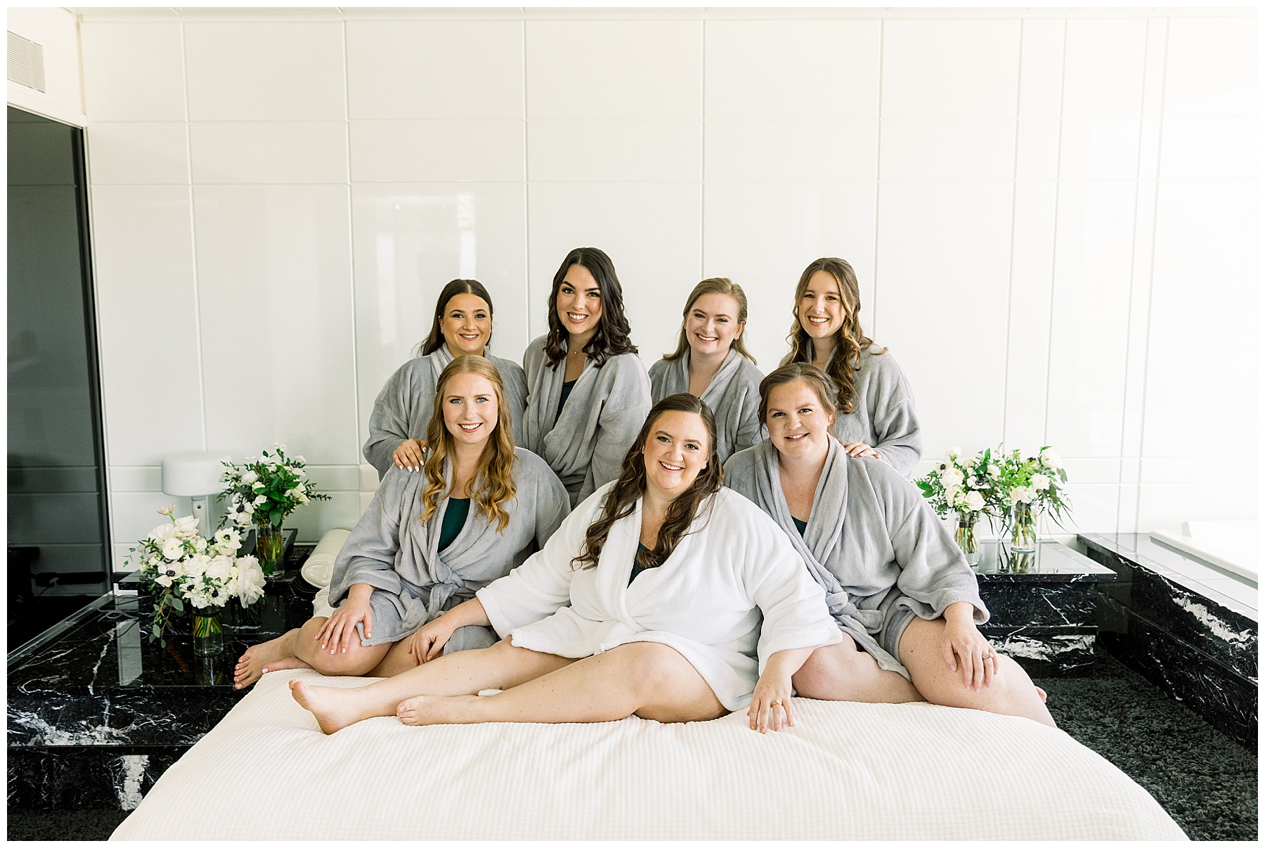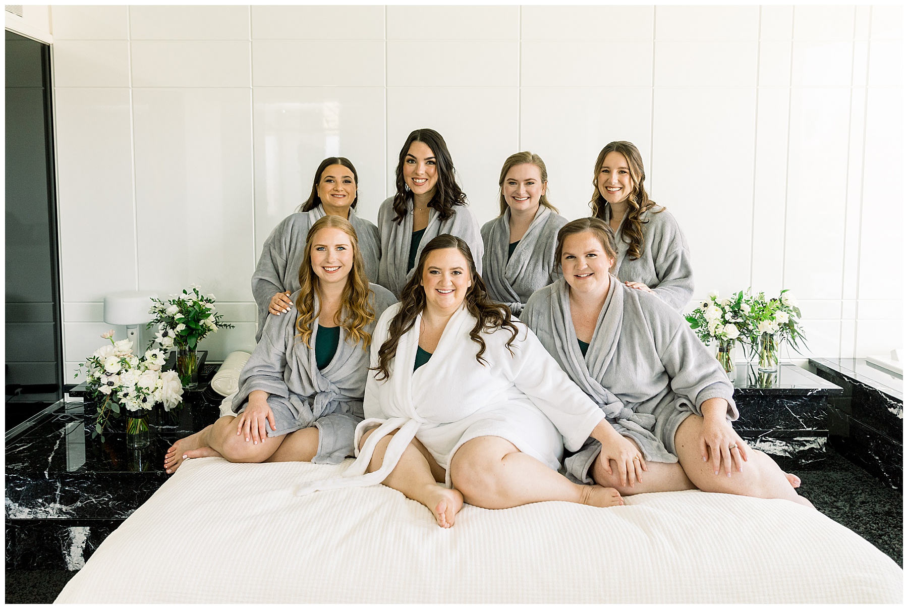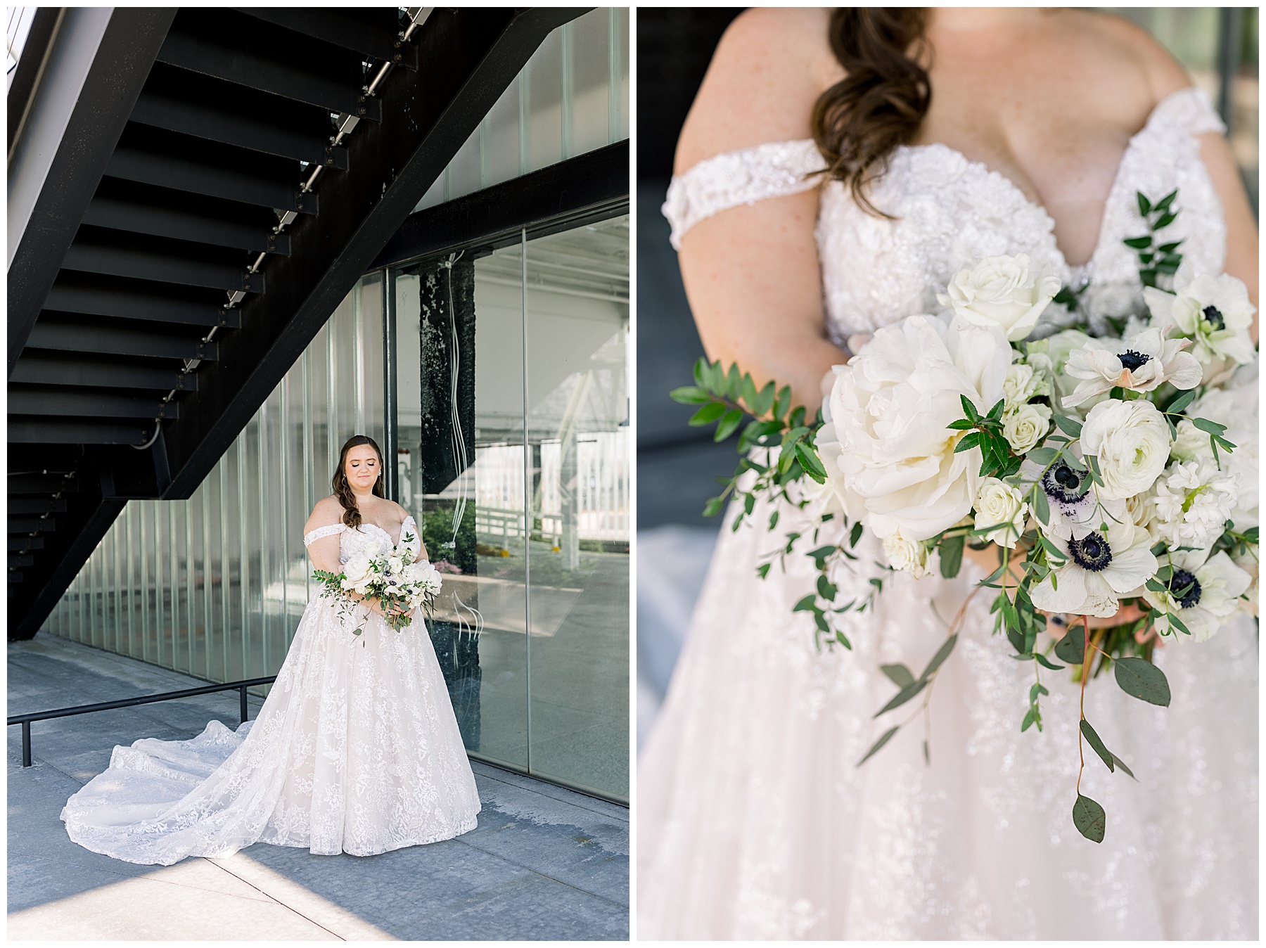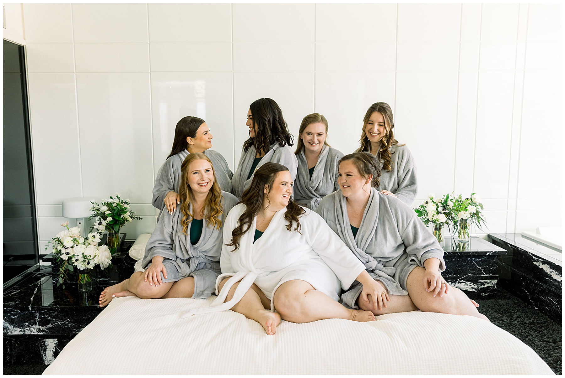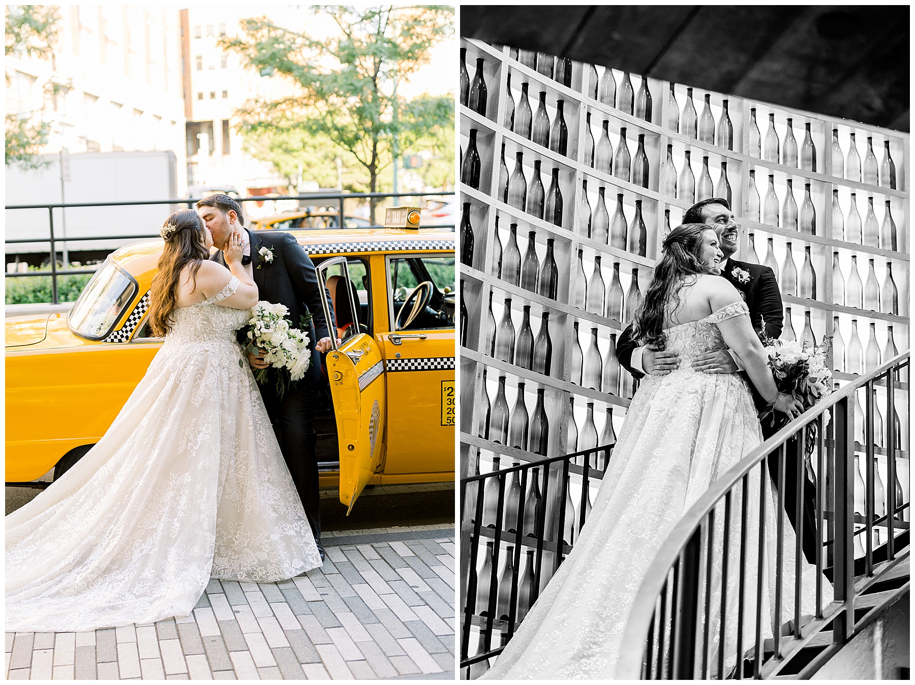 All of Carleigh’s bridesmaids were so sweet & fun, and I also loved including Carleigh’s brand-new nephew, Everette, in some of the photos! The Empire Suite’s black/white interior was a perfect compliment to their wedding color palette! Next, we headed over to the venue to photograph all the Bridesmaids photos, and found the coolest black staircase to incorporate more of the black color scheme & city/urban vibes into the photos. (Plus thank GOD for the shade!!!) I just love how unique those photos turned out! :)