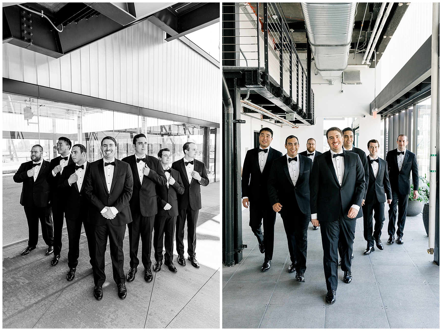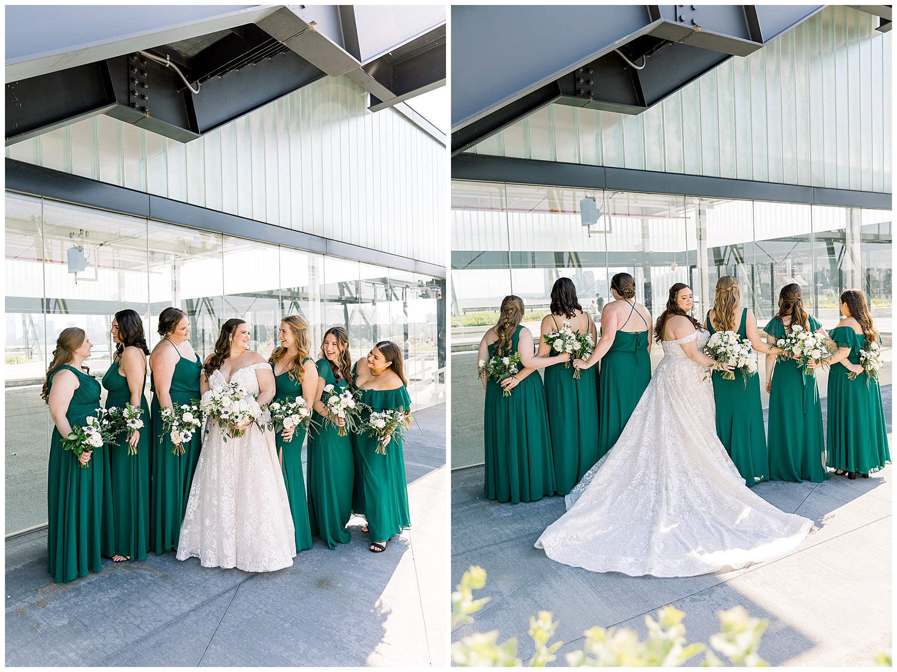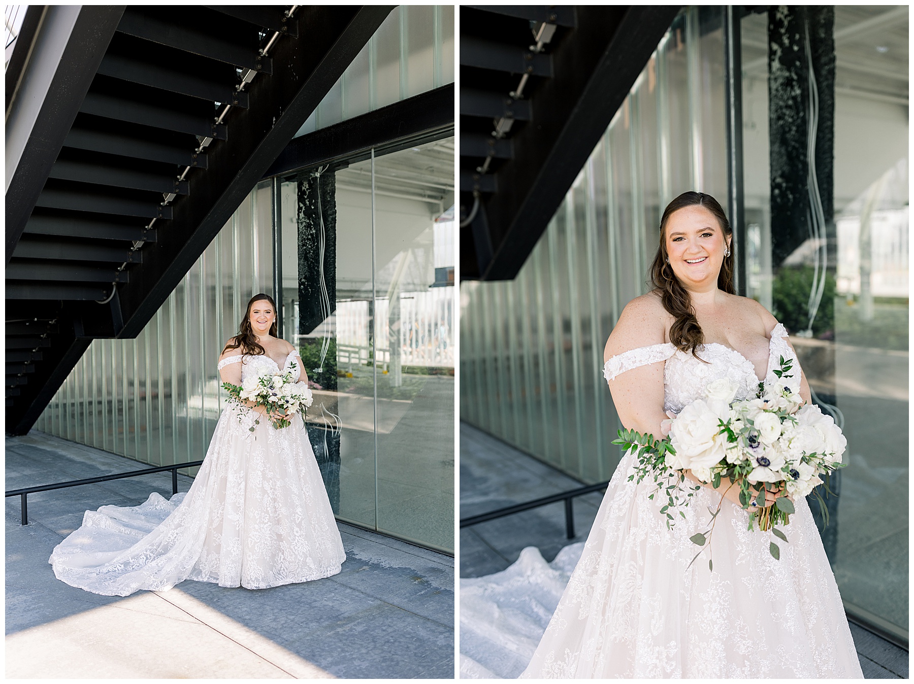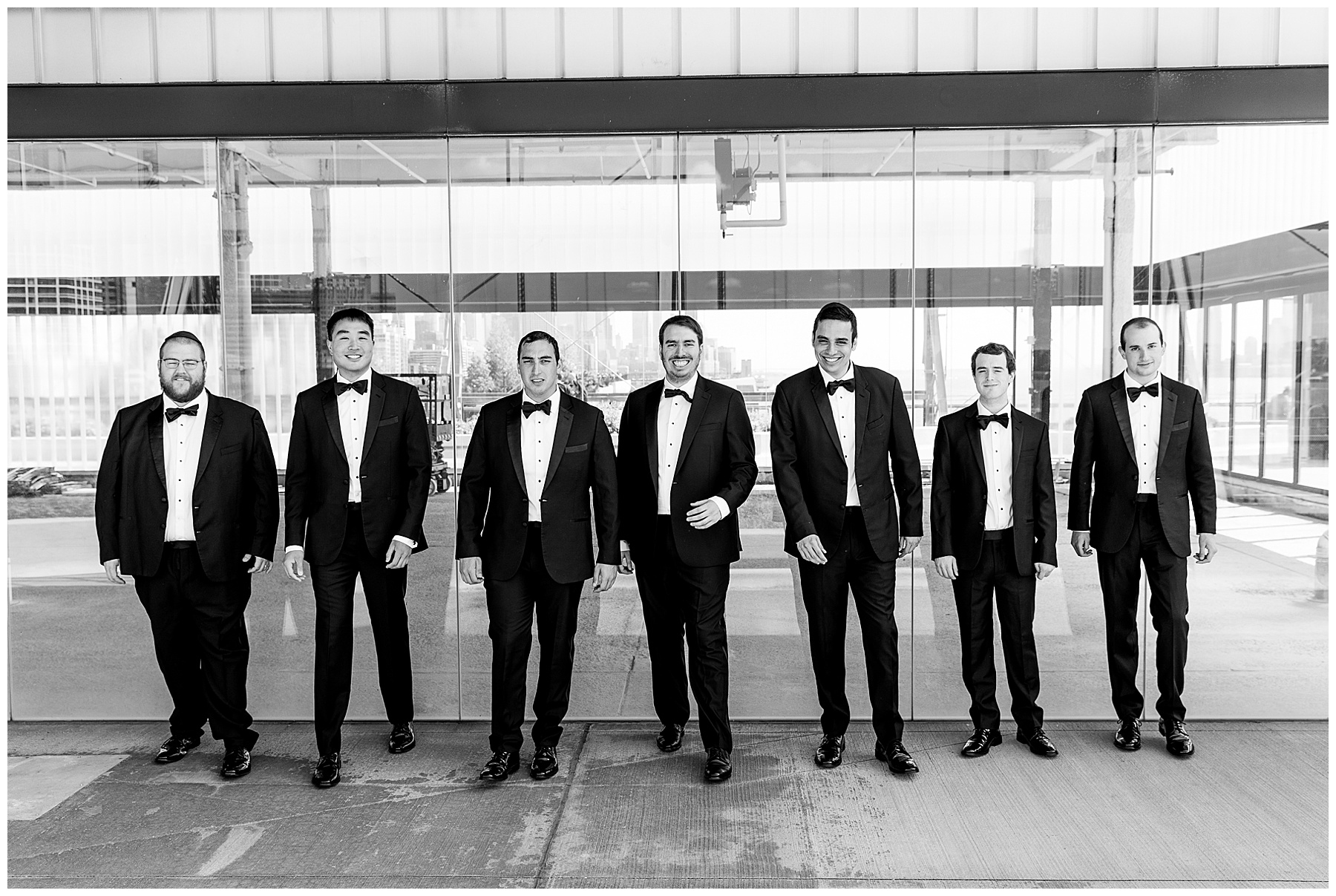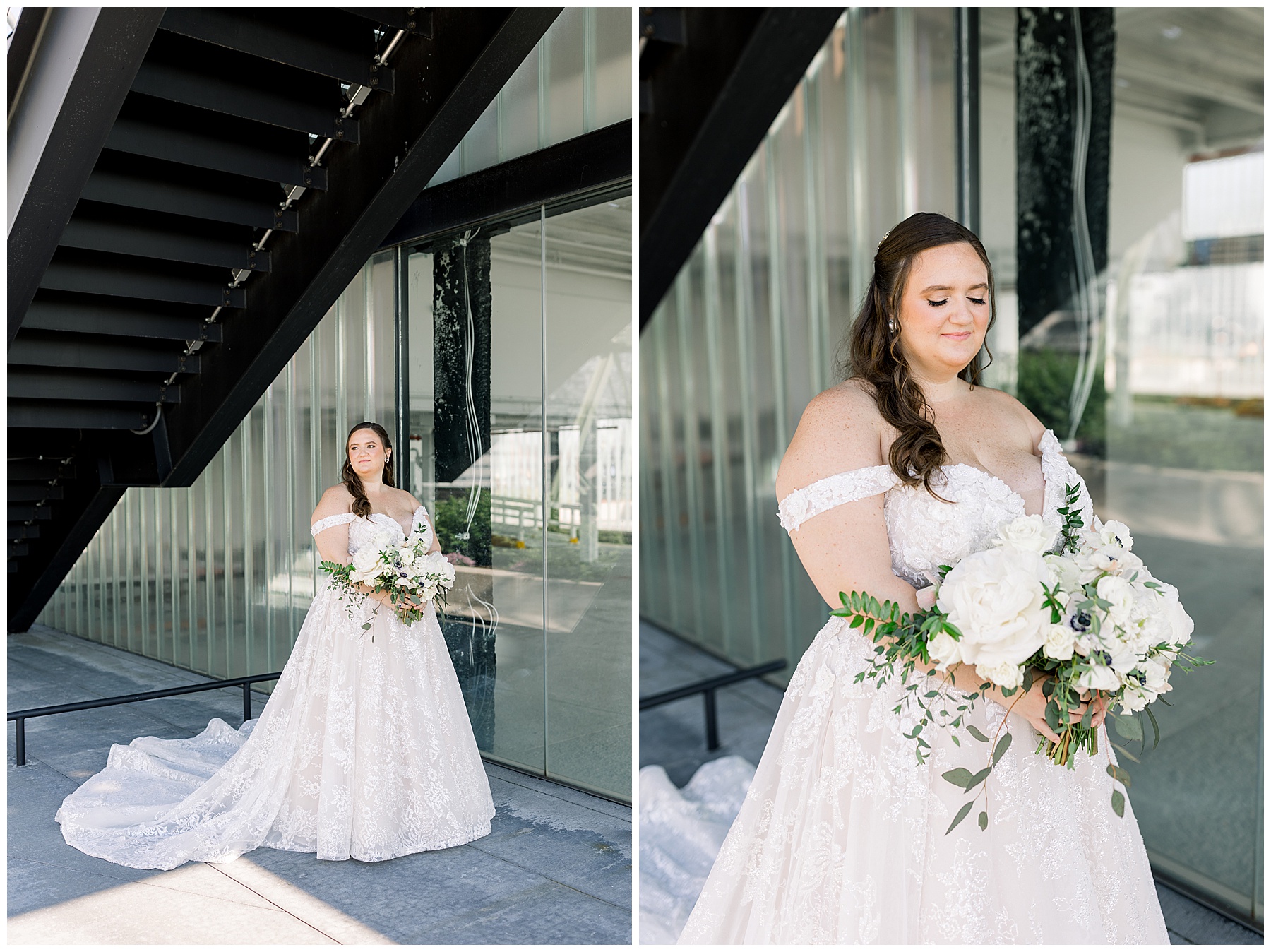 All of Carleigh’s bridesmaids were so sweet & fun, and I also loved including Carleigh’s brand-new nephew, Everette, in some of the photos! The Empire Suite’s black/white interior was a perfect compliment to their wedding color palette! Next, we headed over to the venue to photograph all the Bridesmaids photos, and found the coolest black staircase to incorporate more of the black color scheme & city/urban vibes into the photos. (Plus thank GOD for the shade!!!) I just love how unique those photos turned out! :)