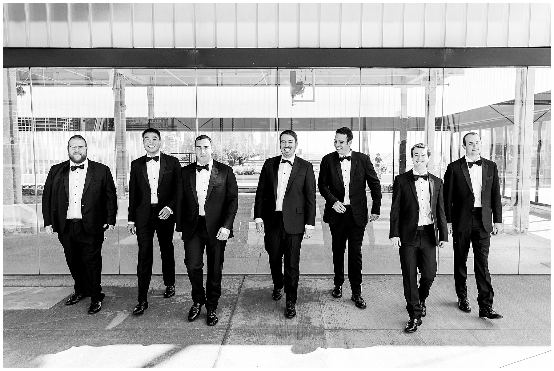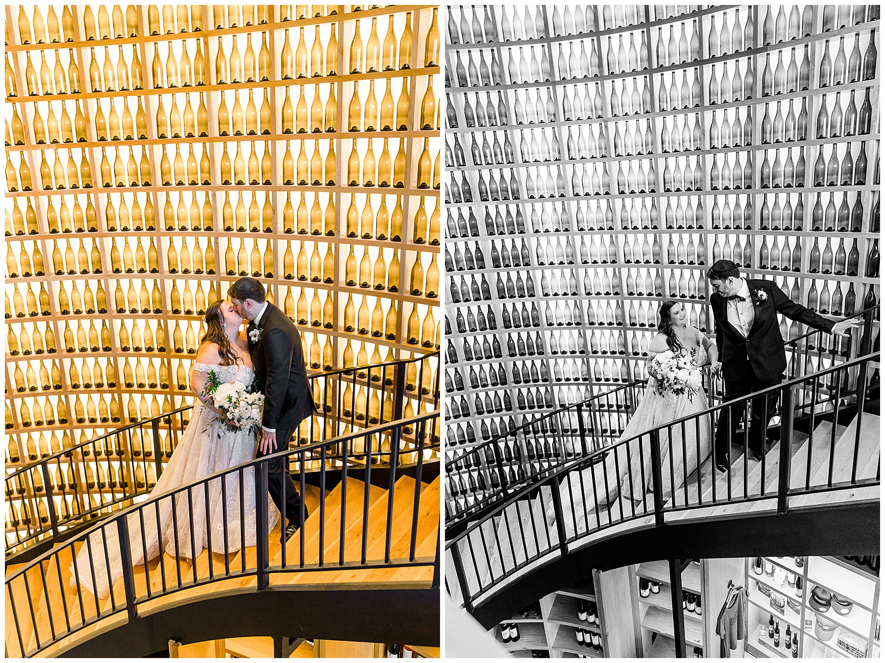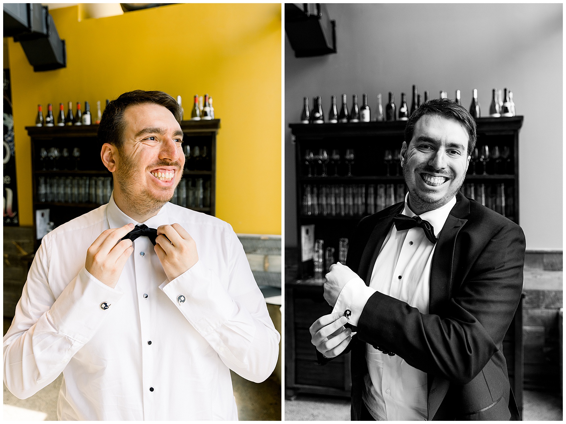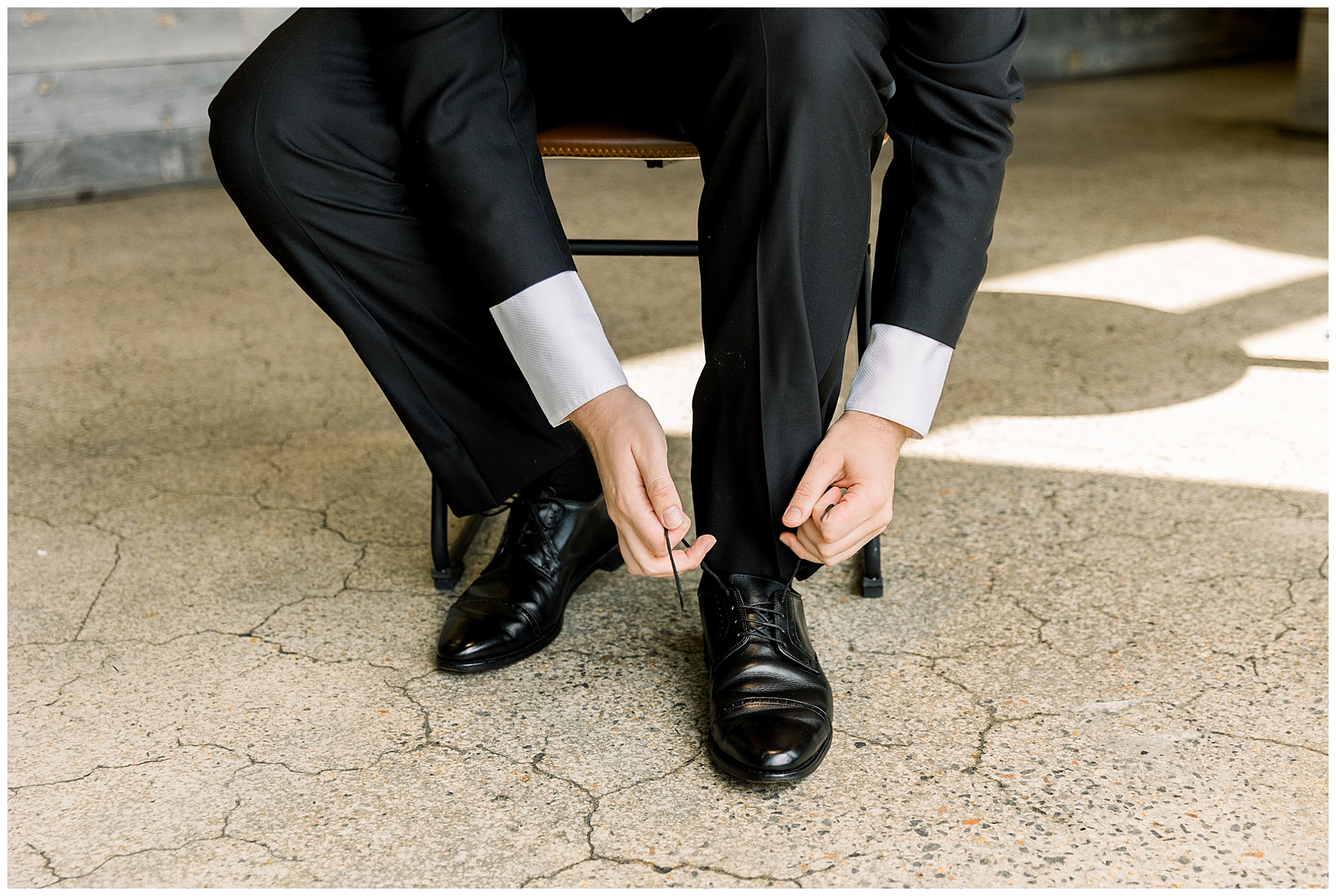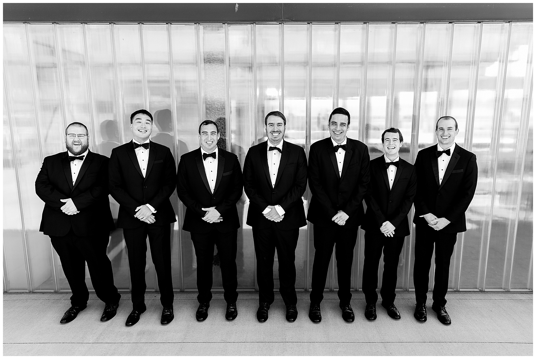 All of Carleigh’s bridesmaids were so sweet & fun, and I also loved including Carleigh’s brand-new nephew, Everette, in some of the photos! The Empire Suite’s black/white interior was a perfect compliment to their wedding color palette! Next, we headed over to the venue to photograph all the Bridesmaids photos, and found the coolest black staircase to incorporate more of the black color scheme & city/urban vibes into the photos. (Plus thank GOD for the shade!!!) I just love how unique those photos turned out! :)