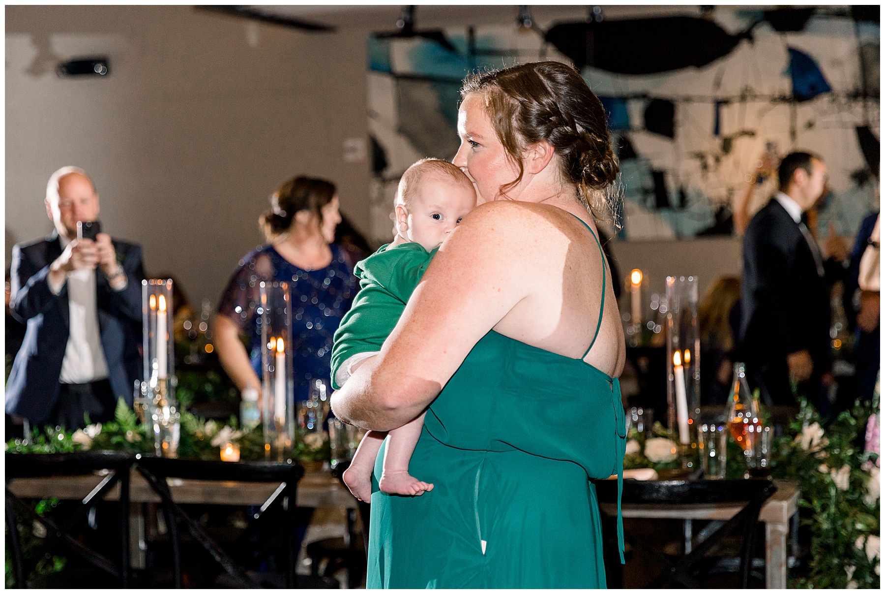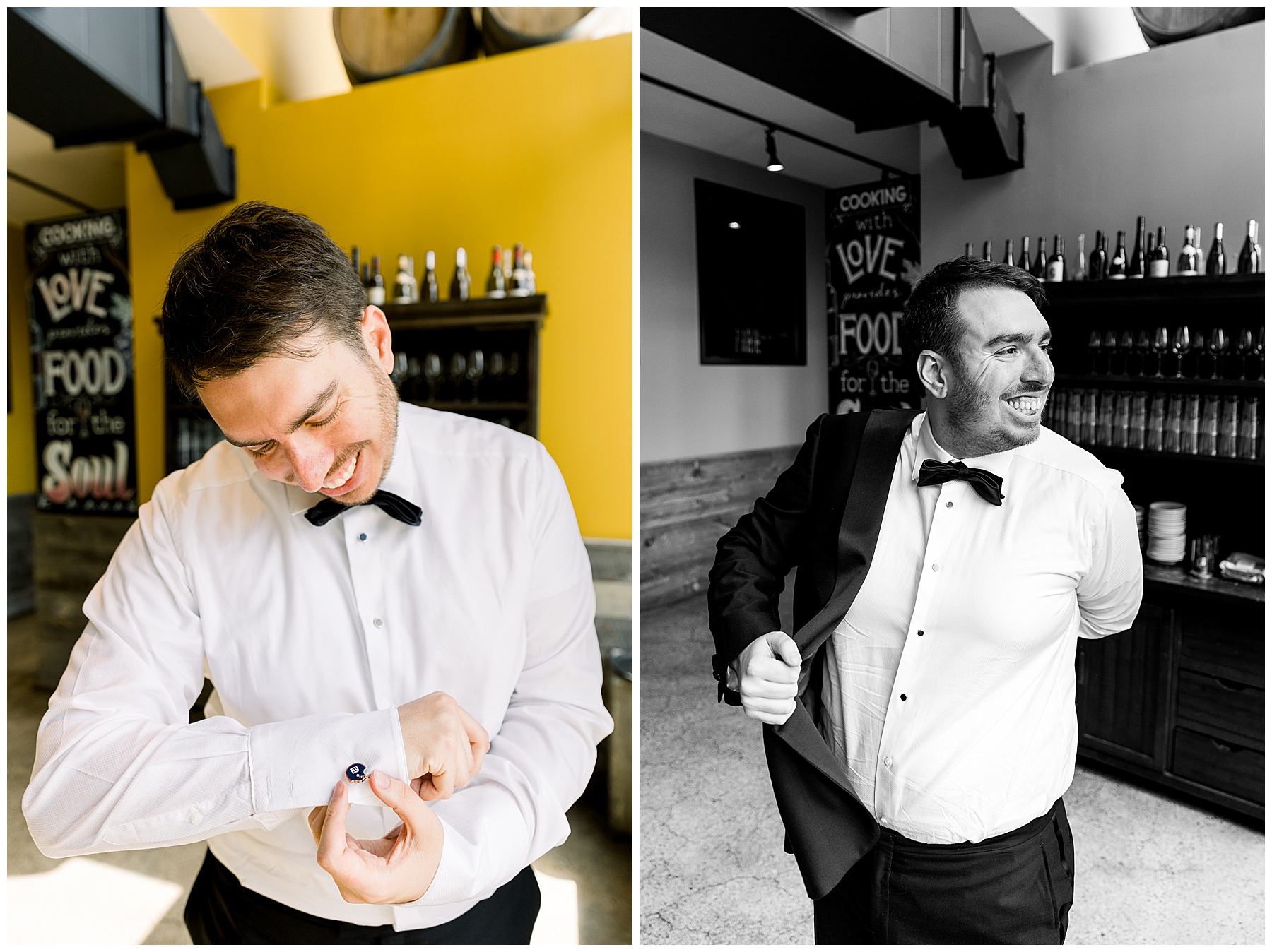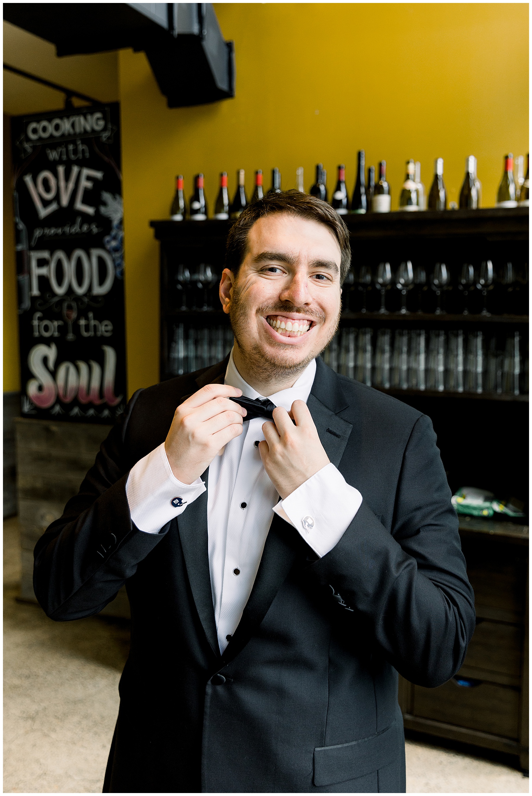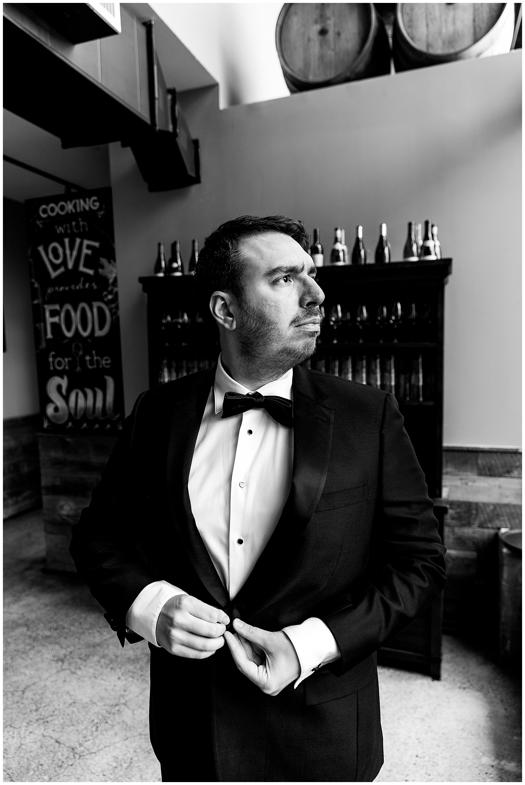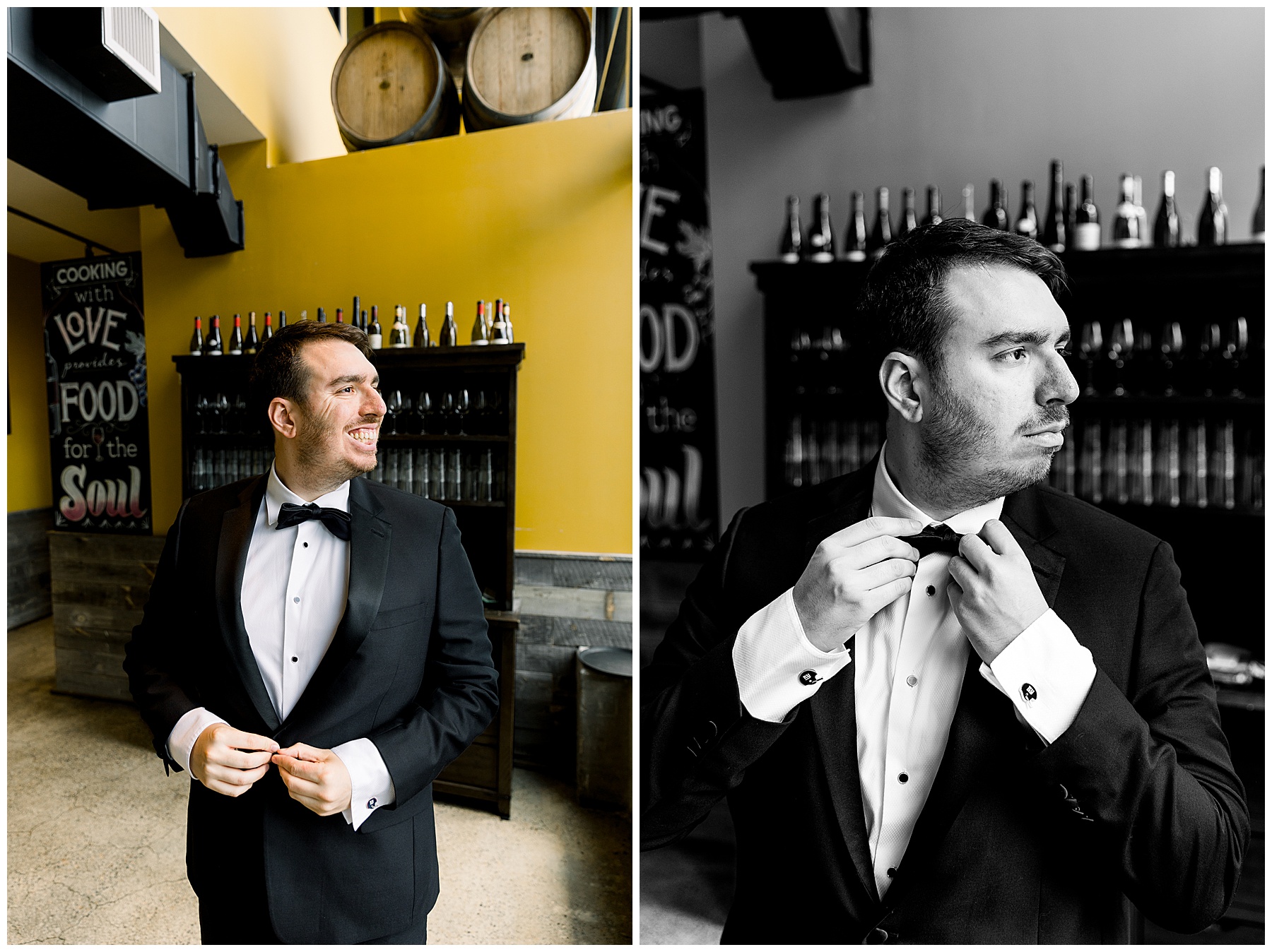 All of Carleigh’s bridesmaids were so sweet & fun, and I also loved including Carleigh’s brand-new nephew, Everette, in some of the photos! The Empire Suite’s black/white interior was a perfect compliment to their wedding color palette! Next, we headed over to the venue to photograph all the Bridesmaids photos, and found the coolest black staircase to incorporate more of the black color scheme & city/urban vibes into the photos. (Plus thank GOD for the shade!!!) I just love how unique those photos turned out! :)