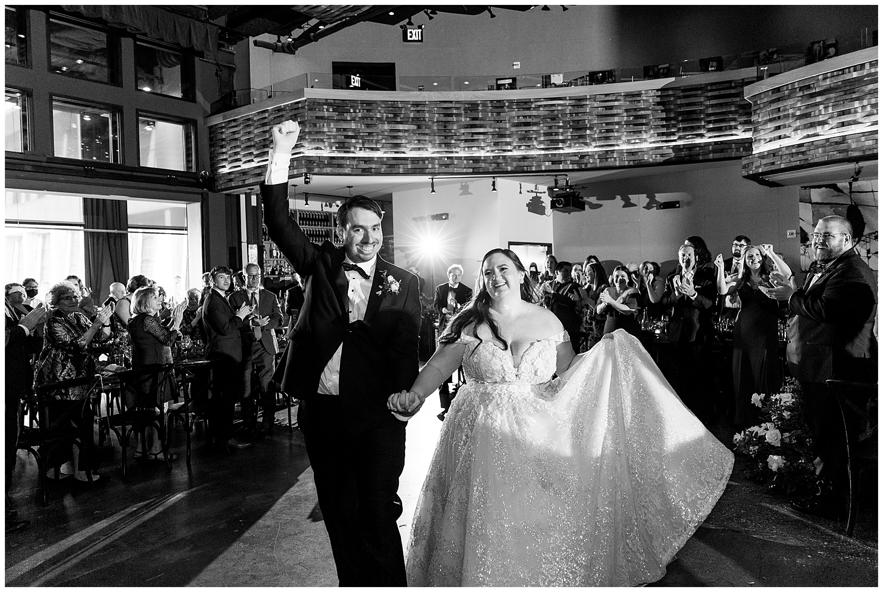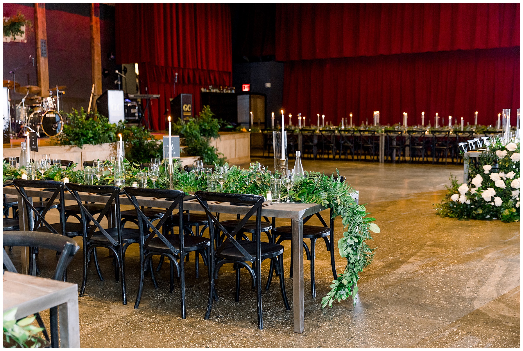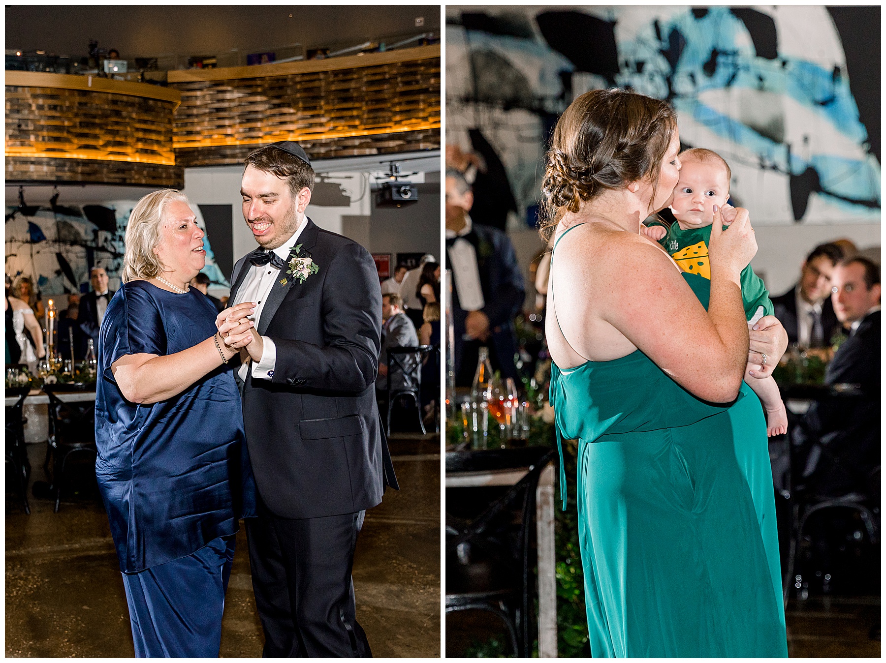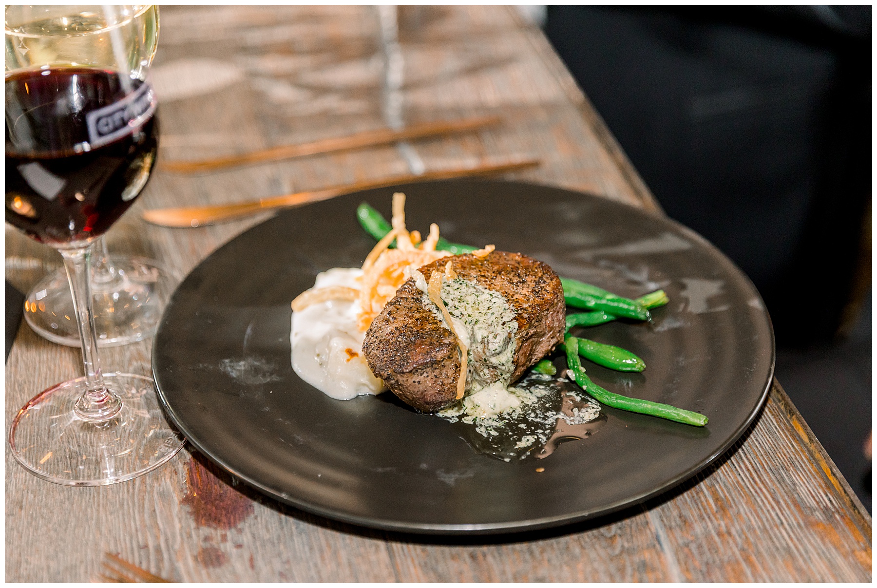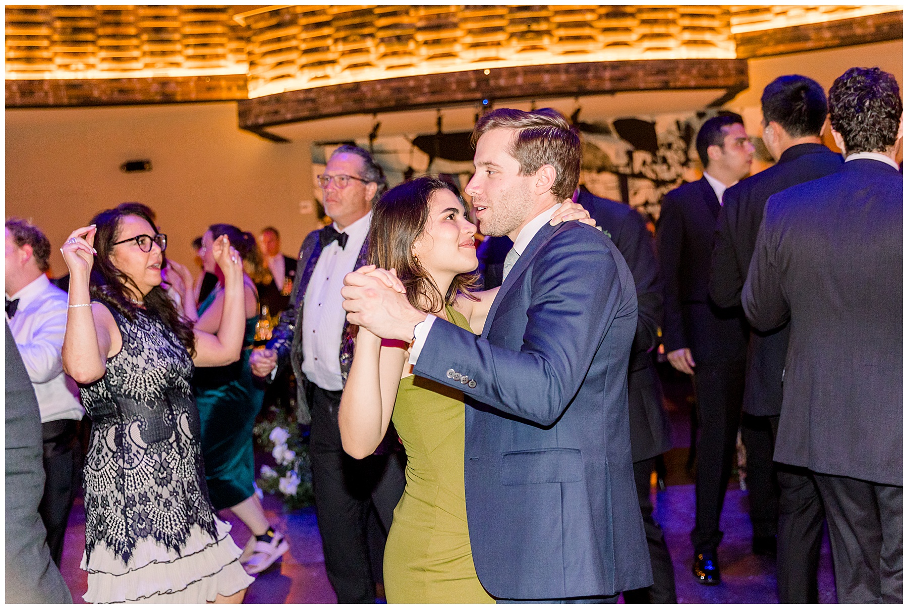 City Winery was transformed from the night before being a concert venue – into a beautiful Jewish wedding ceremony space. The chuppah was covered in greenery & white roses, and I especially loved how the stairs up to the stage were covered in greenery – so romantic. We had educated ourselves in some of the Jewish wedding traditions, and were excited to experience our first Jewish ceremony. There is so much tradition and family included into the ceremony – making it so meaningful and special. All the guests laughed when Carleigh & Ian had chosen a line from a Beyonce song to be quoted during the ceremony – and the whole ceremony was just really custom to be 100% “them”. Ian was most looking forward to stomping on the glass (be sure to see their beautiful custom glass they had made especially for this!)