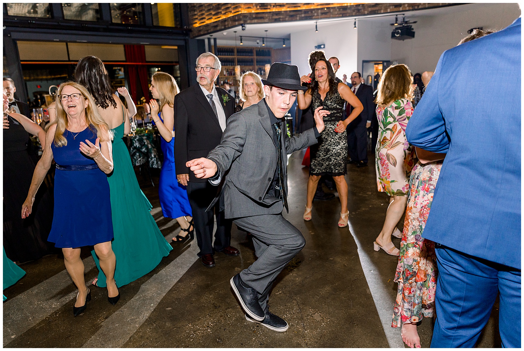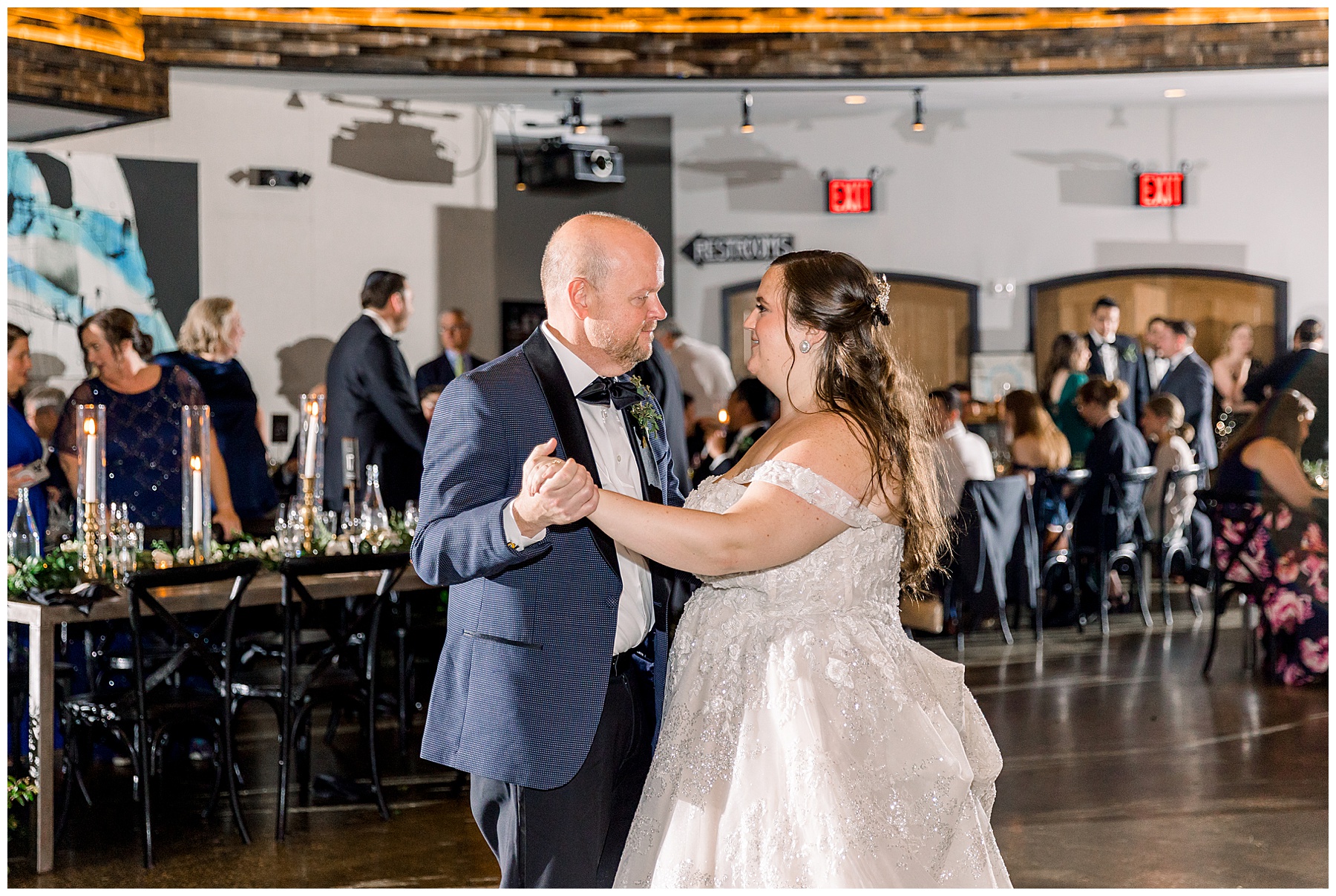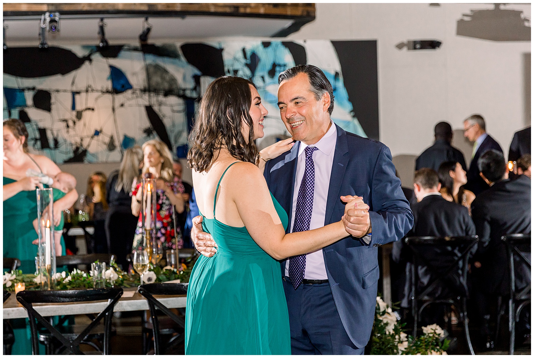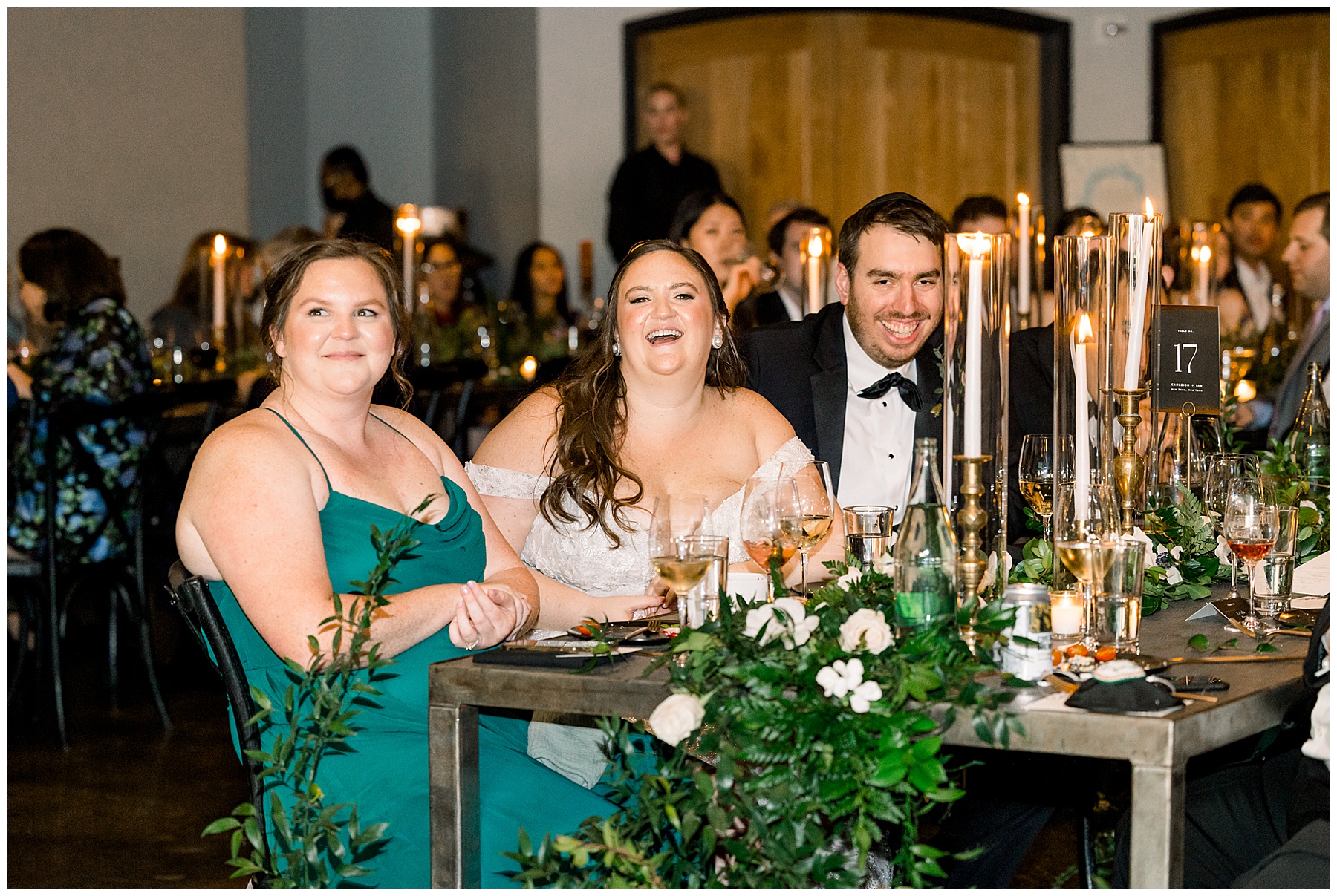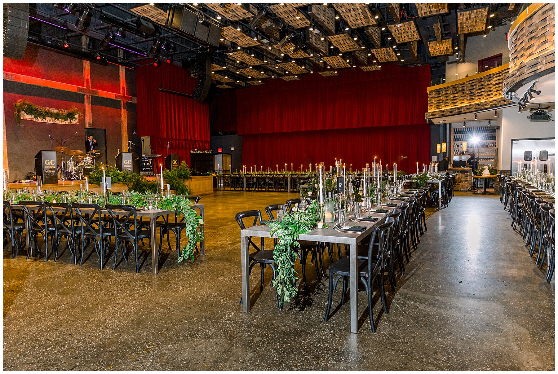City Winery was transformed from the night before being a concert venue – into a beautiful Jewish wedding ceremony space. The chuppah was covered in greenery & white roses, and I especially loved how the stairs up to the stage were covered in greenery – so romantic. We had educated ourselves in some of the Jewish wedding traditions, and were excited to experience our first Jewish ceremony. There is so much tradition and family included into the ceremony – making it so meaningful and special. All the guests laughed when Carleigh & Ian had chosen a line from a Beyonce song to be quoted during the ceremony – and the whole ceremony was just really custom to be 100% “them”. Ian was most looking forward to stomping on the glass (be sure to see their beautiful custom glass they had made especially for this!)
