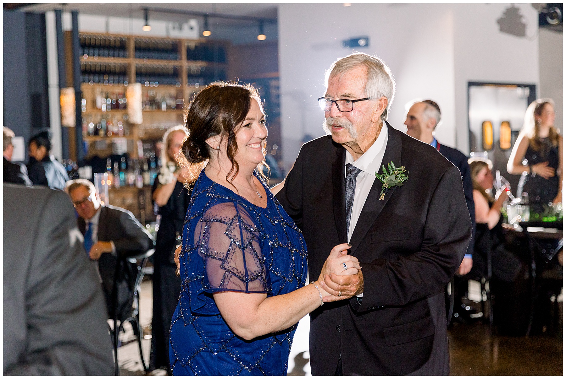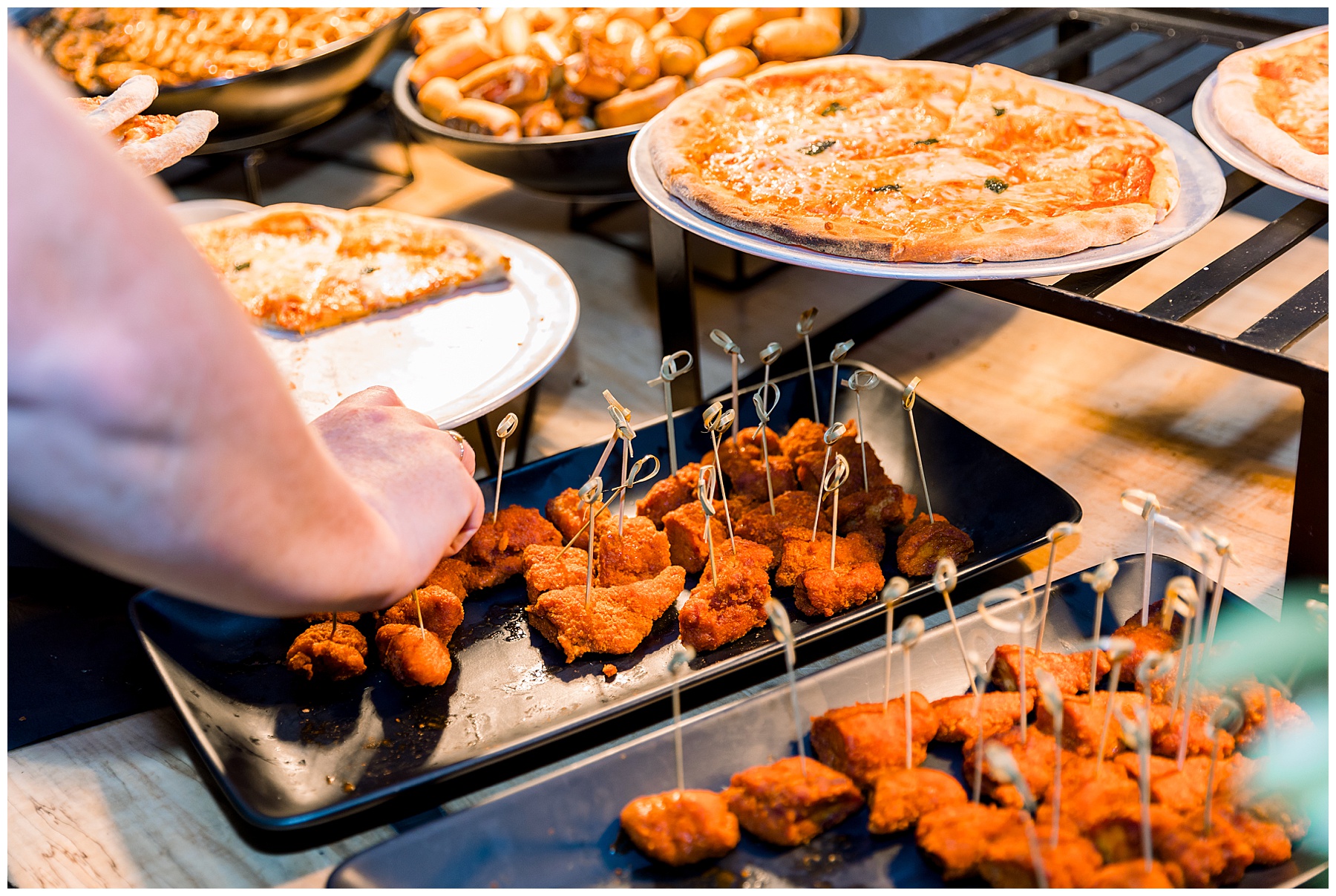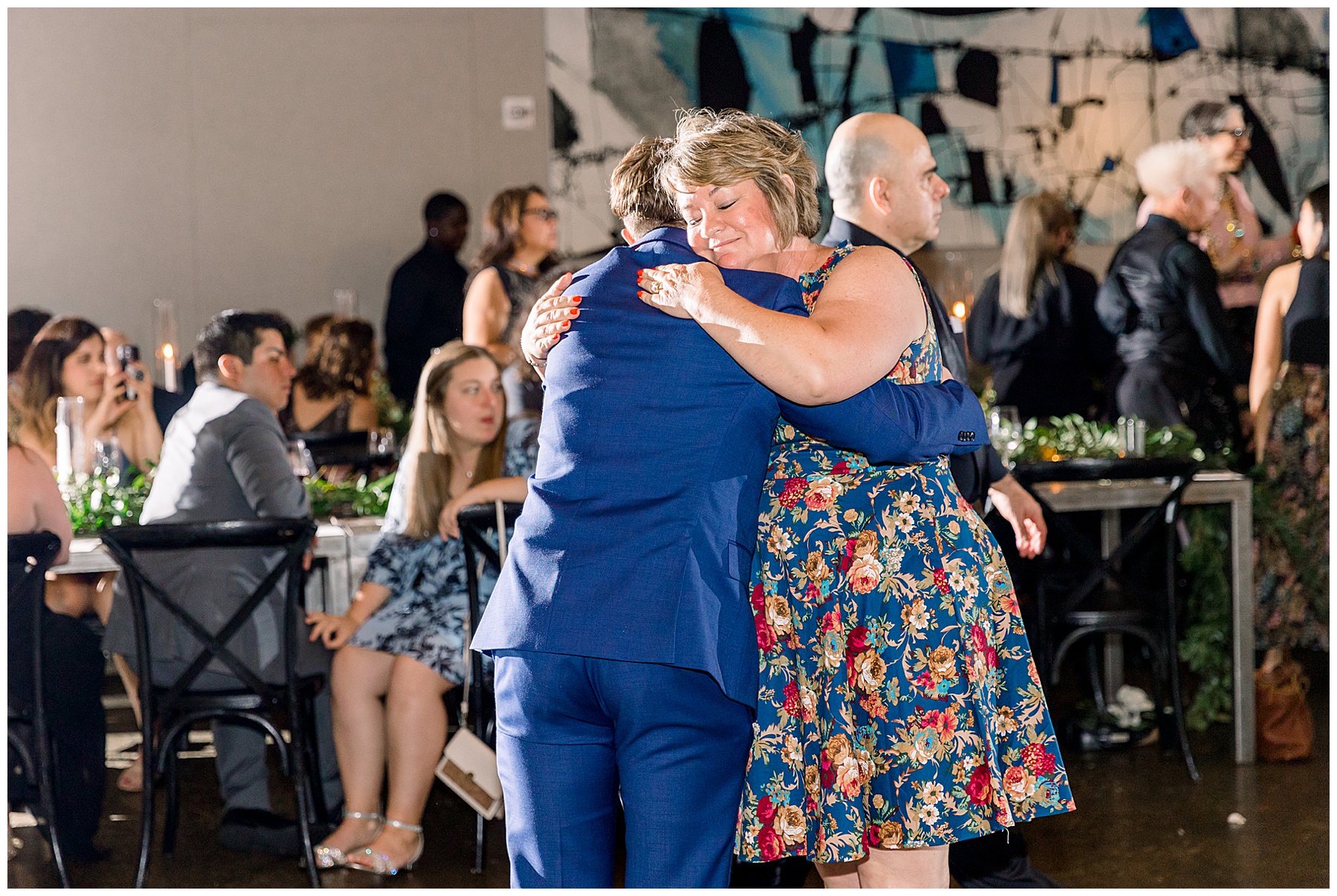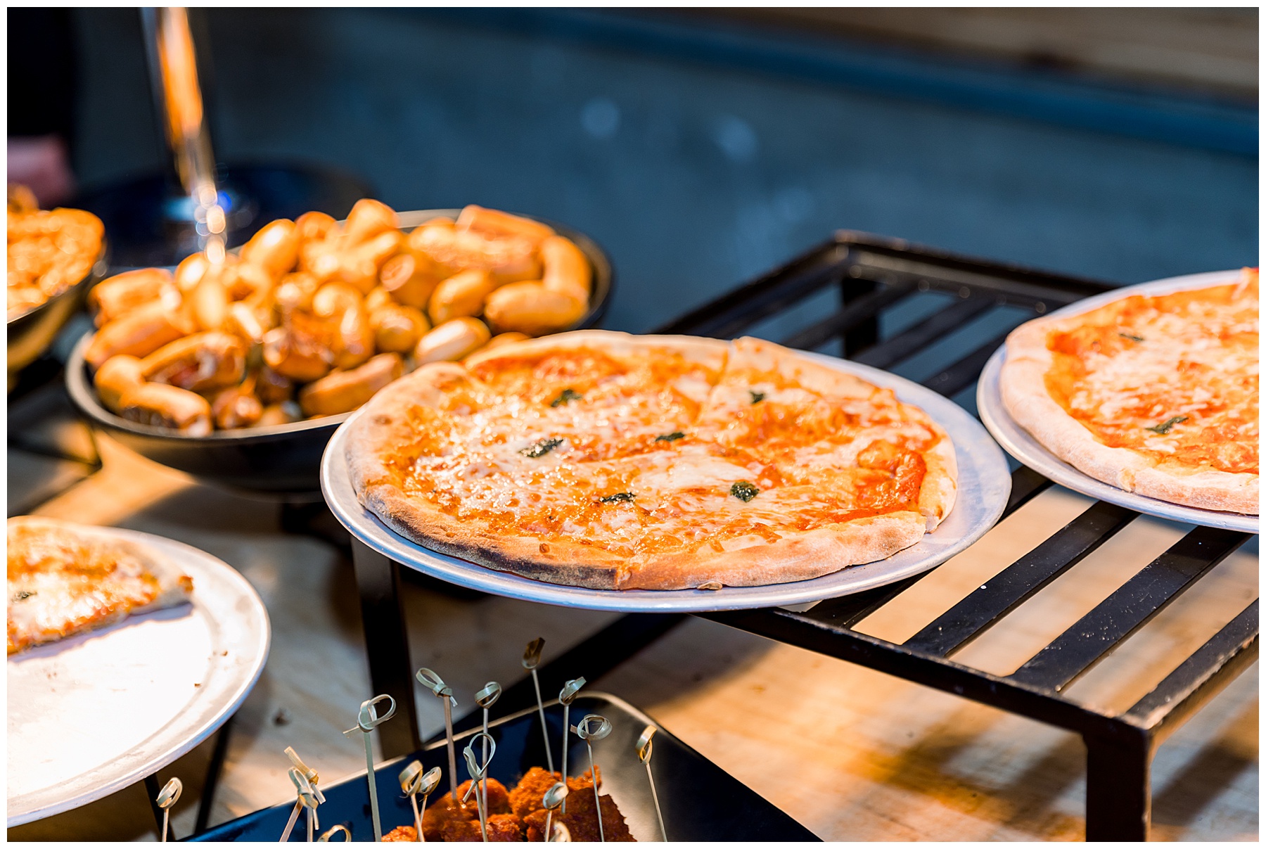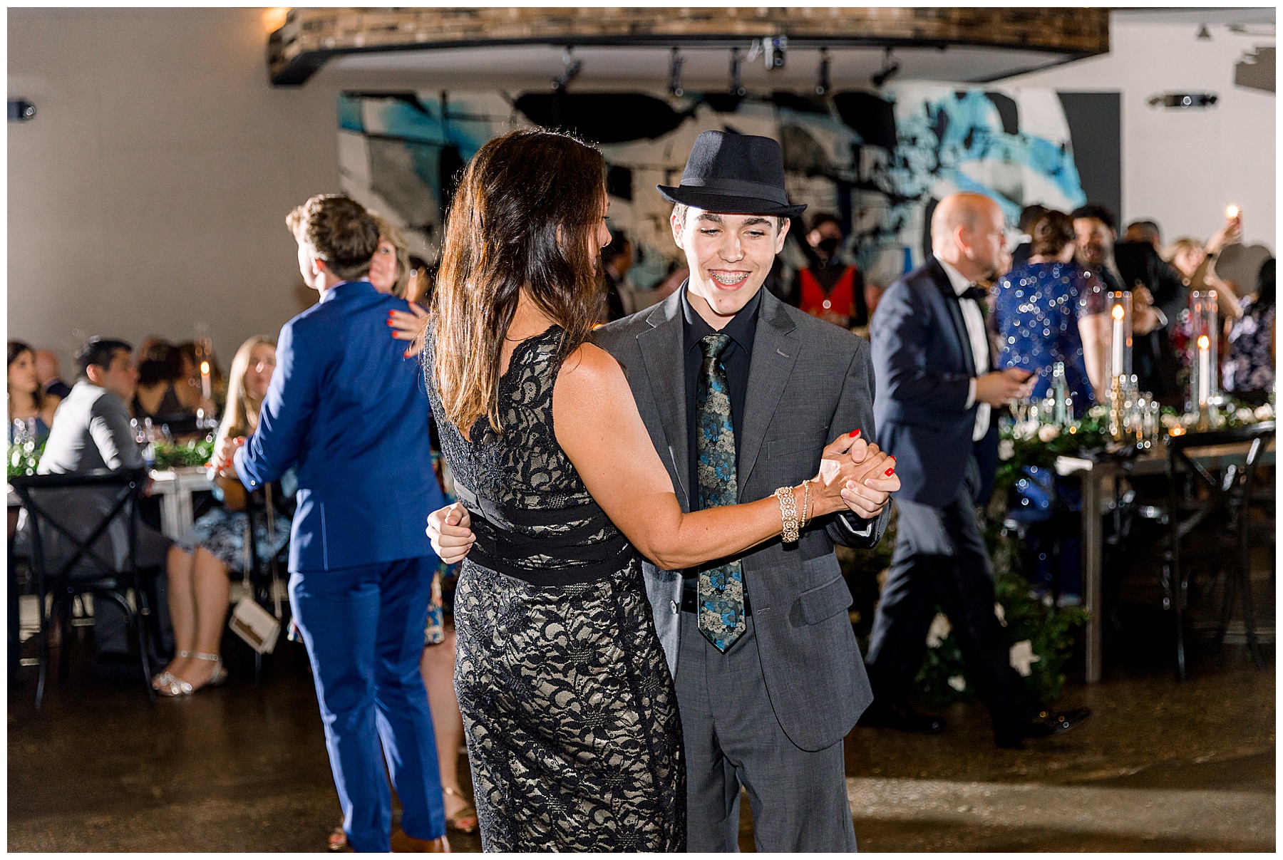 City Winery was transformed from the night before being a concert venue – into a beautiful Jewish wedding ceremony space. The chuppah was covered in greenery & white roses, and I especially loved how the stairs up to the stage were covered in greenery – so romantic. We had educated ourselves in some of the Jewish wedding traditions, and were excited to experience our first Jewish ceremony. There is so much tradition and family included into the ceremony – making it so meaningful and special. All the guests laughed when Carleigh & Ian had chosen a line from a Beyonce song to be quoted during the ceremony – and the whole ceremony was just really custom to be 100% “them”. Ian was most looking forward to stomping on the glass (be sure to see their beautiful custom glass they had made especially for this!)