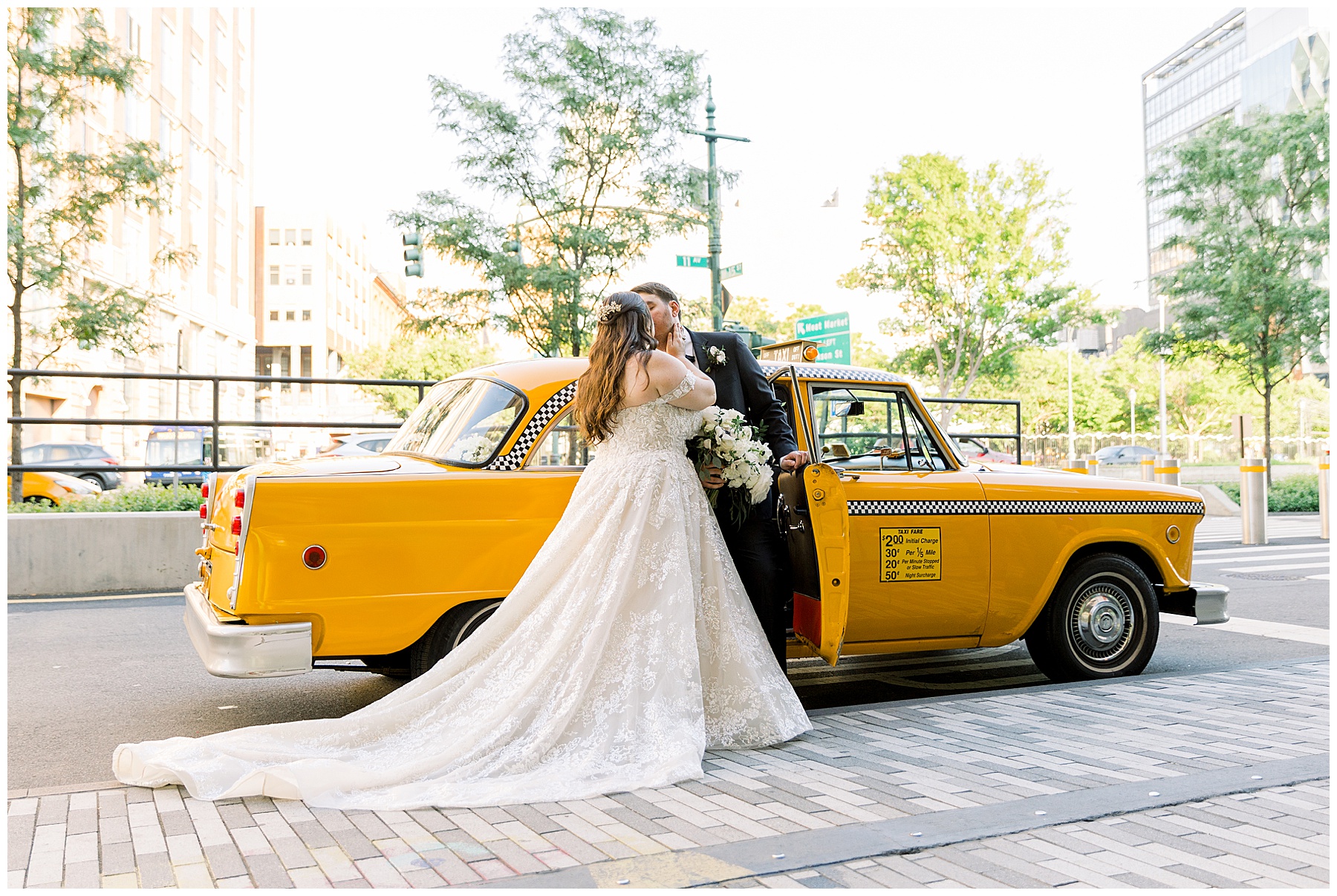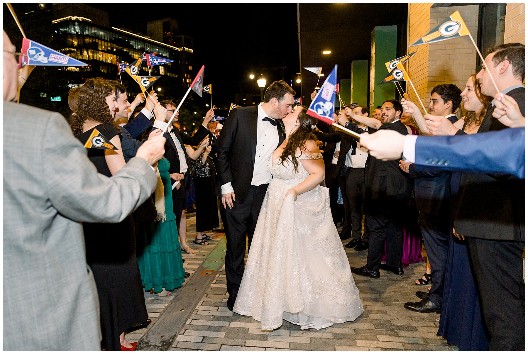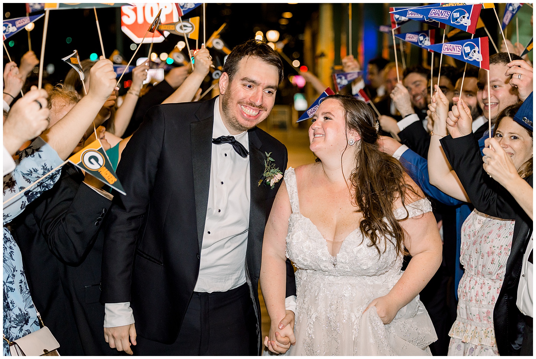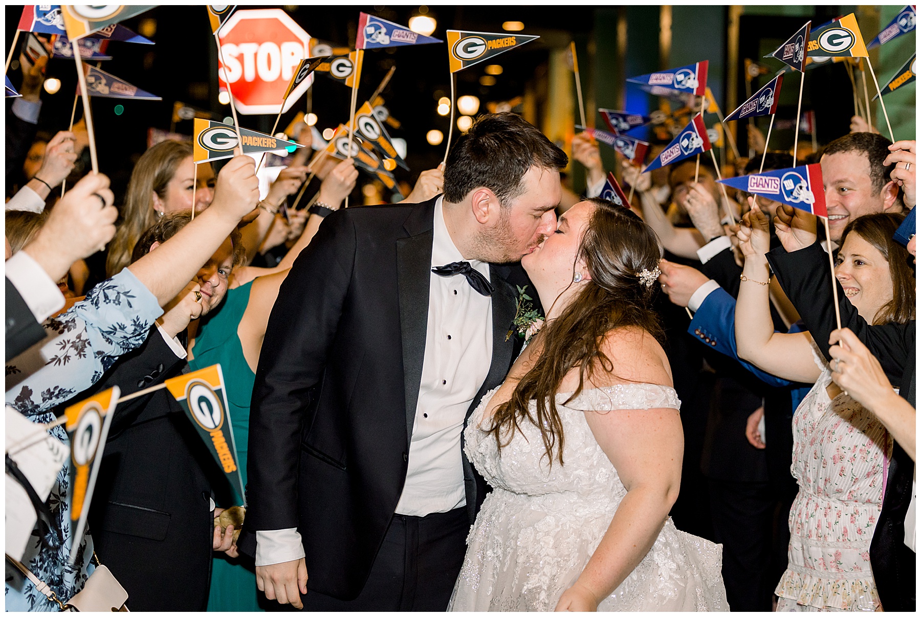 The night went by so fast – and the band ended the reception by bringing Ian & Carleigh up onto the stage for the last song. It was such a PARTY, and I loved how it felt like an encore. Then it was time for Ian & Carleigh’s exit! True to form, they had made a unique choice of using Green Bay & Packers pennants to wave for the exit along with a NYC taxi cab for their getaway car! It was an EPIC way to end such an incredible day! We feel so proud and honored to have captured this amazing wedding for such a sweet couple. :)