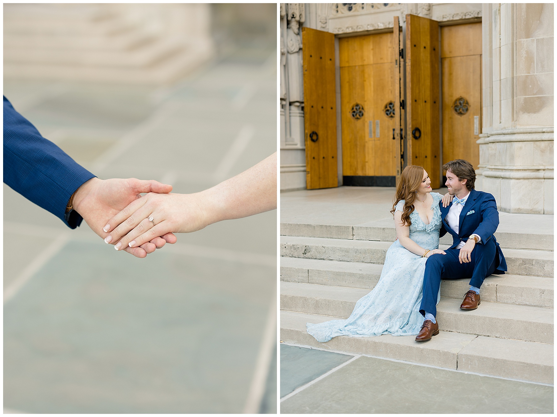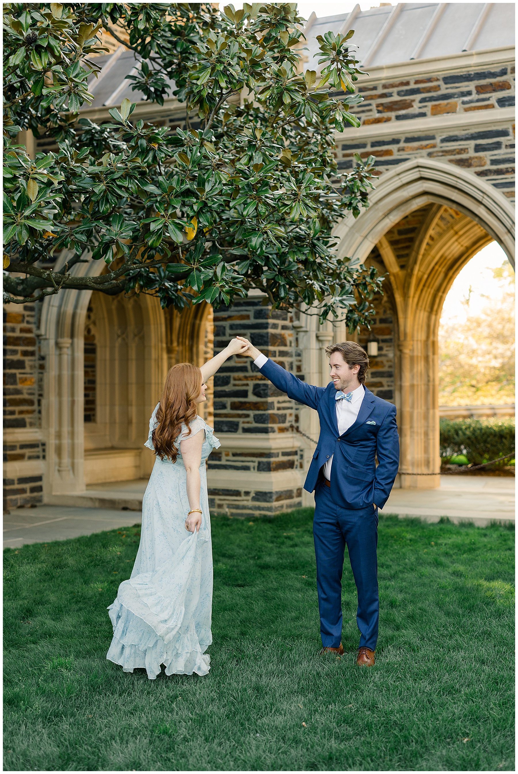 I absolutely LOVED their outfits! They looked so good together, and with the backdrops of the architecture and blossoms the outfits just popped! I really loved Caroline’s blue dress, it was so whimsical and flowed so pretty in the wind. Kodey matched her dress with a bowtie and a pocket square! Good job, ya’ll!