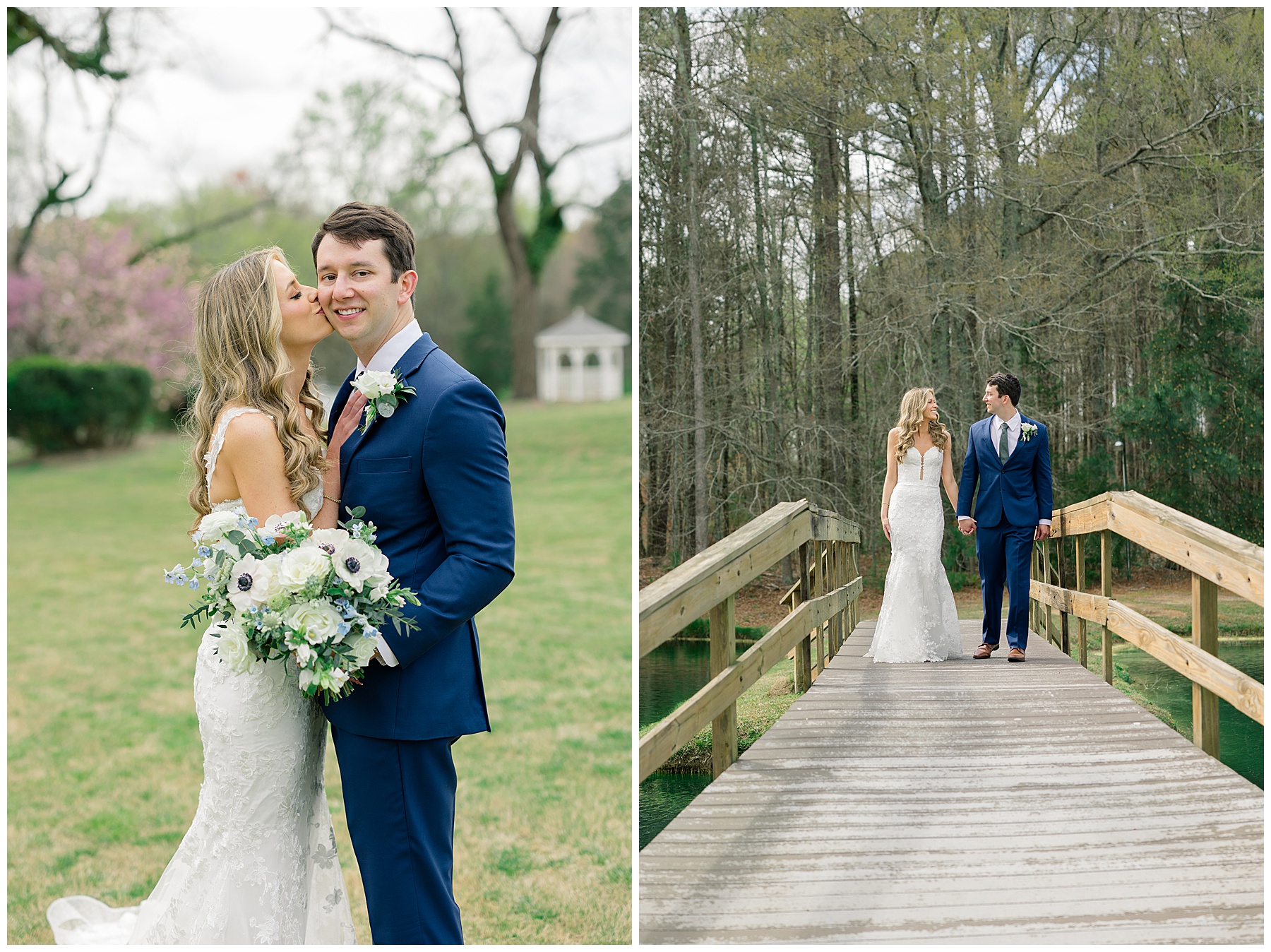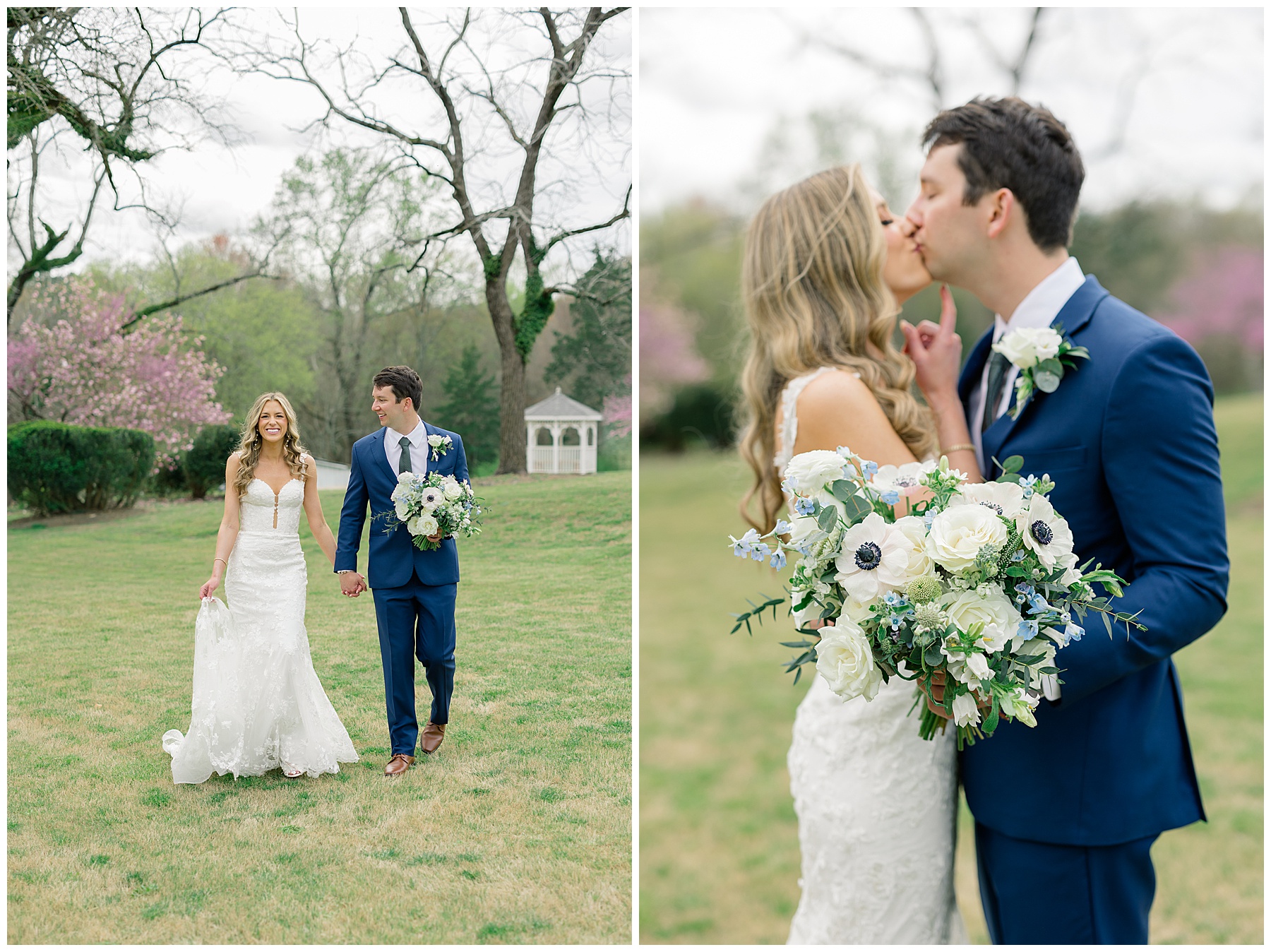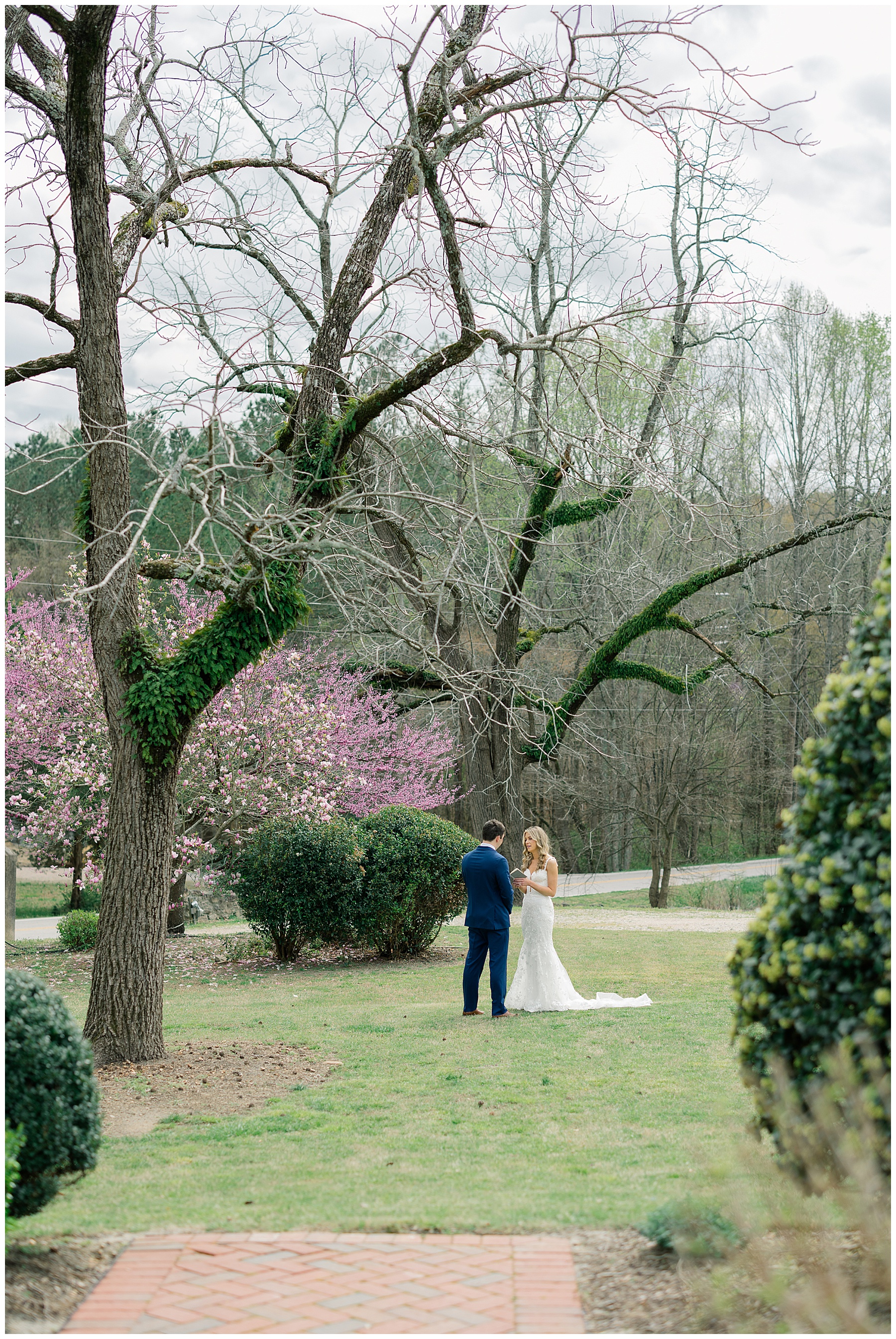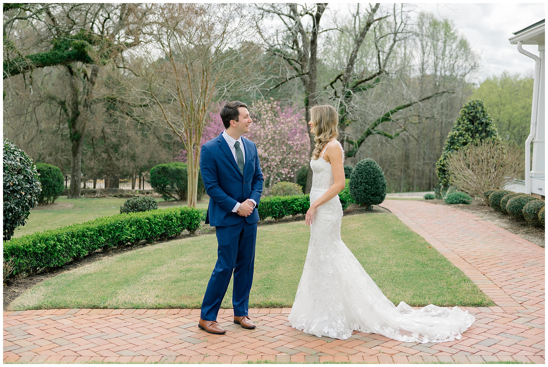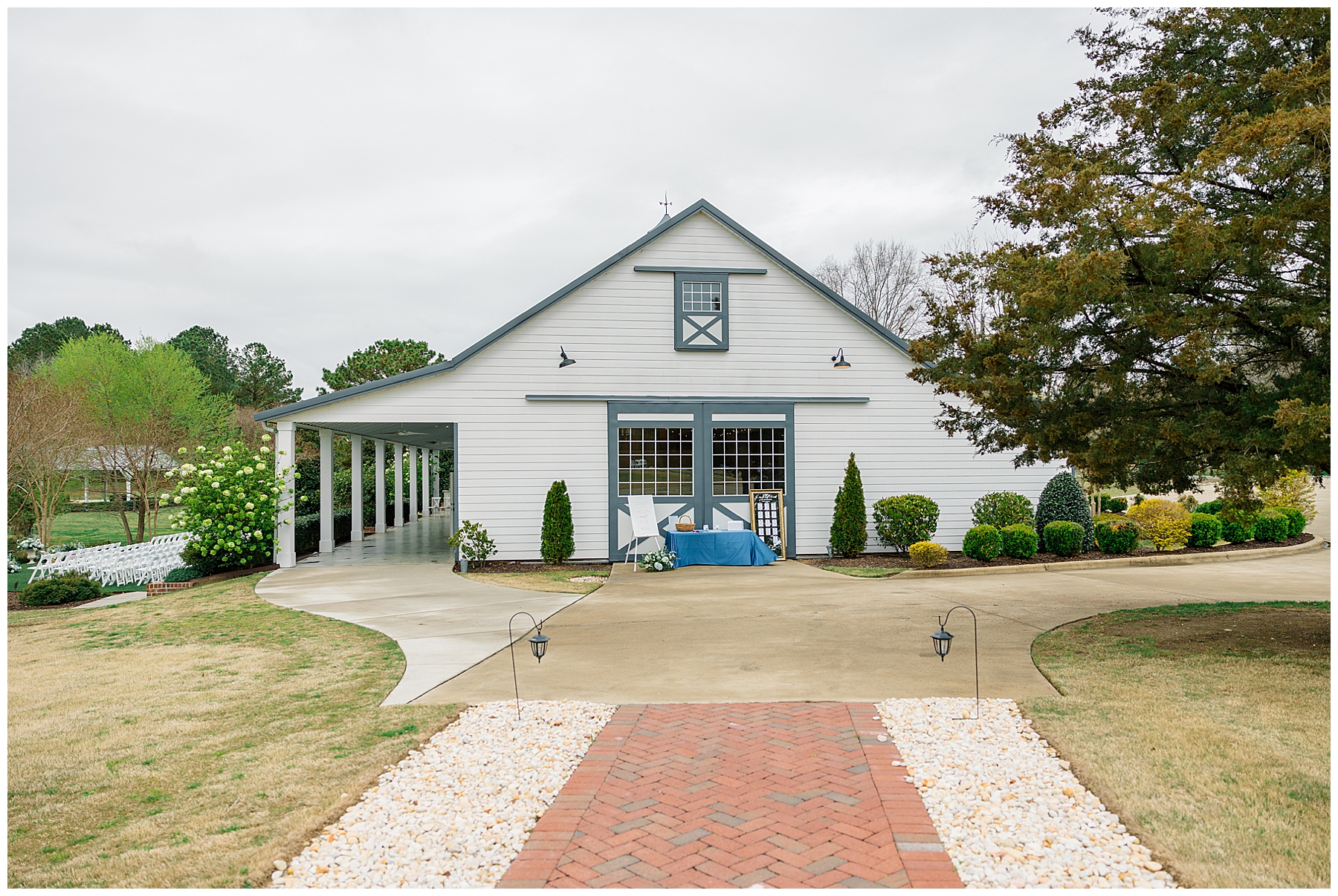After Sean & Caroline’s fun Engagement Session last year (if you missed it, click HERE for the blog!) we were SO excited to photograph them again for their wedding day! I was watching the weather all week long, and sadly Saturday was forecasting a 90% chance of rain all day. NC was due for some rain to wash away all our pollen, but ideally not a washout on their wedding day! The night before the decision was made to move to their “Plan B” – a covered ceremony. It was raining when we woke up Saturday morning, and sprinkled on the way to Walnut Hill. But once we arrived… not a SINGLE DROP of rain happened all day!!! We even had sunshine for parts of the day peeking out from behind the clouds! It was amazing. So many prayers were answered! Their incredible planner, Trent, made a new decision to move back to Plan A, for an outdoor ceremony. YAY!