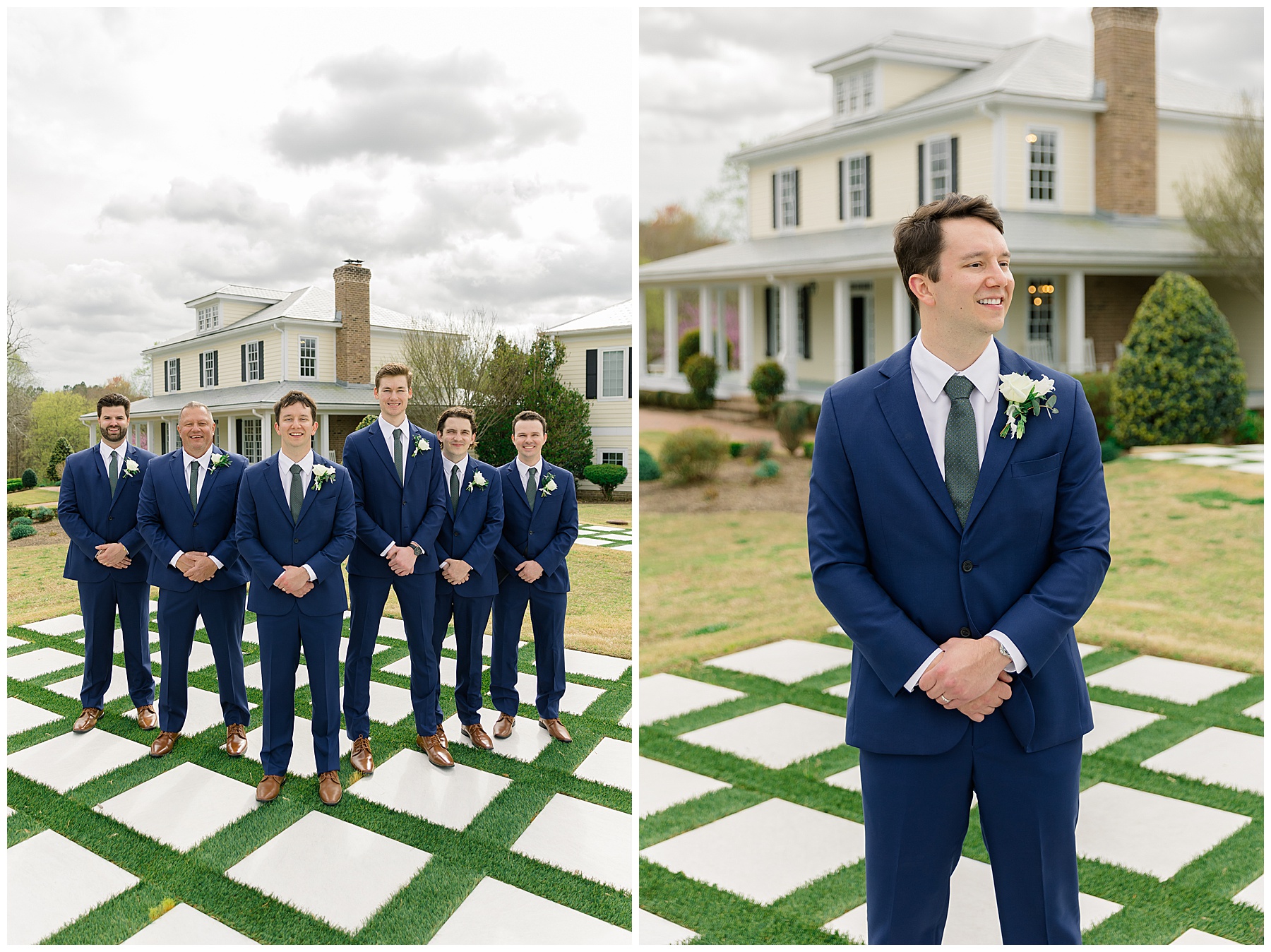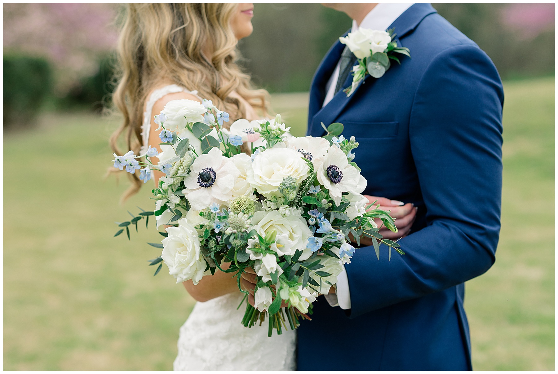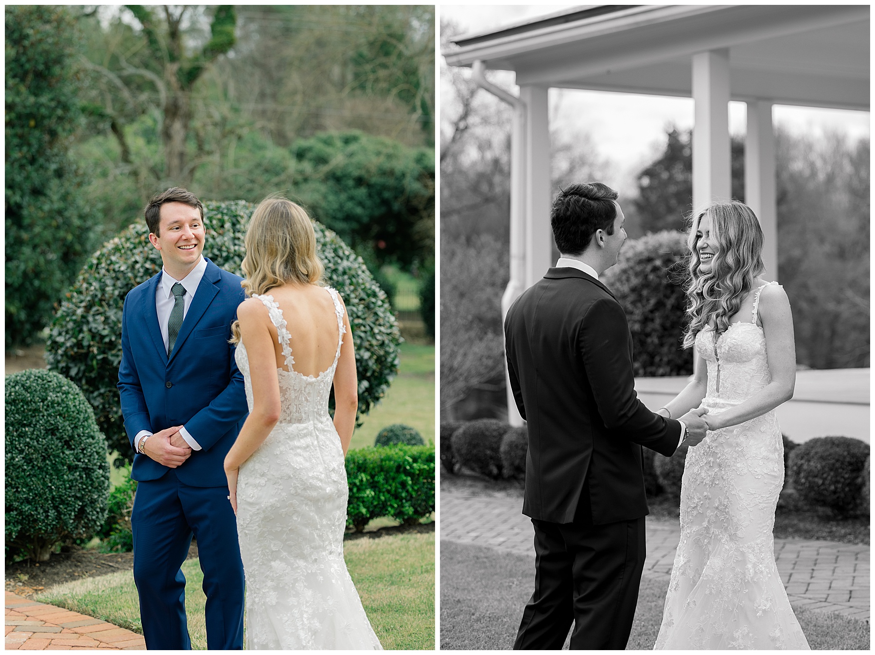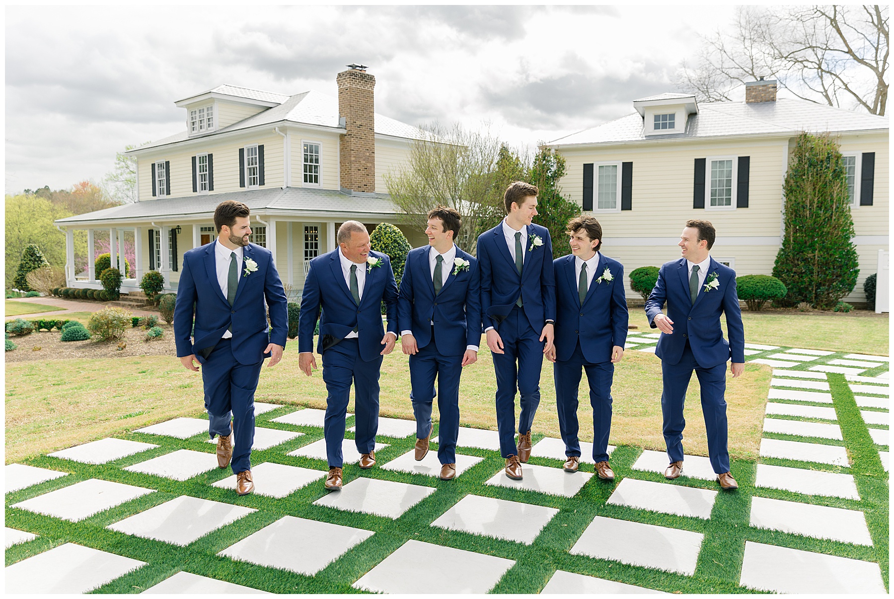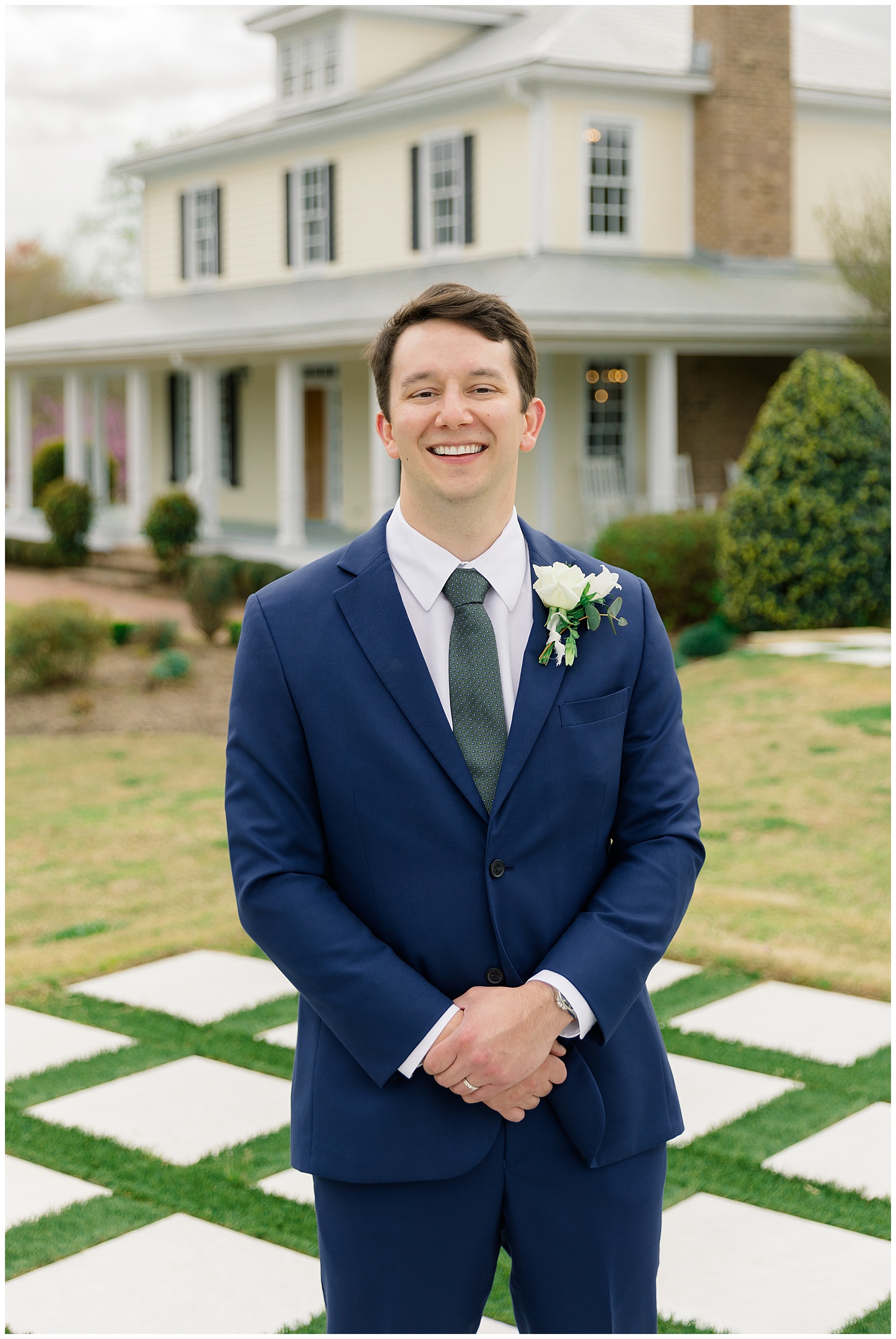 After Sean & Caroline’s fun Engagement Session last year (if you missed it, click HERE for the blog!) we were SO excited to photograph them again for their wedding day! I was watching the weather all week long, and sadly Saturday was forecasting a 90% chance of rain all day. NC was due for some rain to wash away all our pollen, but ideally not a washout on their wedding day! The night before the decision was made to move to their “Plan B” – a covered ceremony. It was raining when we woke up Saturday morning, and sprinkled on the way to Walnut Hill. But once we arrived… not a SINGLE DROP of rain happened all day!!! We even had sunshine for parts of the day peeking out from behind the clouds! It was amazing. So many prayers were answered! Their incredible planner, Trent, made a new decision to move back to Plan A, for an outdoor ceremony. YAY!