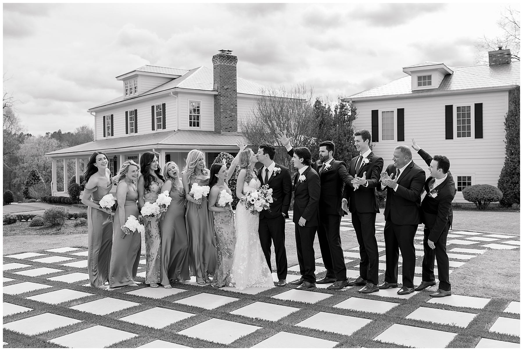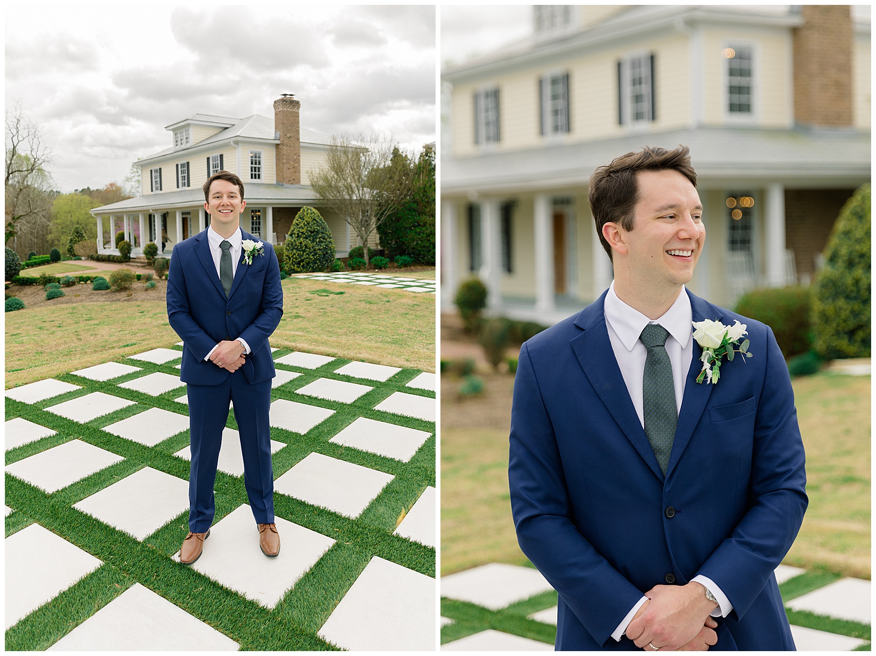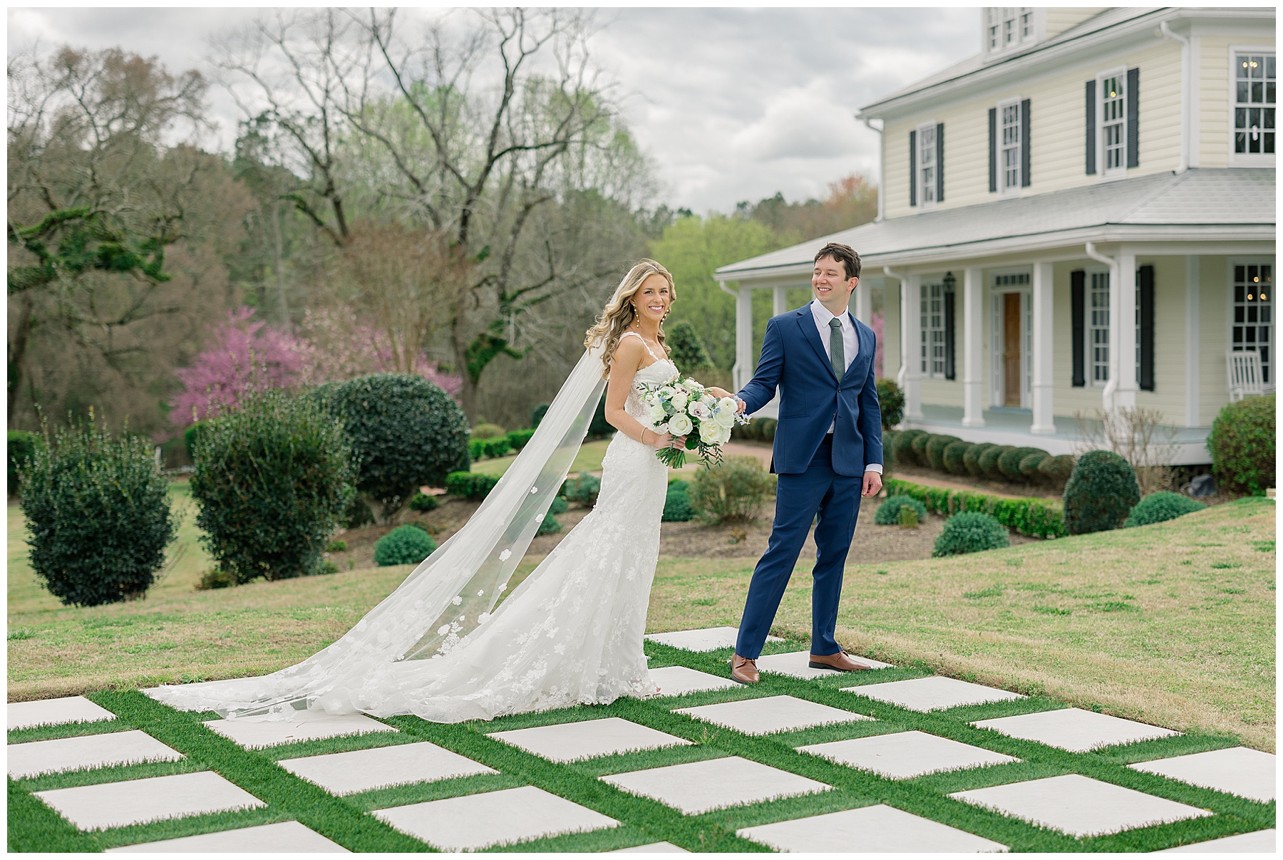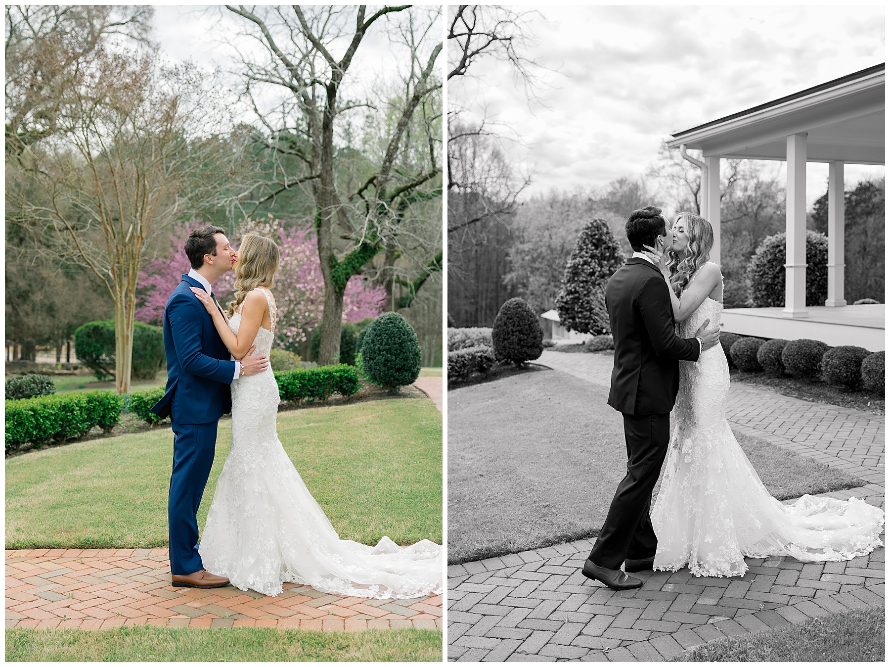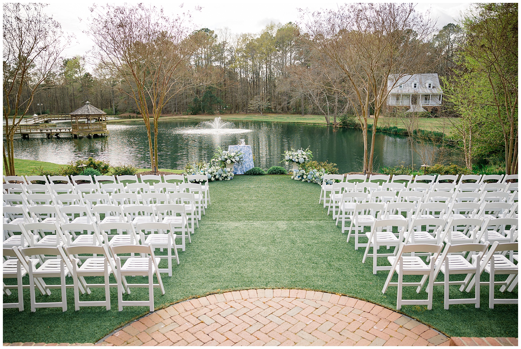 After Sean & Caroline’s fun Engagement Session last year (if you missed it, click HERE for the blog!) we were SO excited to photograph them again for their wedding day! I was watching the weather all week long, and sadly Saturday was forecasting a 90% chance of rain all day. NC was due for some rain to wash away all our pollen, but ideally not a washout on their wedding day! The night before the decision was made to move to their “Plan B” – a covered ceremony. It was raining when we woke up Saturday morning, and sprinkled on the way to Walnut Hill. But once we arrived… not a SINGLE DROP of rain happened all day!!! We even had sunshine for parts of the day peeking out from behind the clouds! It was amazing. So many prayers were answered! Their incredible planner, Trent, made a new decision to move back to Plan A, for an outdoor ceremony. YAY!