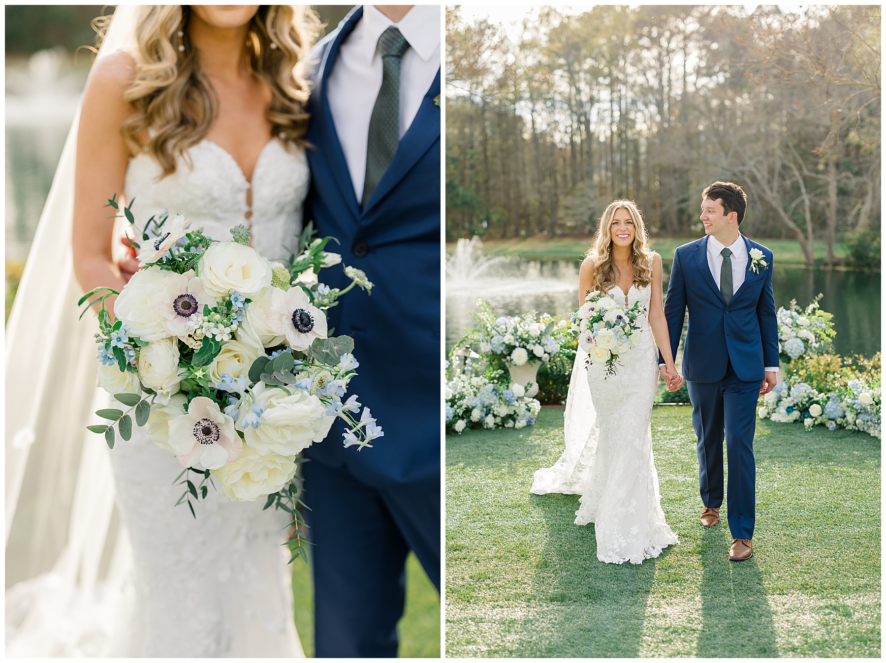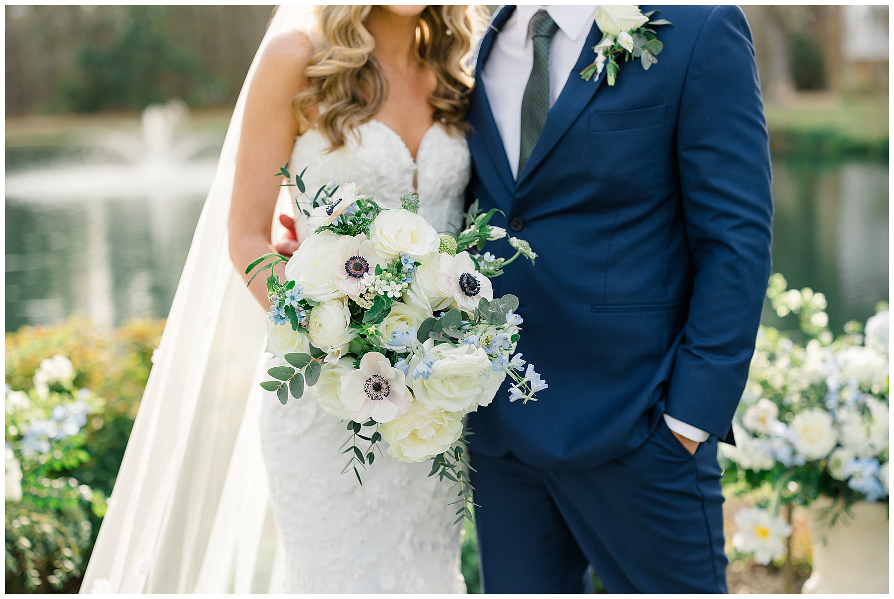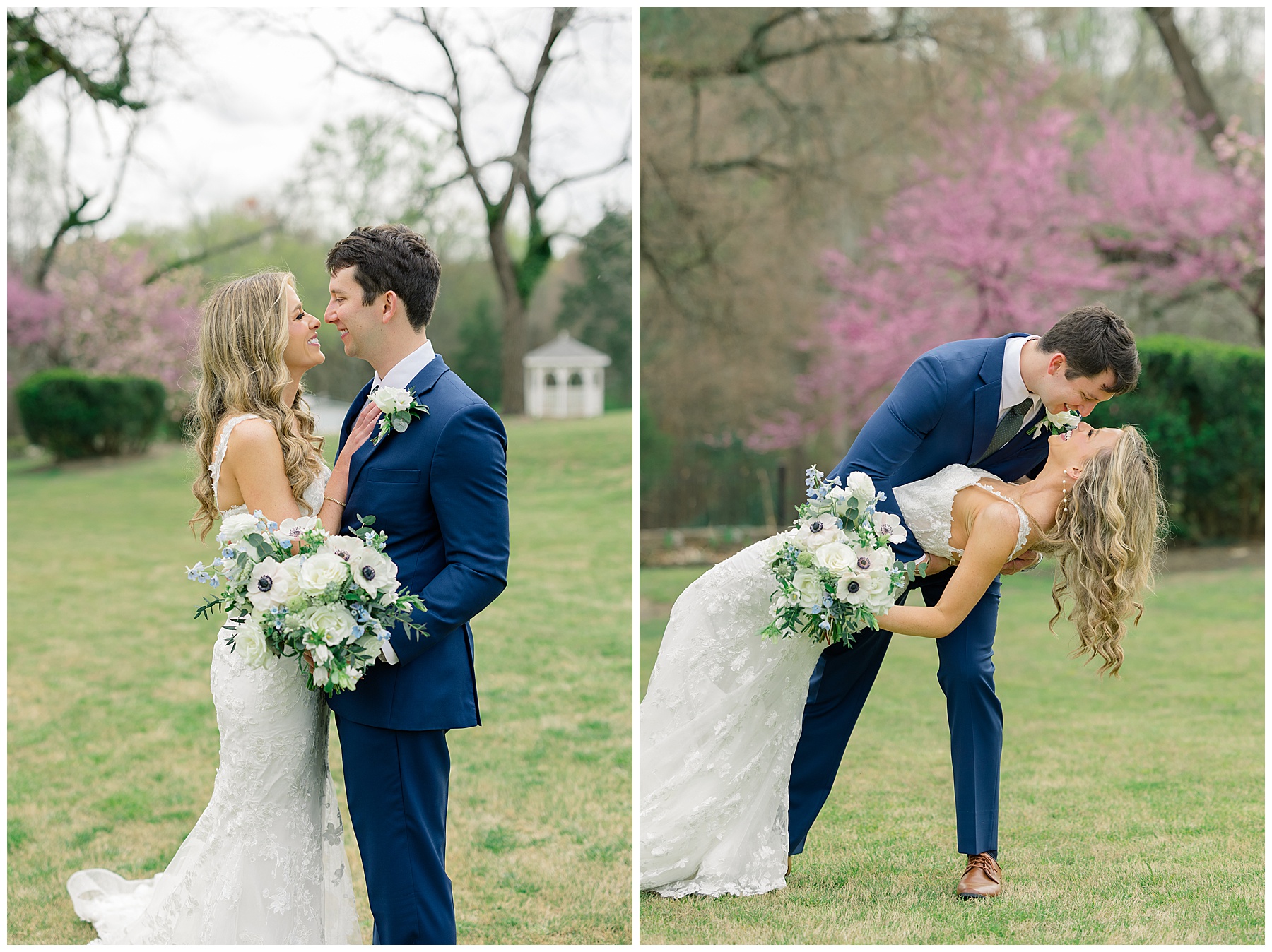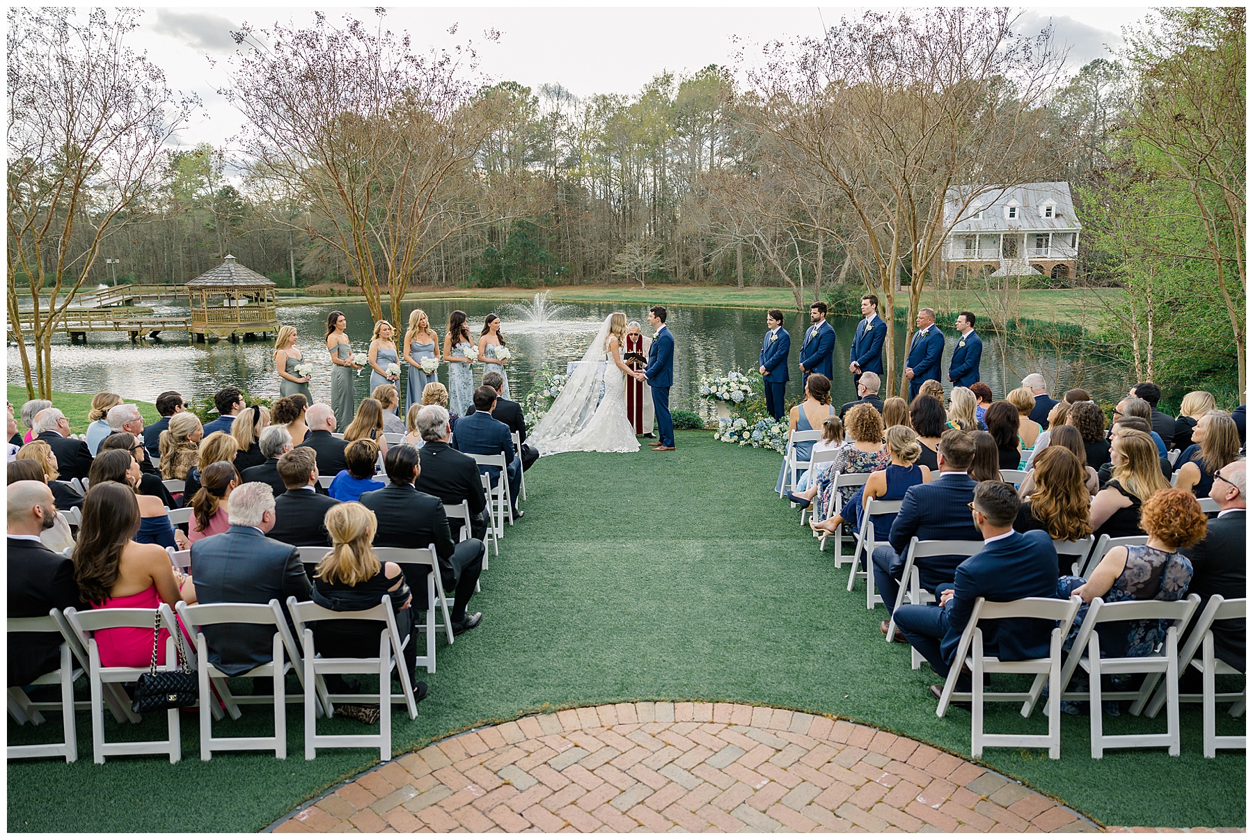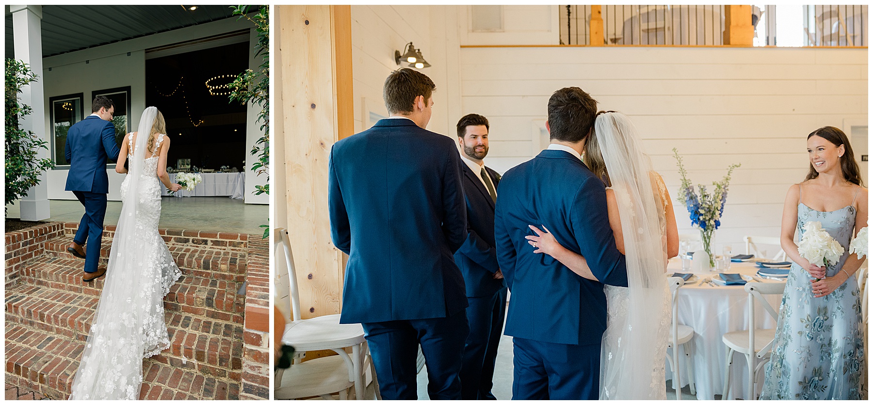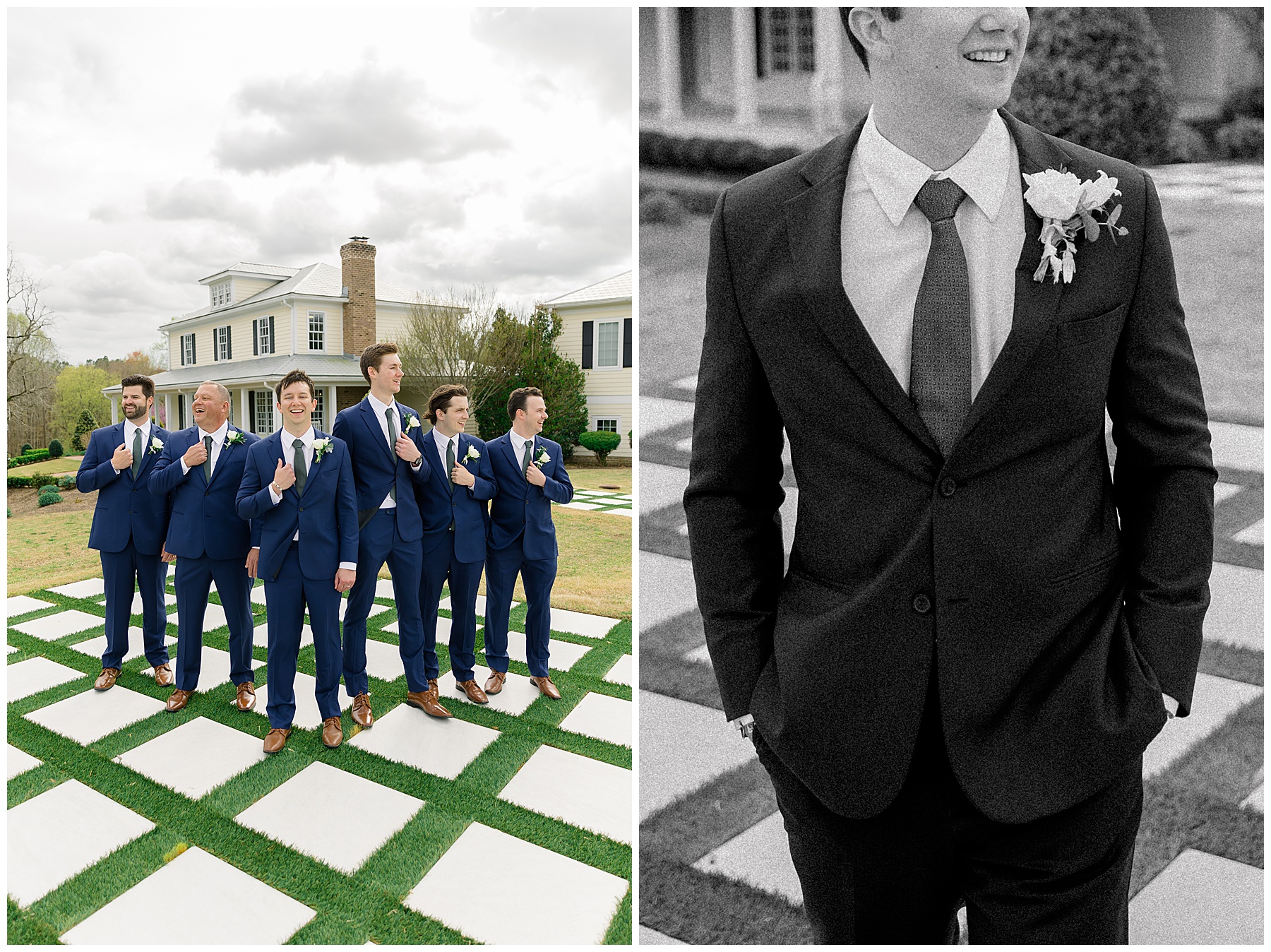 After Sean & Caroline’s fun Engagement Session last year (if you missed it, click HERE for the blog!) we were SO excited to photograph them again for their wedding day! I was watching the weather all week long, and sadly Saturday was forecasting a 90% chance of rain all day. NC was due for some rain to wash away all our pollen, but ideally not a washout on their wedding day! The night before the decision was made to move to their “Plan B” – a covered ceremony. It was raining when we woke up Saturday morning, and sprinkled on the way to Walnut Hill. But once we arrived… not a SINGLE DROP of rain happened all day!!! We even had sunshine for parts of the day peeking out from behind the clouds! It was amazing. So many prayers were answered! Their incredible planner, Trent, made a new decision to move back to Plan A, for an outdoor ceremony. YAY!