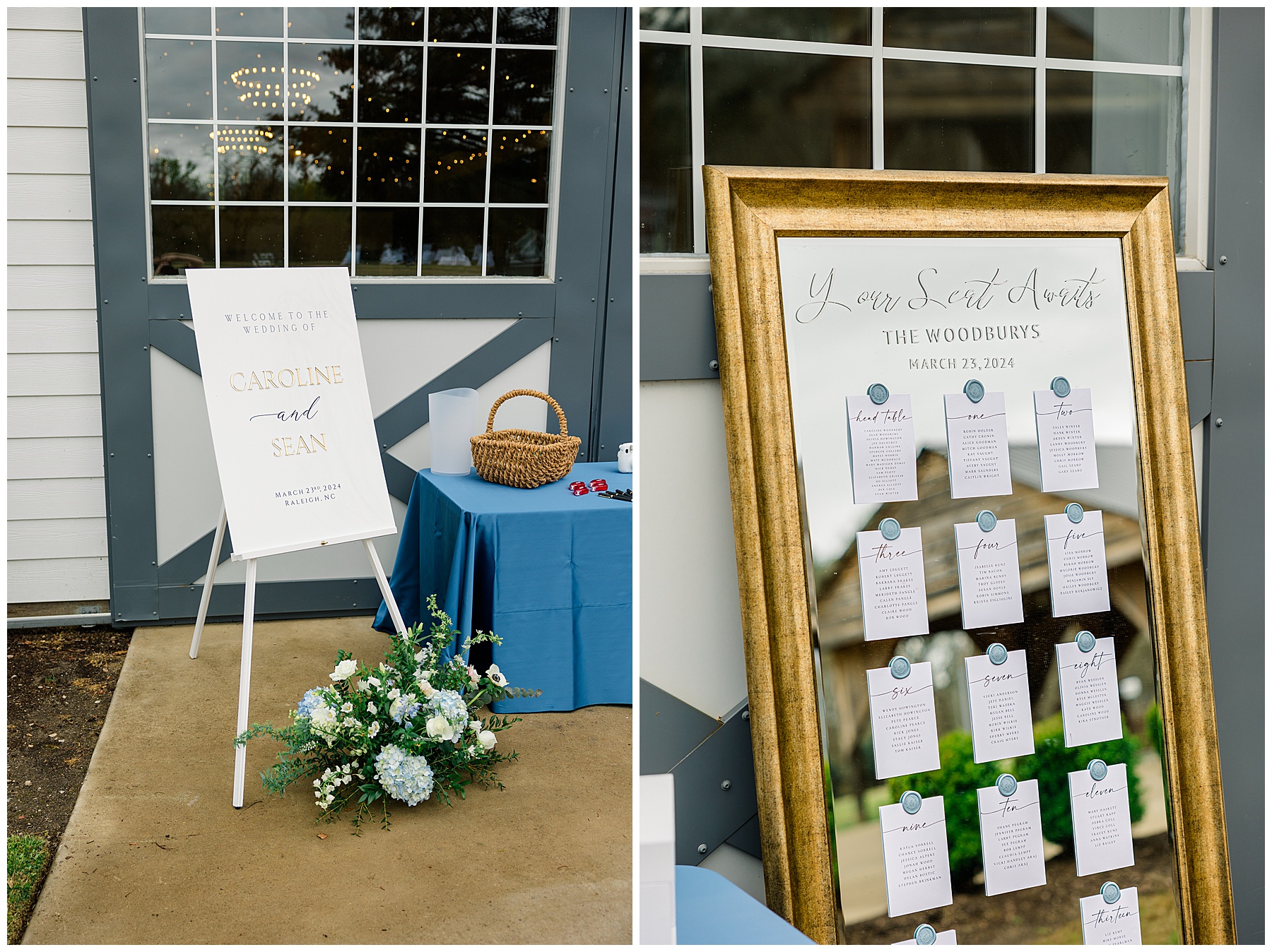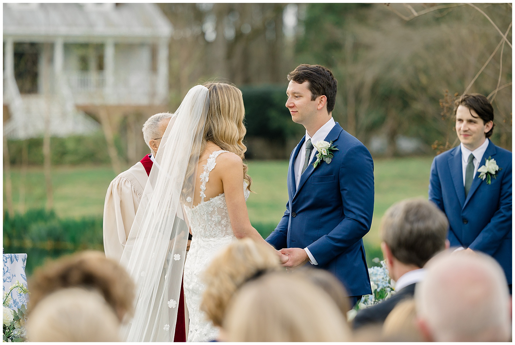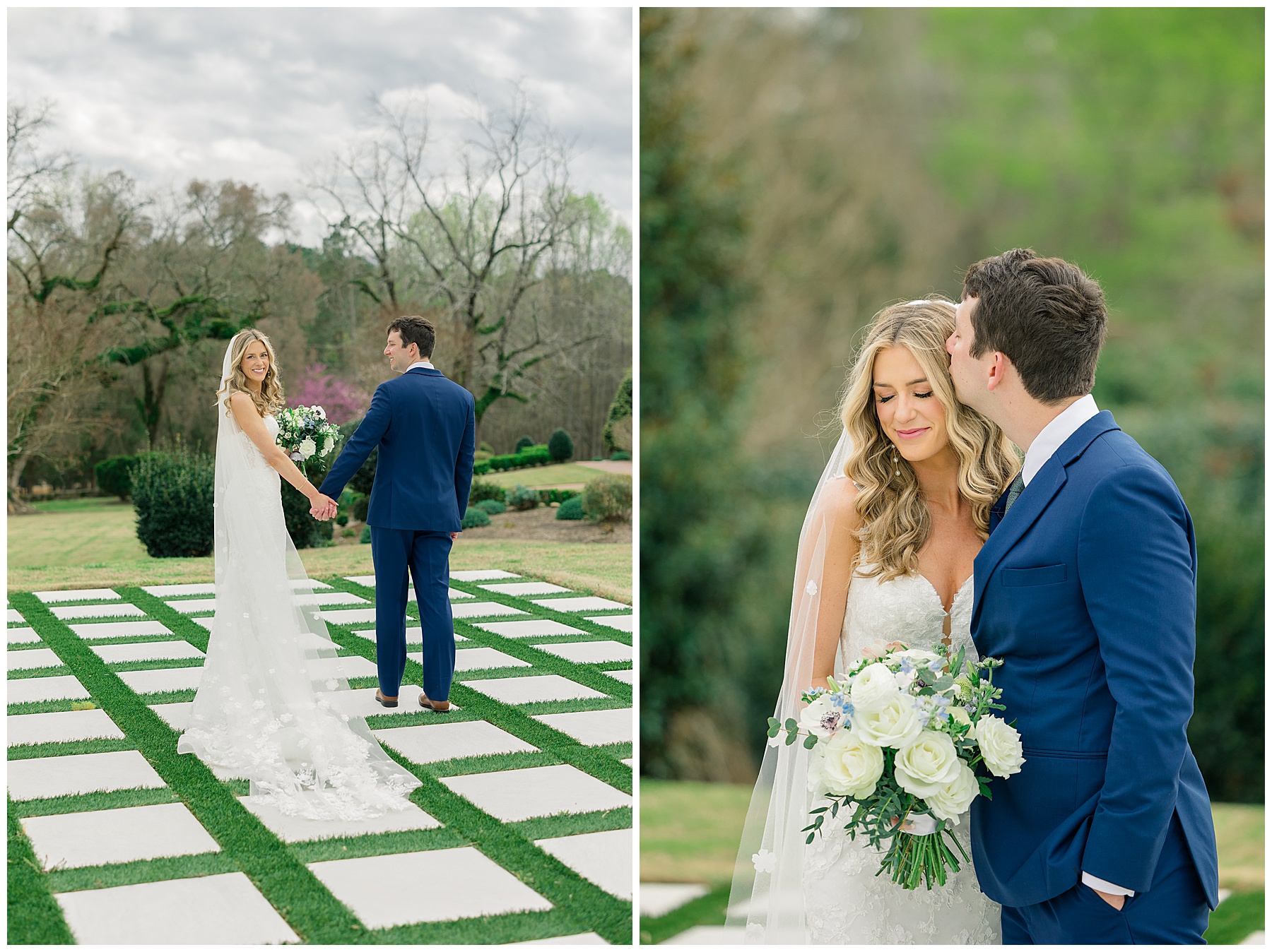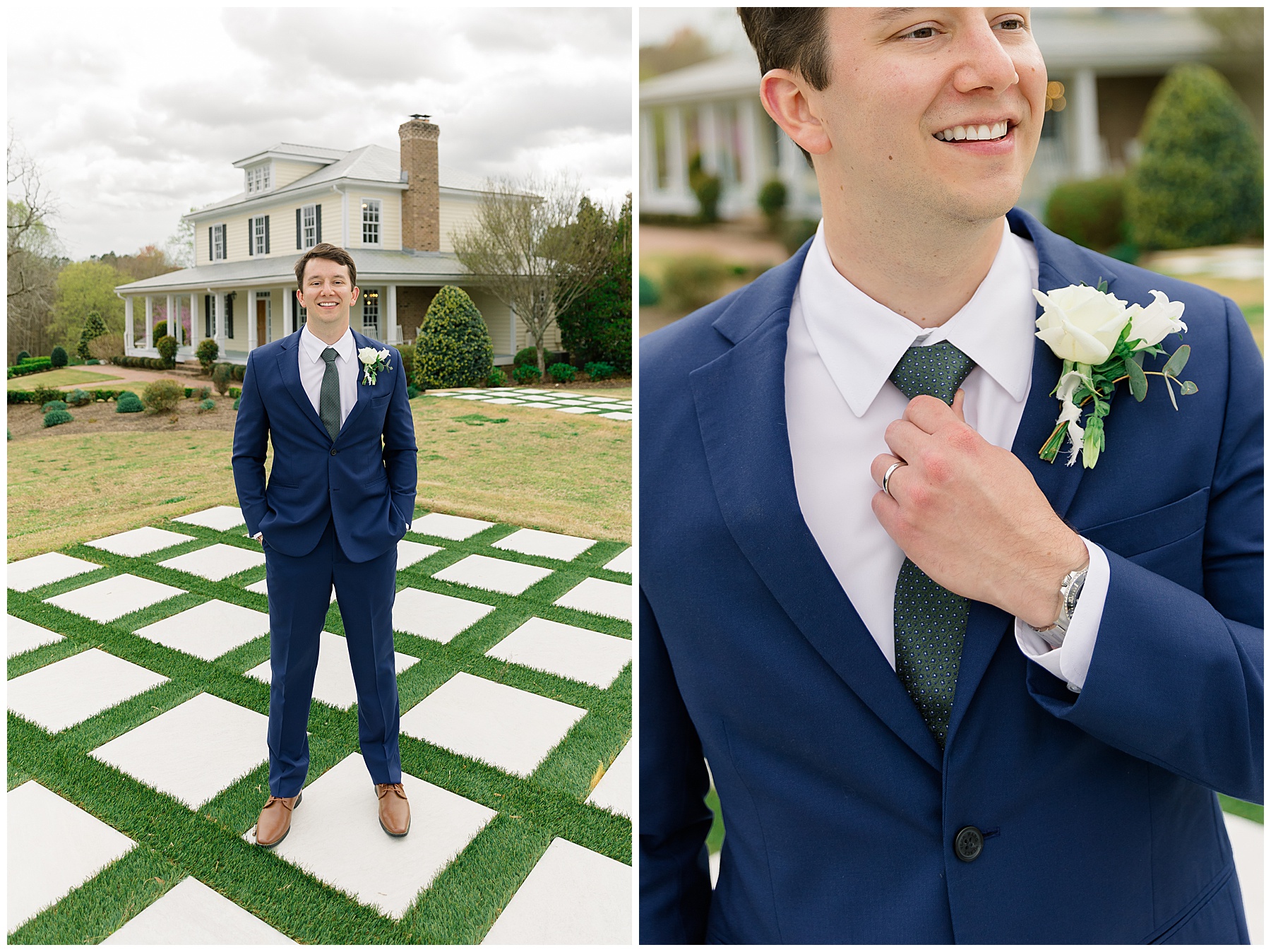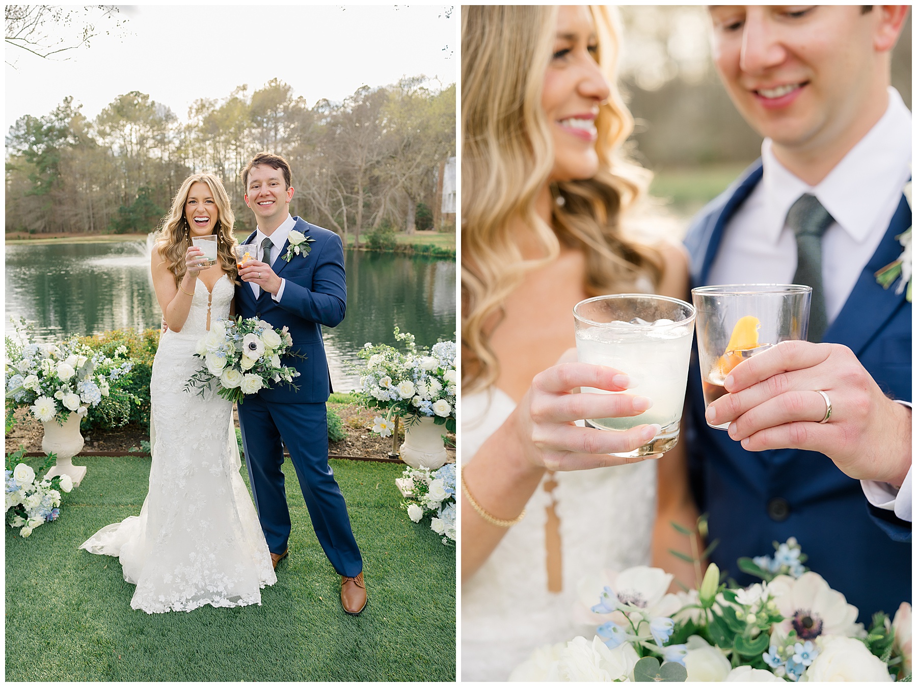 After Sean & Caroline’s fun Engagement Session last year (if you missed it, click HERE for the blog!) we were SO excited to photograph them again for their wedding day! I was watching the weather all week long, and sadly Saturday was forecasting a 90% chance of rain all day. NC was due for some rain to wash away all our pollen, but ideally not a washout on their wedding day! The night before the decision was made to move to their “Plan B” – a covered ceremony. It was raining when we woke up Saturday morning, and sprinkled on the way to Walnut Hill. But once we arrived… not a SINGLE DROP of rain happened all day!!! We even had sunshine for parts of the day peeking out from behind the clouds! It was amazing. So many prayers were answered! Their incredible planner, Trent, made a new decision to move back to Plan A, for an outdoor ceremony. YAY!