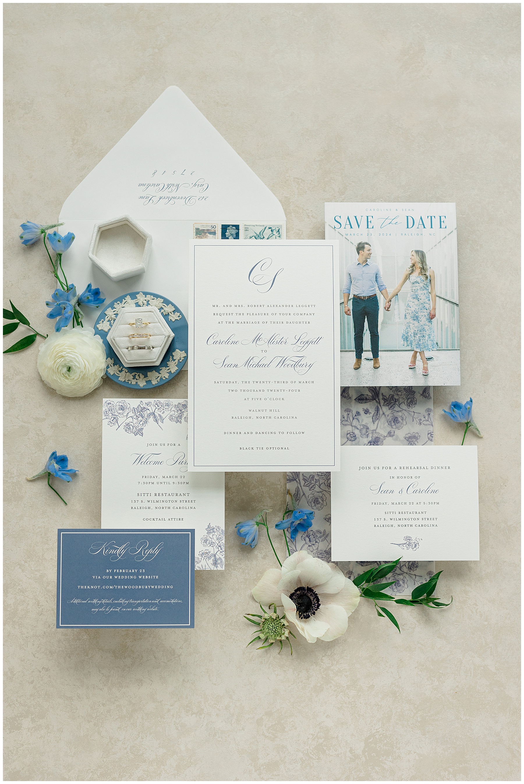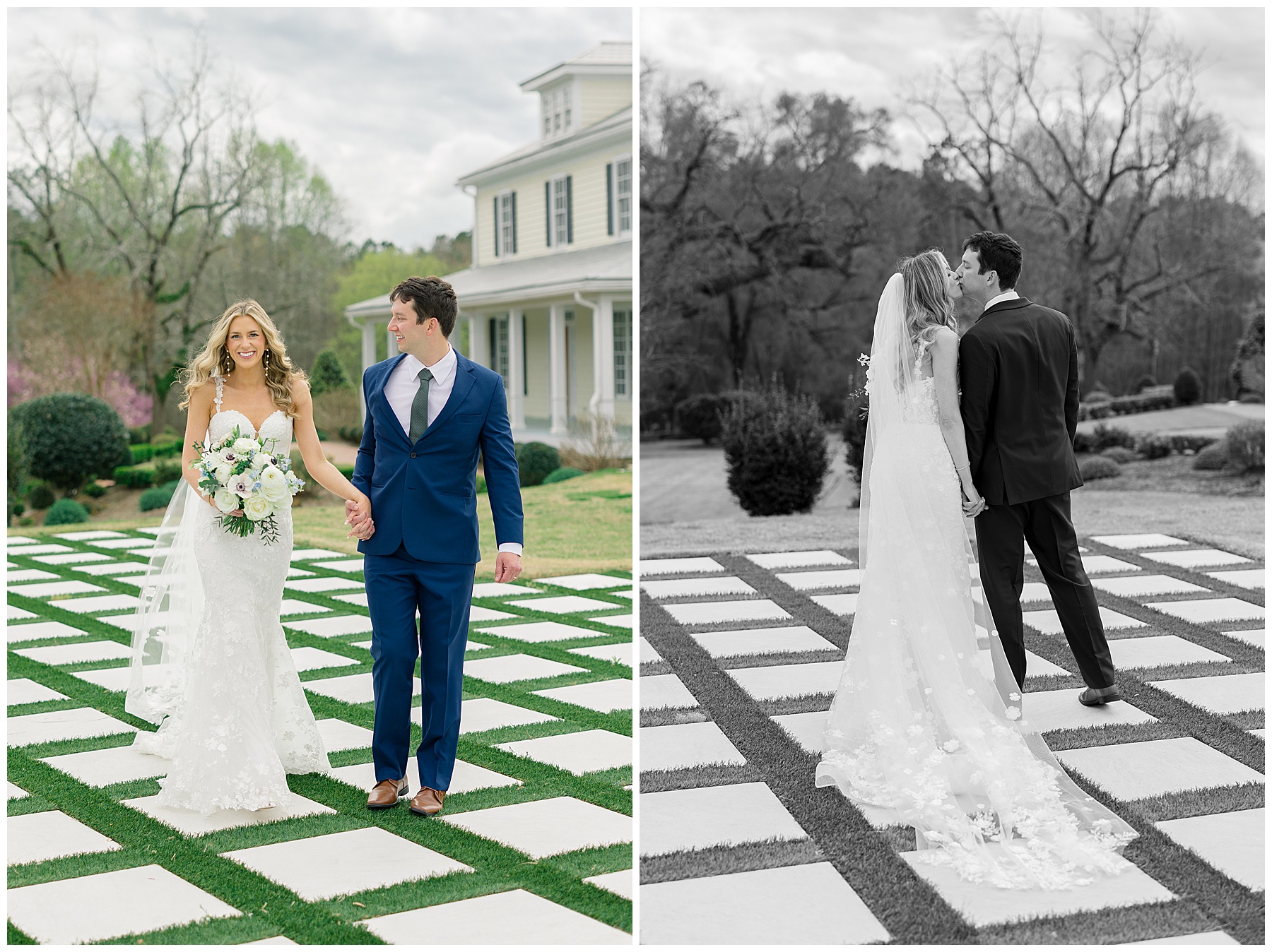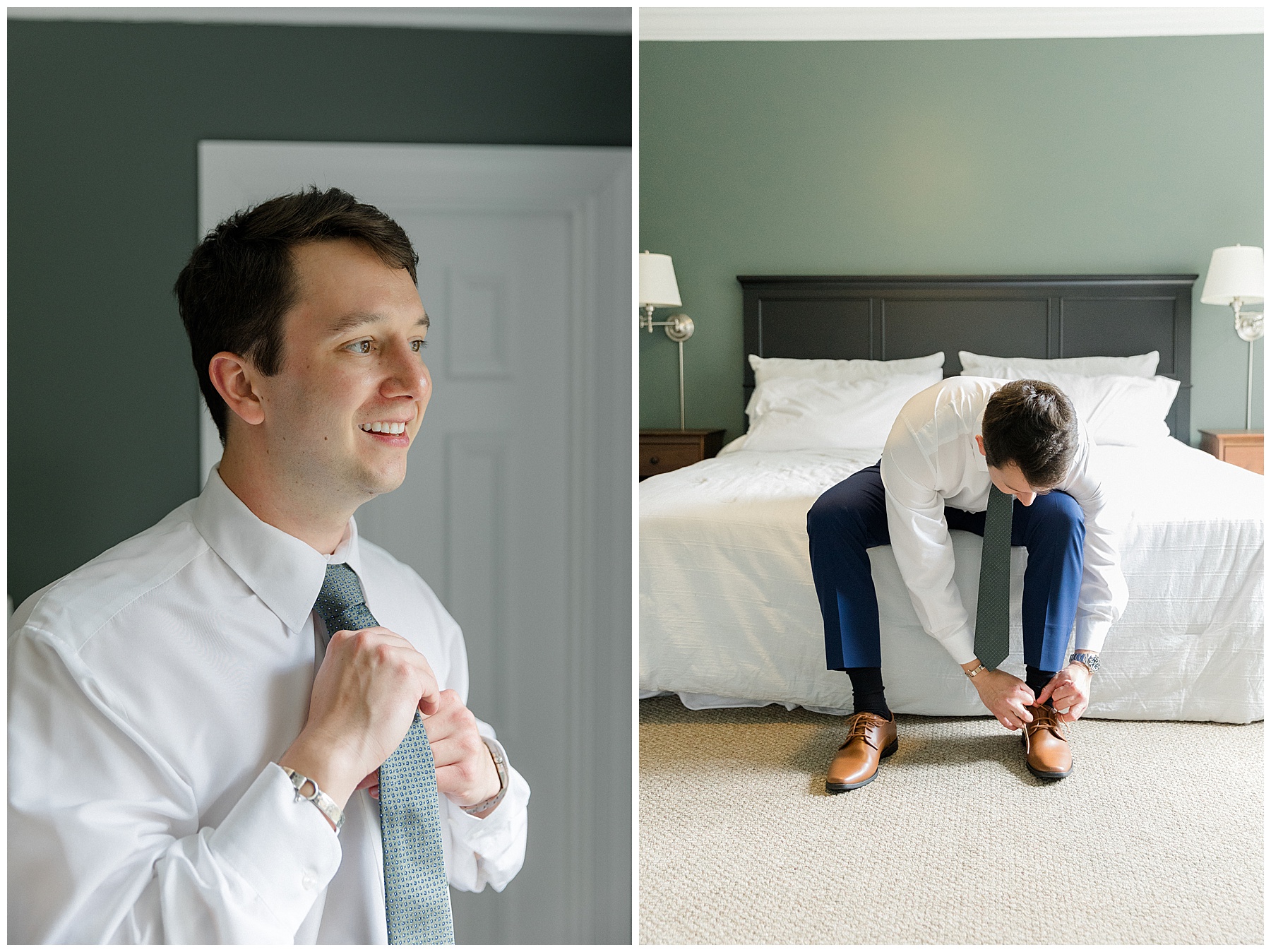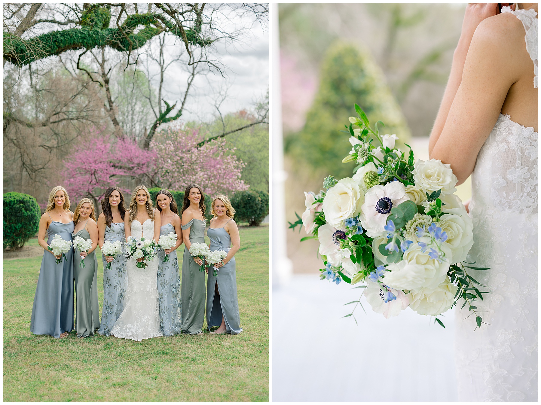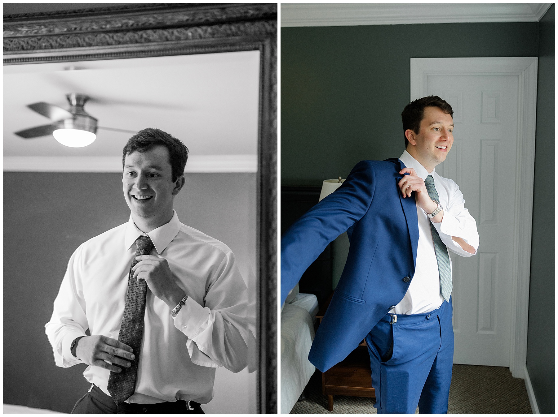 After Sean & Caroline’s fun Engagement Session last year (if you missed it, click HERE for the blog!) we were SO excited to photograph them again for their wedding day! I was watching the weather all week long, and sadly Saturday was forecasting a 90% chance of rain all day. NC was due for some rain to wash away all our pollen, but ideally not a washout on their wedding day! The night before the decision was made to move to their “Plan B” – a covered ceremony. It was raining when we woke up Saturday morning, and sprinkled on the way to Walnut Hill. But once we arrived… not a SINGLE DROP of rain happened all day!!! We even had sunshine for parts of the day peeking out from behind the clouds! It was amazing. So many prayers were answered! Their incredible planner, Trent, made a new decision to move back to Plan A, for an outdoor ceremony. YAY!
