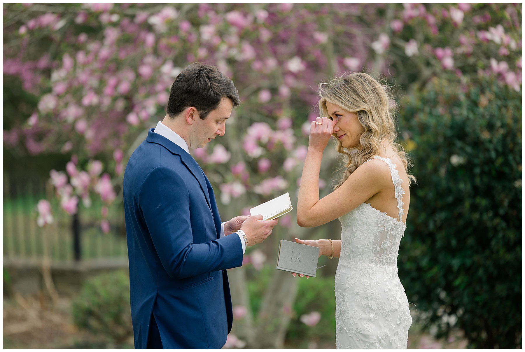 Caroline & Sean had a First Look, and then my favorite part – private vows. They read vows to each other, and had a few minutes to just be together and focus on each other! It was so special & I’m so glad they chose to do that. Caroline was smart to keep her makeup artist later into the day, and she did touchups after Caroline cried during her vows. We photographed their Bride & Groom portraits next, and they are such a photogenic couple!! It was superrrr windy, but Sean & Caroline were both so patient to wait it out between poses & we got SO many insanely good portraits of them!