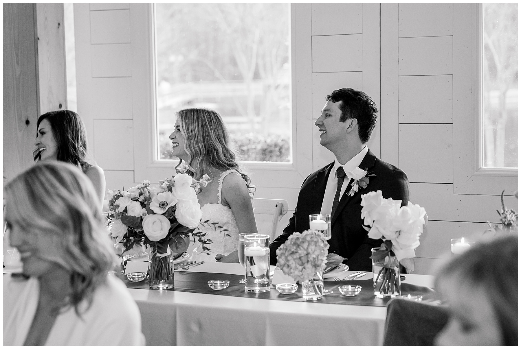 Since we’d taken so many photos pre-ceremony, Caroline & Sean were able to join part of their own cocktail hour! I love when our couples can do that, to spend extra time with their guests. Deans Duets performed during cocktail hour, and Rocky Top Catering passed around pretty hors d’oeuvres.