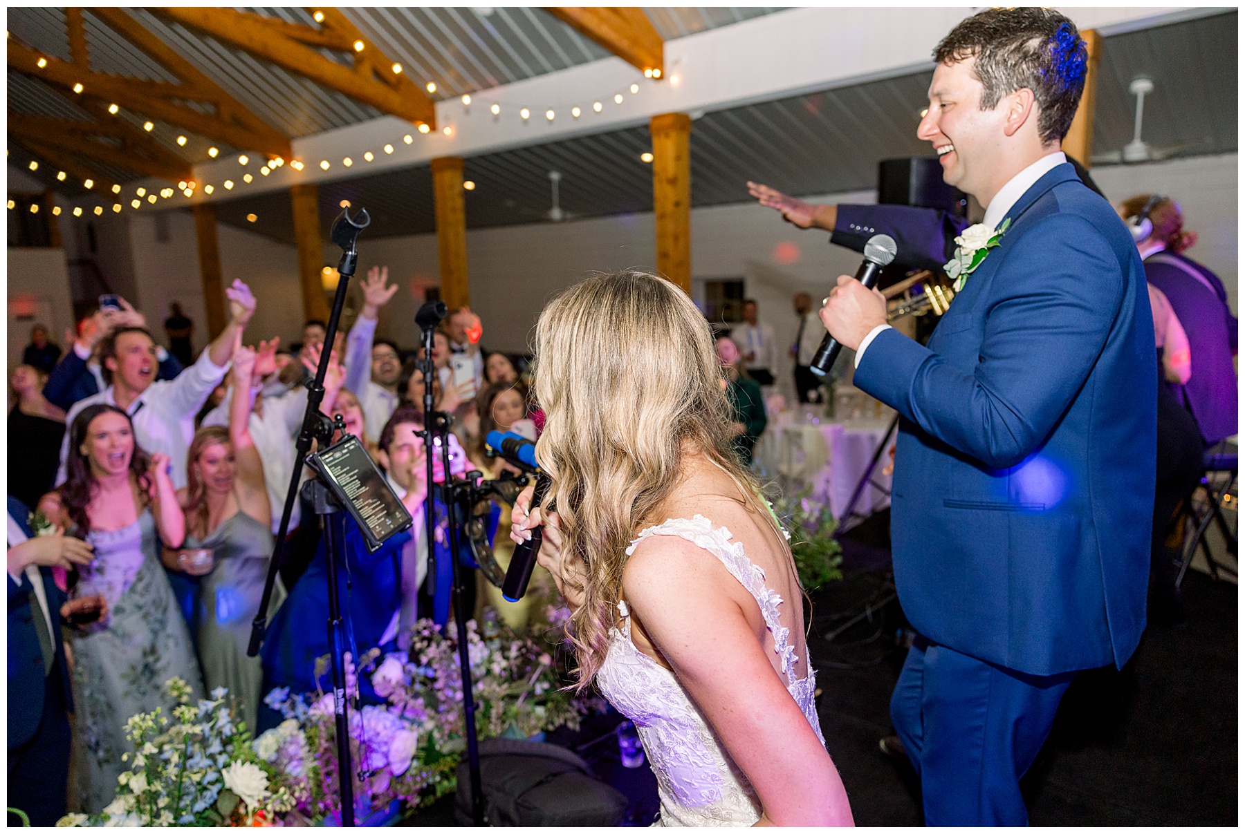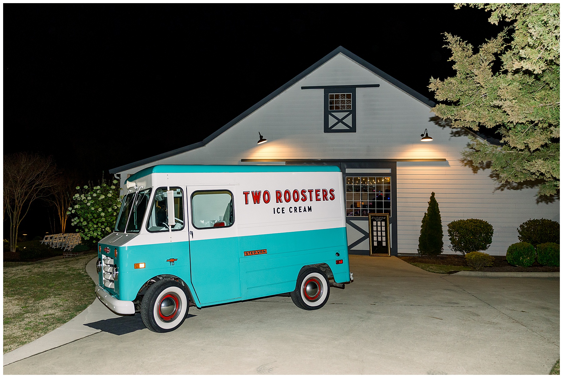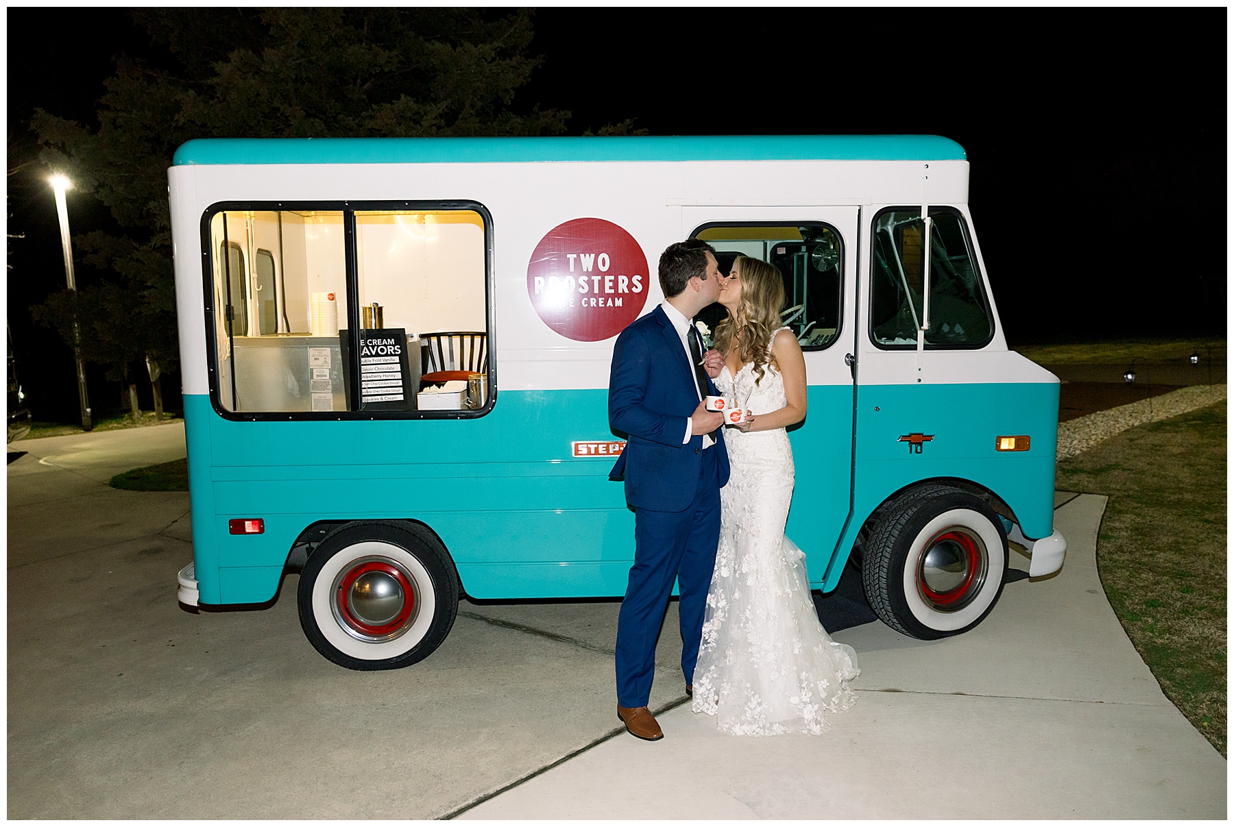 The reception kicked off with Entrances (with Caroline & Sean doing their secret handshake!) First Dances, a delicious dinner, and then the band Dance Candy took it away! Caroline & Sean treated their guests to not only a yummy cake, open bar with specialty drinks, but ALSO Two Roosters Ice Cream truck came and guests could get unlimited ice cream! I got a chocolate Oreo cookie dough flavor and it was SO GOOD!!!