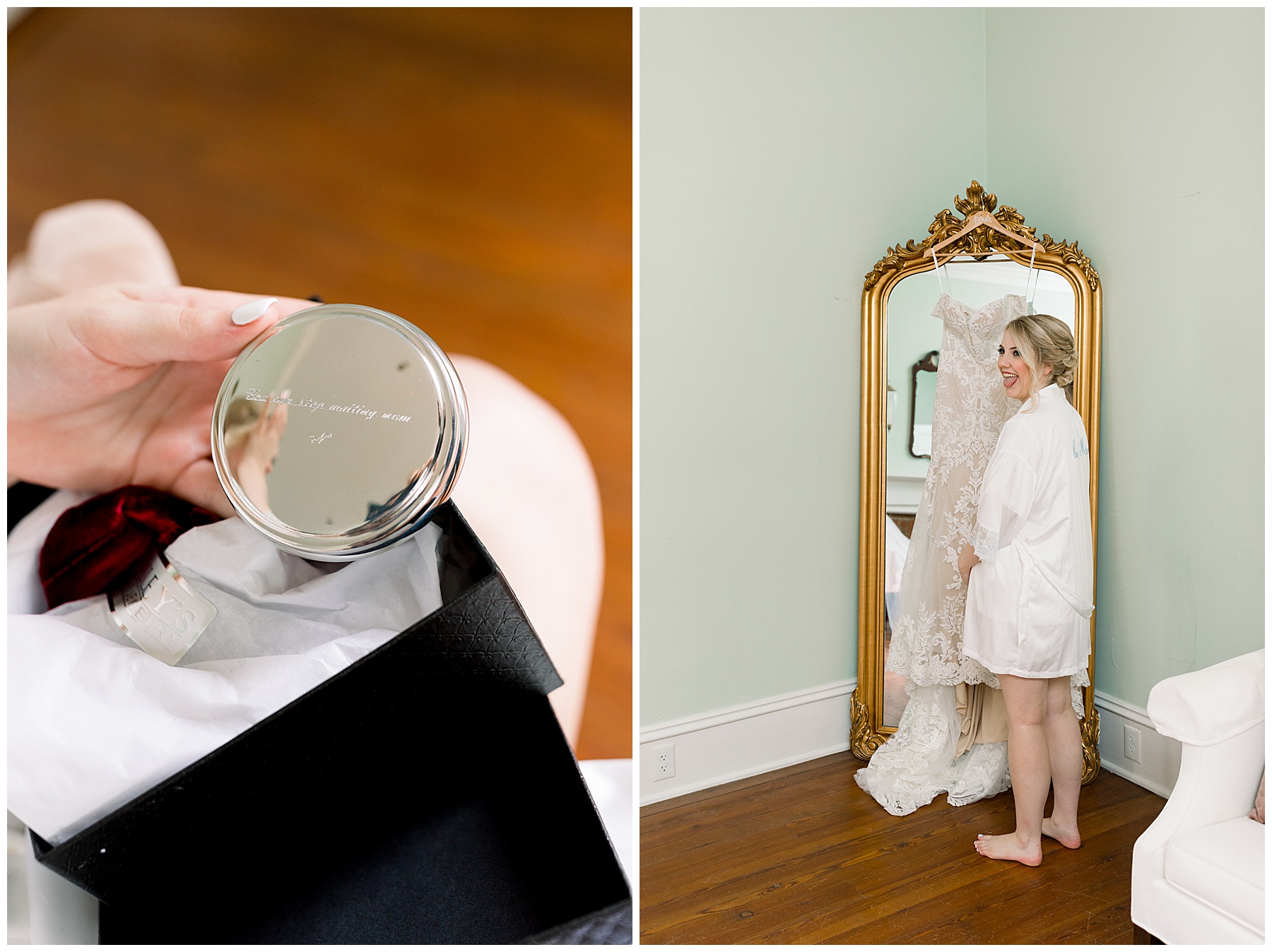 One of my favorite parts of the morning was when Claire opened her gift from Niko. Not only did Niko write a beautiful letter, but he also got her a beautiful pair of diamond earrings from Bailey’s in a jewelry box engraved “You can stop waiting now”. Claire was in tears, and told me that when Niko went away for deployment years ago, she gave him a watch with an engraving saying she’d be waiting on him to return. She couldn’t believe he’d remembered that, and what a complete circle with them now getting married. OH MY GOSH I was in tears after that story.