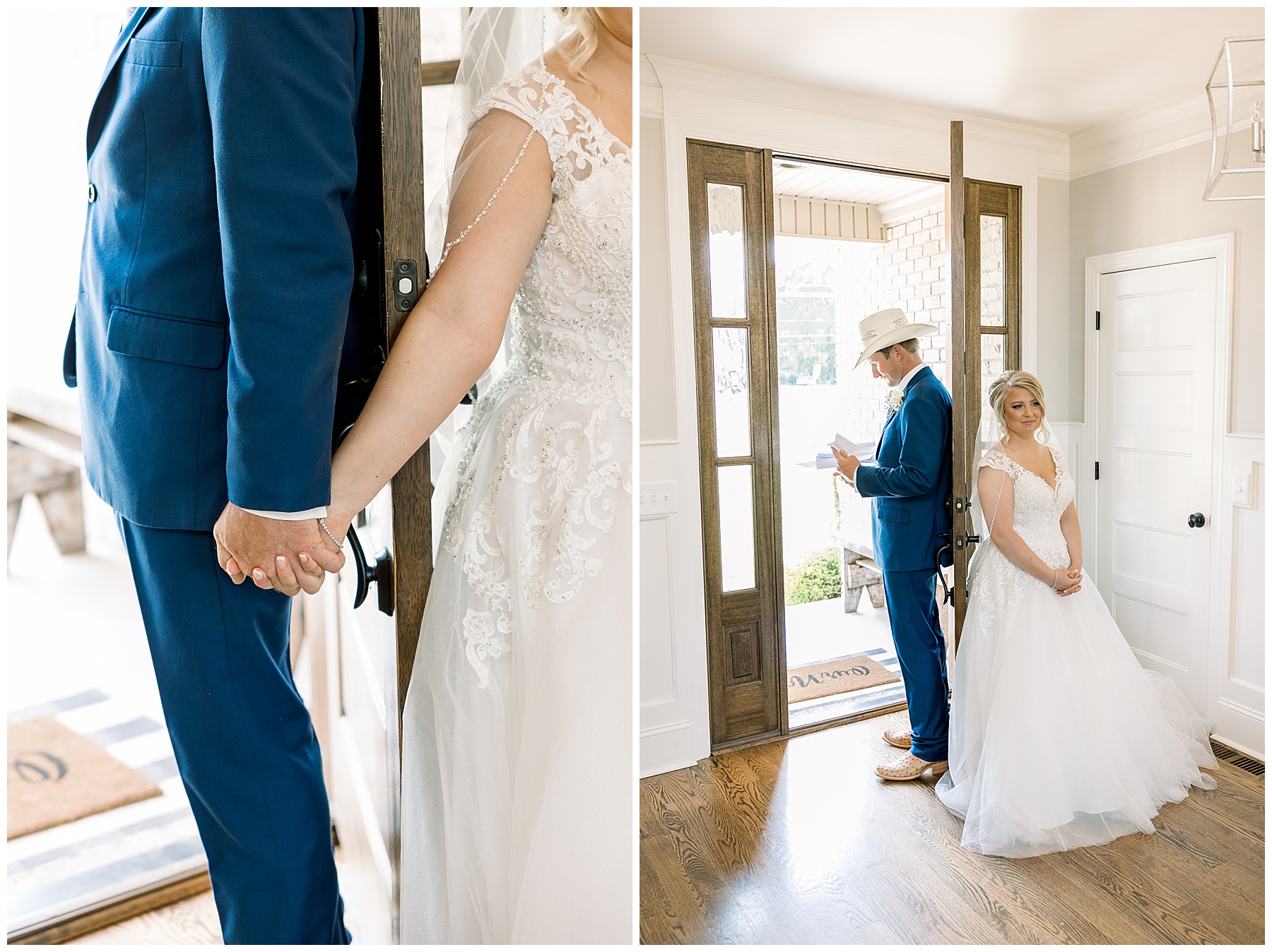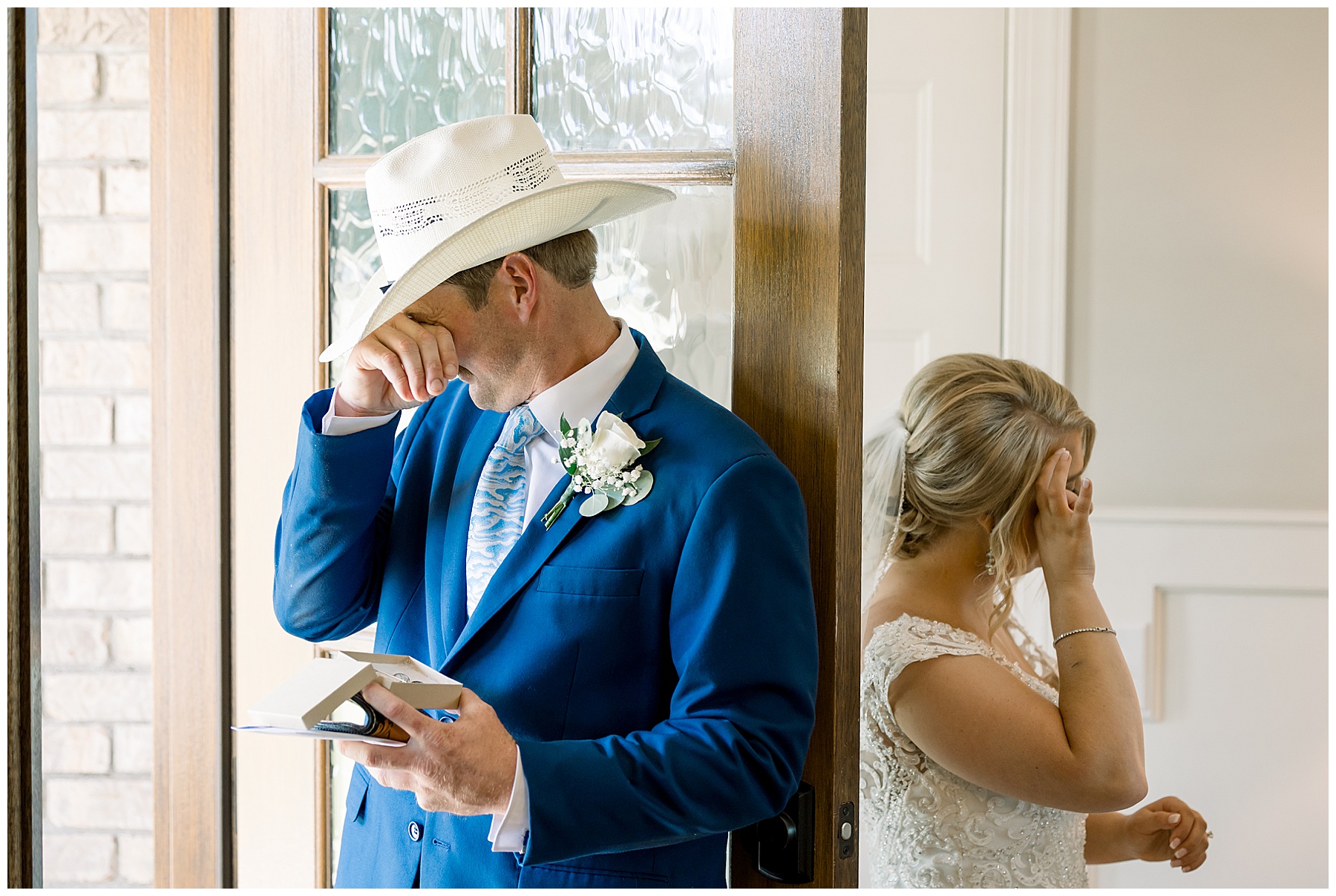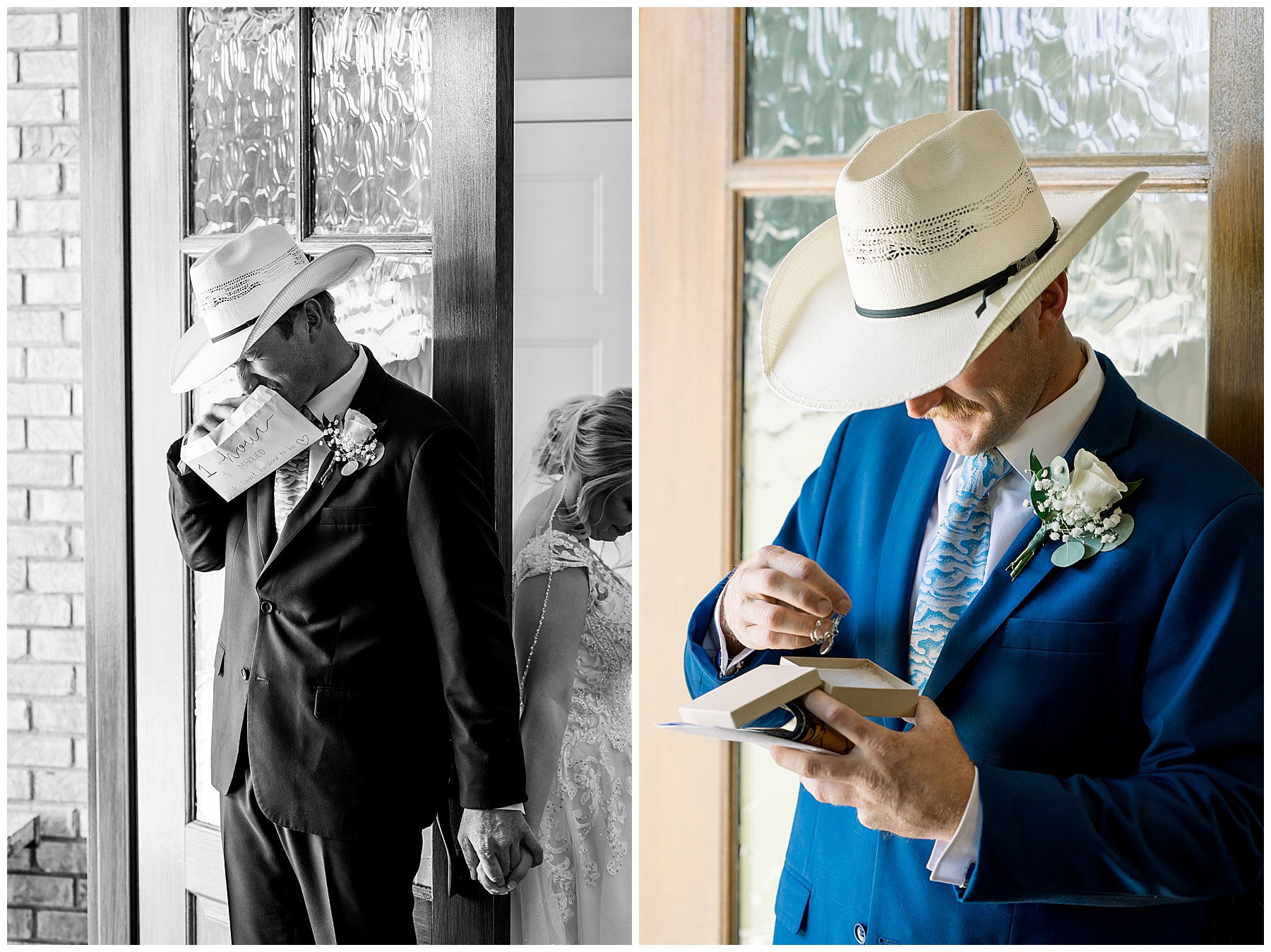 Courtney & Bradney were so thoughtful towards their family members, with writing letters, giving custom handmade thoughtful gifts, and being very intentional with thanking all of them for the impact family has had in their lives. Courtney did First Looks with her bridesmaids, grandfather, grandmothers, stepdad Andy, and her brothers!! Bradney had a sweet First Look with his mom, grandma, sister, and 5-week old niece! It was soooo sweet (his grandma’s tears were just precious) My favorite one was a First Touch between Bradney and Courtney – when she gifted him a special pin with his grandfather’s photo on one charm, and his dog on the other charm. He immediately teared up and wasn’t expecting such a thoughtful gift to remember those two who were so special to him.