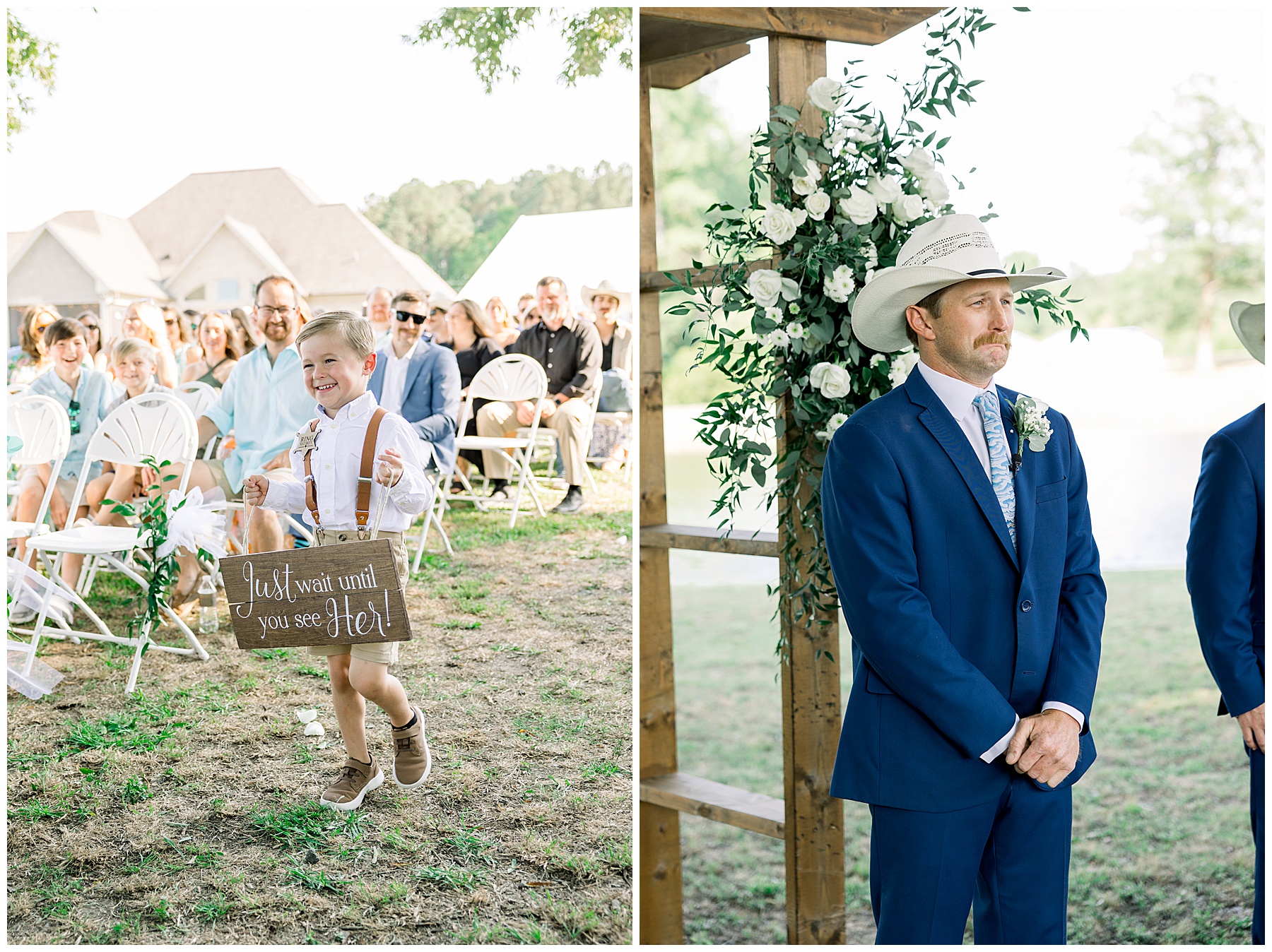 The girls were jamming to music and having fun getting glammed up by Megan Fann’s team & eating snacks and sandwiches! I especially loved how one flower girl, Rachel, had specific glam she requested (lots of pink!) and was so excited about how it turned out! Megan always does a beautiful job & her hairstyles always last until the END of the night which is so impressive!! Phillip had the best time hanging out with Bradney & his guys next door, eating Zaxby’s, hearing them talk about Rodeo life, and learning a lot about what they all do!!! Phillip had all the compliments about Bradney all day!!!