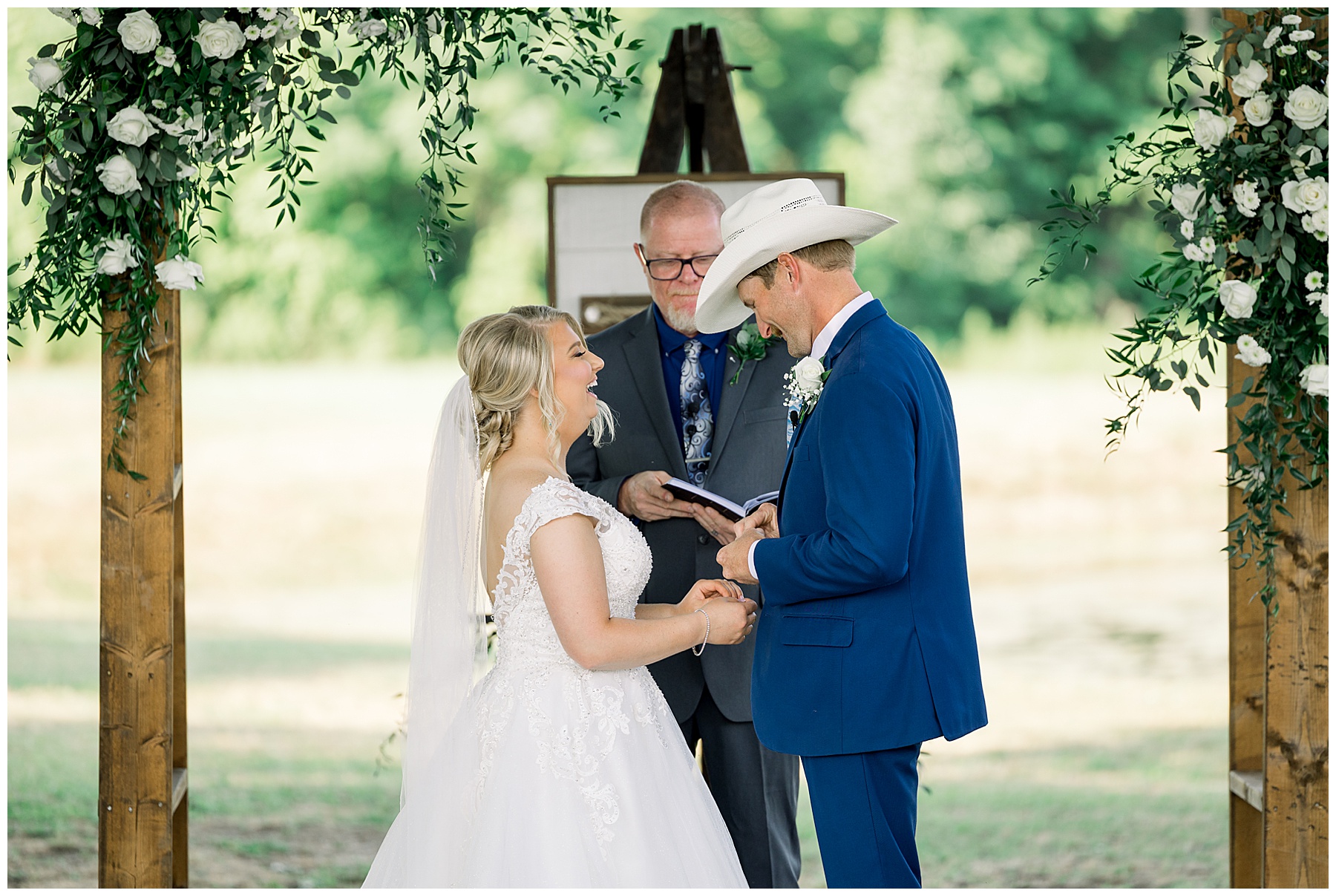 Then, when Courtney walked down the aisle to Bradney, his reaction was PRICELESS. He was just absolutely precious with his tears seeing her come towards him. I loved that sooooo much!! The ceremony was unique because their officiant told their whole love story from BOTH of their perspectives. It was funny, sweet, and really special to hear it from both of their points of view from the start! THEN…. when it was time for the exchanging of the rings, the officiant told Bradney, “Put the ring on her left hand”, and Bradney said “Which ring?” and surprised Courtney with TWO wedding bands!!! She had NO idea he’d bought her a second band (one she’d hoped to get for their anniversary someday) and she gasped and SMILED SO BIG!!!! It was soooo cute!
