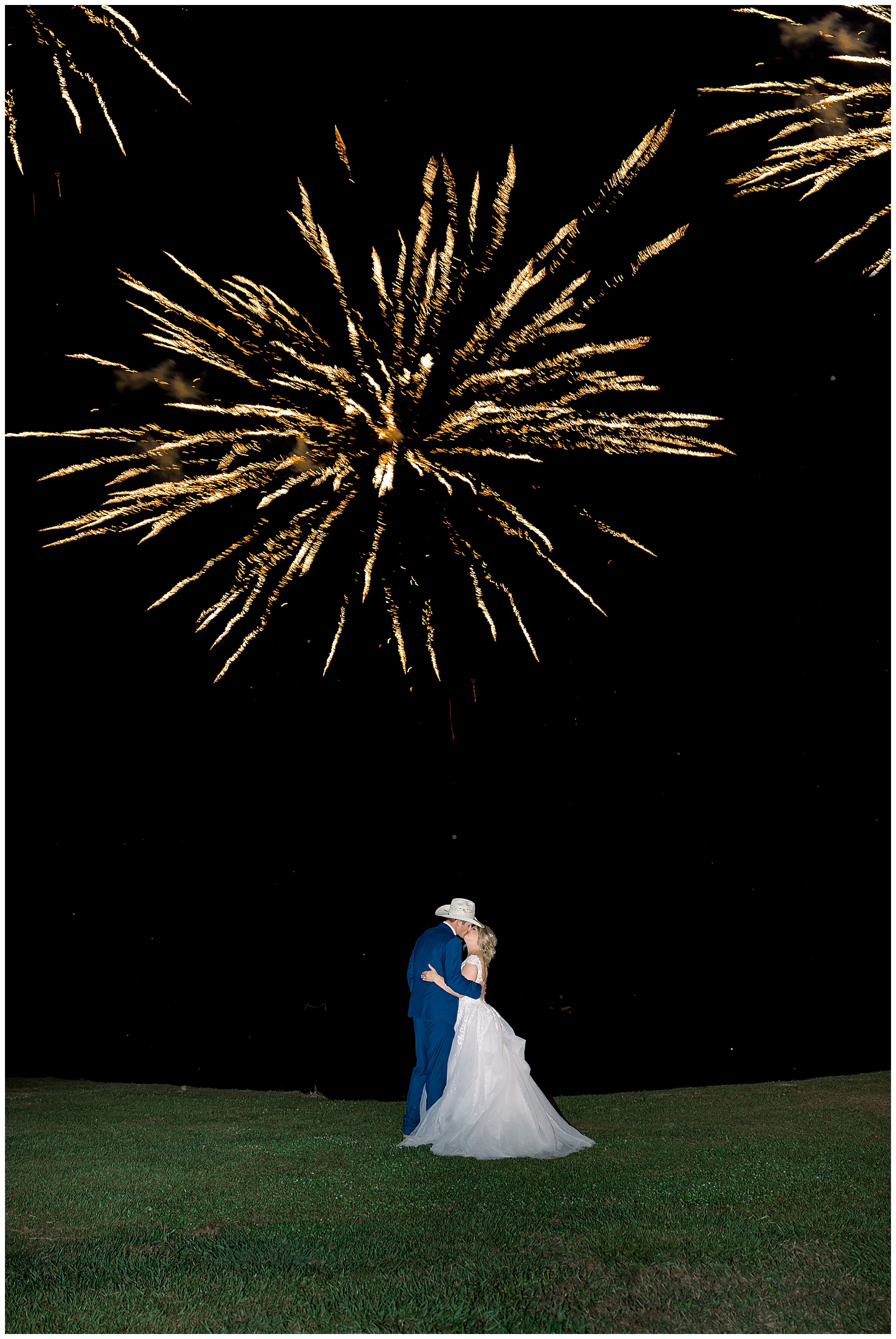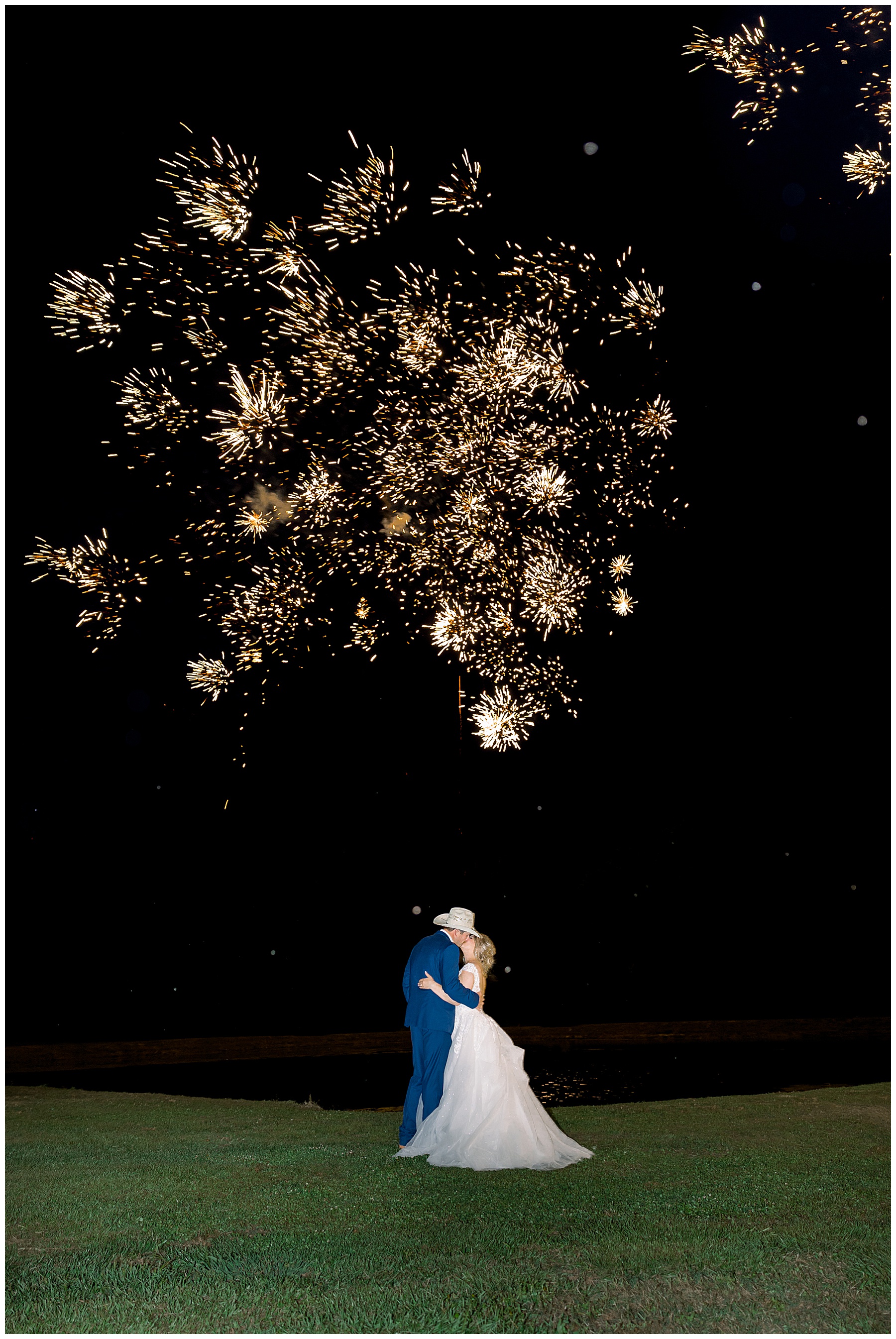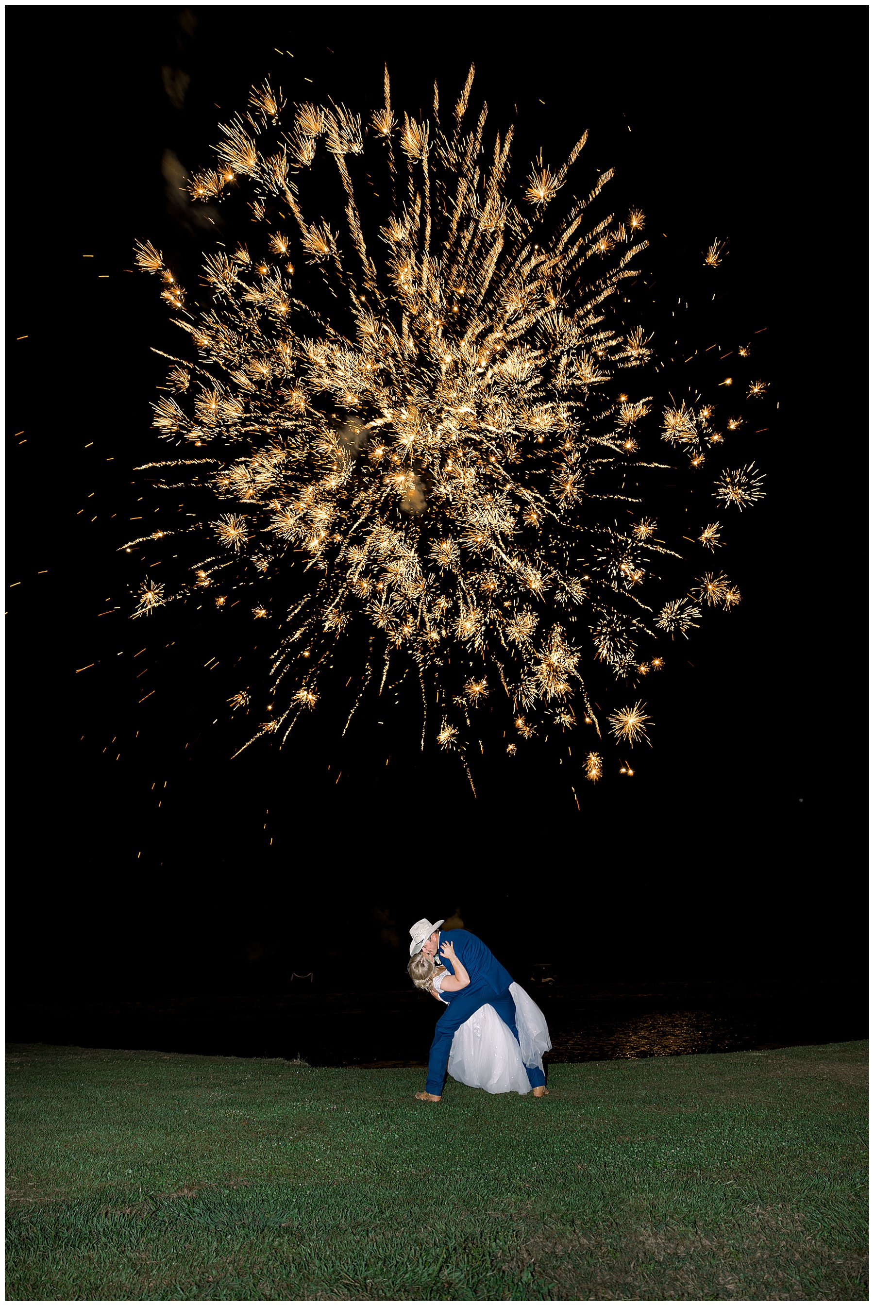 The reception kicked off with a bang! They had several First Dances, delicious food from Parker’s BBQ, cake and cupcakes, an open bar with 3 signature drinks, speeches, a photo booth, and lots of dancing! My favorite part of the evening was after the sparkler exit they had FIREWORKS set off above the pond, and it was just INCREDIBLE!!! It was such an epic way to celebrate, and I just LOVE how those firework photos look!!! Soooooo amazing!!! What a perfect way to end a beautiful day.