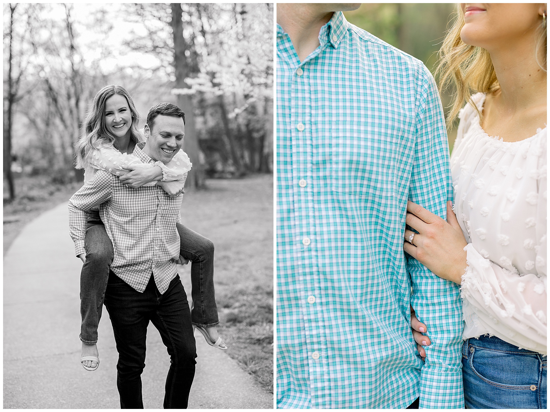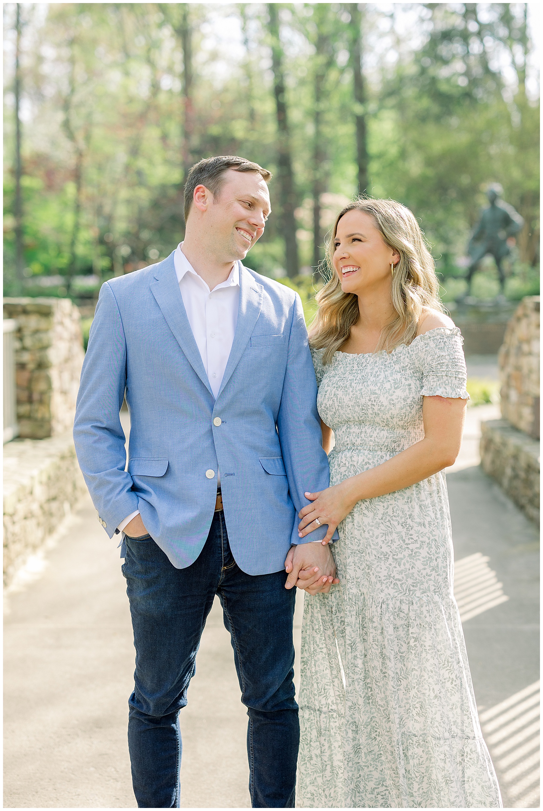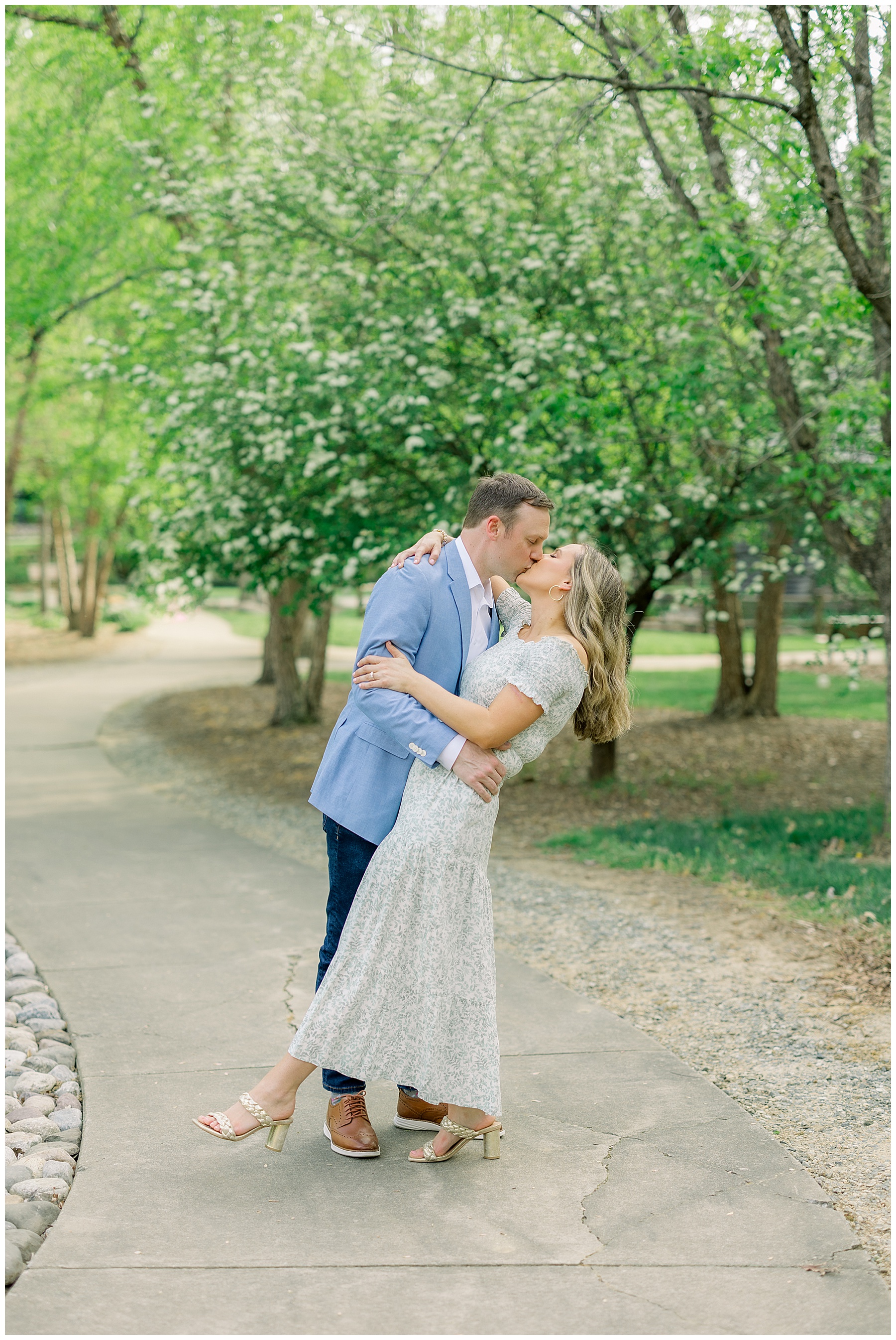 Courtney and Mike did such a great job posing (even after saying that photos weren’t really their thing!) & were so laid back! Posing in a public place around other people can always be a little hard, but they both embraced it & were patient to allow walkers (and all the pups!) to pass by between poses. Honestly, what a dream couple they are!!! This gets us even MORE excited for their wedding day in October!
