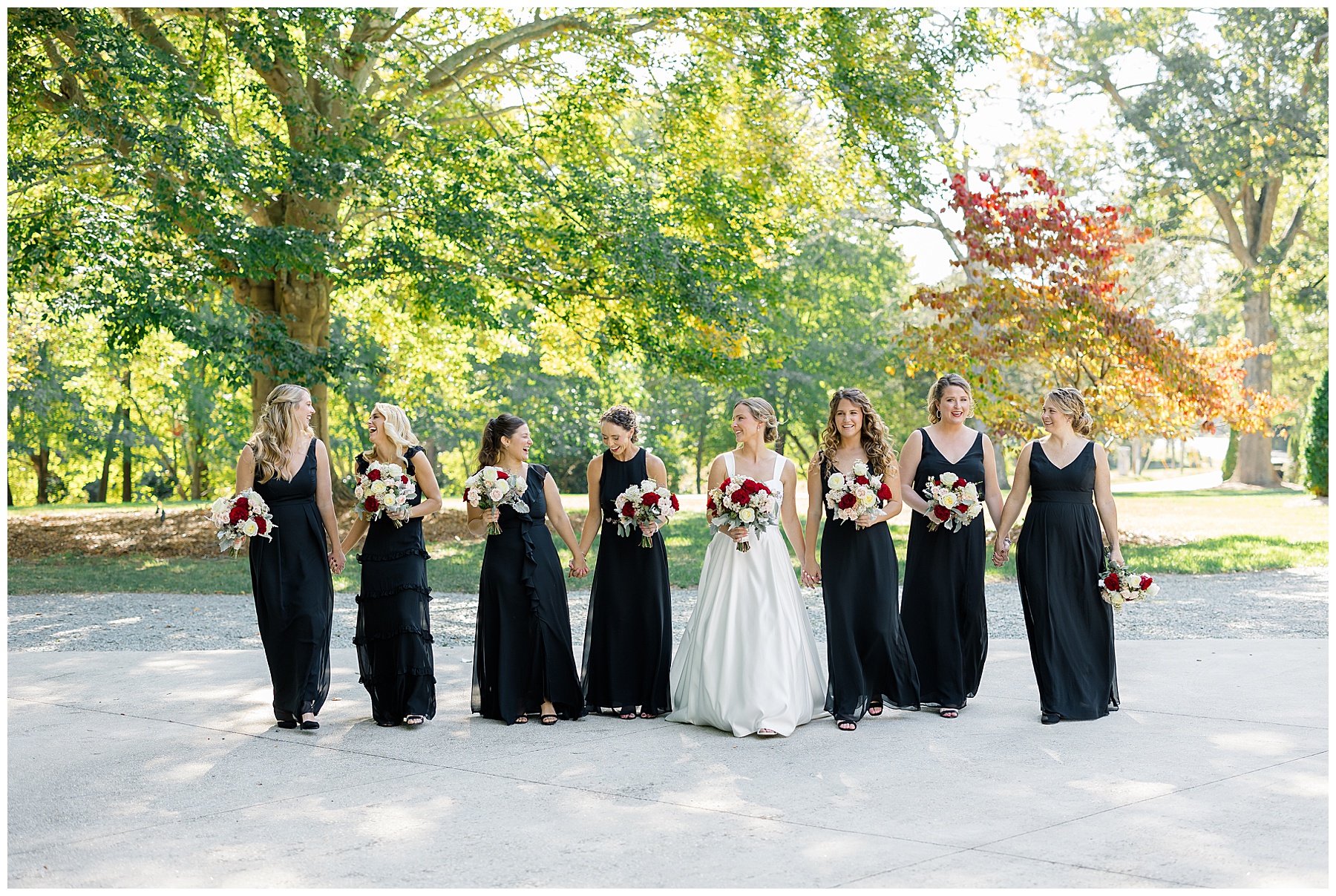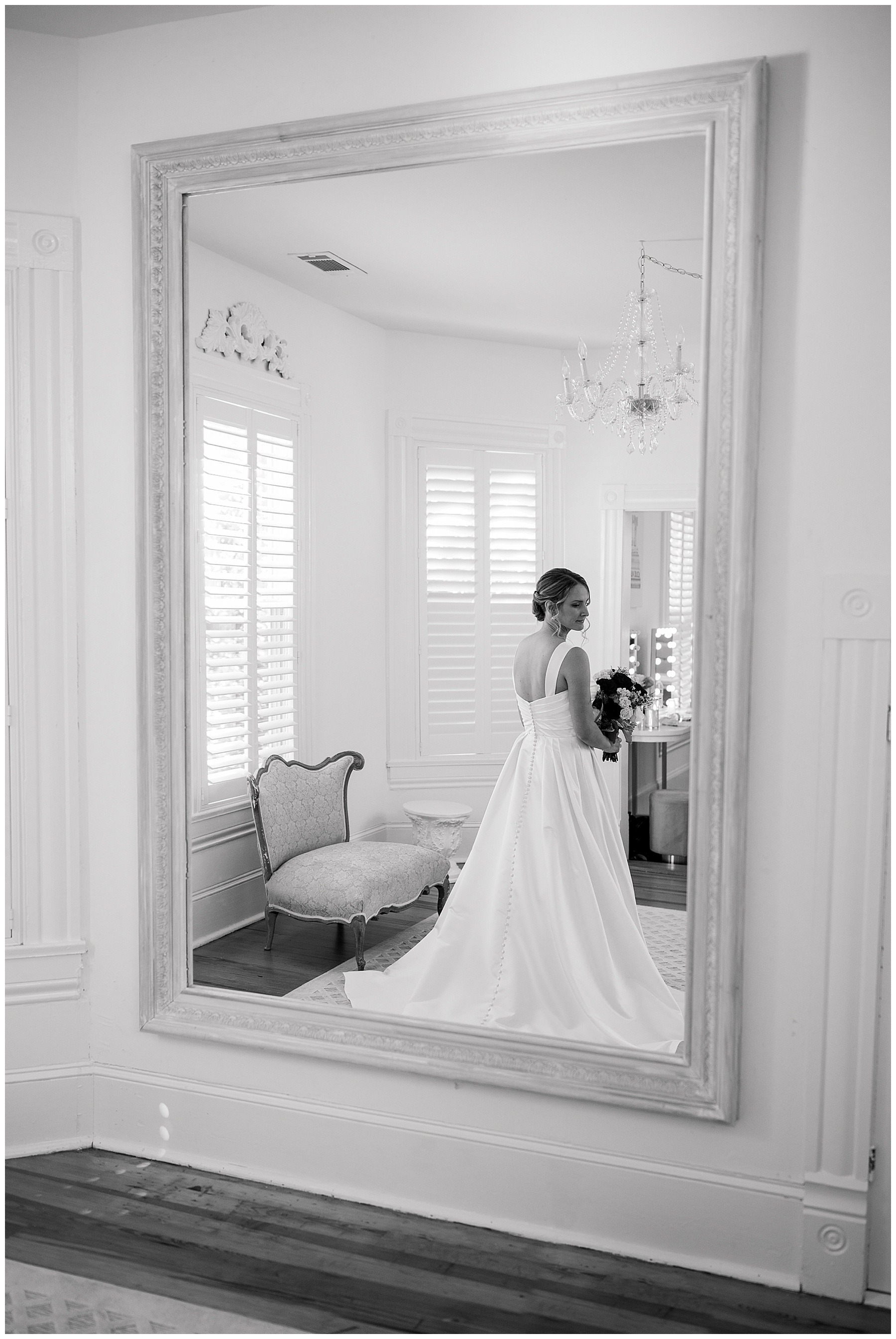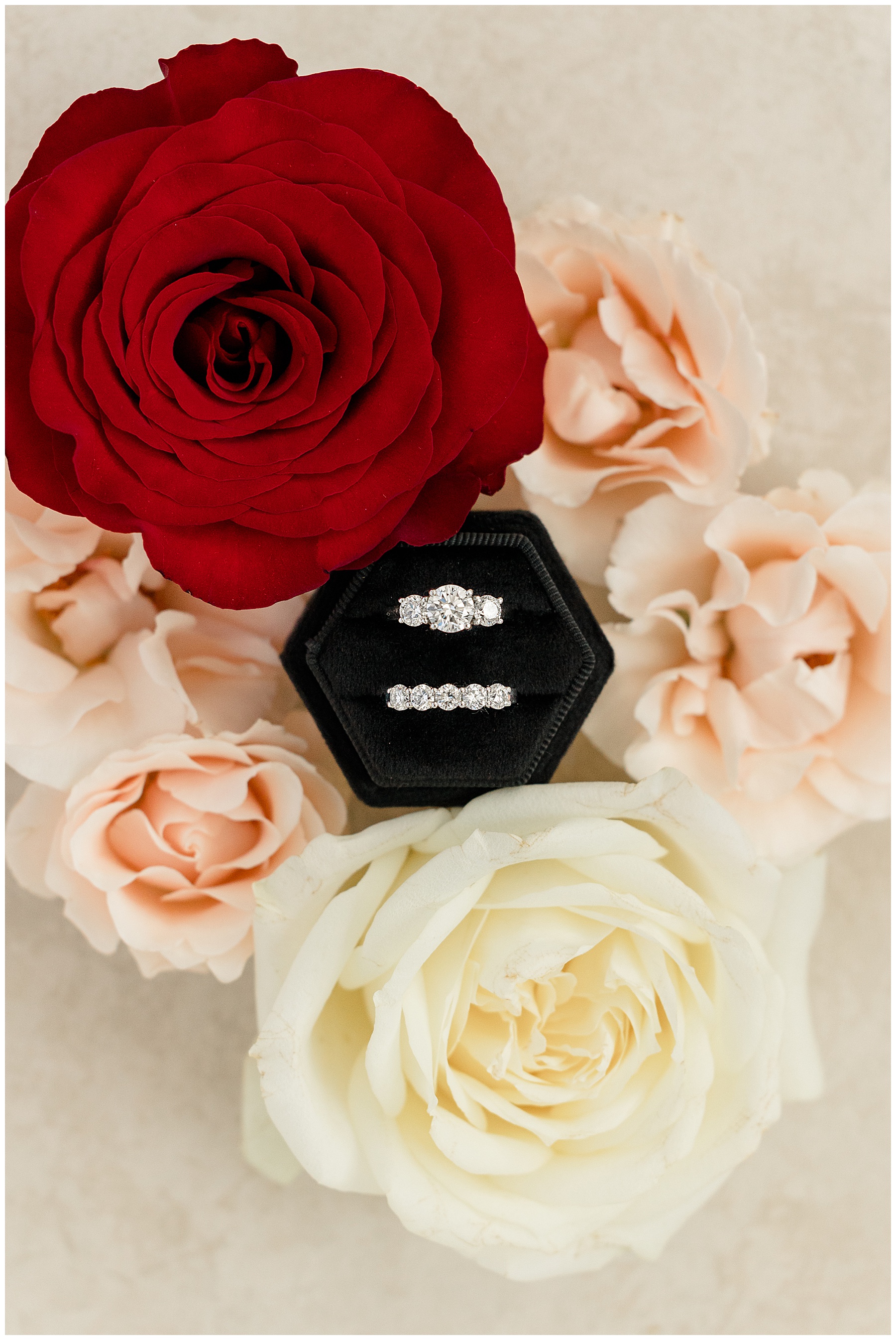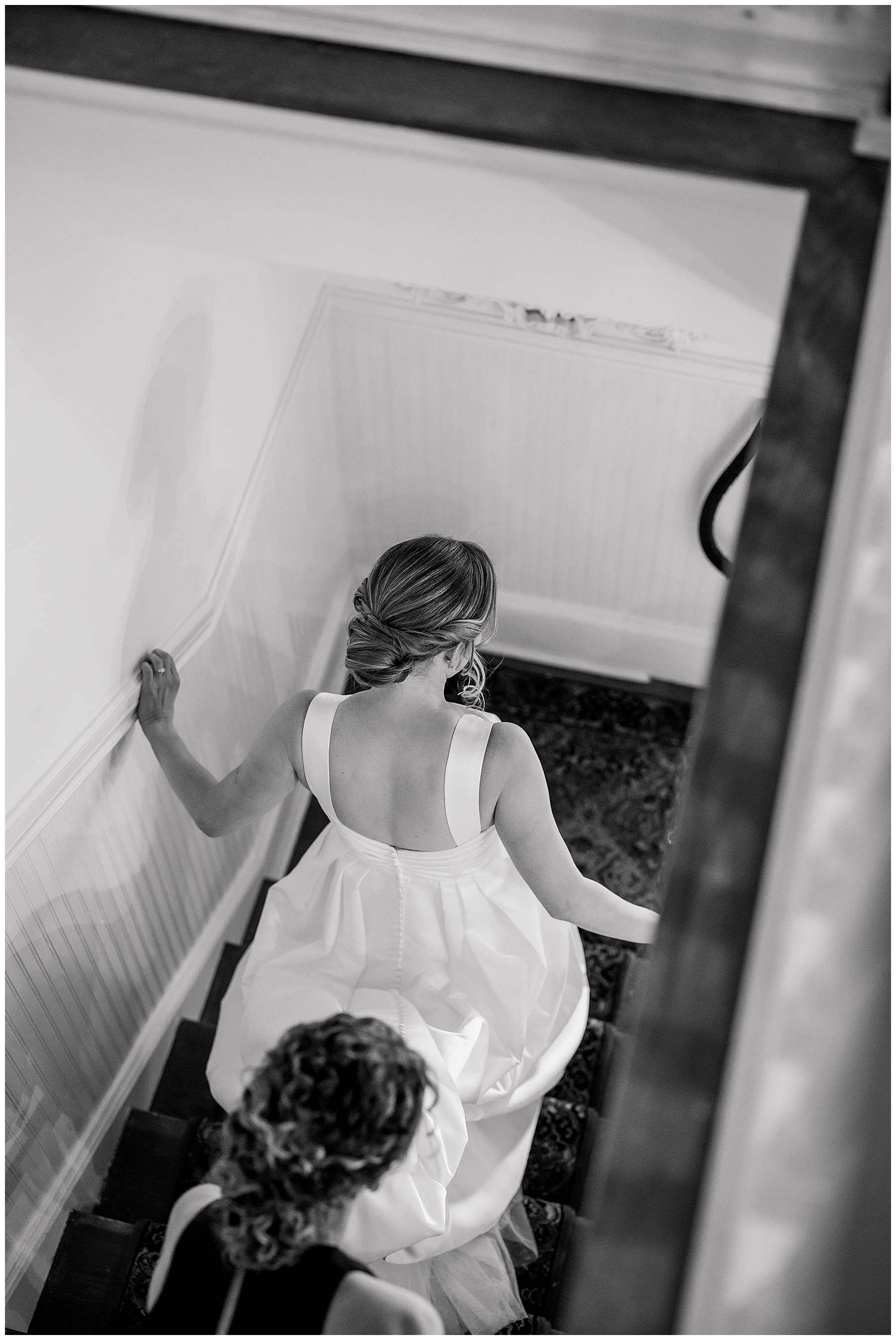 Courtney & the girls had the ENTIRE upstairs of the venue for getting ready spaces! They enjoyed getting glam & wearing their flannels – while listening to a custom playlist of each of their go-to karaoke songs! It was so cute to see how much fun they were all having together! While they were getting glammed, I enjoyed photographing Courtney’s detail photos – it’s not every day that I get to use my favorite color (BLACK!) for details, so that was fun for me!! (A few notes about her details: the pocket watch she carried in her dress pocket – it was a gift the night before from her Aunt – originally being her great-great-grandfather’s watch! The veil was her Aunt’s veil, and the perfume was her mom’s!)