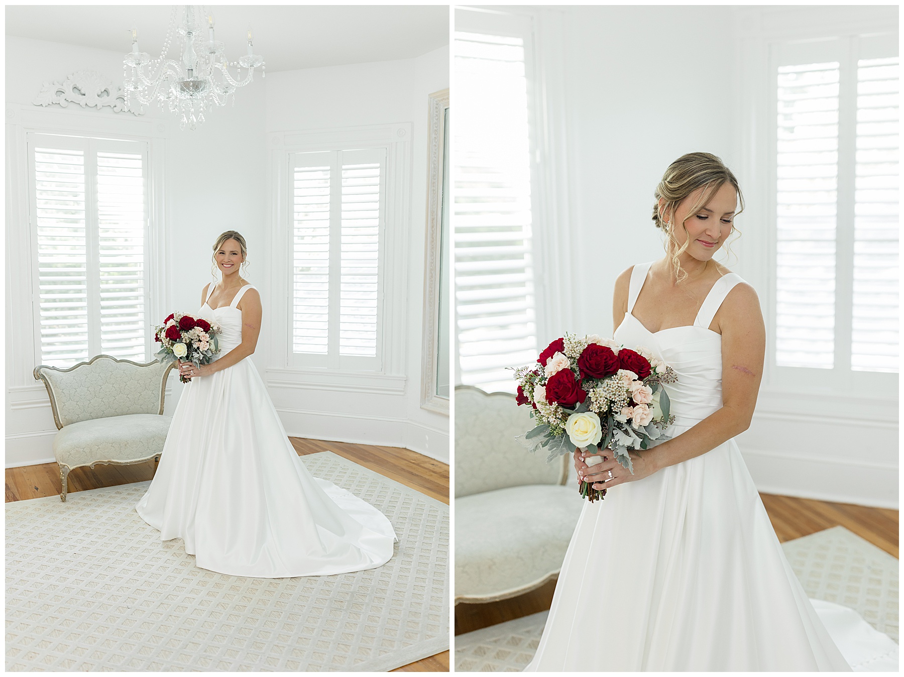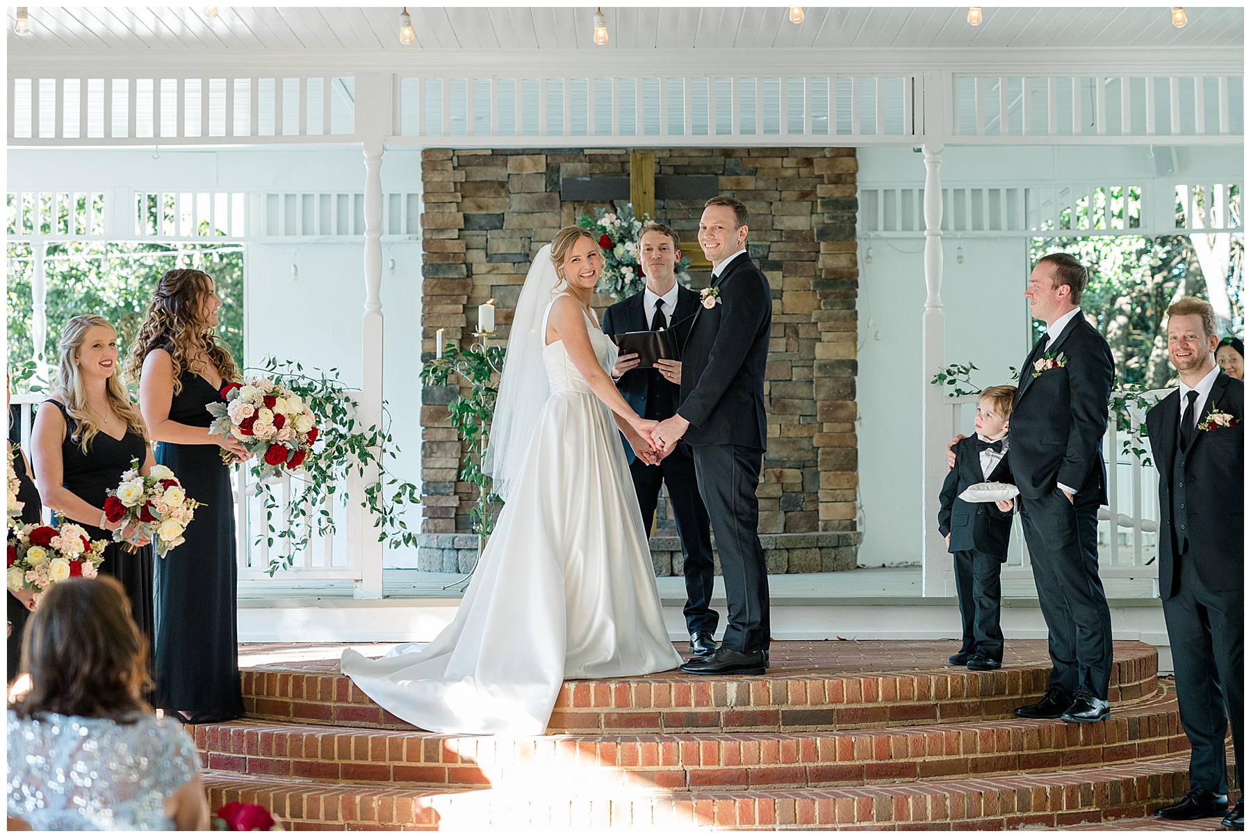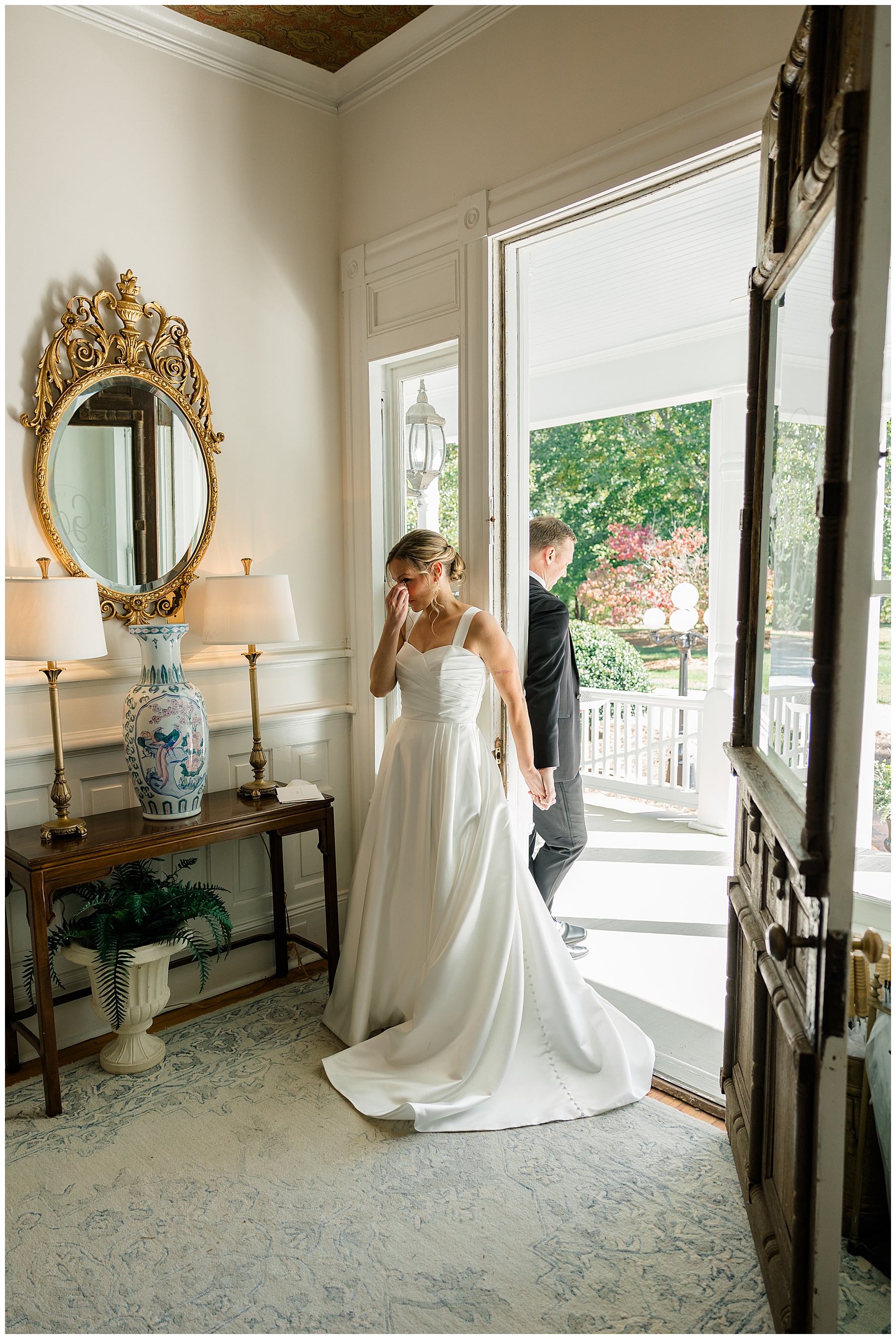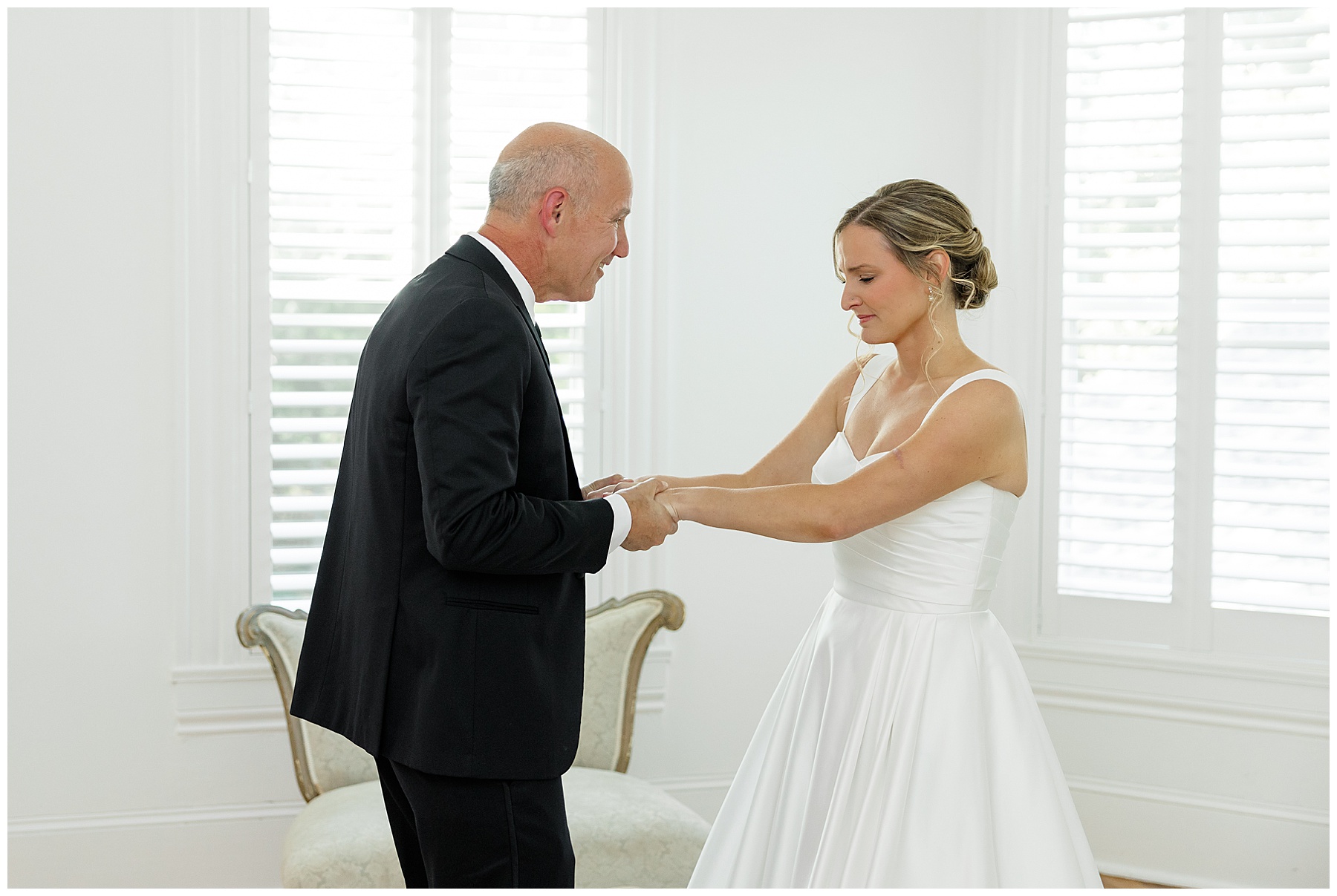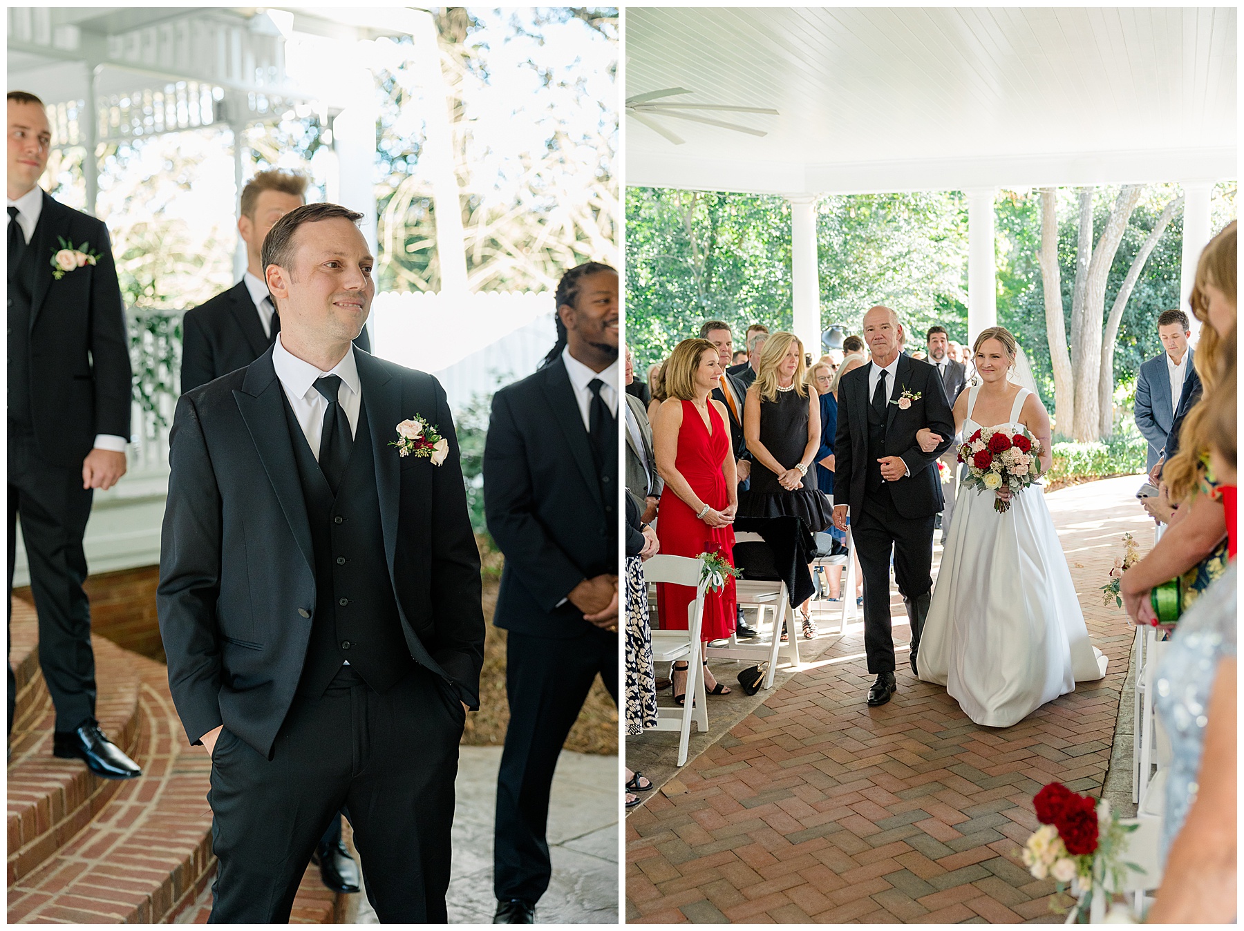After getting ready – Courtney chose to do a First Look with her dad, and then Mike & Courtney did a First Touch & exchanged letters! They waited until the ceremony to see each other for the first time – and it was really special to see their reactions. Mike’s brother officiated the ceremony and did a great job! After the ceremony were all of our formal photos – and we chased the light across the front yard together!