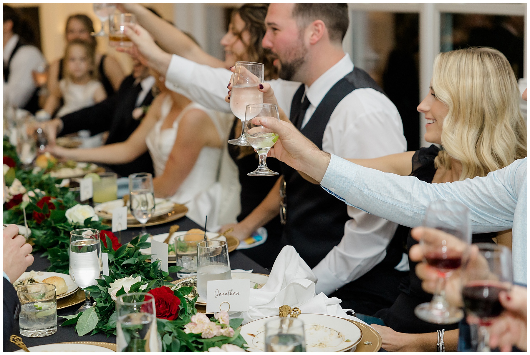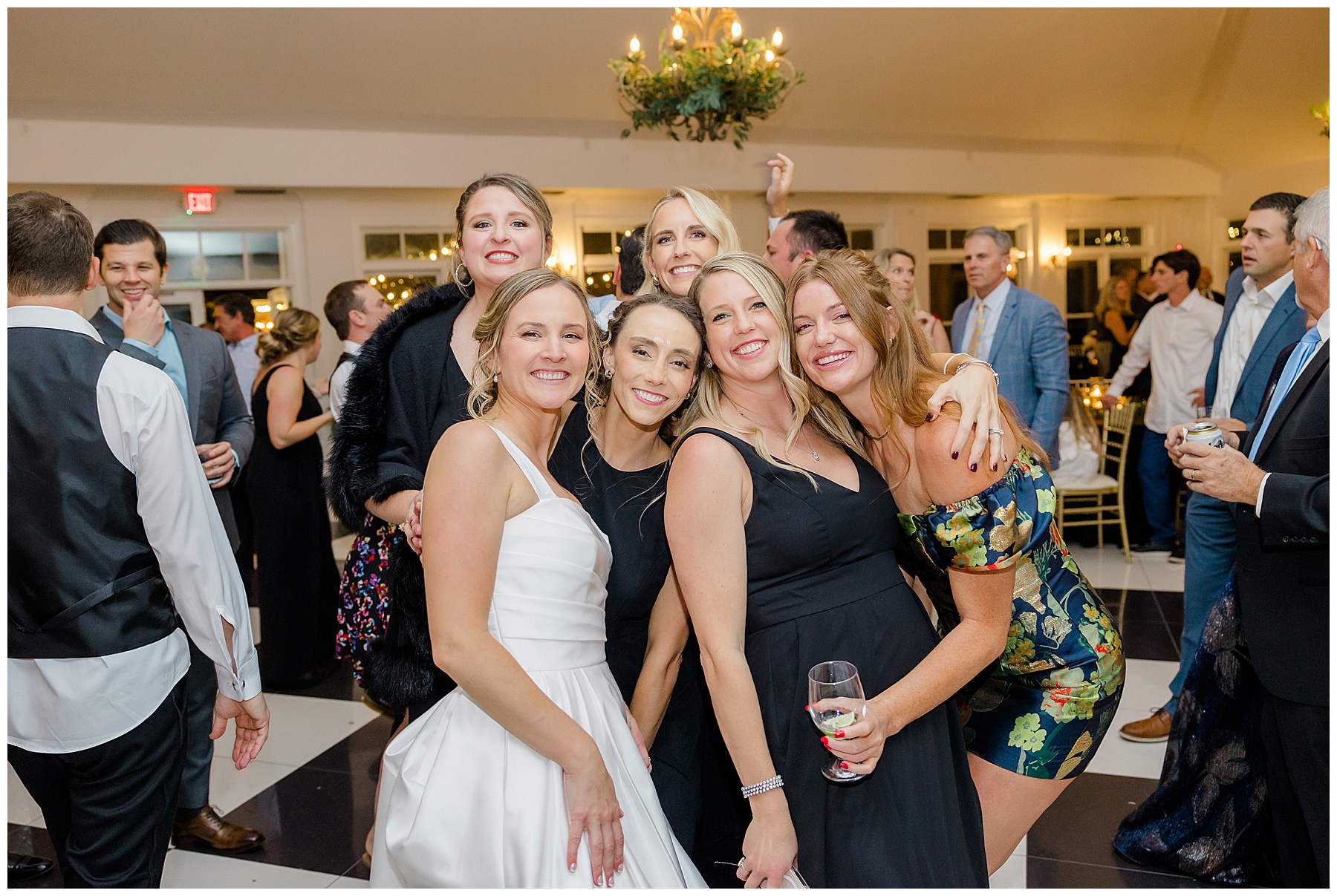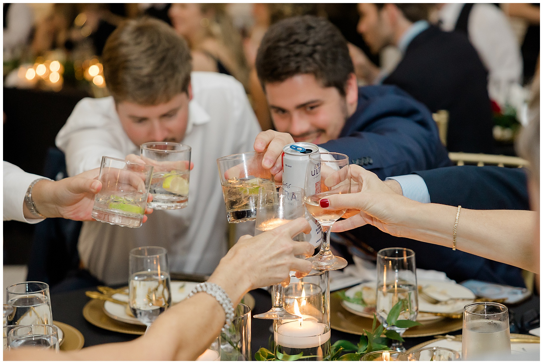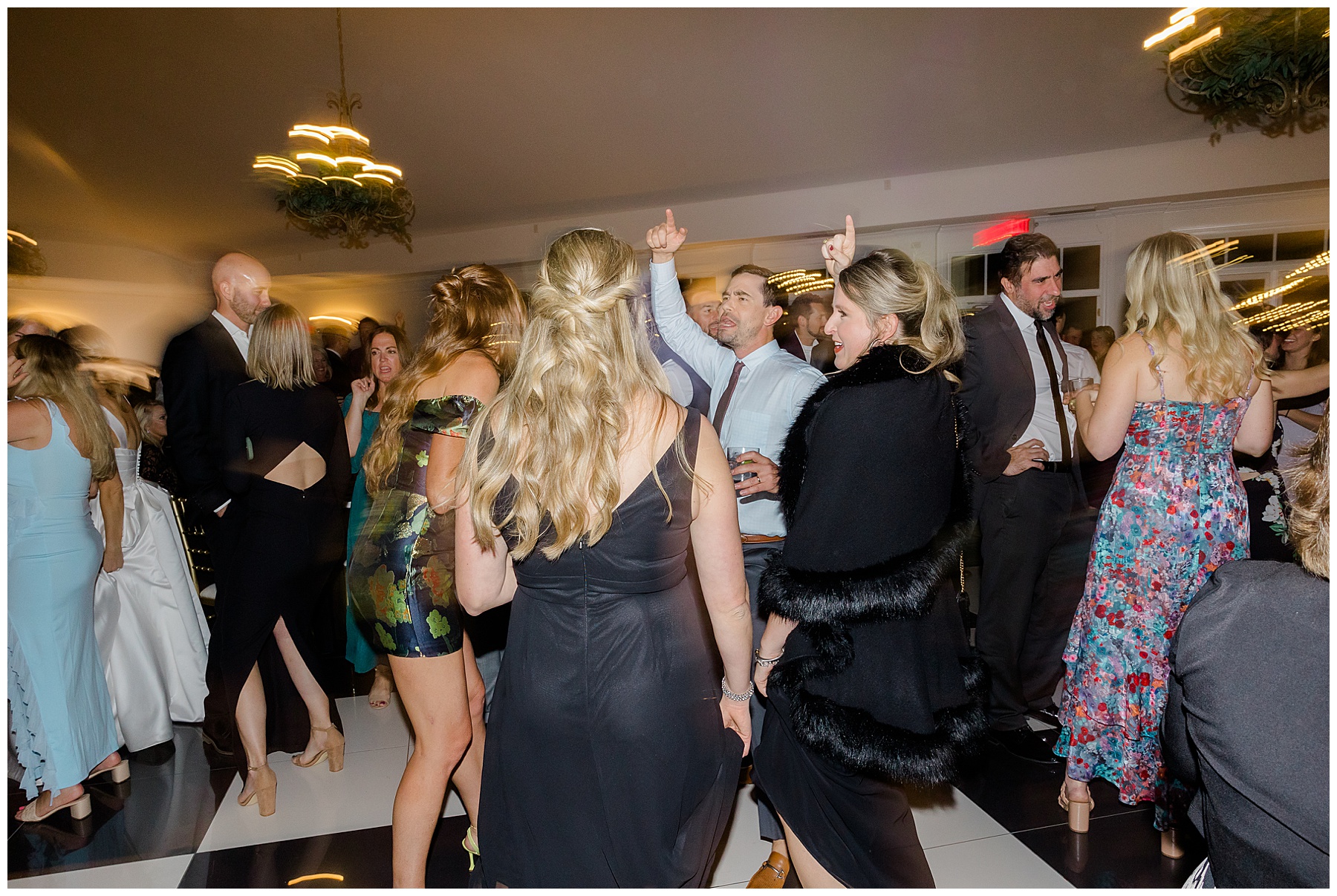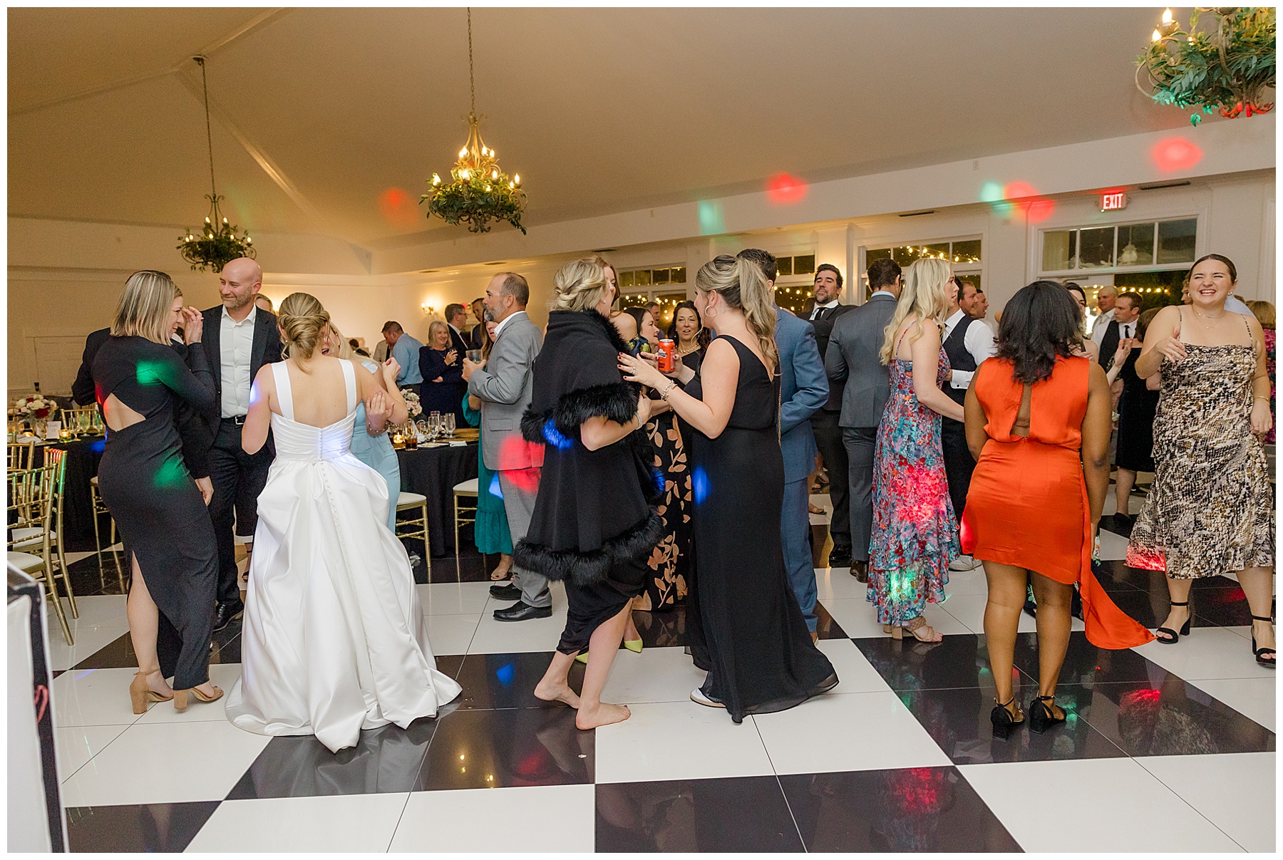 The reception kicked off in the beautiful ballroom! Speaking of “kicks” – Mike and Courtney changed into Nikes for the reception & it was really fun to show their personalities like that! I LOVED the black/white flooring in the reception ballroom, it was so classic! Dinner was absolutely delicious – and following dinner was lots of cake, speeches & toasts, and then a full night of dancing, PhotoBooth photos, firepit conversations, and everyone was having a blast!! Courtney & Mike made such a big effort to spend quality time with their family and friends all night!