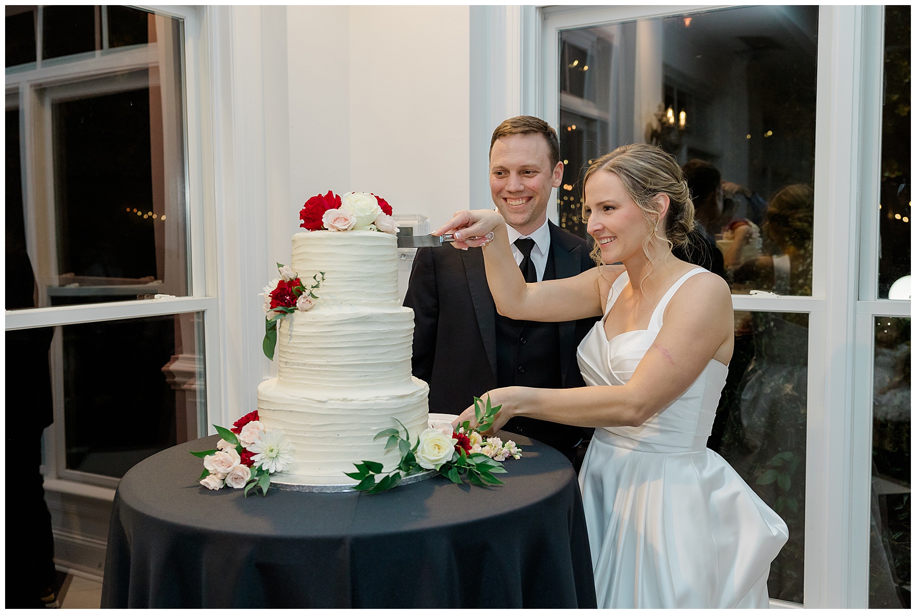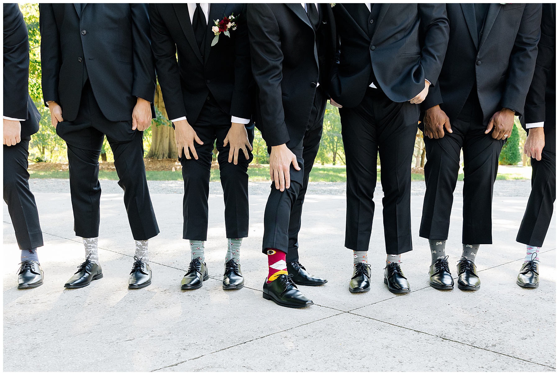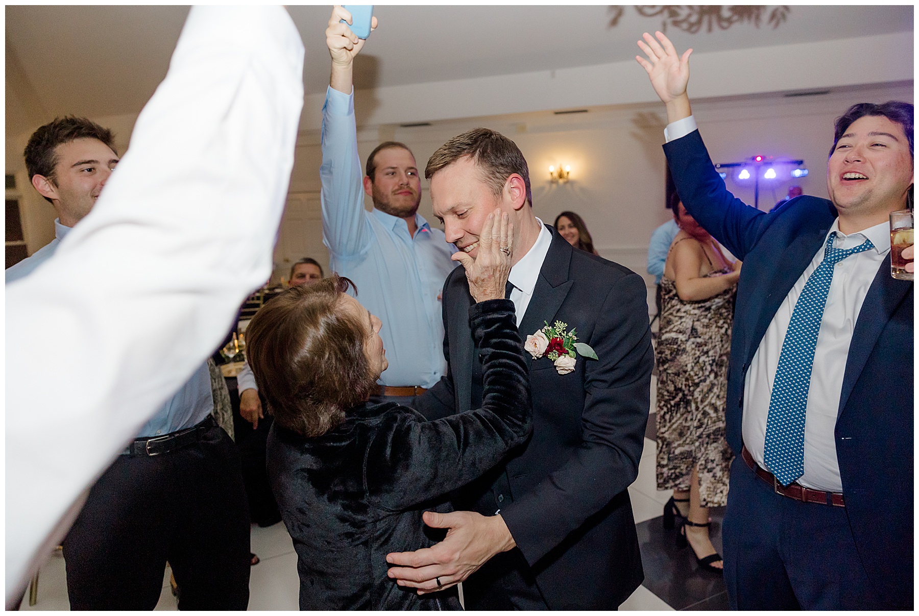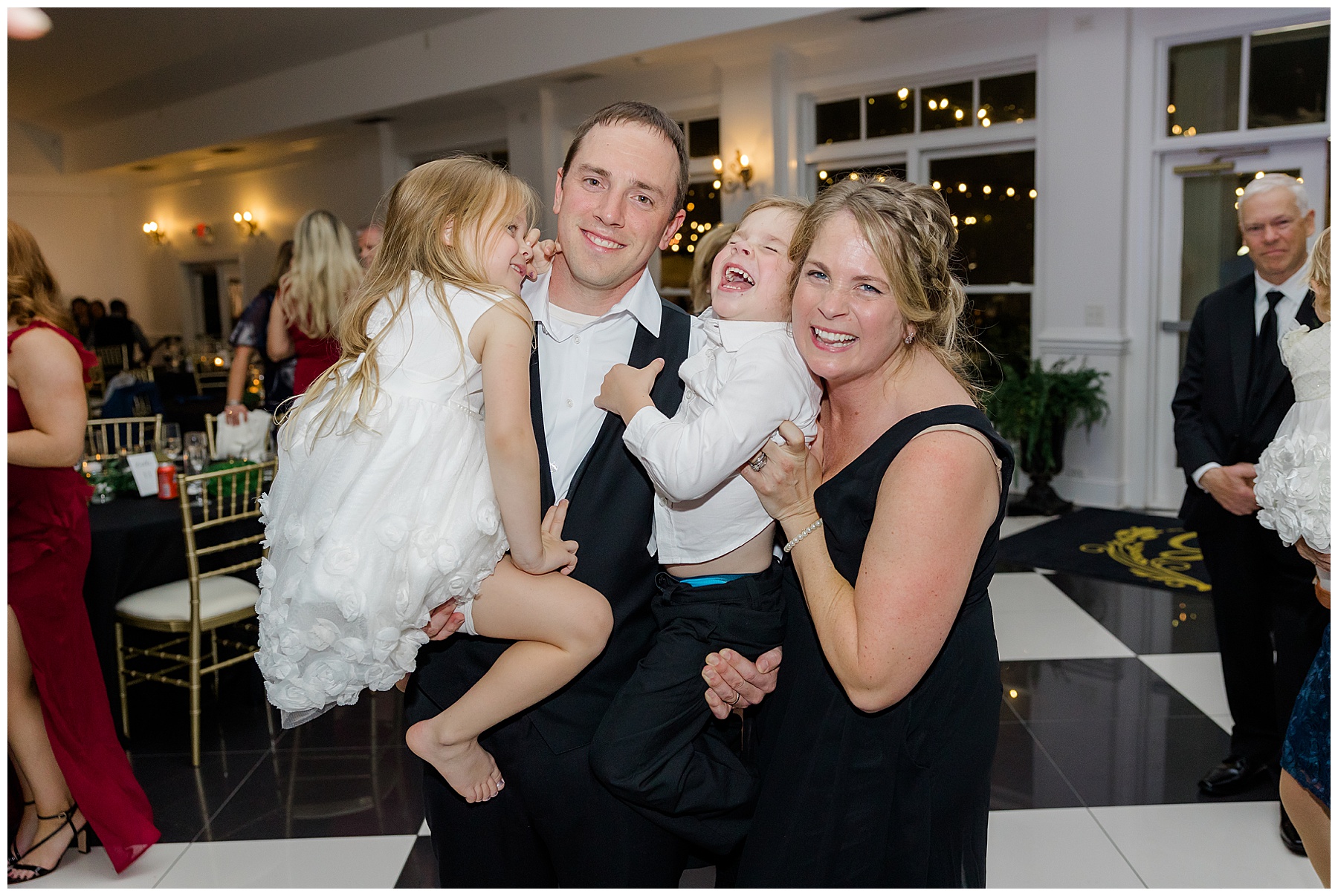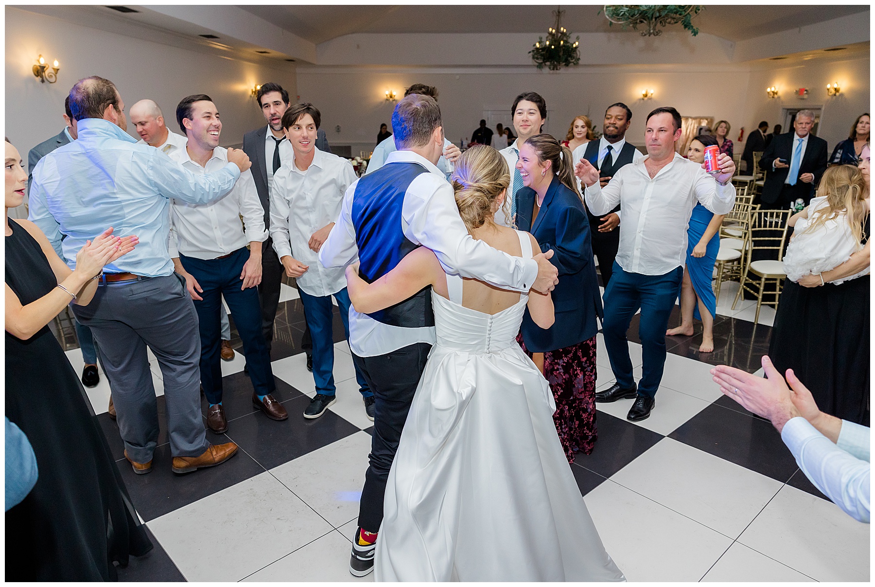 The reception kicked off in the beautiful ballroom! Speaking of “kicks” – Mike and Courtney changed into Nikes for the reception & it was really fun to show their personalities like that! I LOVED the black/white flooring in the reception ballroom, it was so classic! Dinner was absolutely delicious – and following dinner was lots of cake, speeches & toasts, and then a full night of dancing, PhotoBooth photos, firepit conversations, and everyone was having a blast!! Courtney & Mike made such a big effort to spend quality time with their family and friends all night!