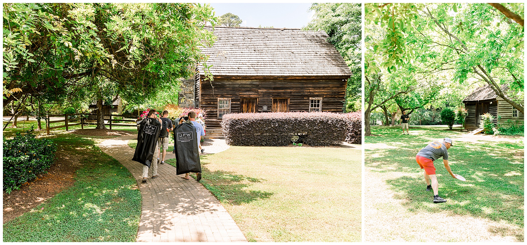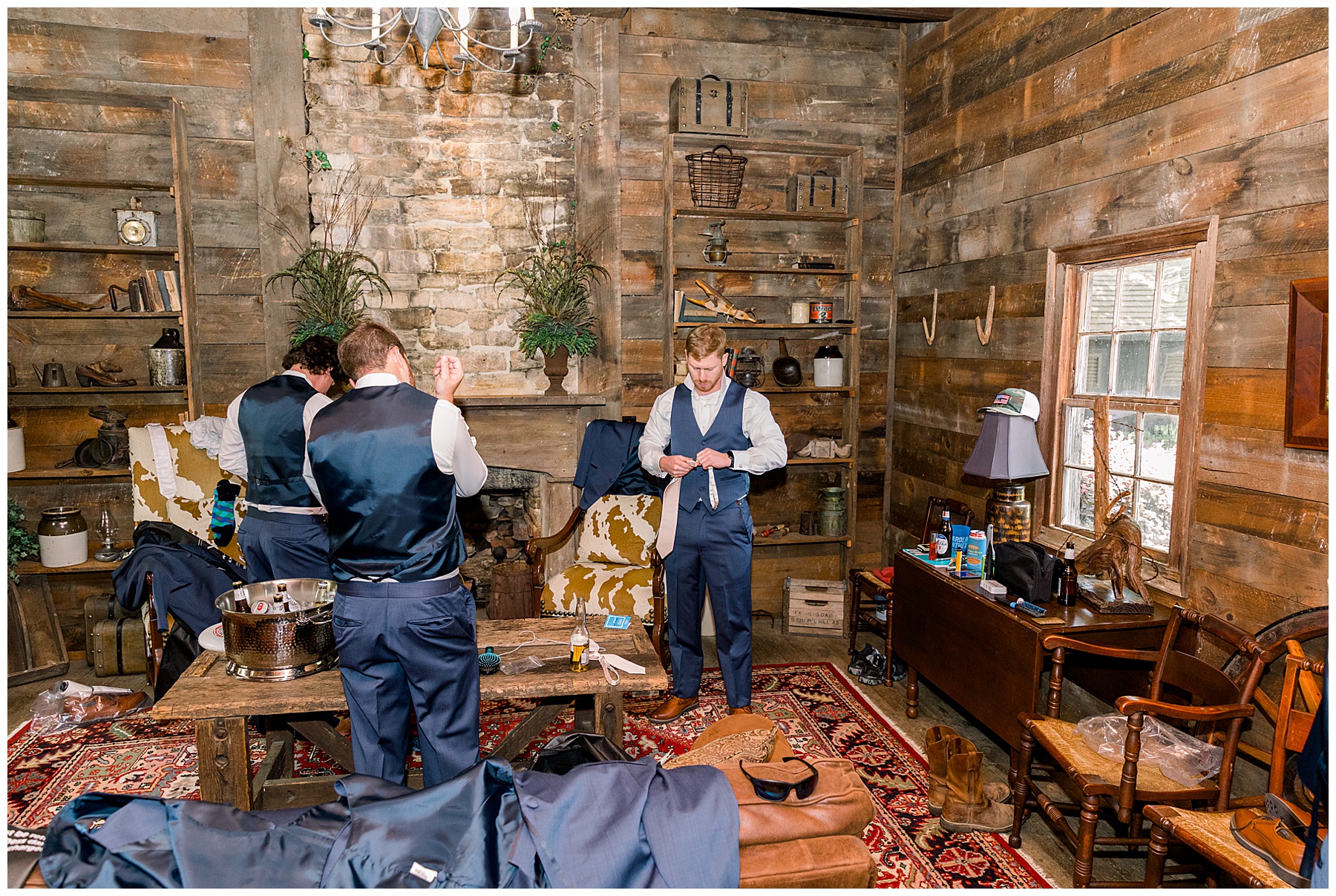 I absolutely LOVED their getting ready process – because Crysta is one of 3 sisters and it reminded me so much of my own family (I’m 1 of 3 sisters too). It was really sweet seeing all the girls help her get ready! Phillip had a great time with the guys – they threw Frisbee, relaxed, and then got ready in the neat “Settler’s House”.