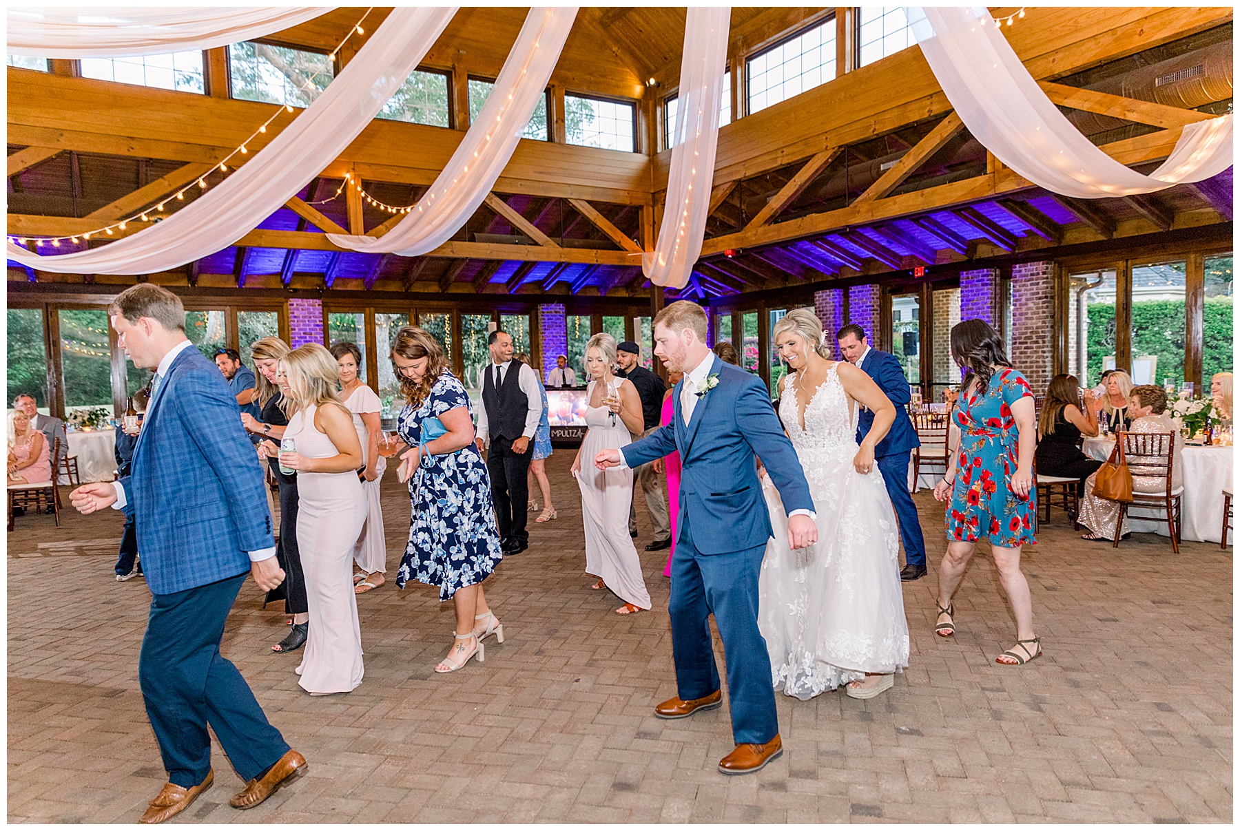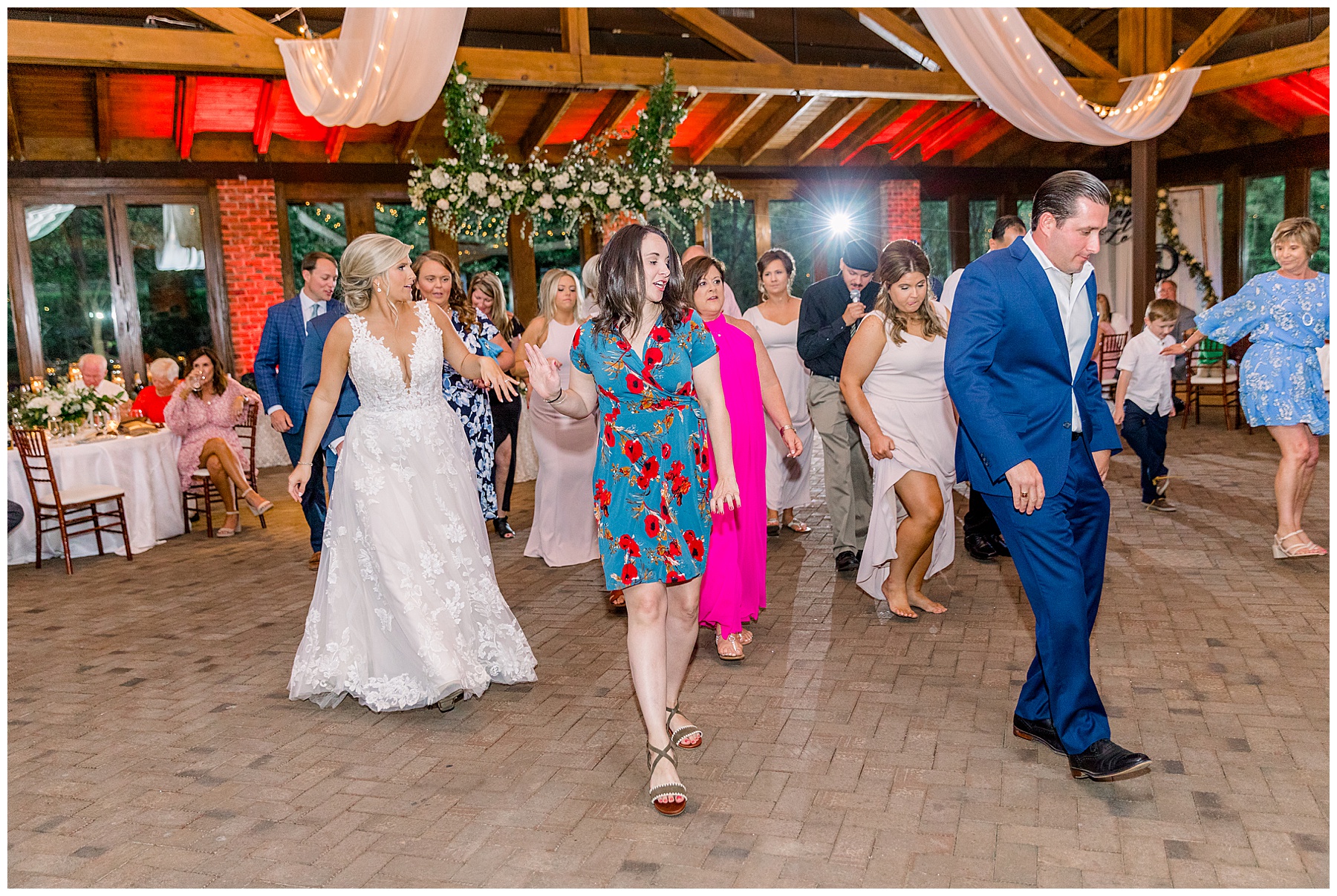 We had the BEST TIME at the reception. We had a total of FOUR TLJ Couples at their wedding (Samantha/Jeremy, Chelsea/Aaron, and Maggie/Travis) which felt like a mini reunion and was SO FUN!!!! We even hopped in the photobooth together for a big group photo! Impultz Entertainment not only provided a fun night of dancing, but the photobooth all evening! Crysta & Trevor spoiled their guests with yummy food, drinks (Even a signature drink!) beautiful atmosphere, and DELCIOUS cake (I was EXTRA impressed with the biggest cake slices I’ve EVER seen at a wedding!)