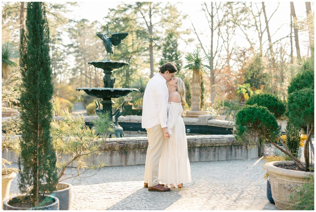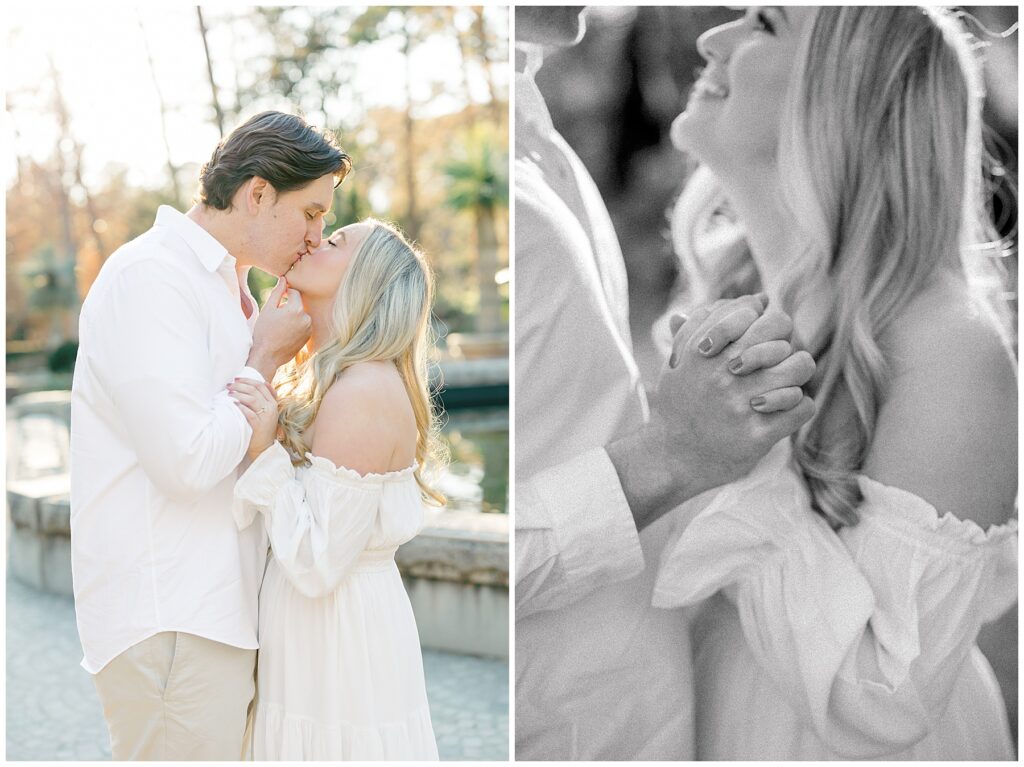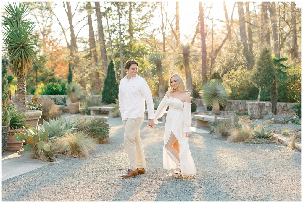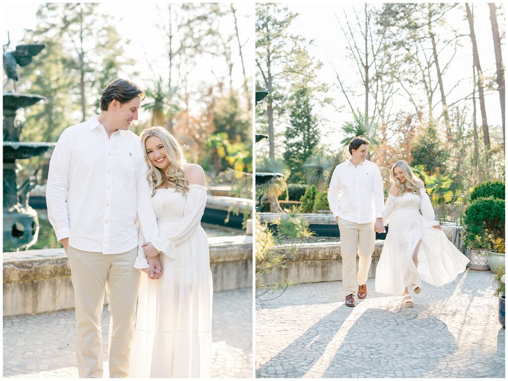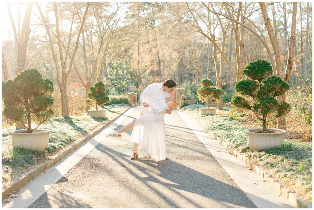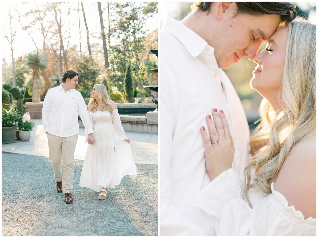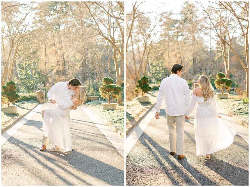 We had such a beautiful and sunny day for Diana and Alex’s Engagement Session! It was our first time meeting these two in person since they live in Atlanta, and we just had the best time together exploring the pretty spots in the gardens, chasing the lighting, and listening to 2000’s pop music! Diana was going for an “angelic” vibe with the photos – and thanks to that stunning sunshine – we got the glowiest photos where Diana in those white dresses truly looked like an angel!!! Wow!!! :)
