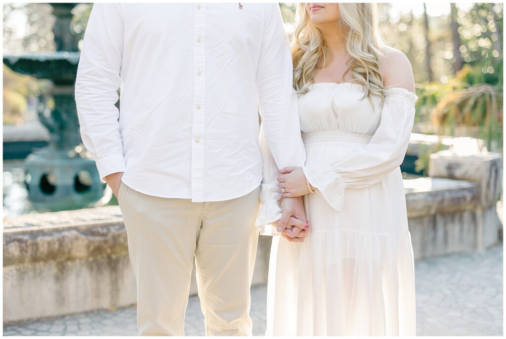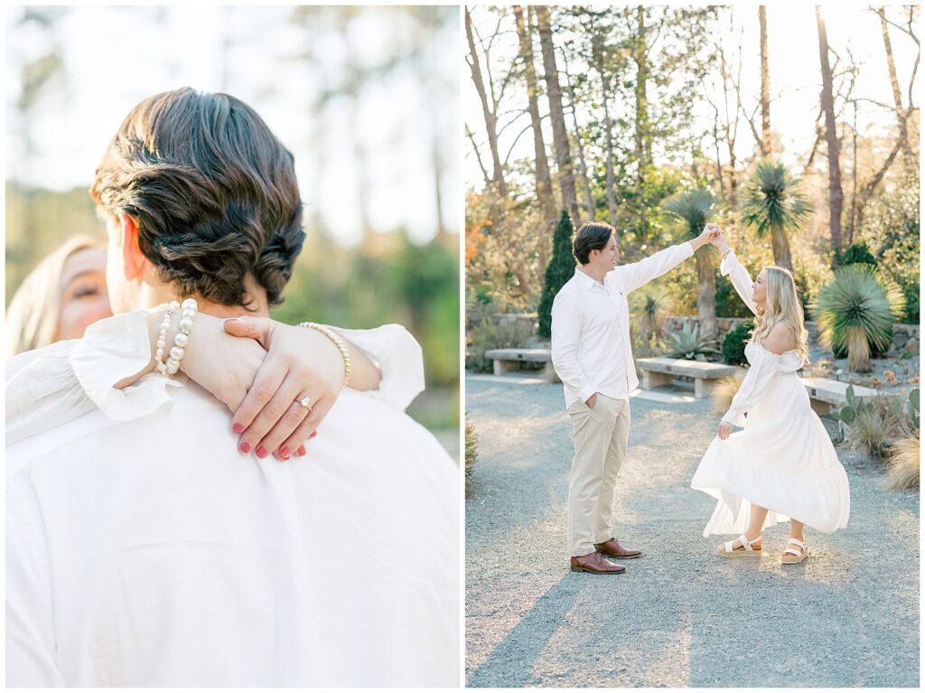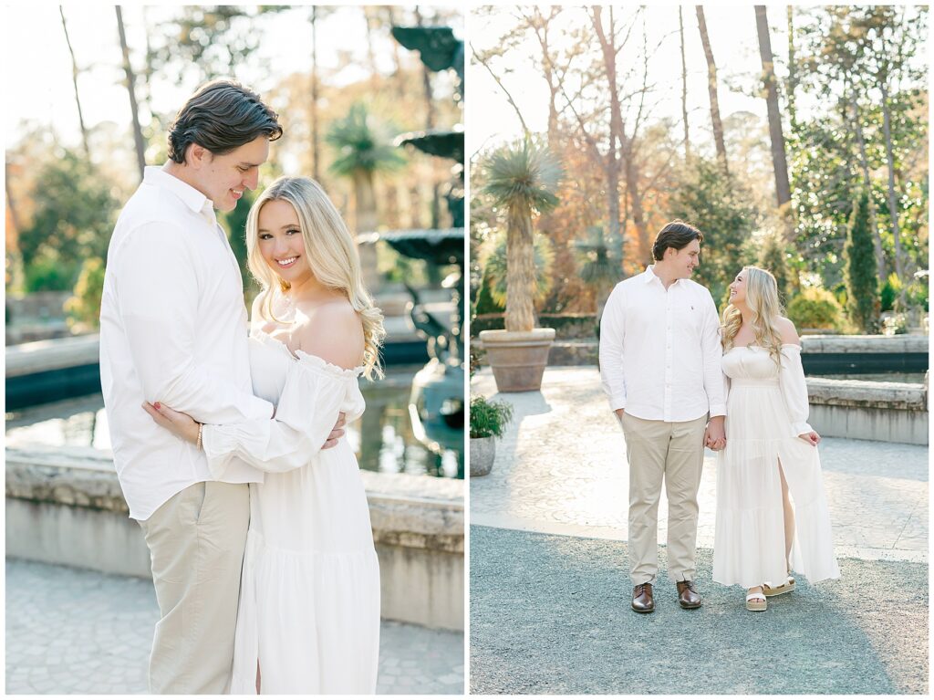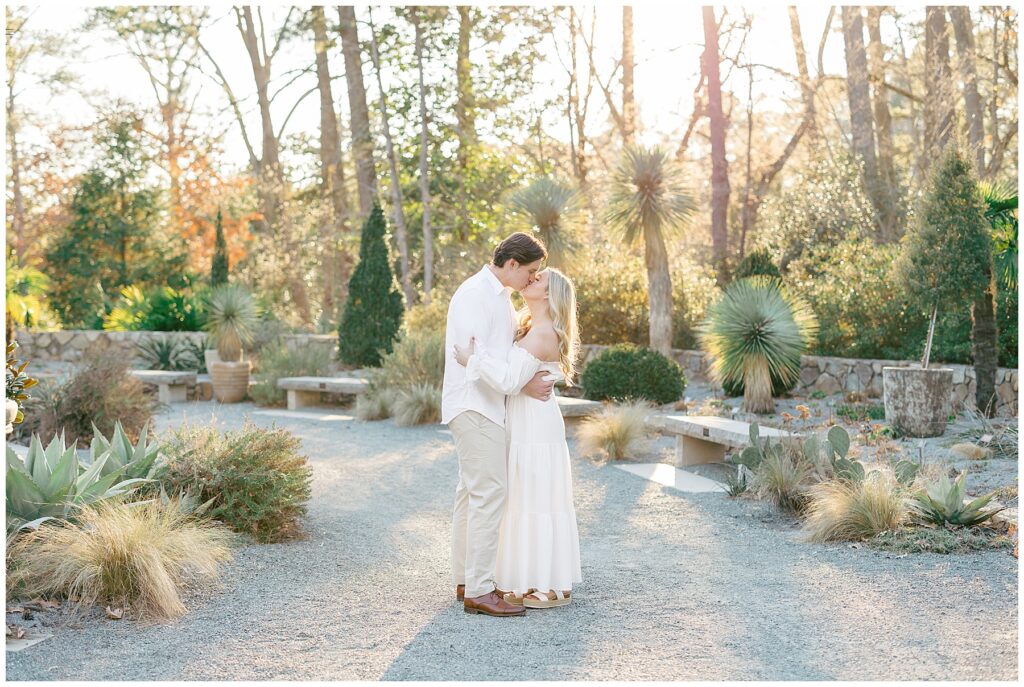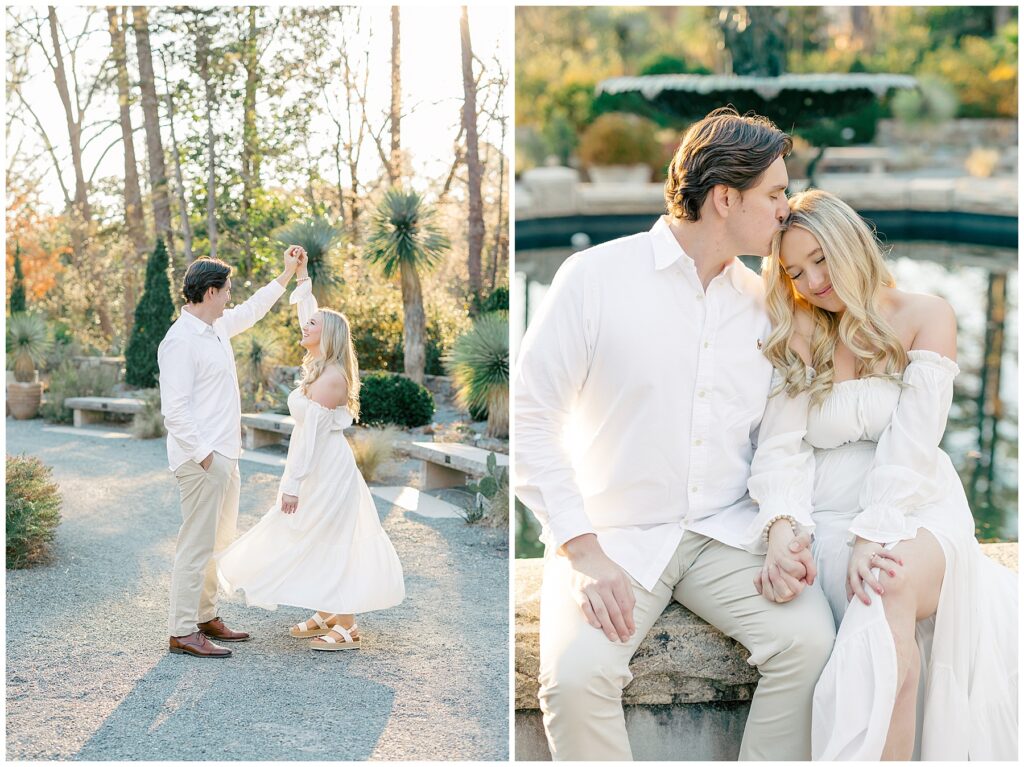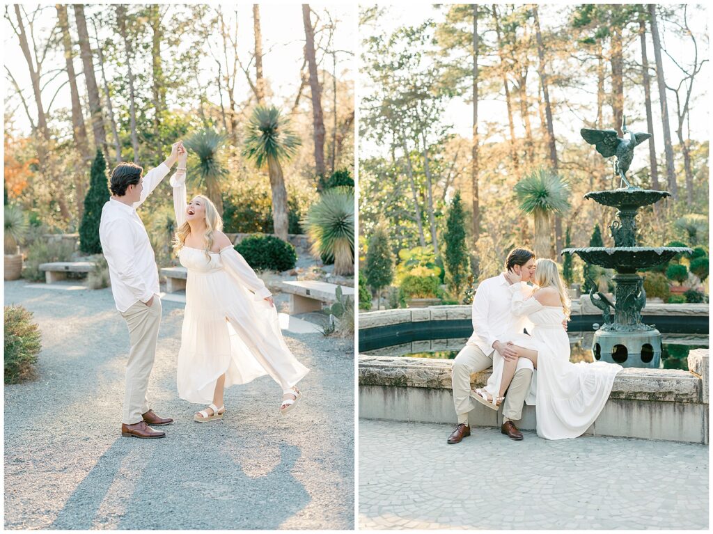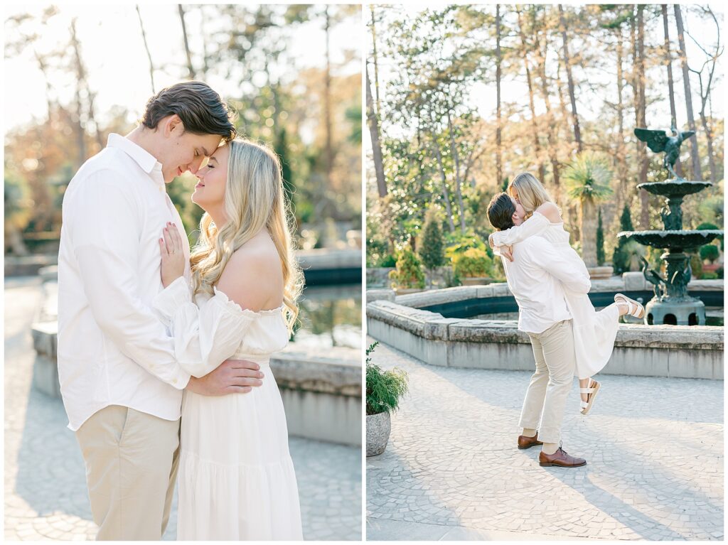 We had such a beautiful and sunny day for Diana and Alex’s Engagement Session! It was our first time meeting these two in person since they live in Atlanta, and we just had the best time together exploring the pretty spots in the gardens, chasing the lighting, and listening to 2000’s pop music! Diana was going for an “angelic” vibe with the photos – and thanks to that stunning sunshine – we got the glowiest photos where Diana in those white dresses truly looked like an angel!!! Wow!!! :)