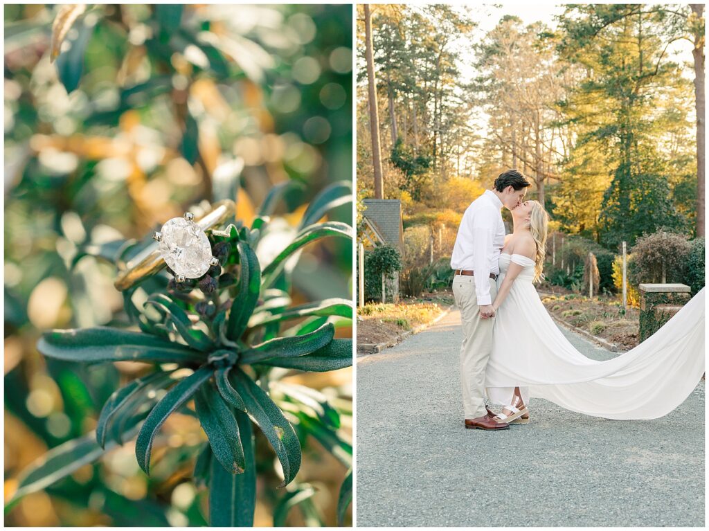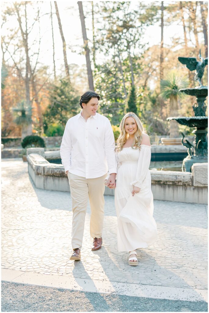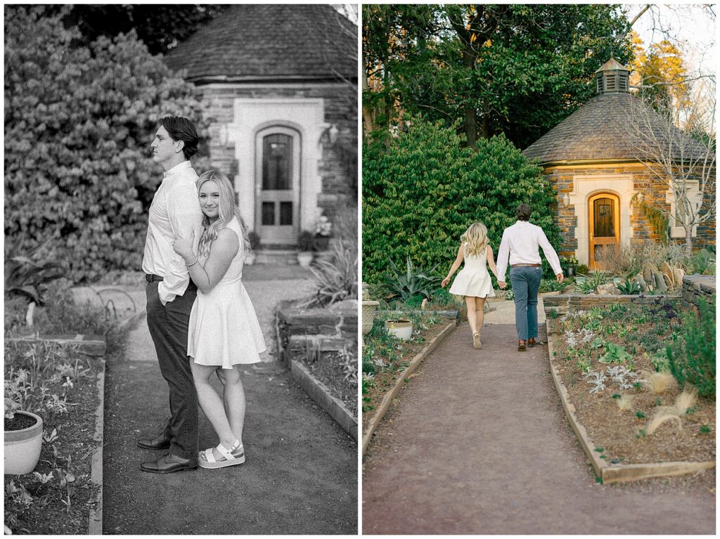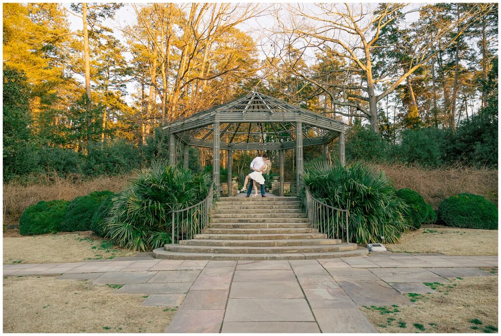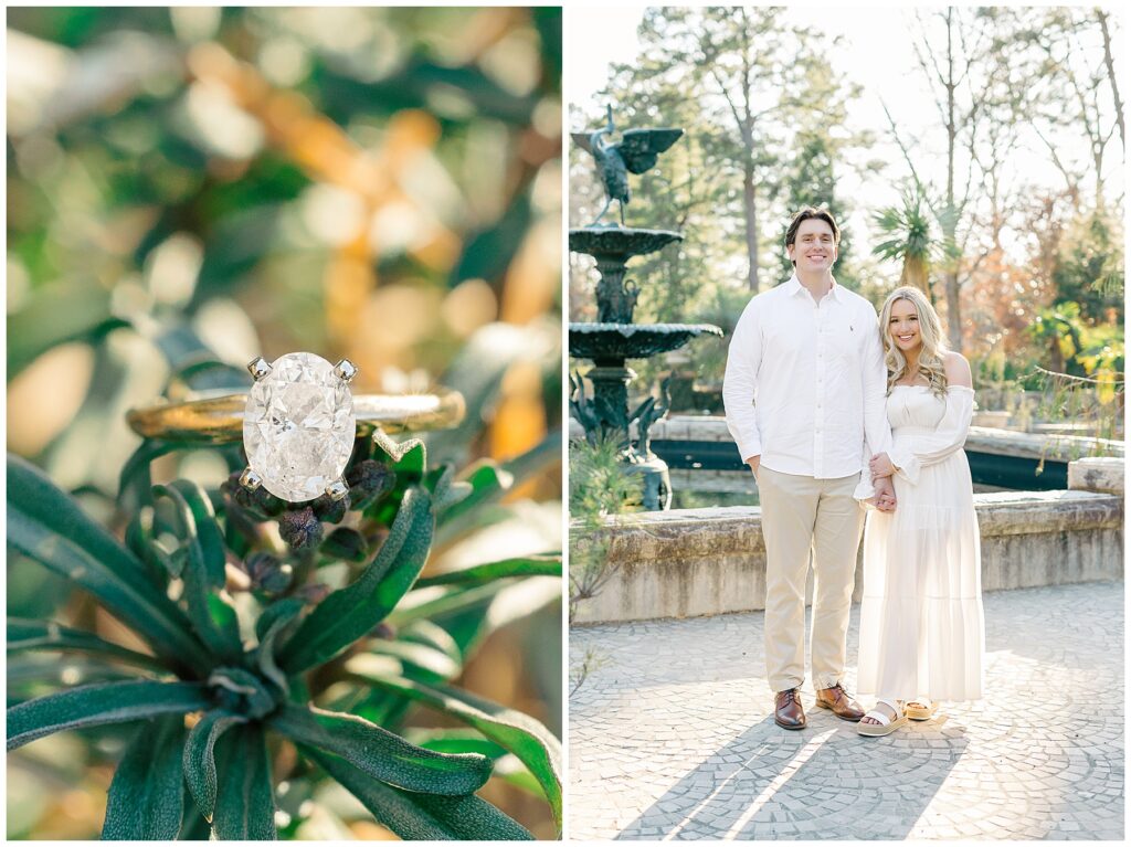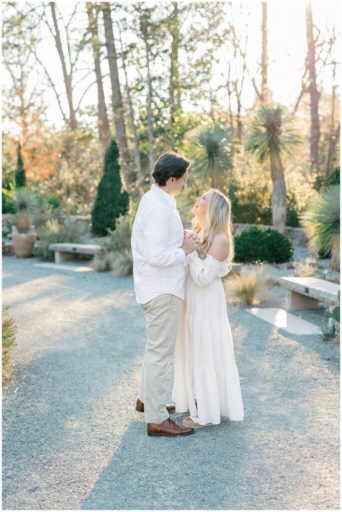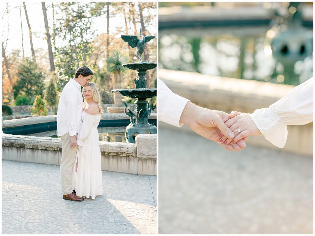 We had such a beautiful and sunny day for Diana and Alex’s Engagement Session! It was our first time meeting these two in person since they live in Atlanta, and we just had the best time together exploring the pretty spots in the gardens, chasing the lighting, and listening to 2000’s pop music! Diana was going for an “angelic” vibe with the photos – and thanks to that stunning sunshine – we got the glowiest photos where Diana in those white dresses truly looked like an angel!!! Wow!!! :)